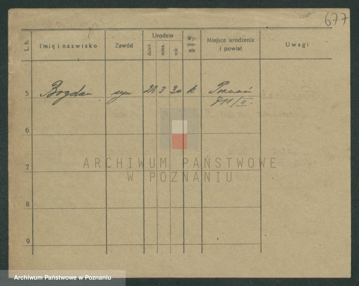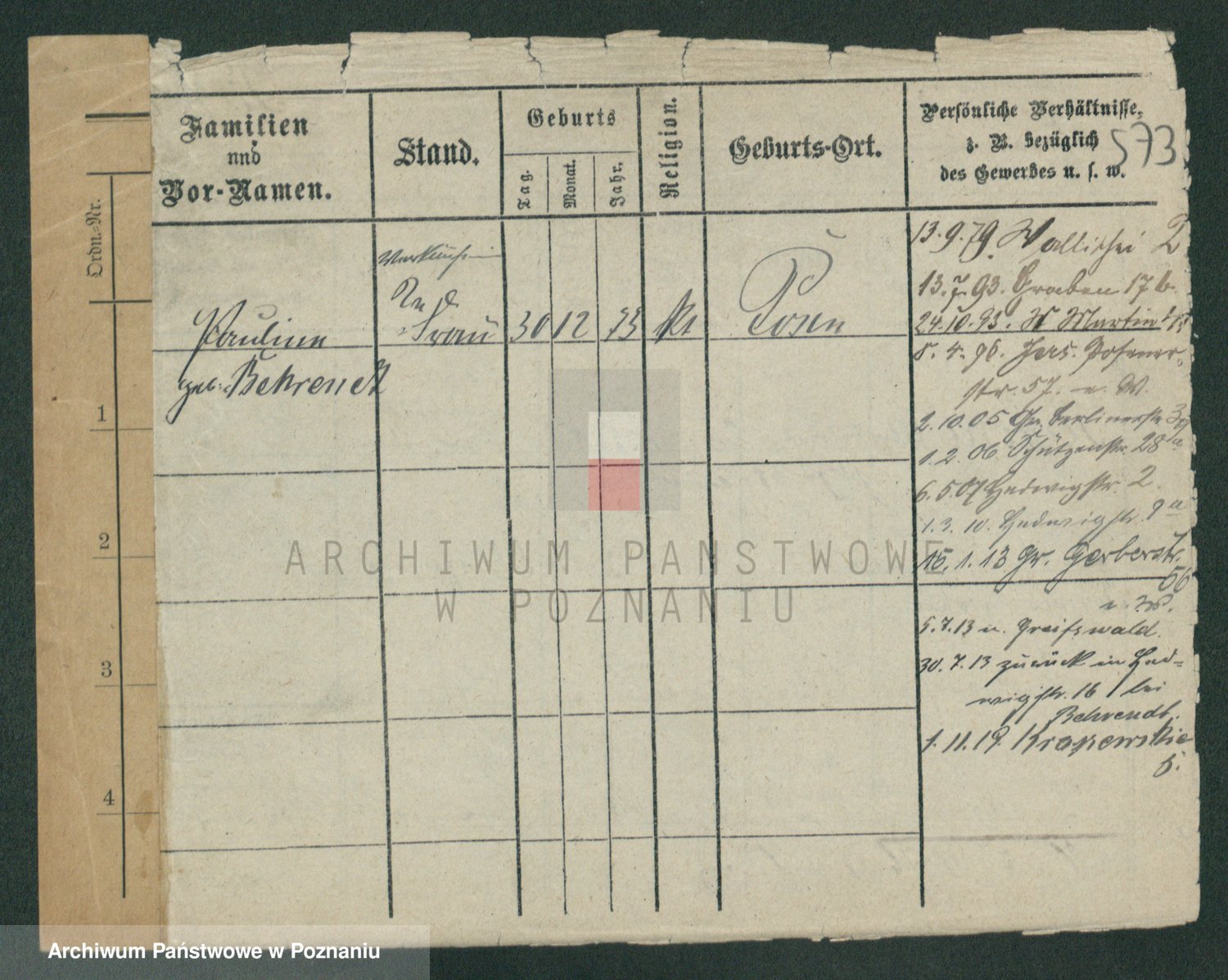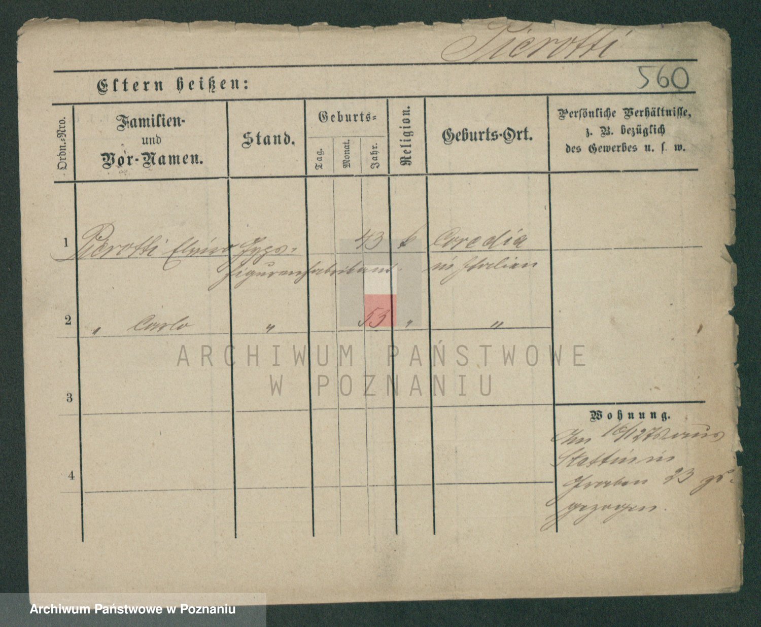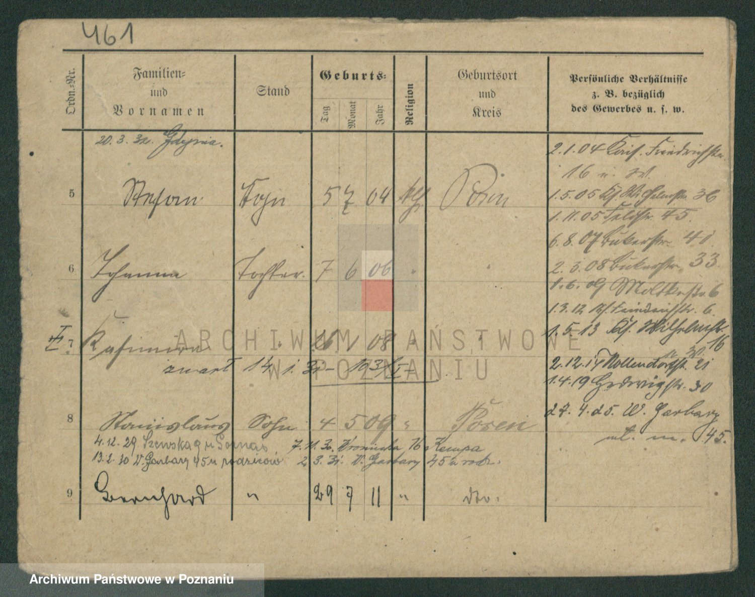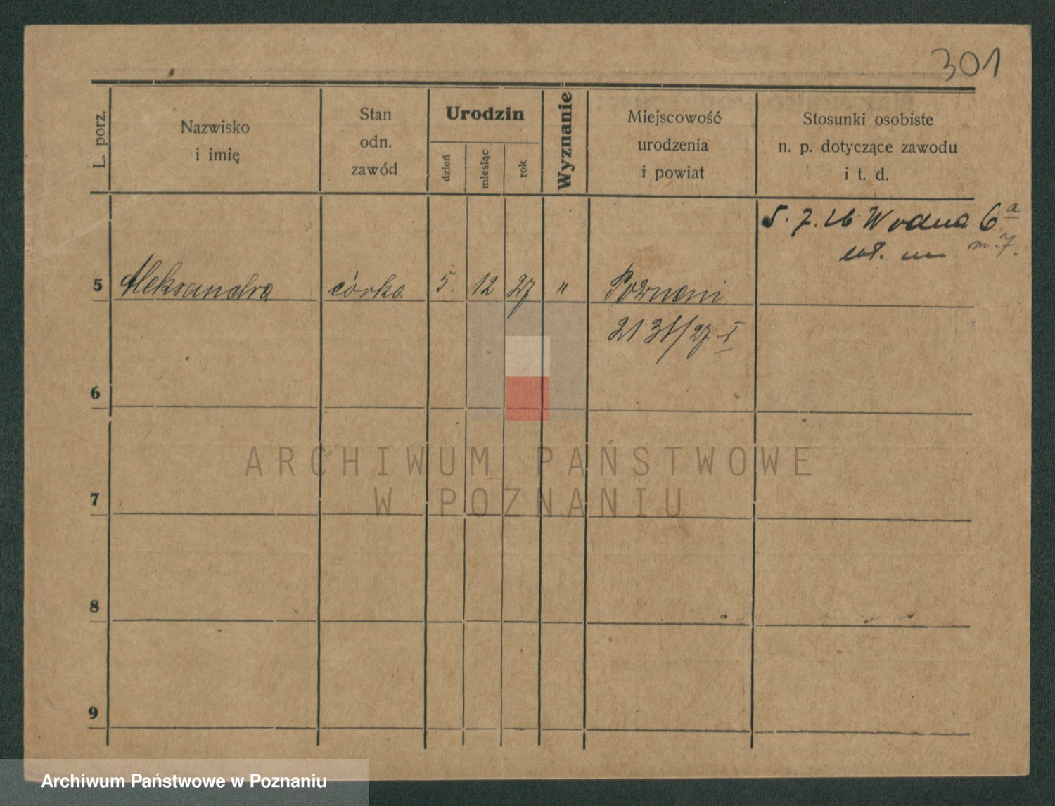 Podgląd karty osobowej dostępny jest po kliknięciu na nazwisko lub ikonkę karty. Można dokonywać powiększenia (ikony na górze) lub przechodzić między kolejnymi skanami (strzałki po bokach).