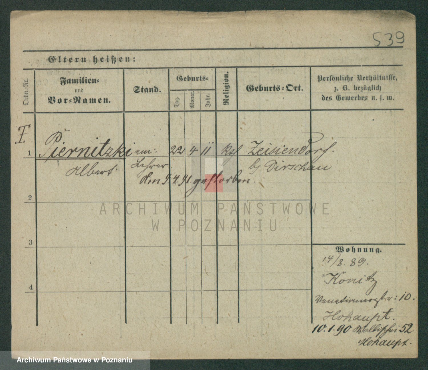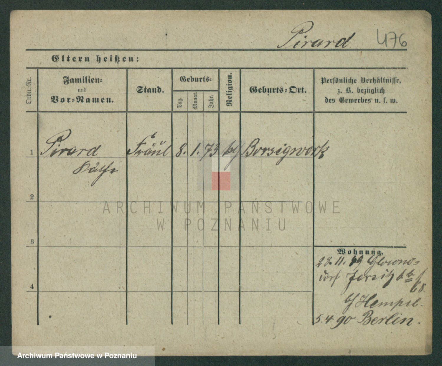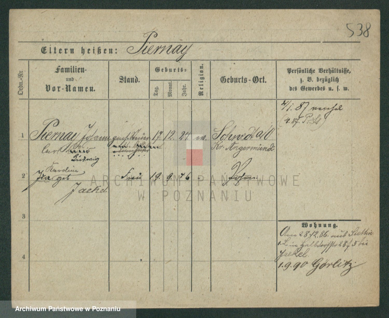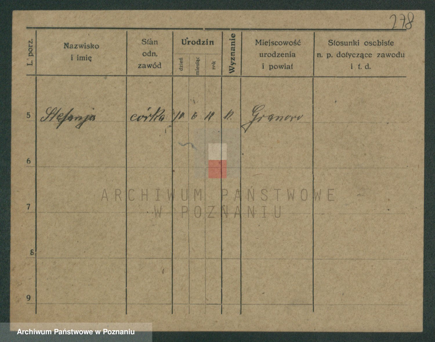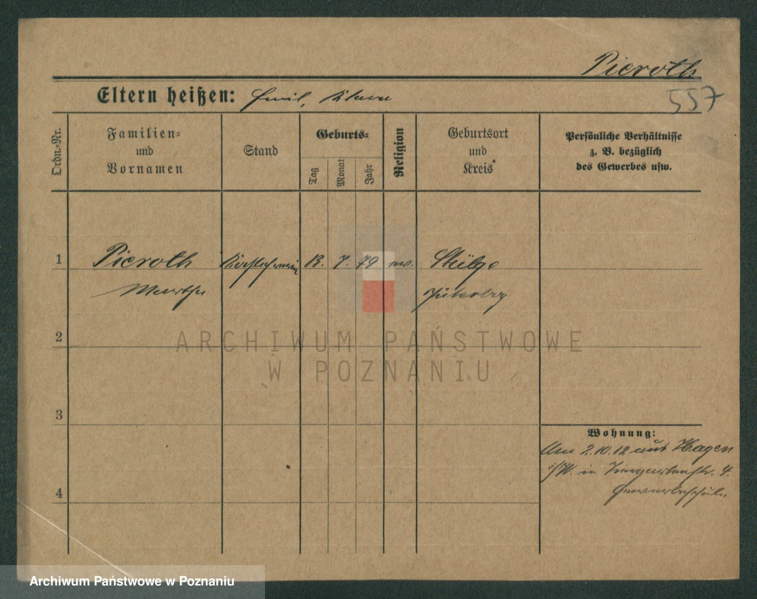 Podgląd karty osobowej dostępny jest po kliknięciu na nazwisko lub ikonkę karty. Można dokonywać powiększenia (ikony na górze) lub przechodzić między kolejnymi skanami (strzałki po bokach).