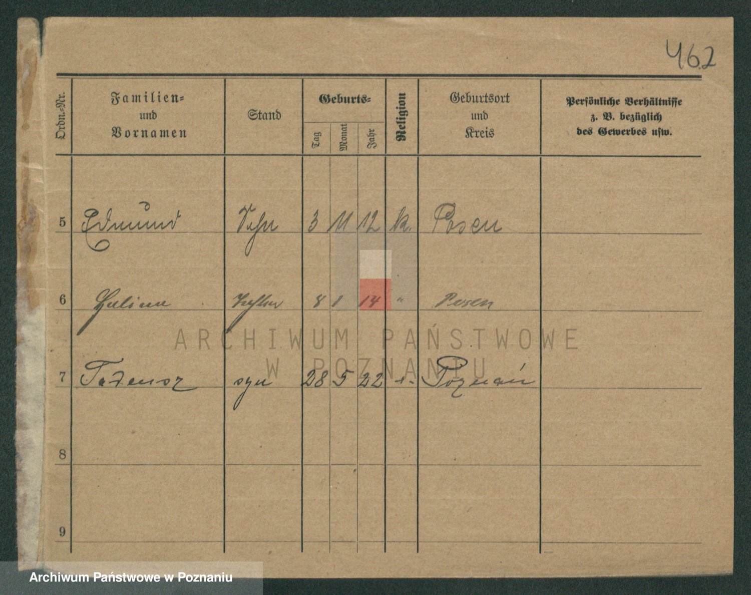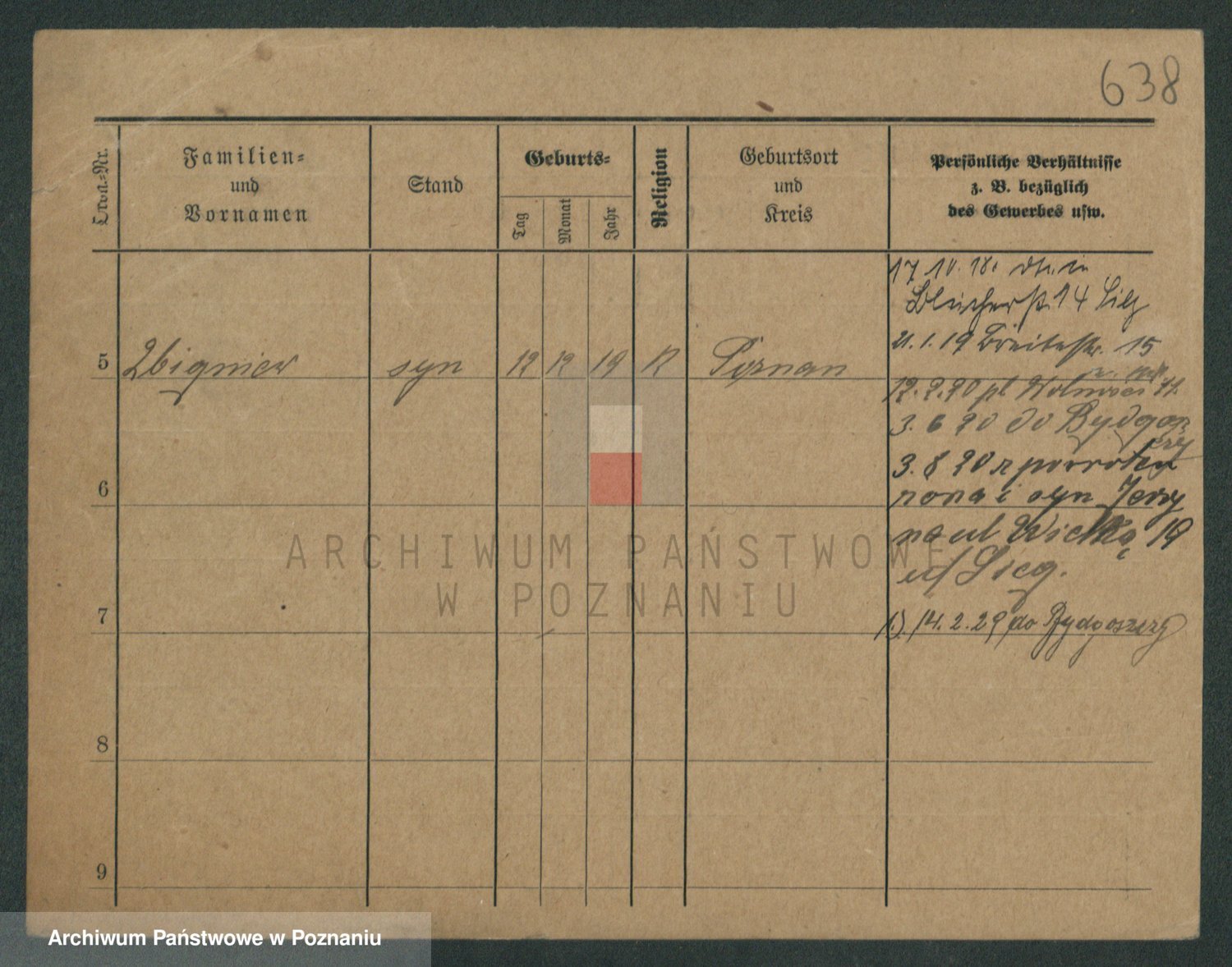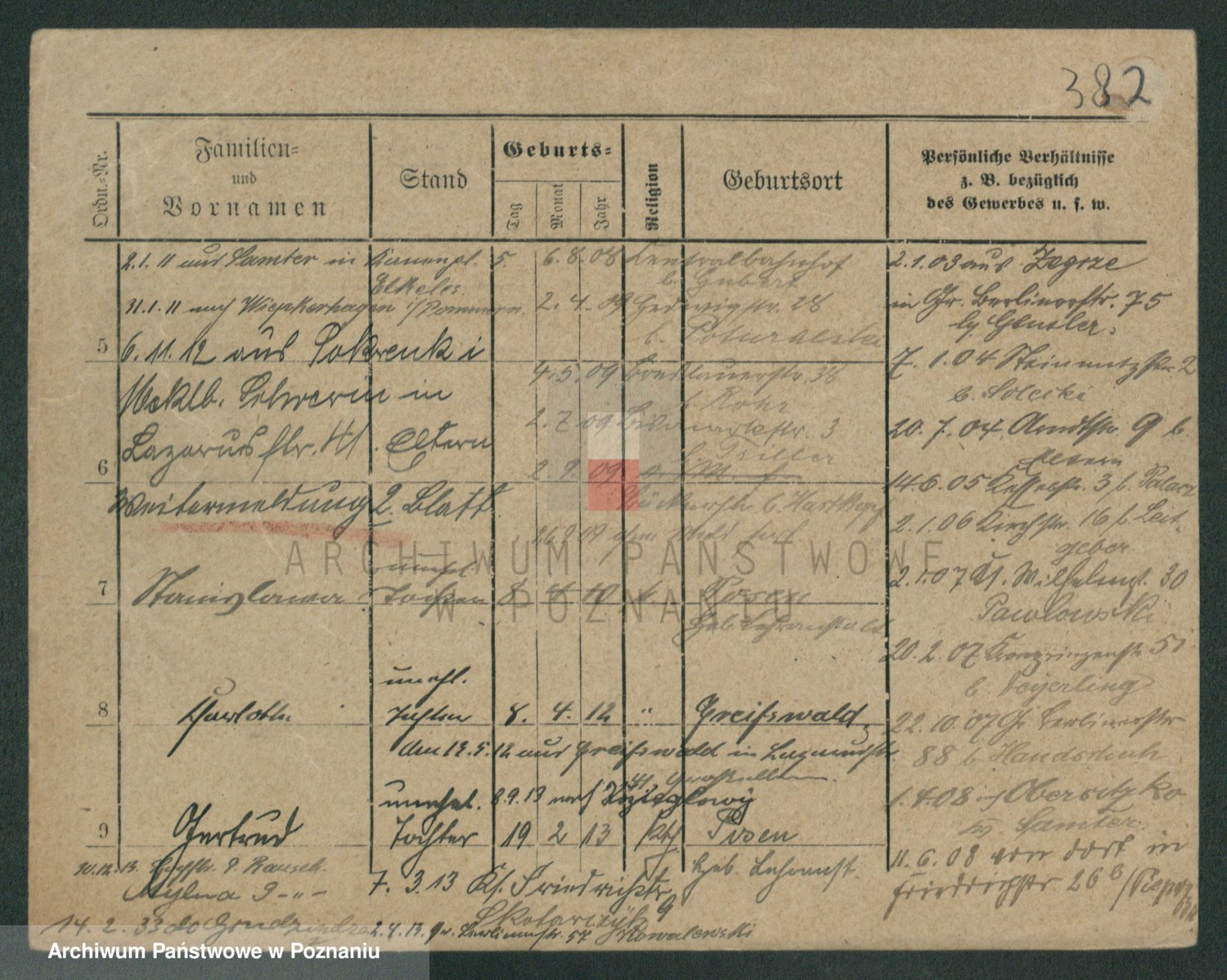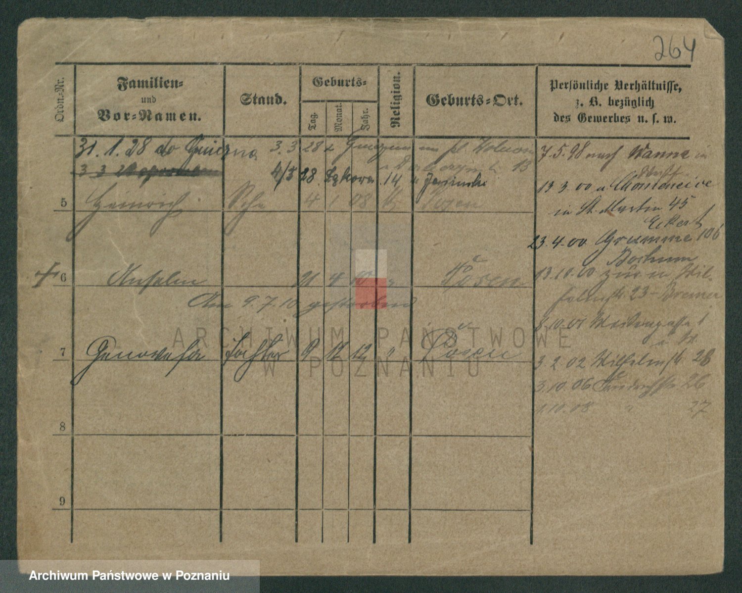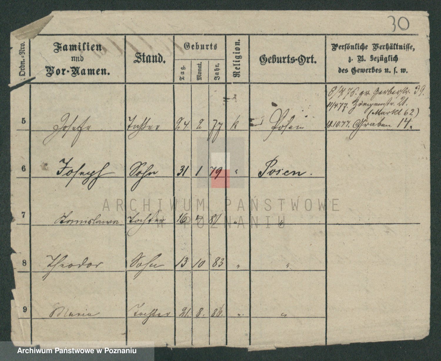 Podgląd karty osobowej dostępny jest po kliknięciu na nazwisko lub ikonkę karty. Można dokonywać powiększenia (ikony na górze) lub przechodzić między kolejnymi skanami (strzałki po bokach).