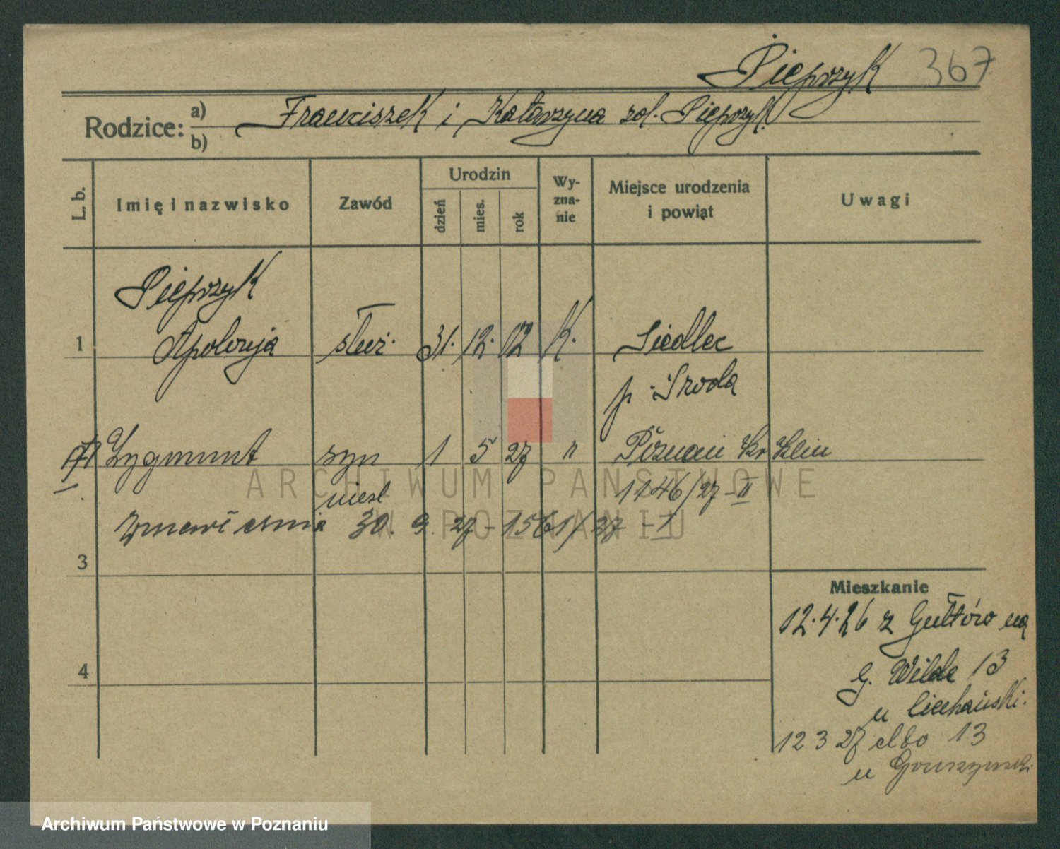 Pierzynska, Apolonie