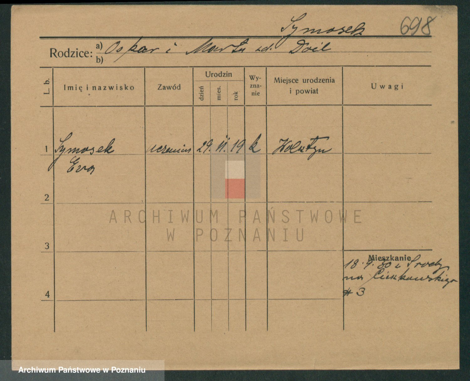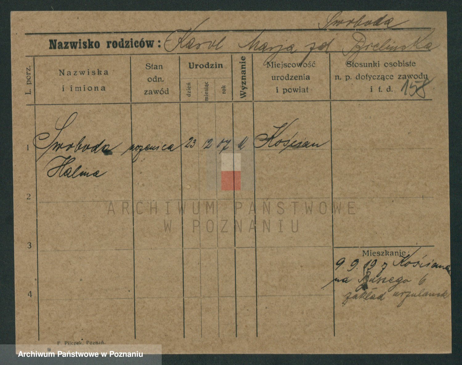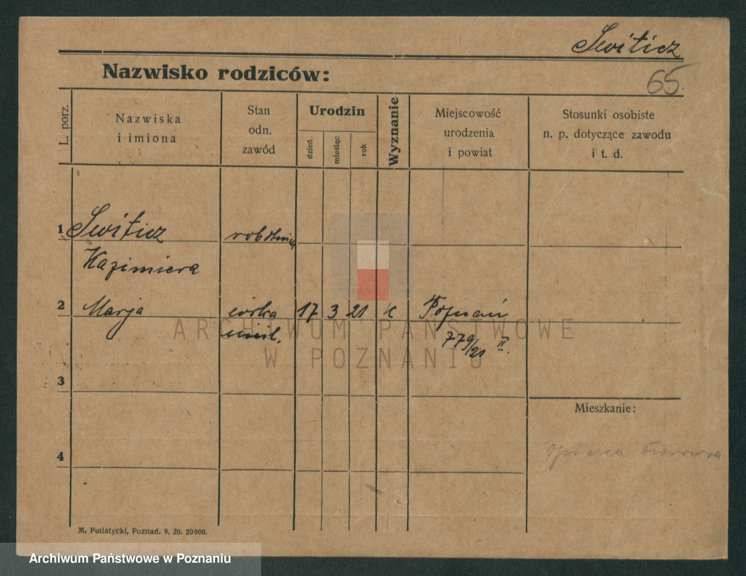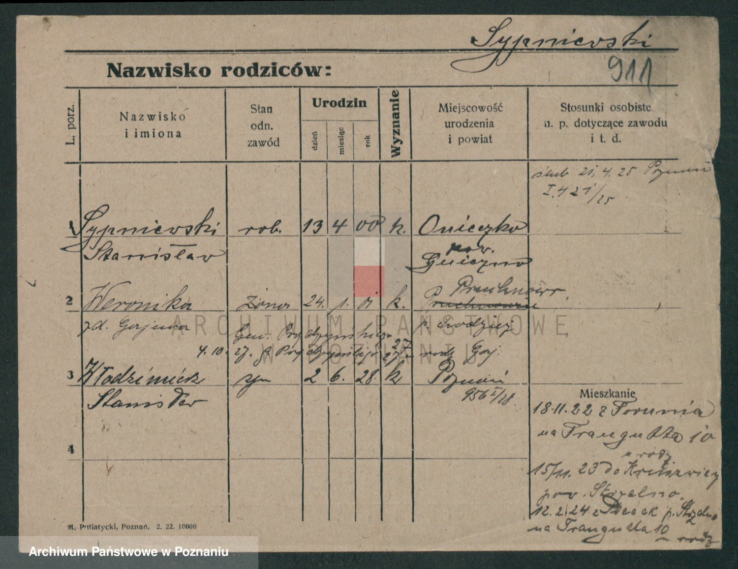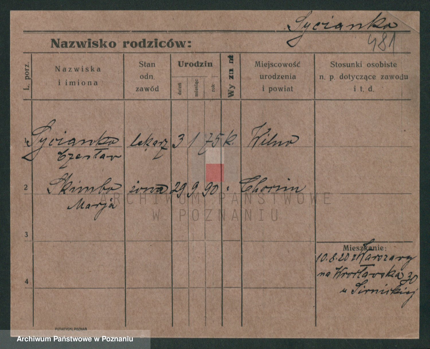 Podgląd karty osobowej dostępny jest po kliknięciu na nazwisko lub ikonkę karty. Można dokonywać powiększenia (ikony na górze) lub przechodzić między kolejnymi skanami (strzałki po bokach).