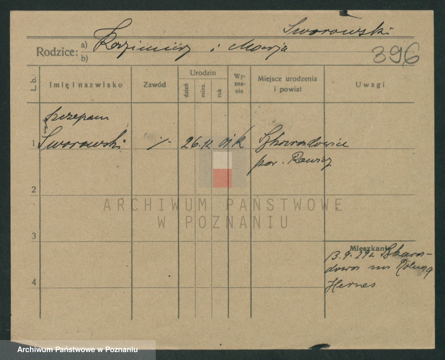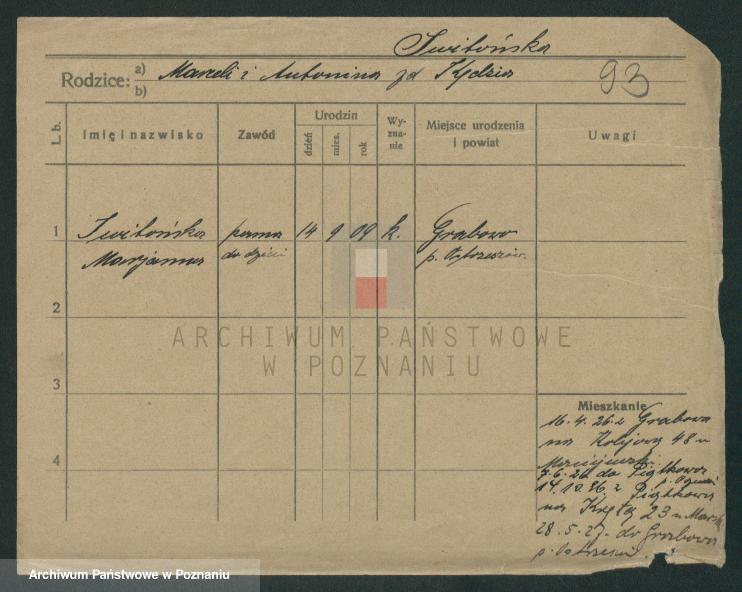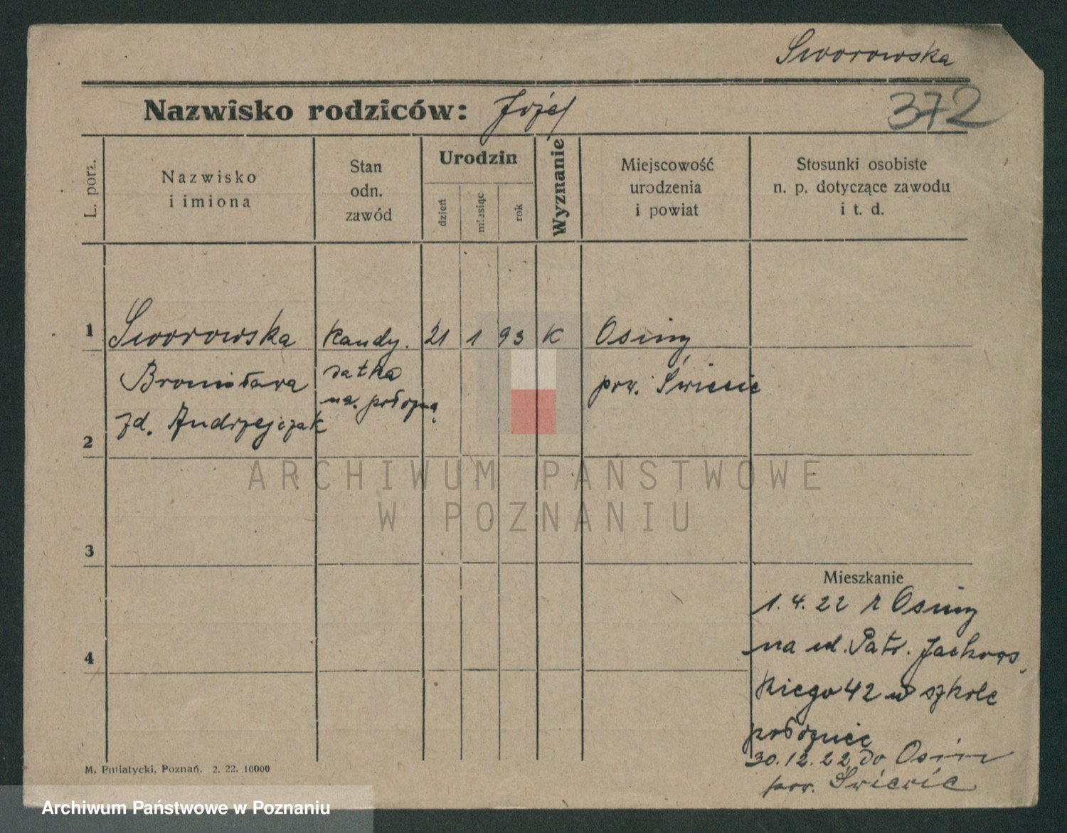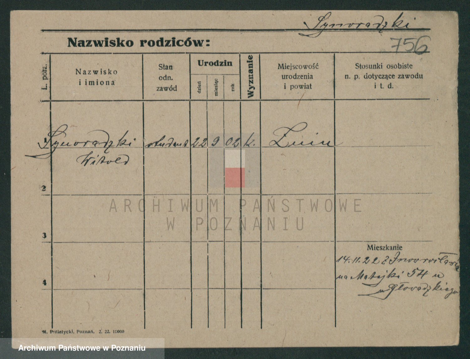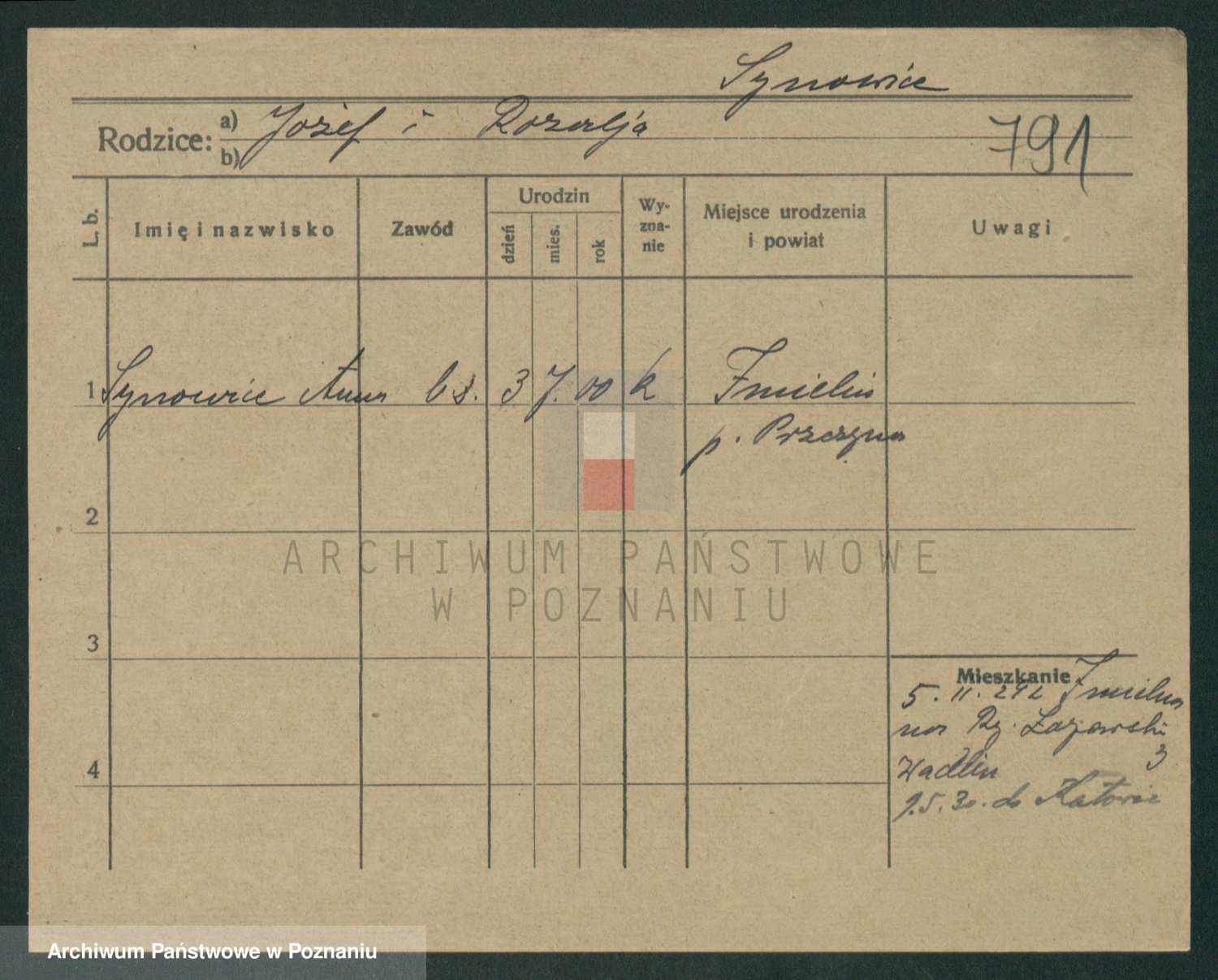 Podgląd karty osobowej dostępny jest po kliknięciu na nazwisko lub ikonkę karty. Można dokonywać powiększenia (ikony na górze) lub przechodzić między kolejnymi skanami (strzałki po bokach).