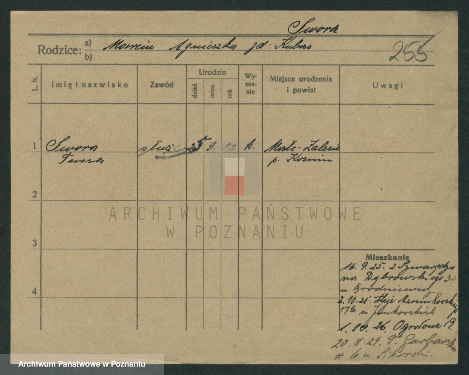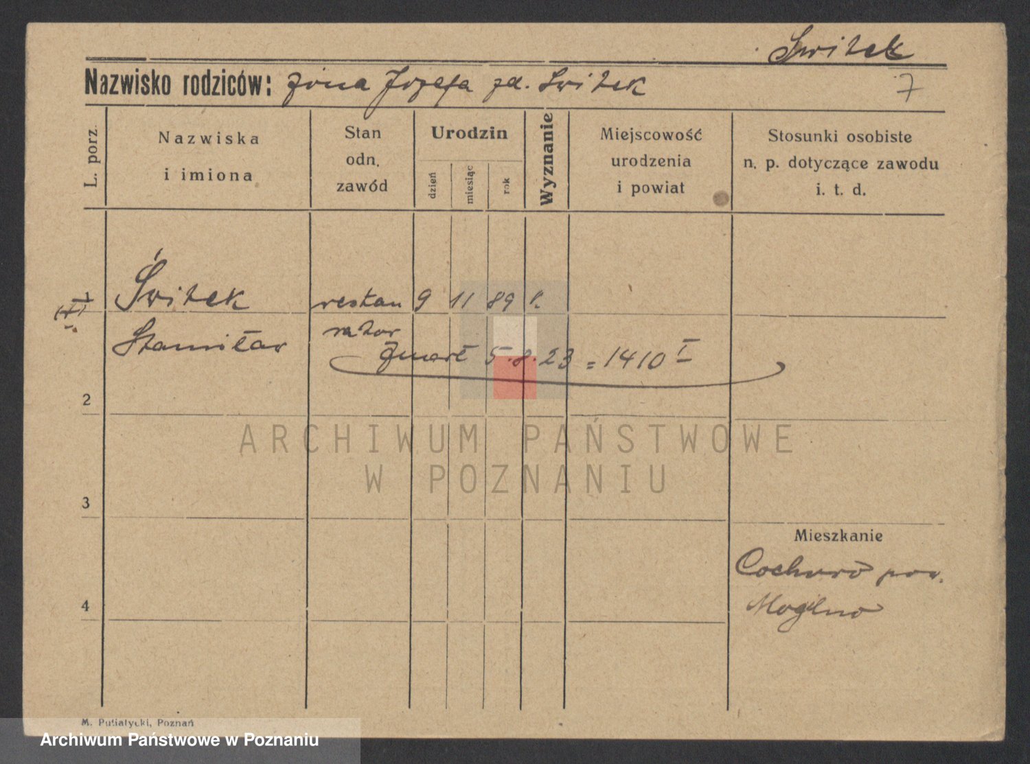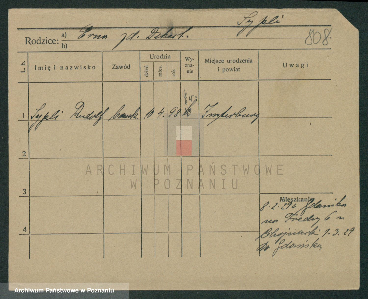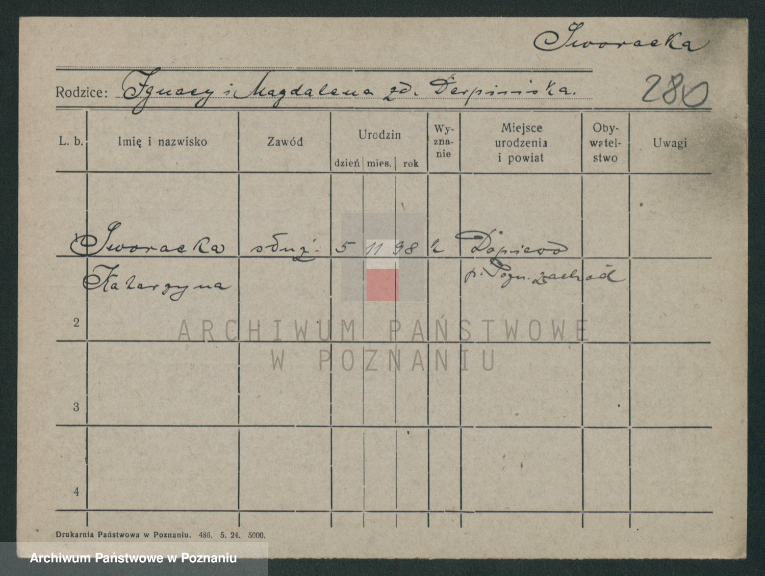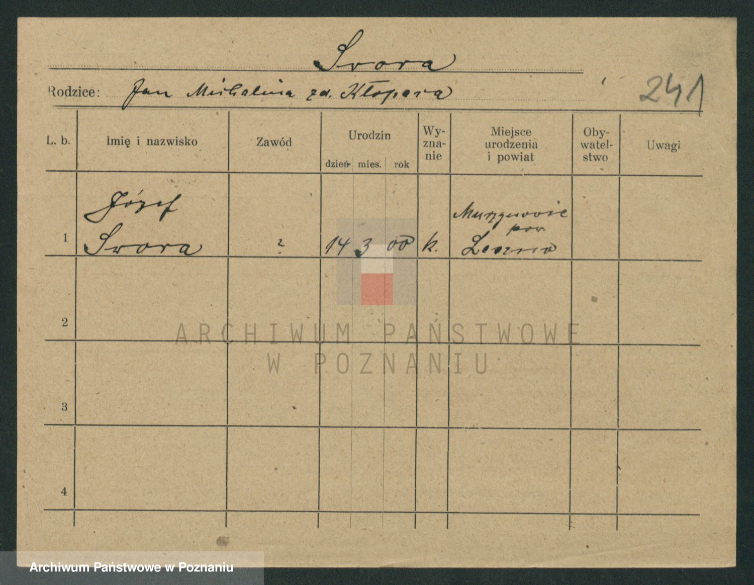 Podgląd karty osobowej dostępny jest po kliknięciu na nazwisko lub ikonkę karty. Można dokonywać powiększenia (ikony na górze) lub przechodzić między kolejnymi skanami (strzałki po bokach).