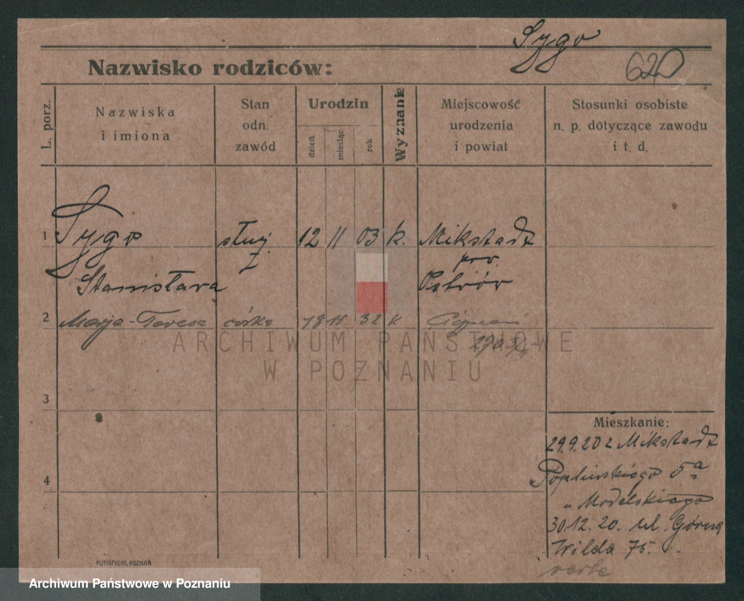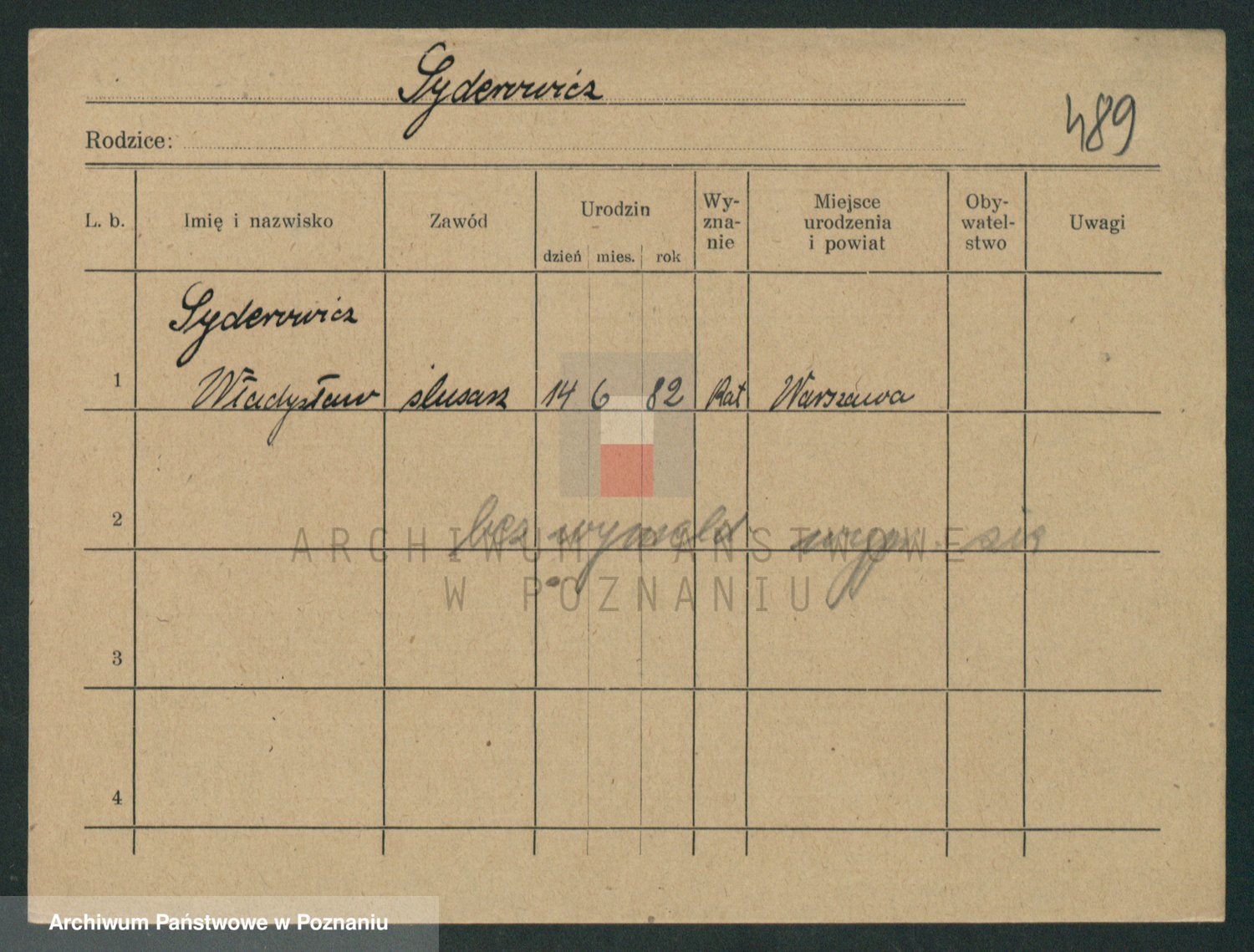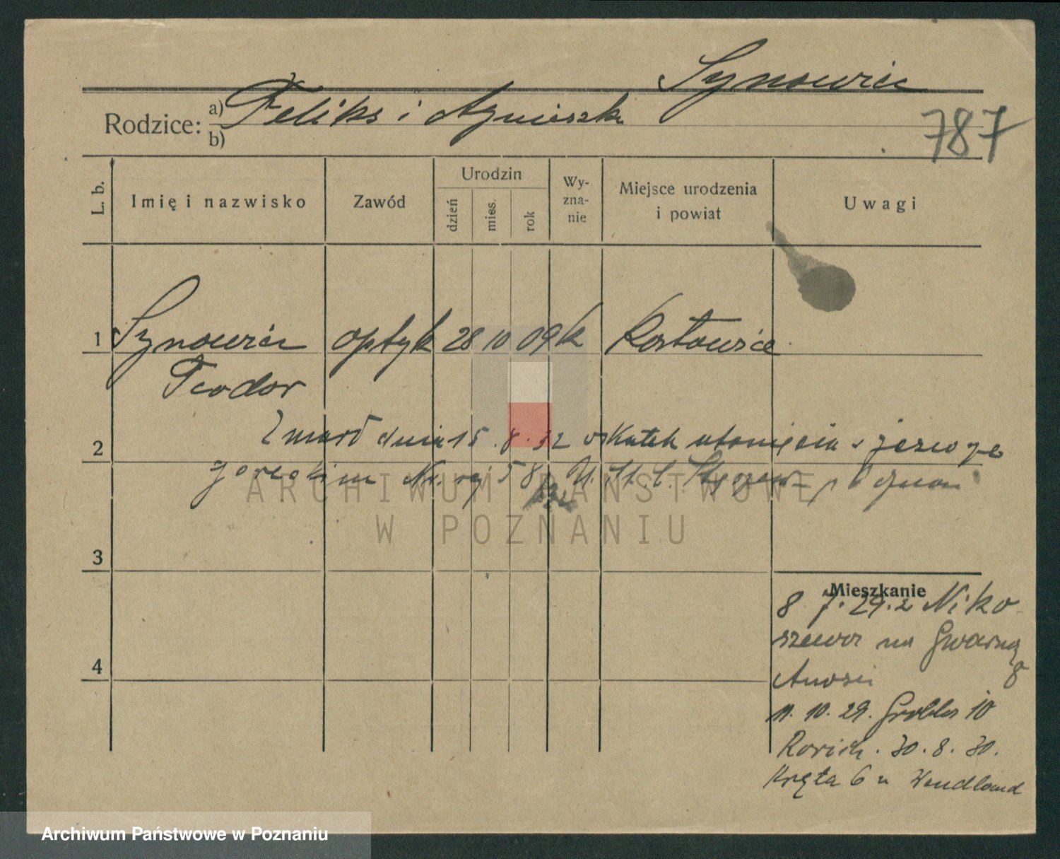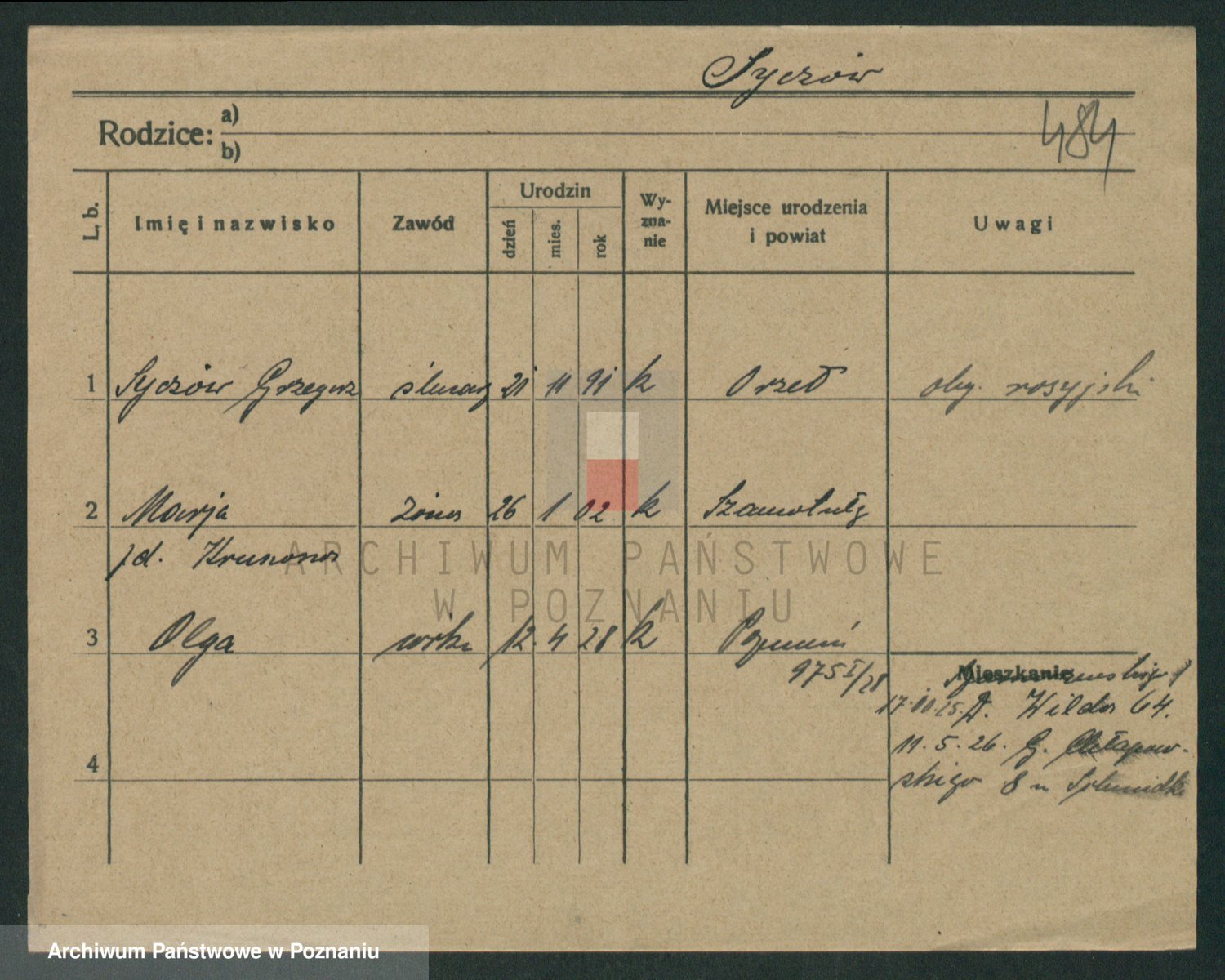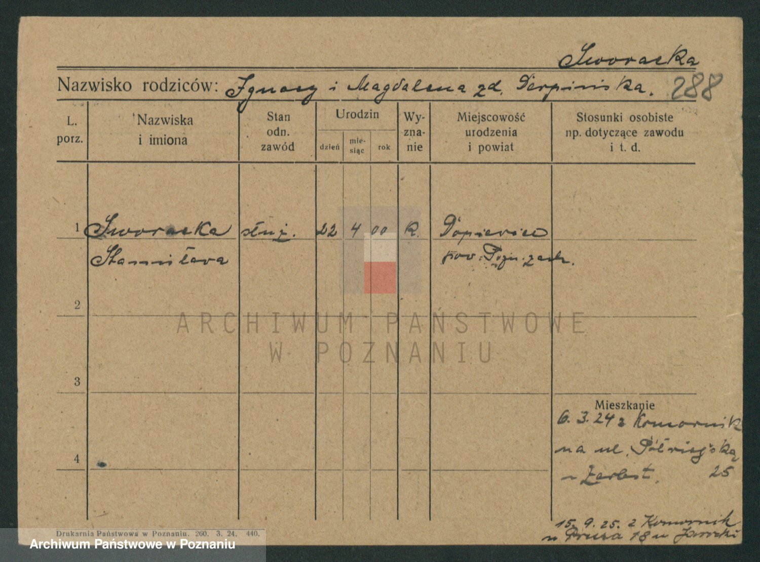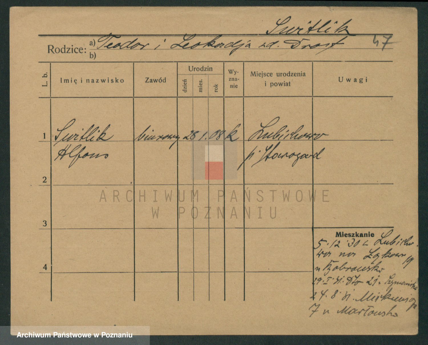 Podgląd karty osobowej dostępny jest po kliknięciu na nazwisko lub ikonkę karty. Można dokonywać powiększenia (ikony na górze) lub przechodzić między kolejnymi skanami (strzałki po bokach).