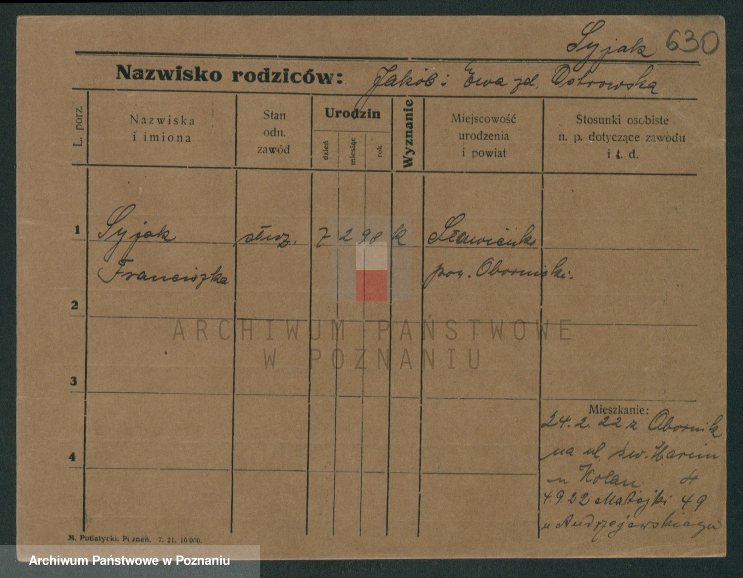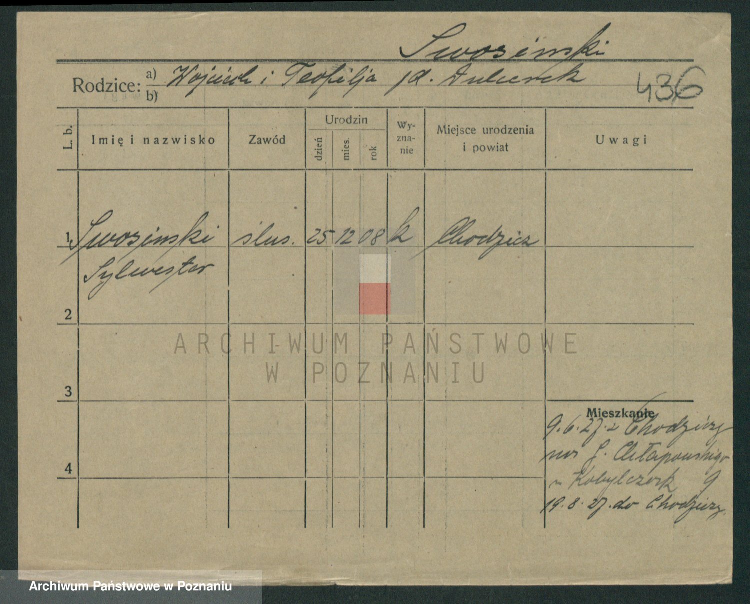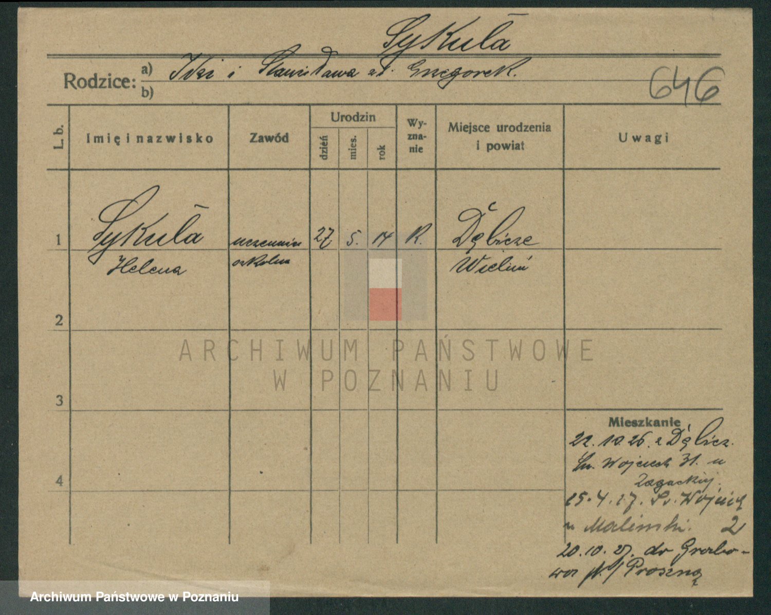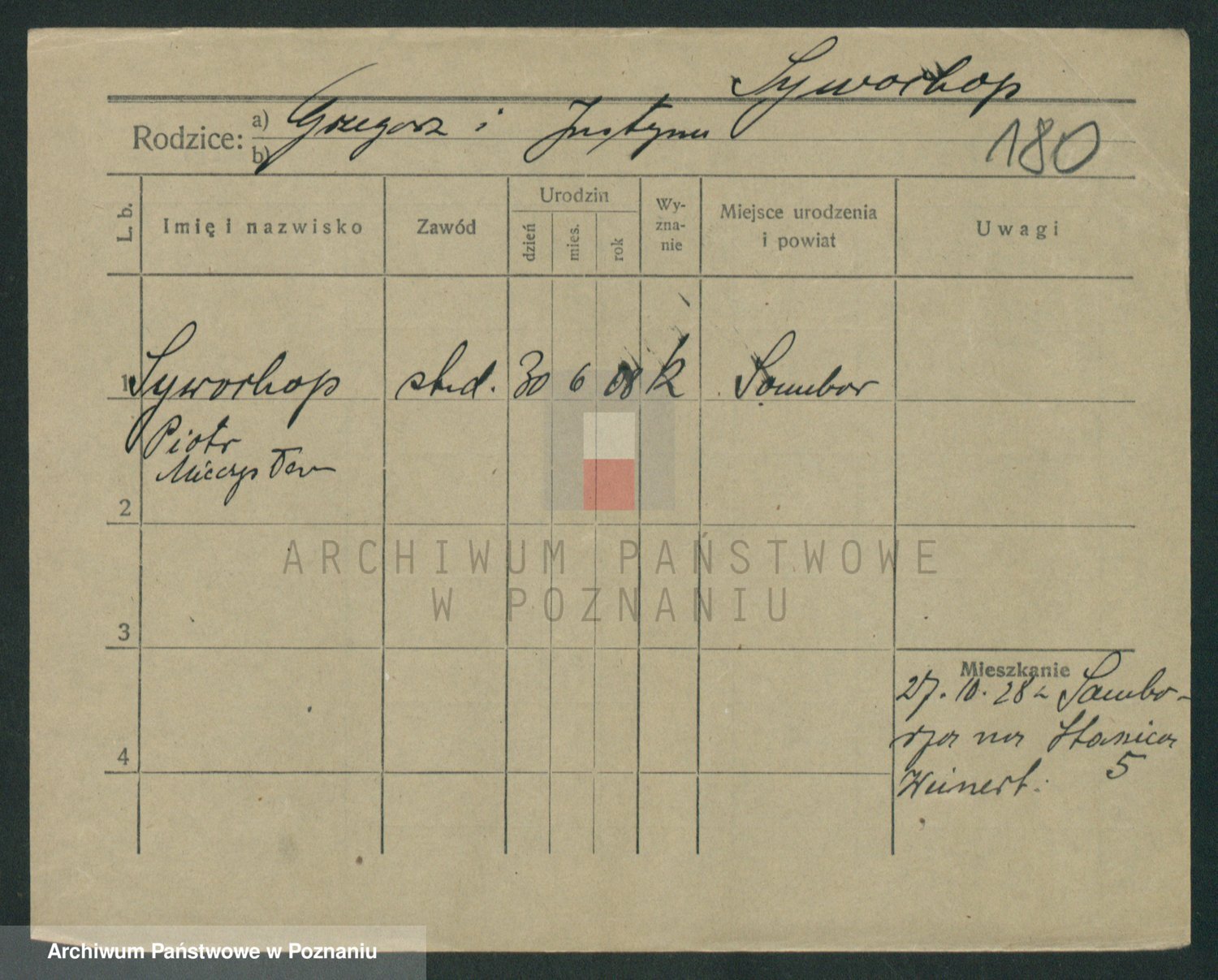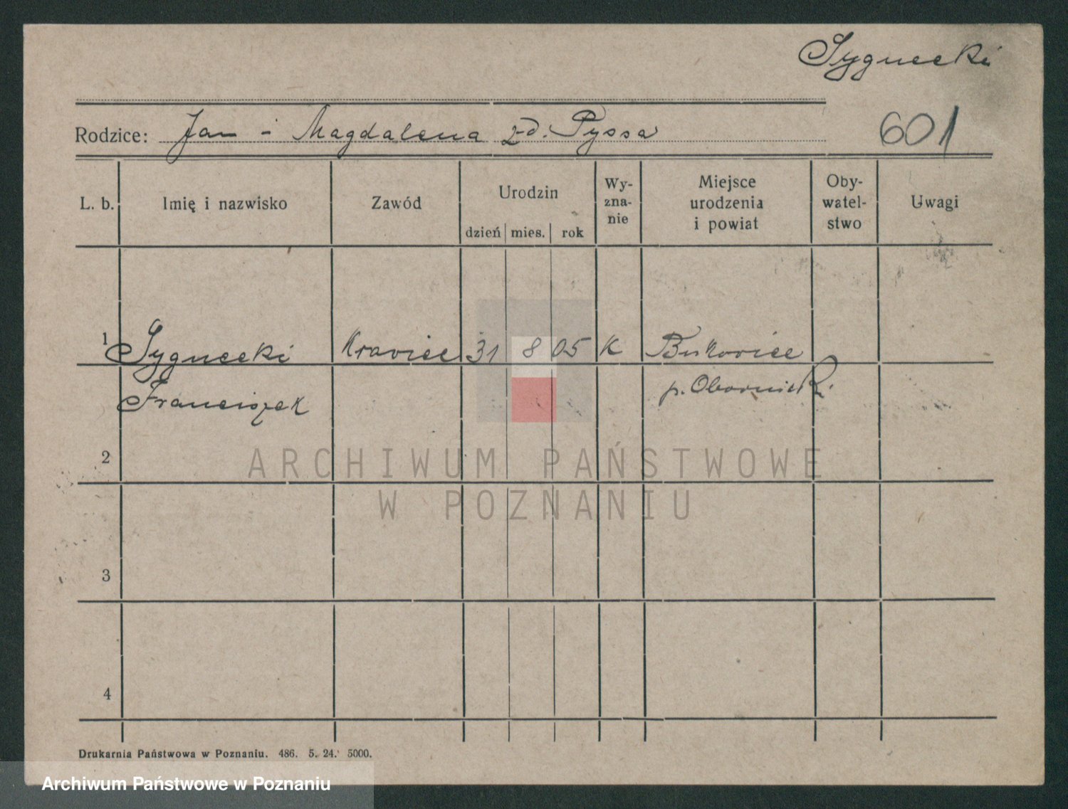 Podgląd karty osobowej dostępny jest po kliknięciu na nazwisko lub ikonkę karty. Można dokonywać powiększenia (ikony na górze) lub przechodzić między kolejnymi skanami (strzałki po bokach).