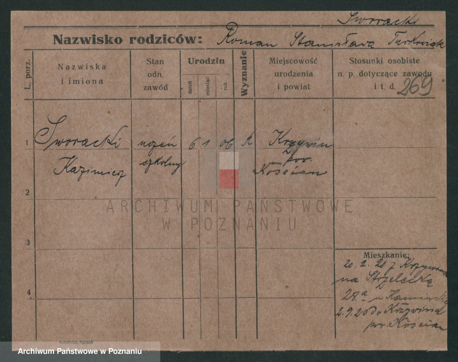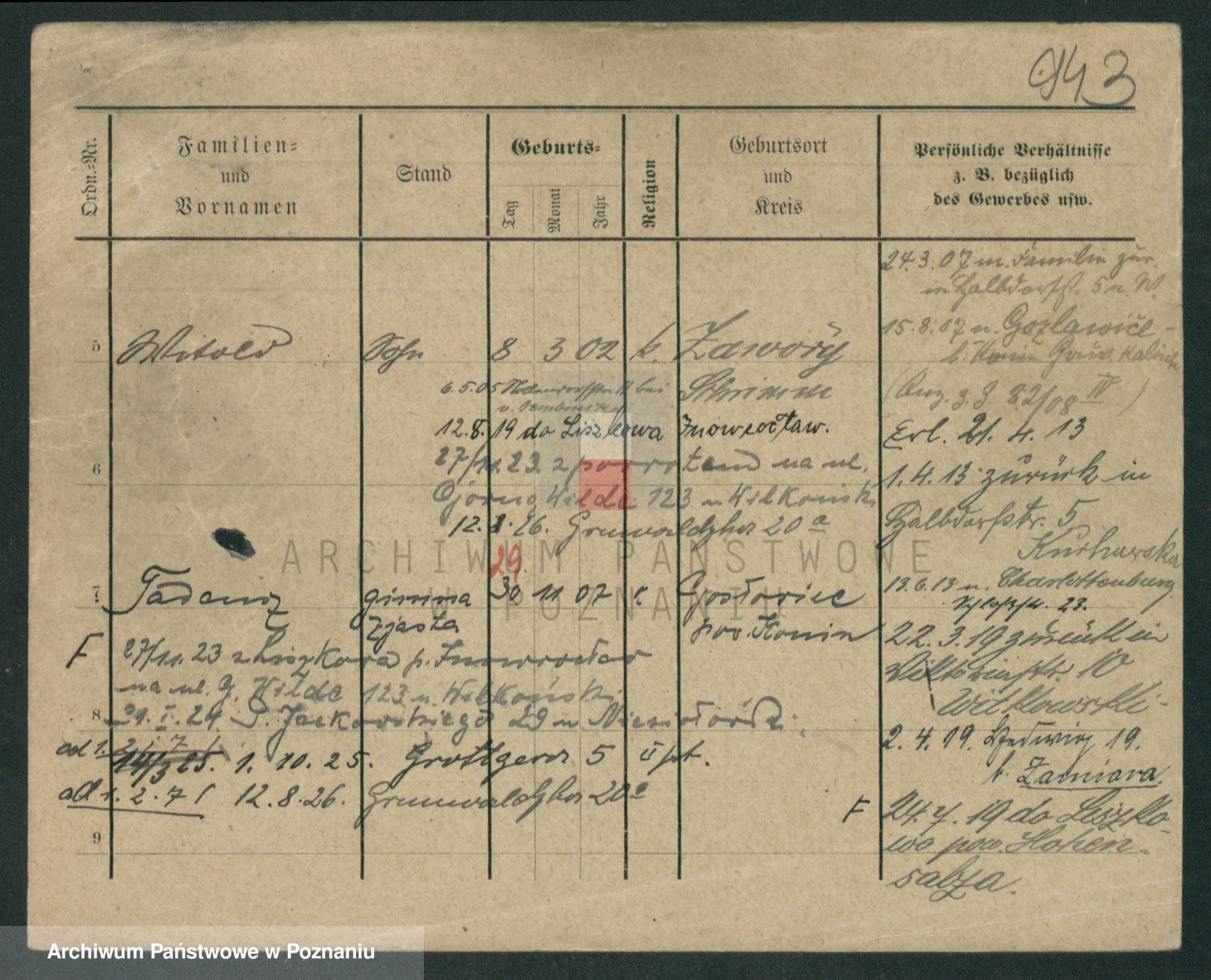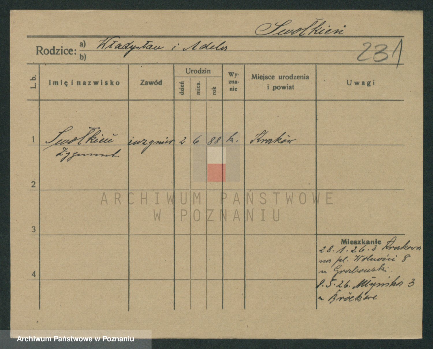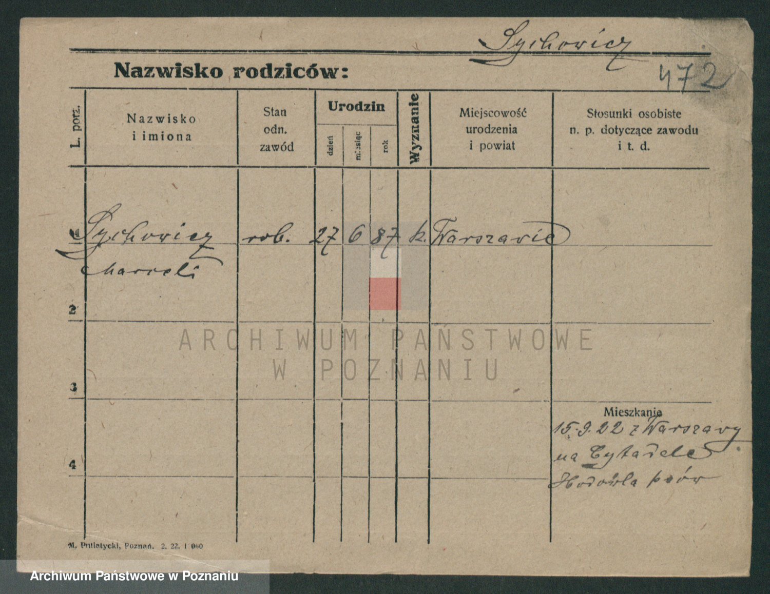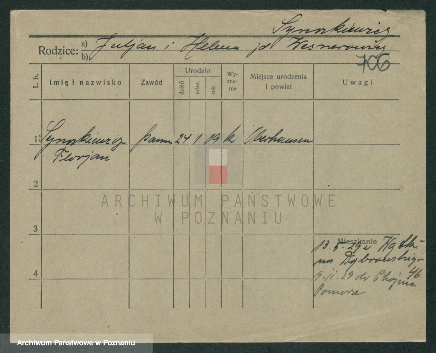 Podgląd karty osobowej dostępny jest po kliknięciu na nazwisko lub ikonkę karty. Można dokonywać powiększenia (ikony na górze) lub przechodzić między kolejnymi skanami (strzałki po bokach).