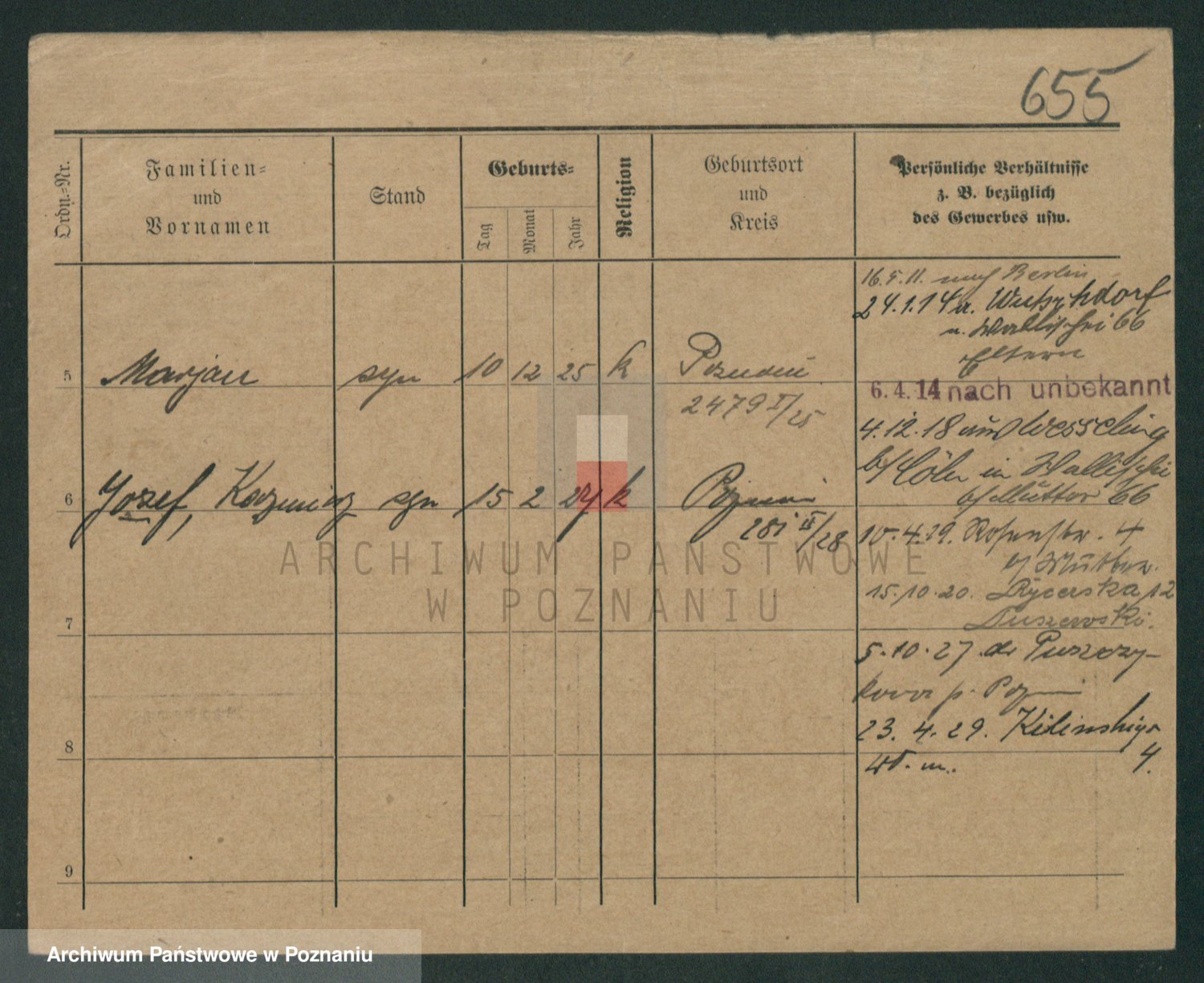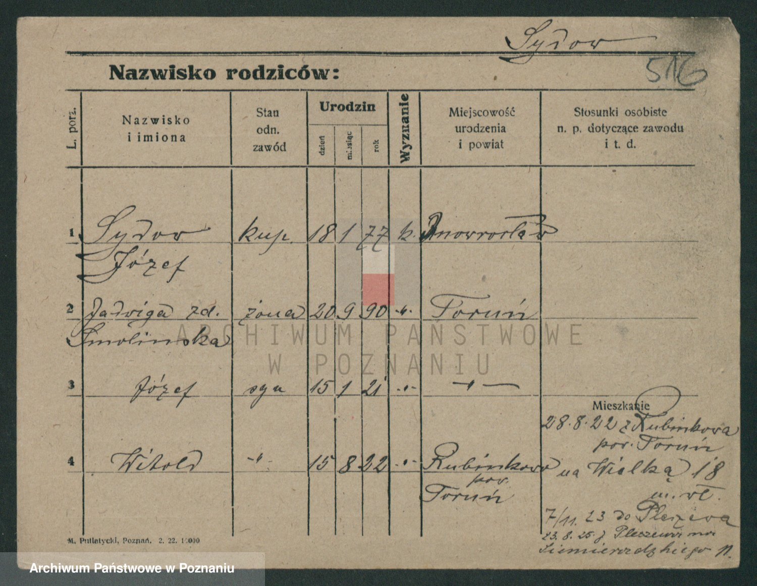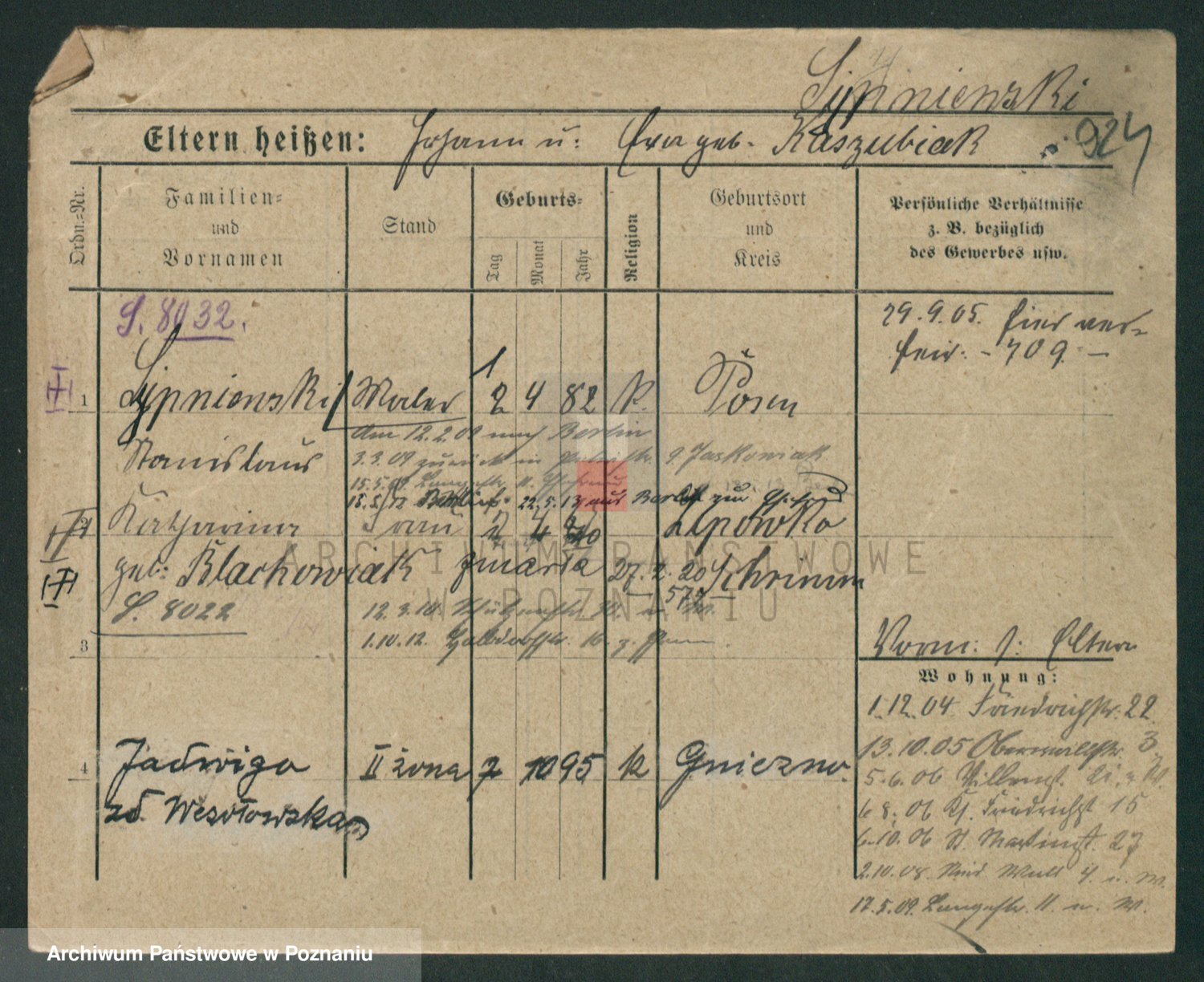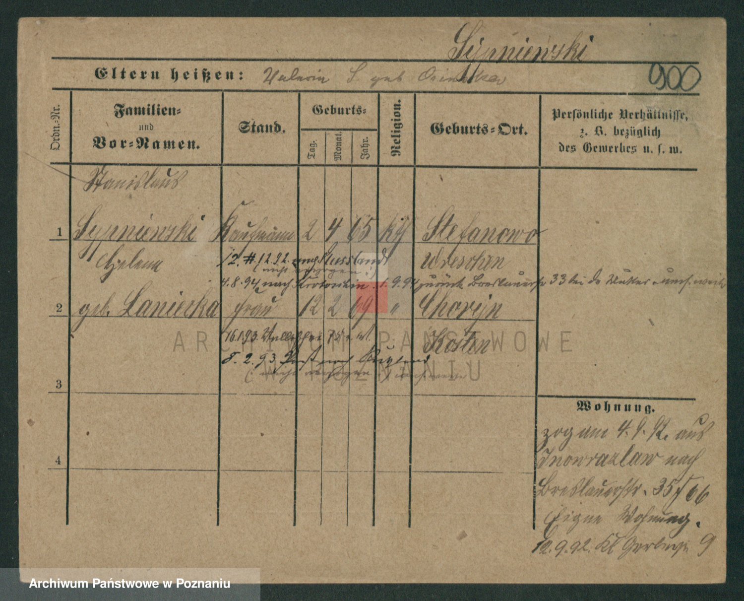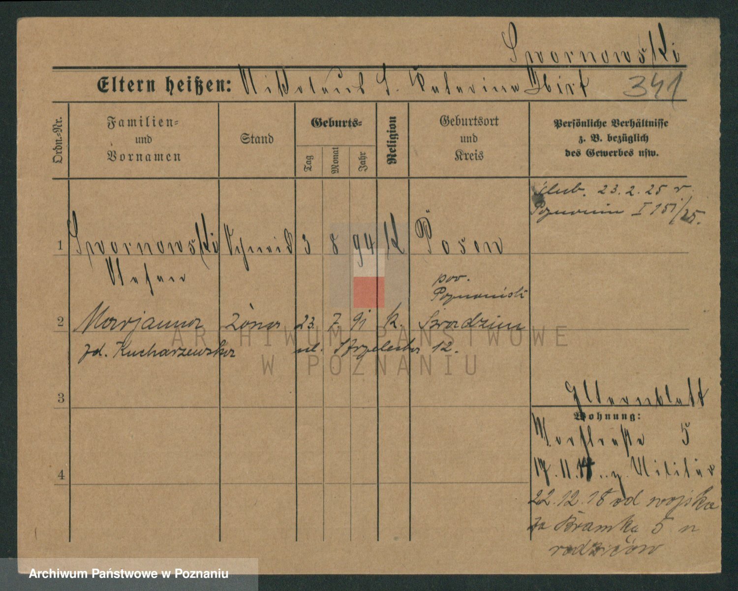 Podgląd karty osobowej dostępny jest po kliknięciu na nazwisko lub ikonkę karty. Można dokonywać powiększenia (ikony na górze) lub przechodzić między kolejnymi skanami (strzałki po bokach).