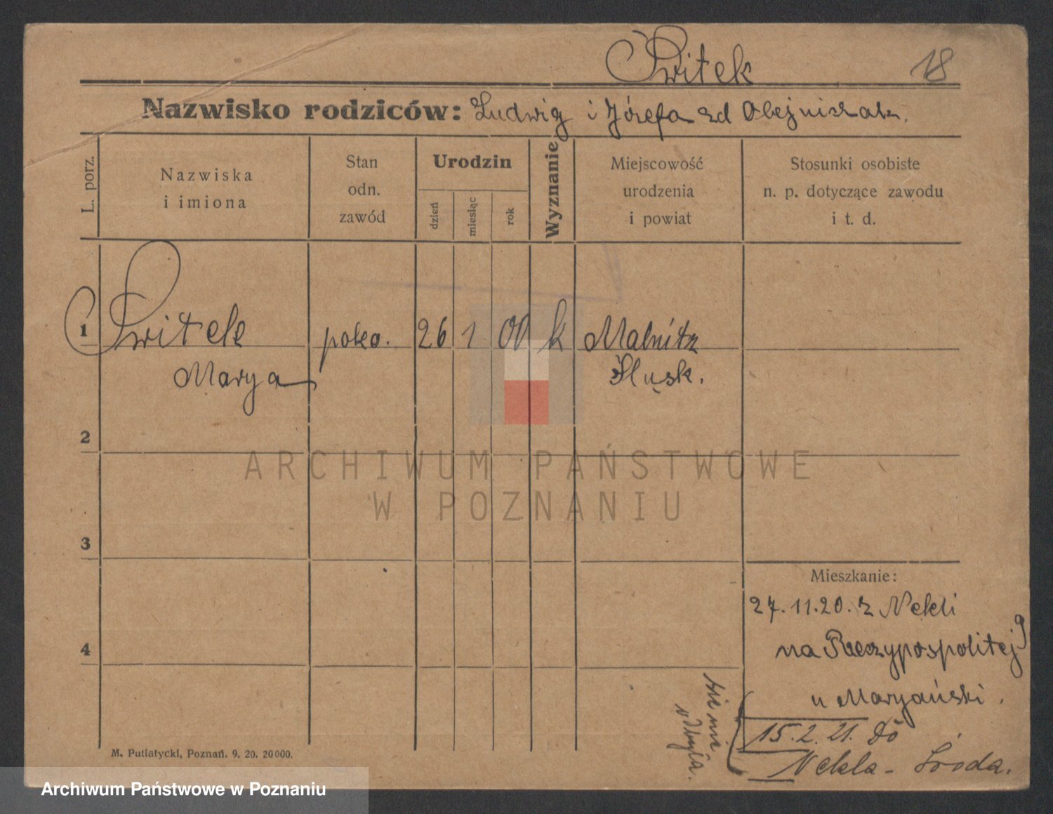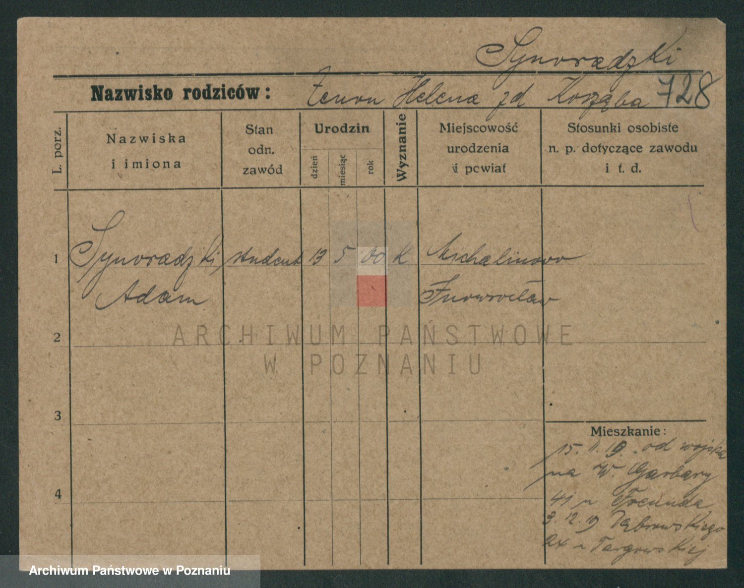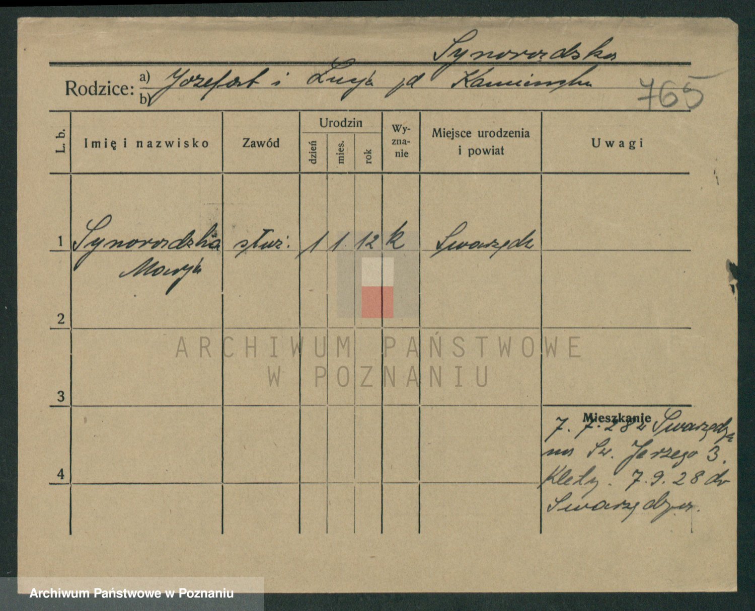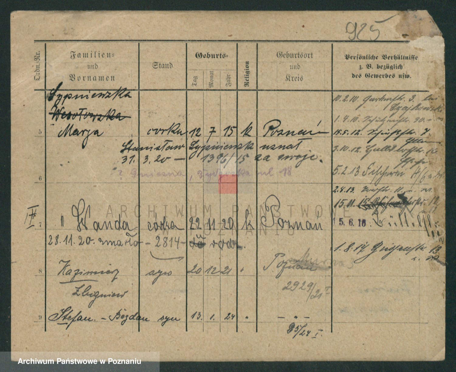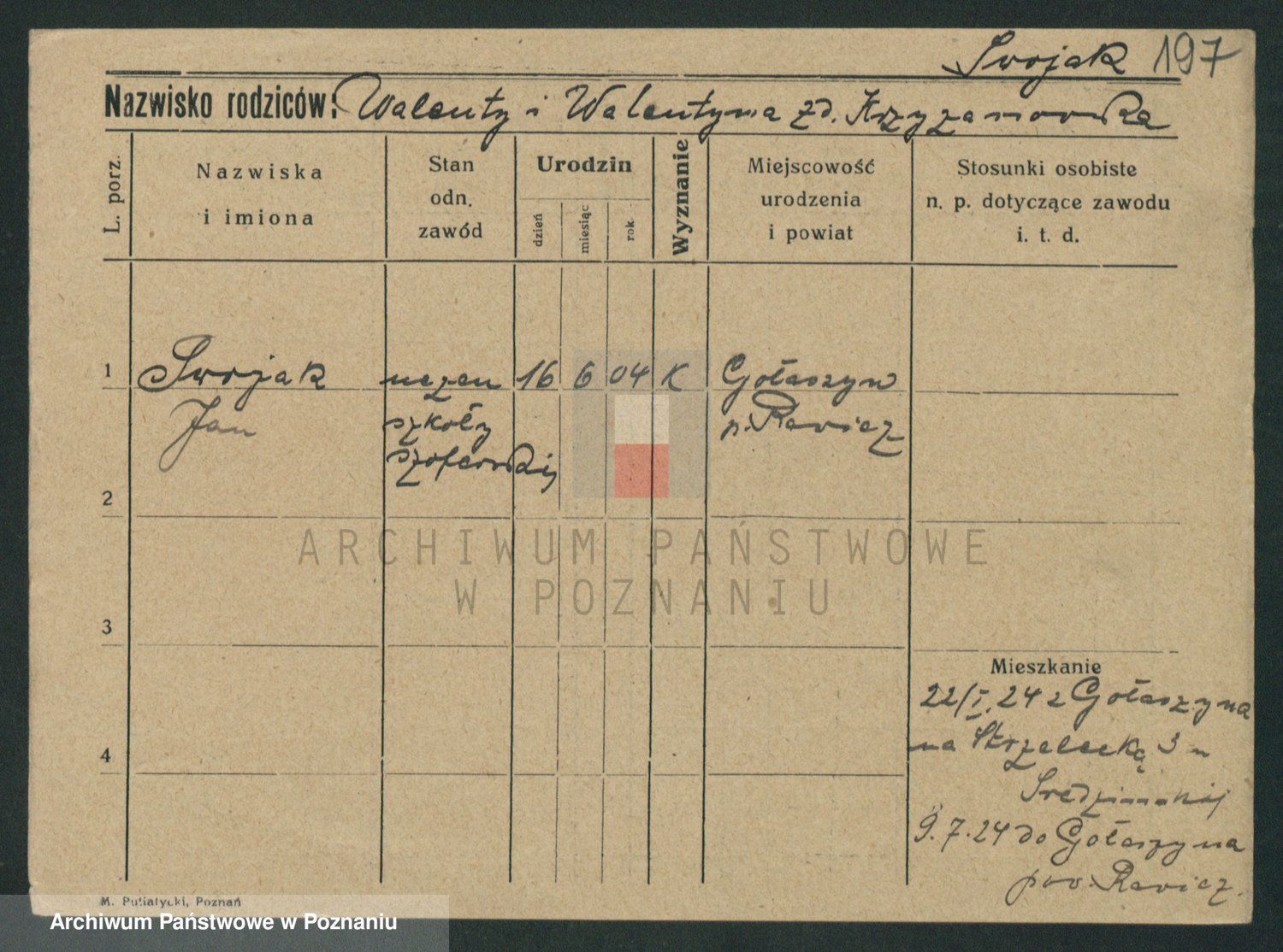Podgląd karty osobowej dostępny jest po kliknięciu na nazwisko lub ikonkę karty. Można dokonywać powiększenia (ikony na górze) lub przechodzić między kolejnymi skanami (strzałki po bokach).