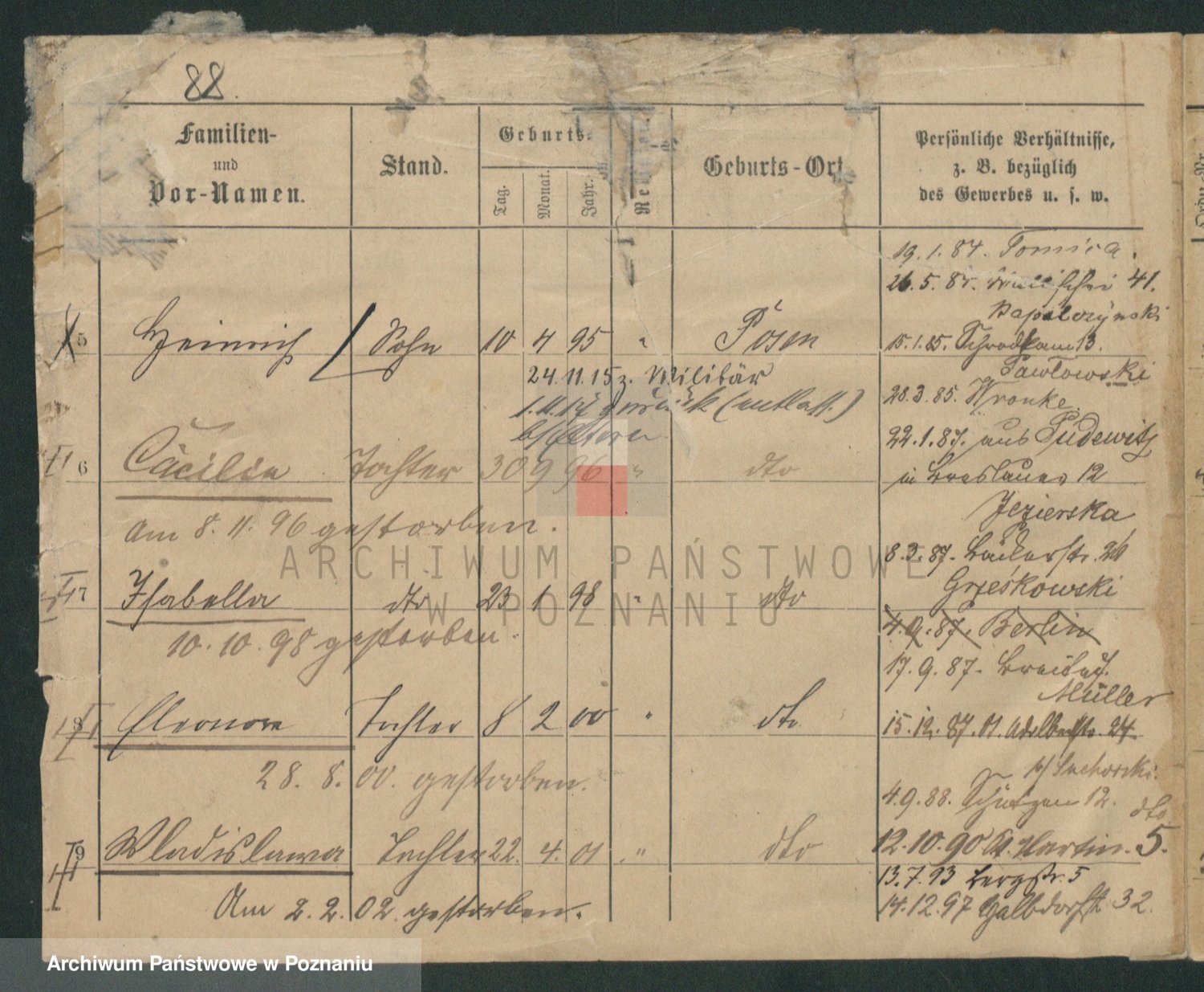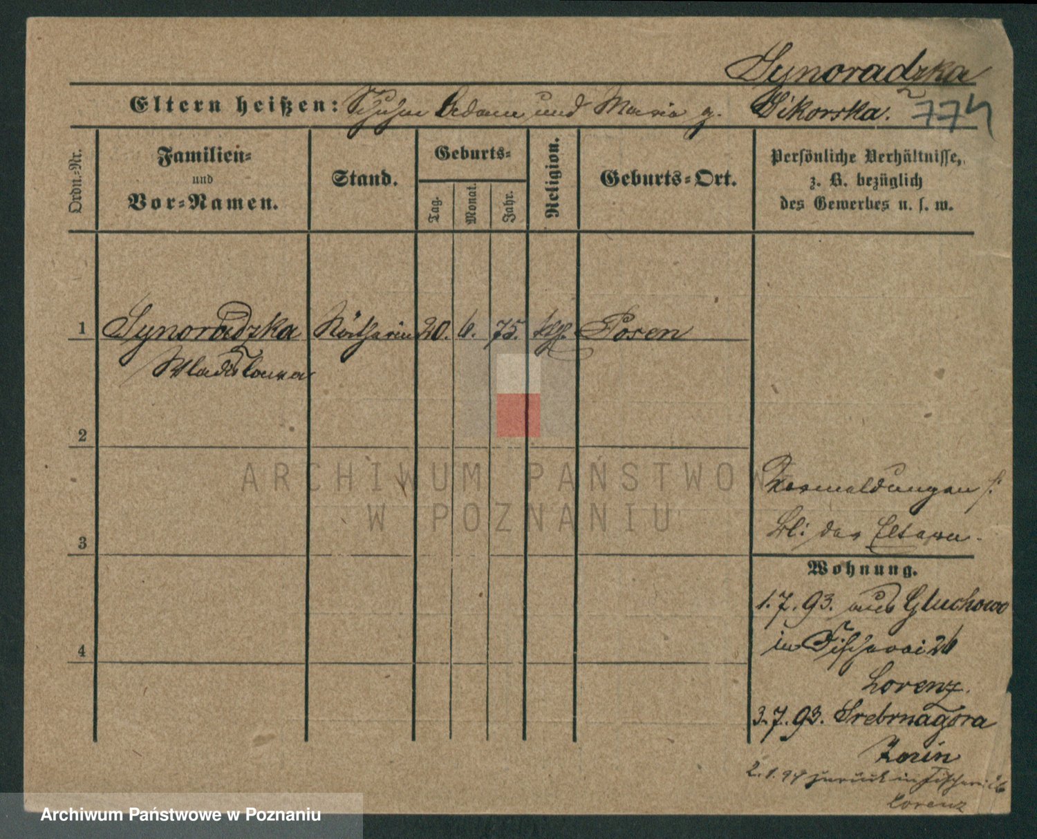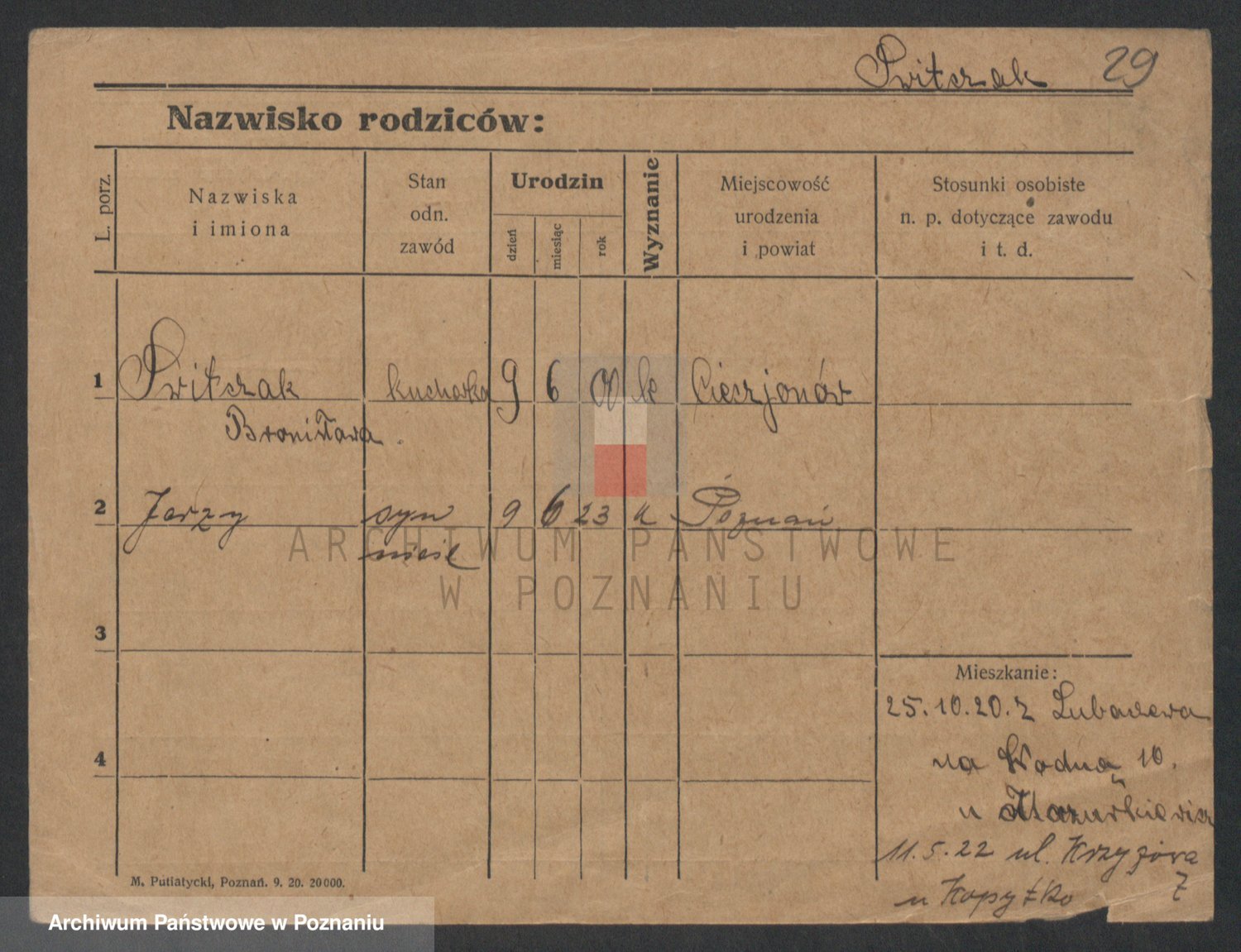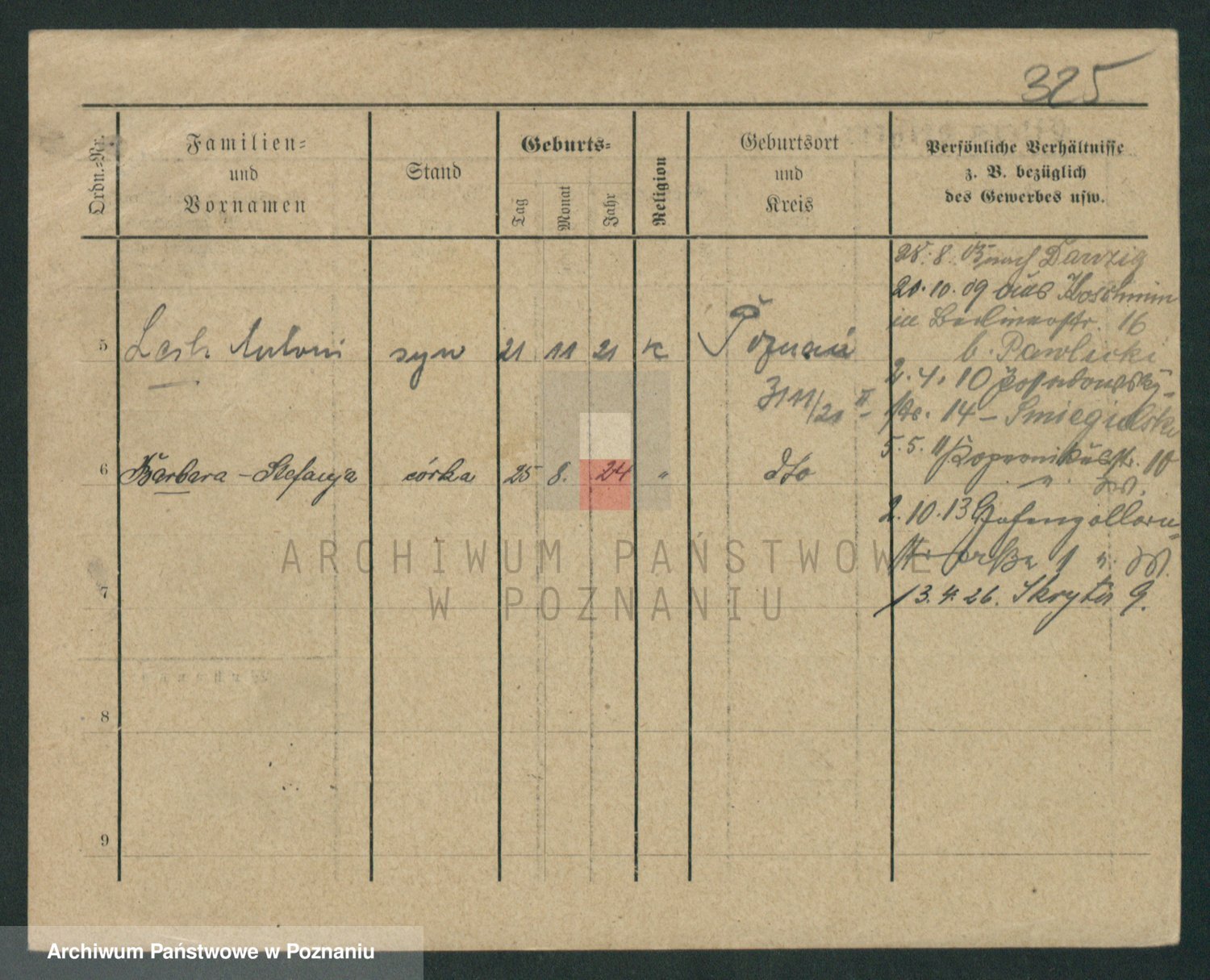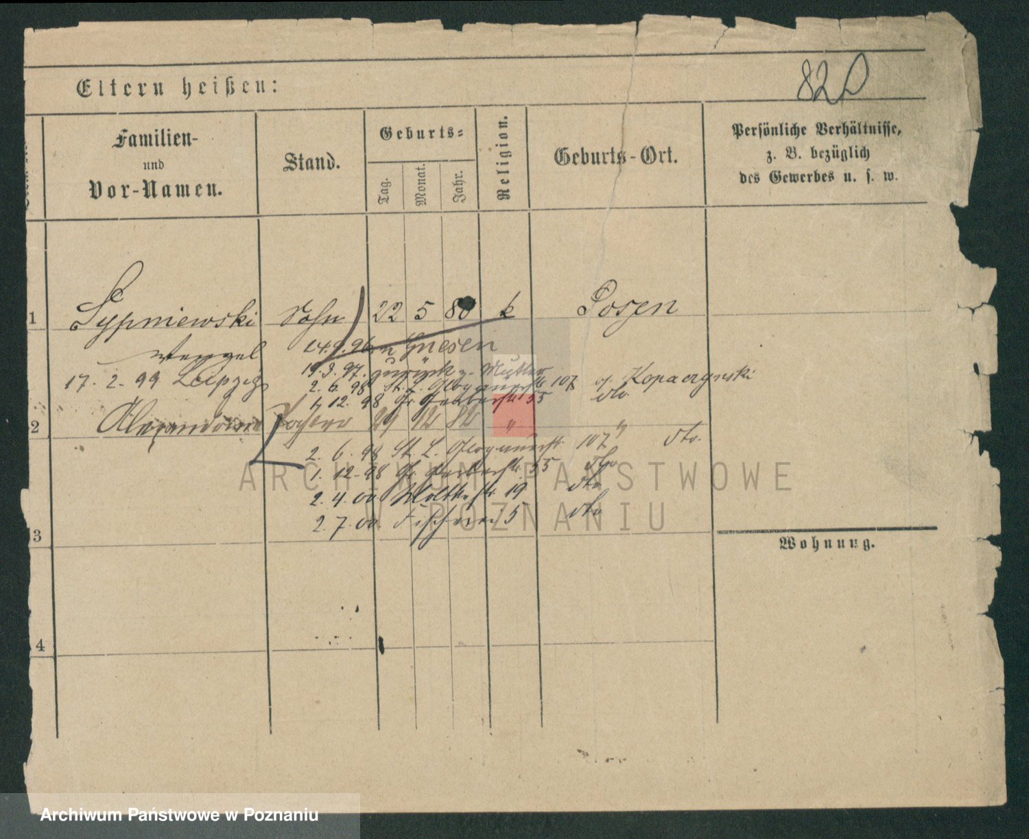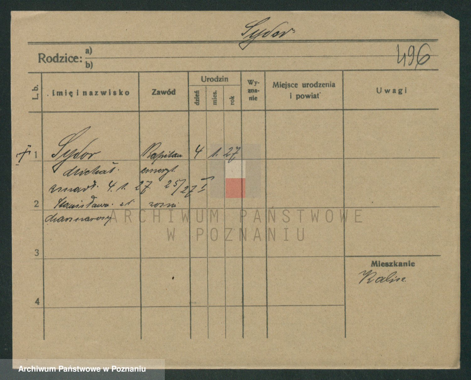 Podgląd karty osobowej dostępny jest po kliknięciu na nazwisko lub ikonkę karty. Można dokonywać powiększenia (ikony na górze) lub przechodzić między kolejnymi skanami (strzałki po bokach).