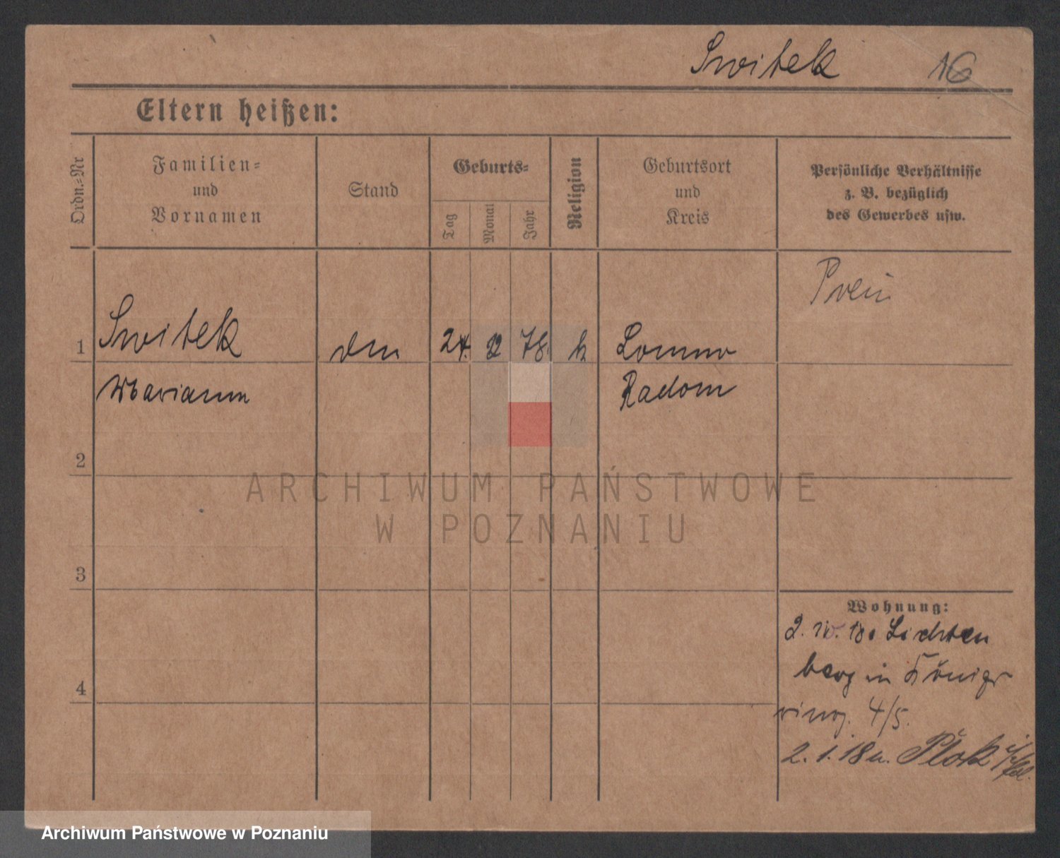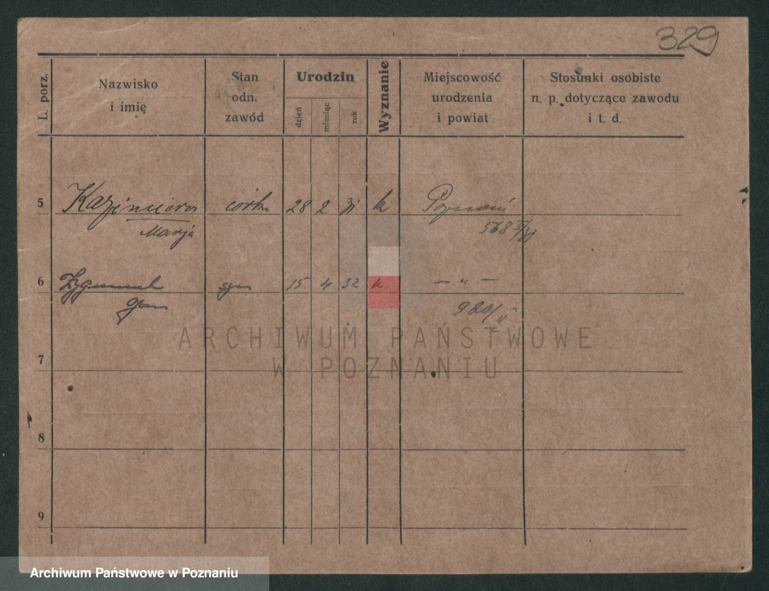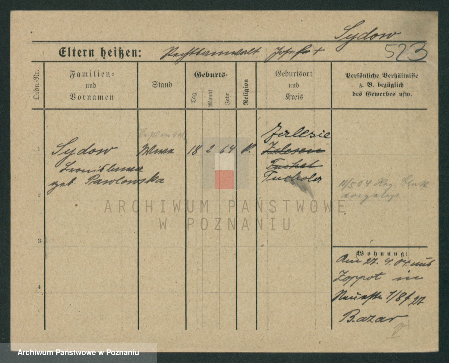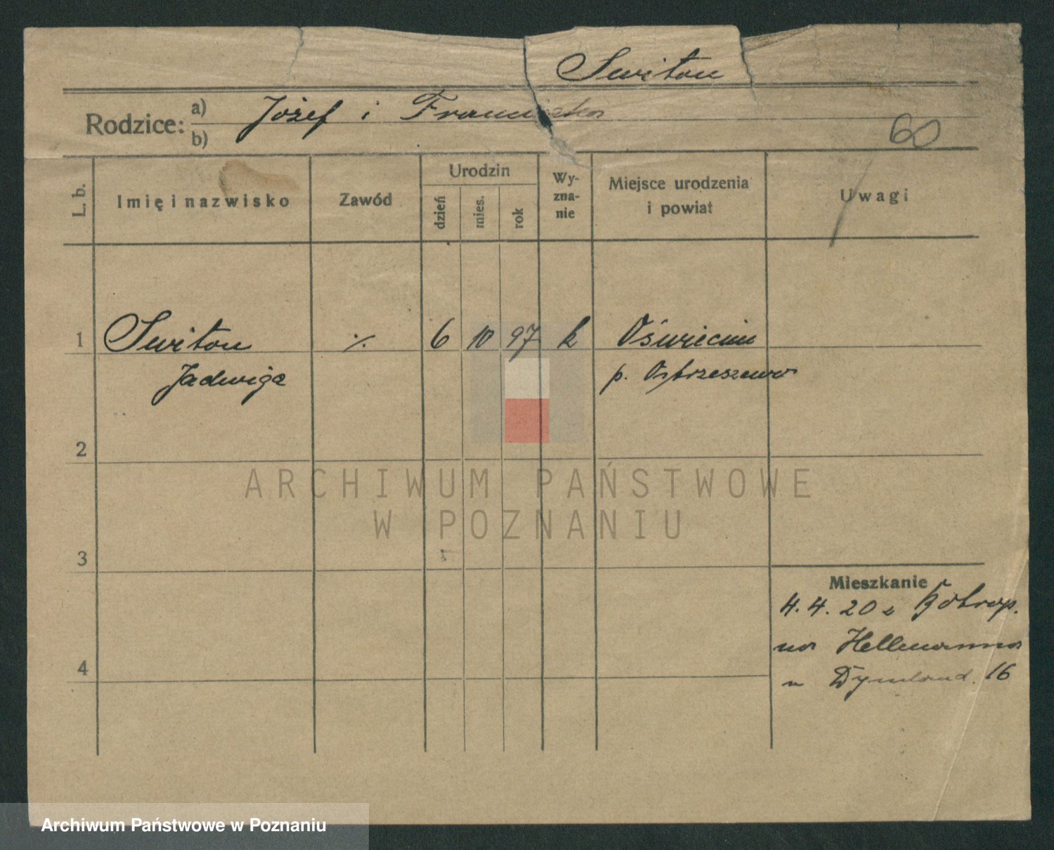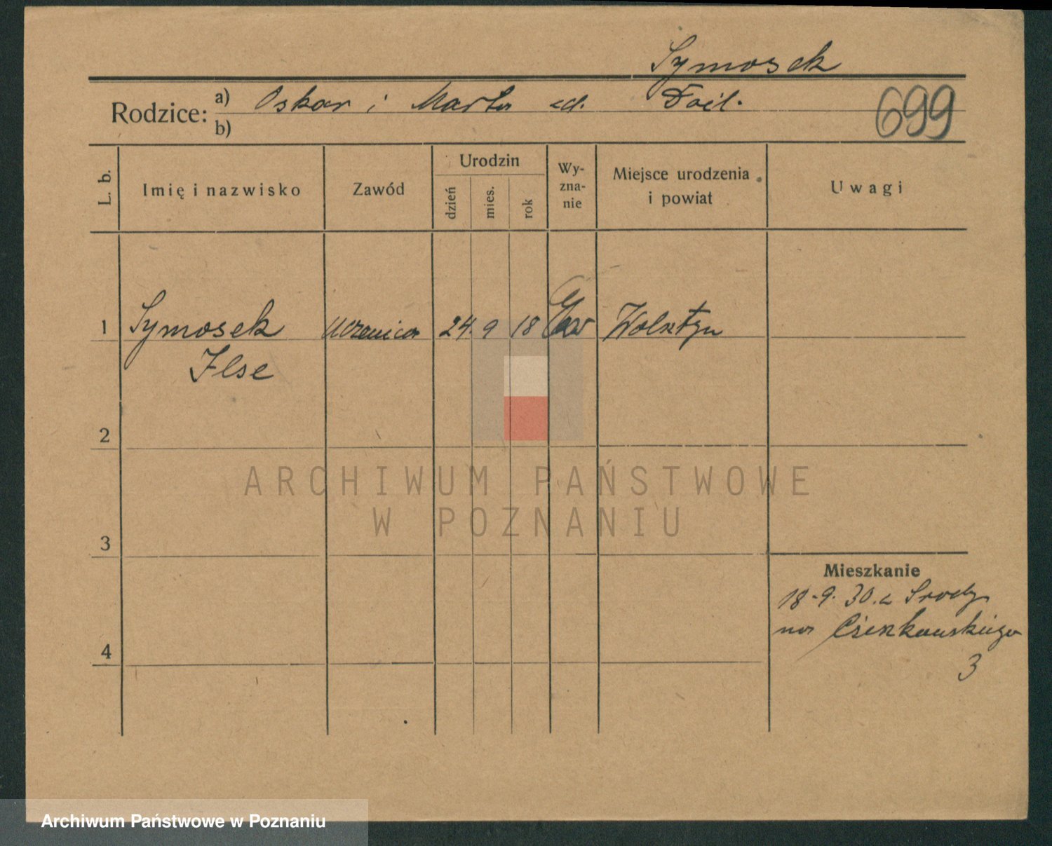 Podgląd karty osobowej dostępny jest po kliknięciu na nazwisko lub ikonkę karty. Można dokonywać powiększenia (ikony na górze) lub przechodzić między kolejnymi skanami (strzałki po bokach).