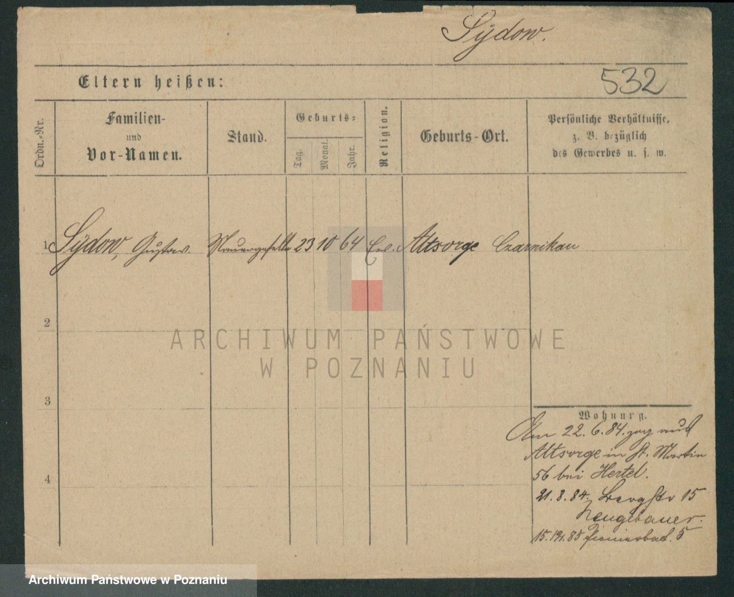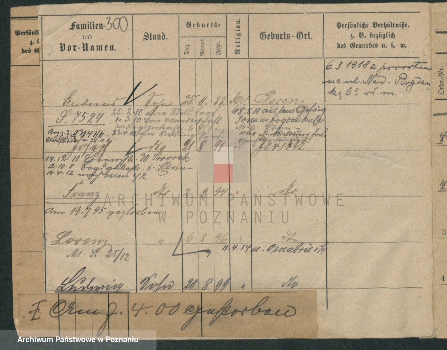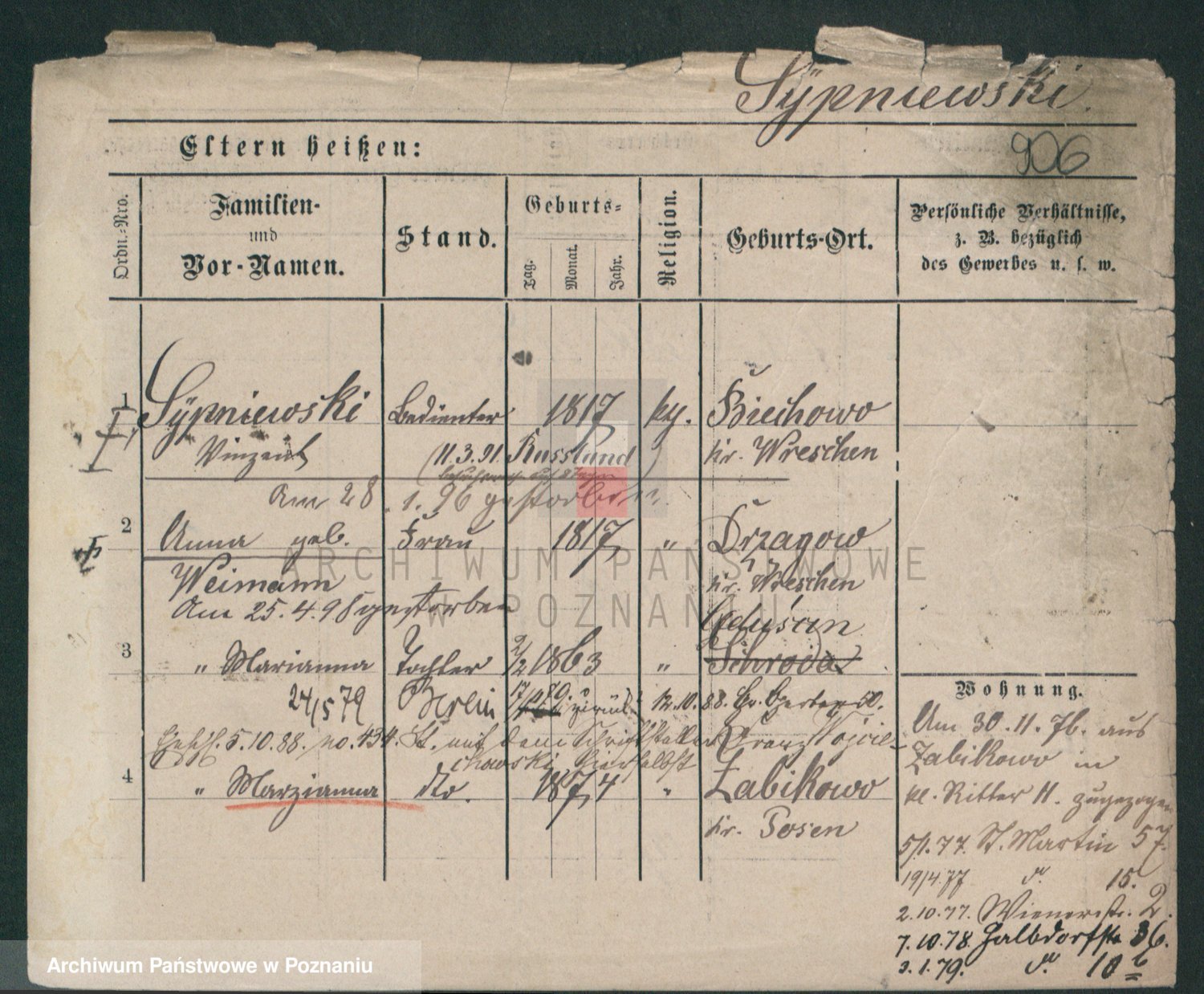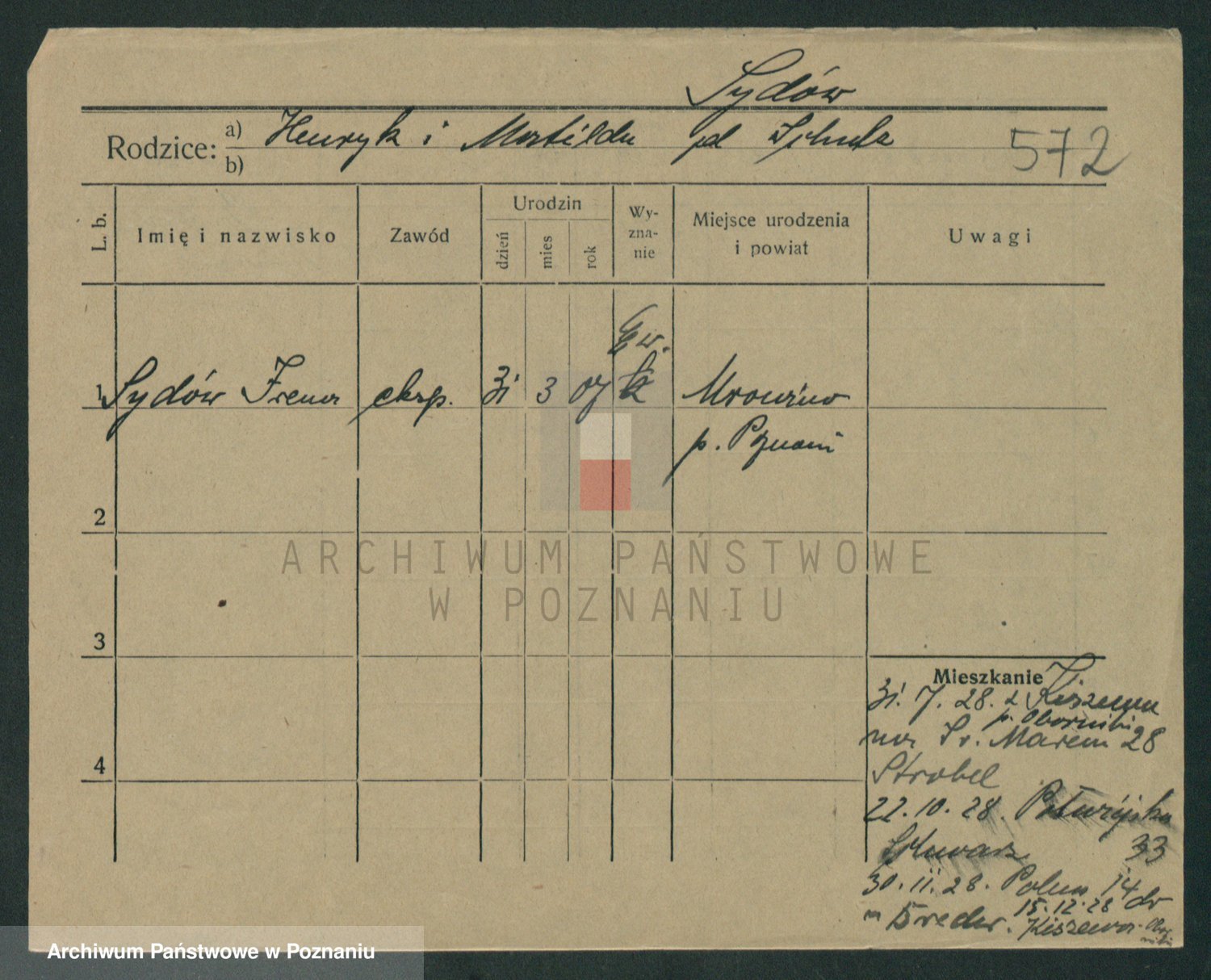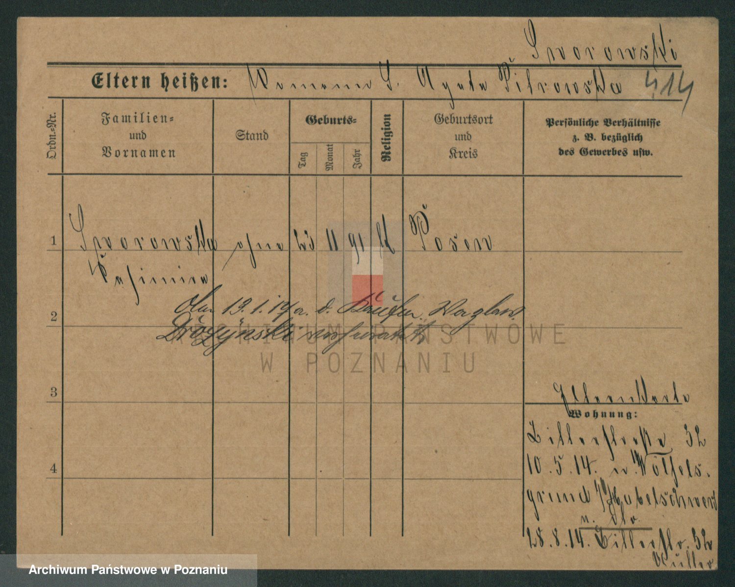 Podgląd karty osobowej dostępny jest po kliknięciu na nazwisko lub ikonkę karty. Można dokonywać powiększenia (ikony na górze) lub przechodzić między kolejnymi skanami (strzałki po bokach).