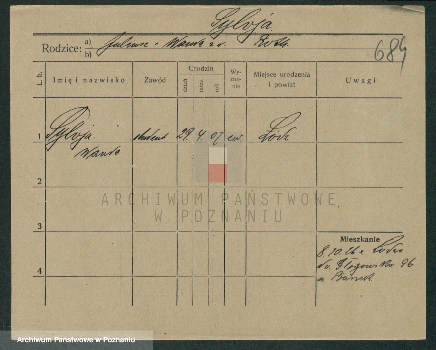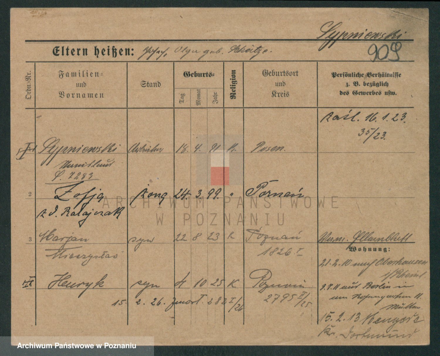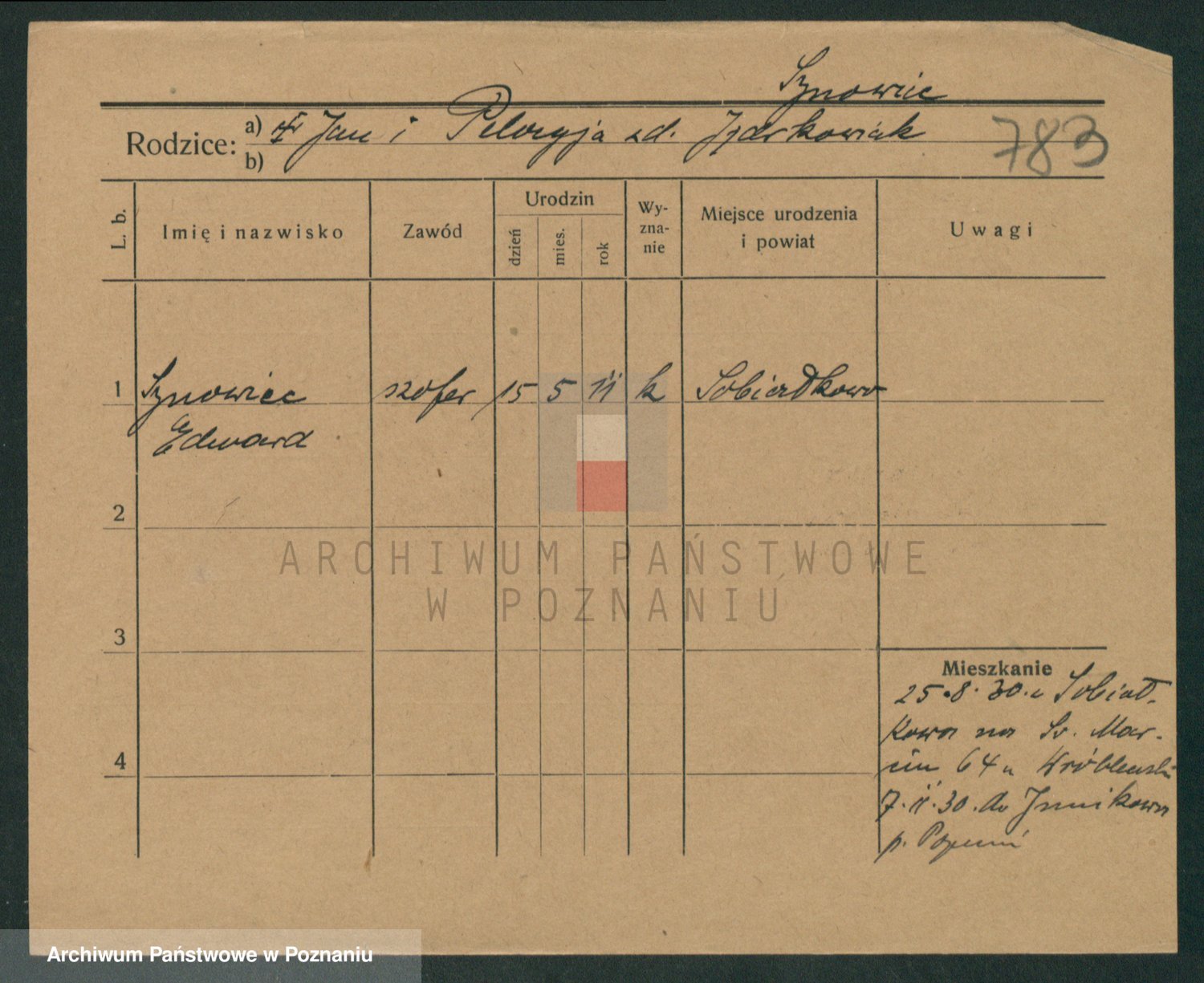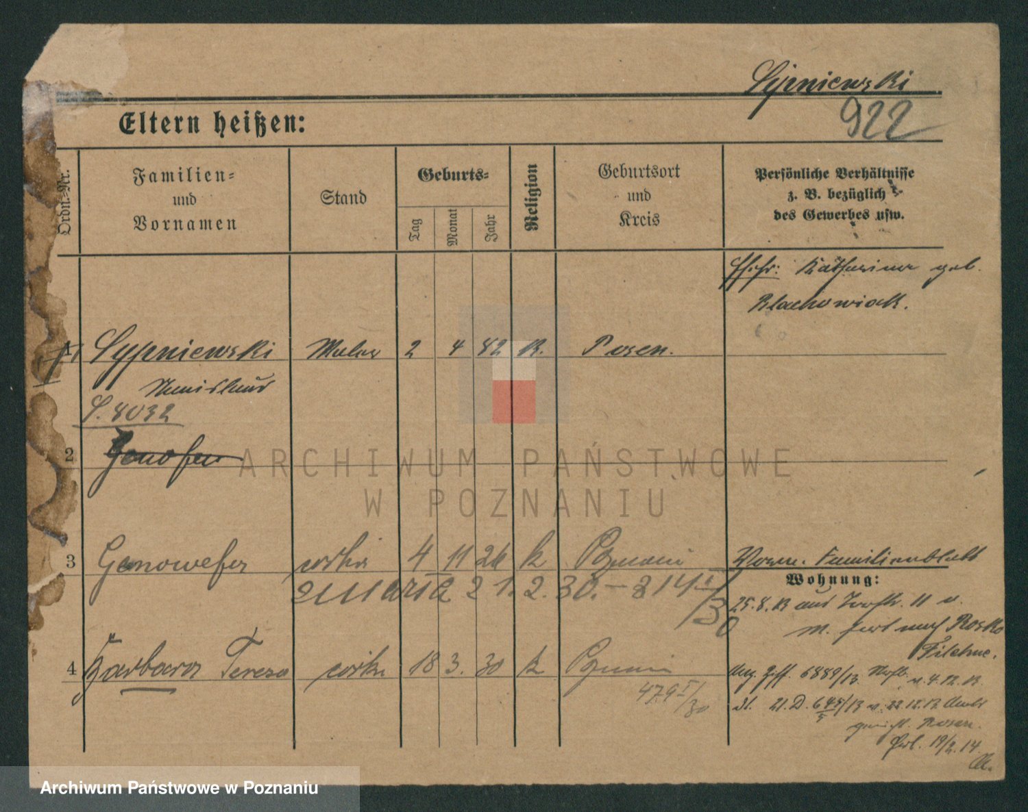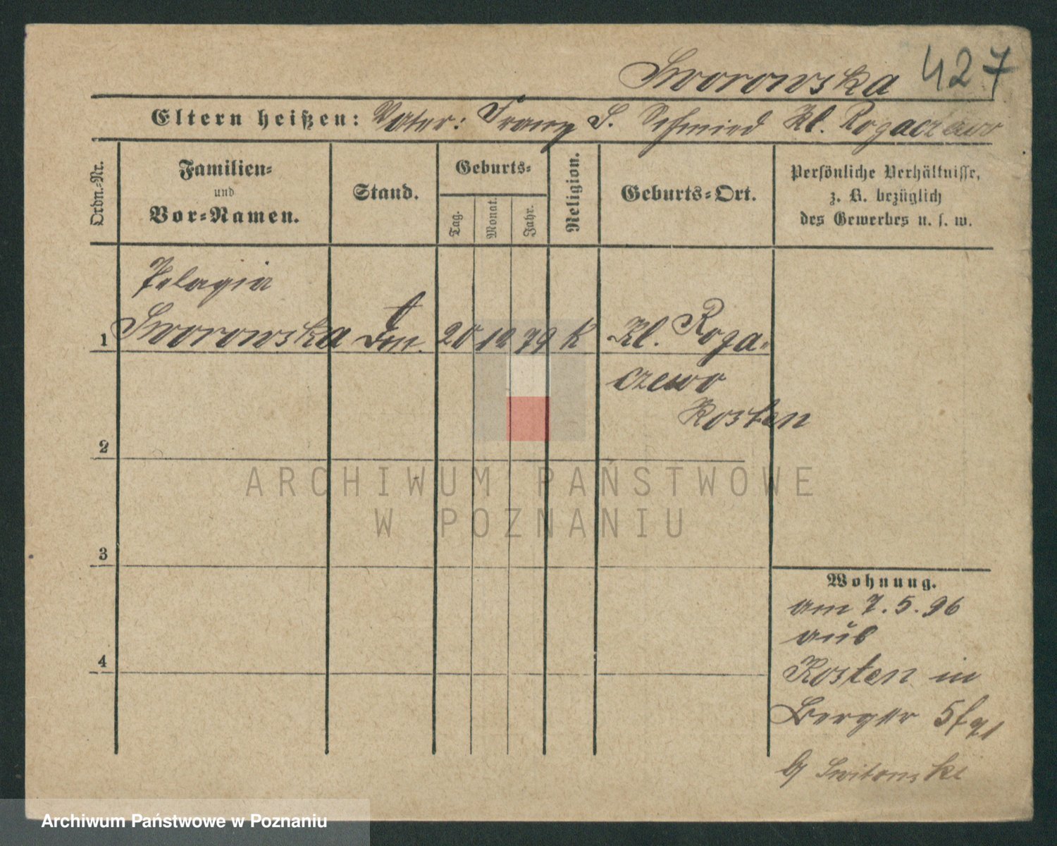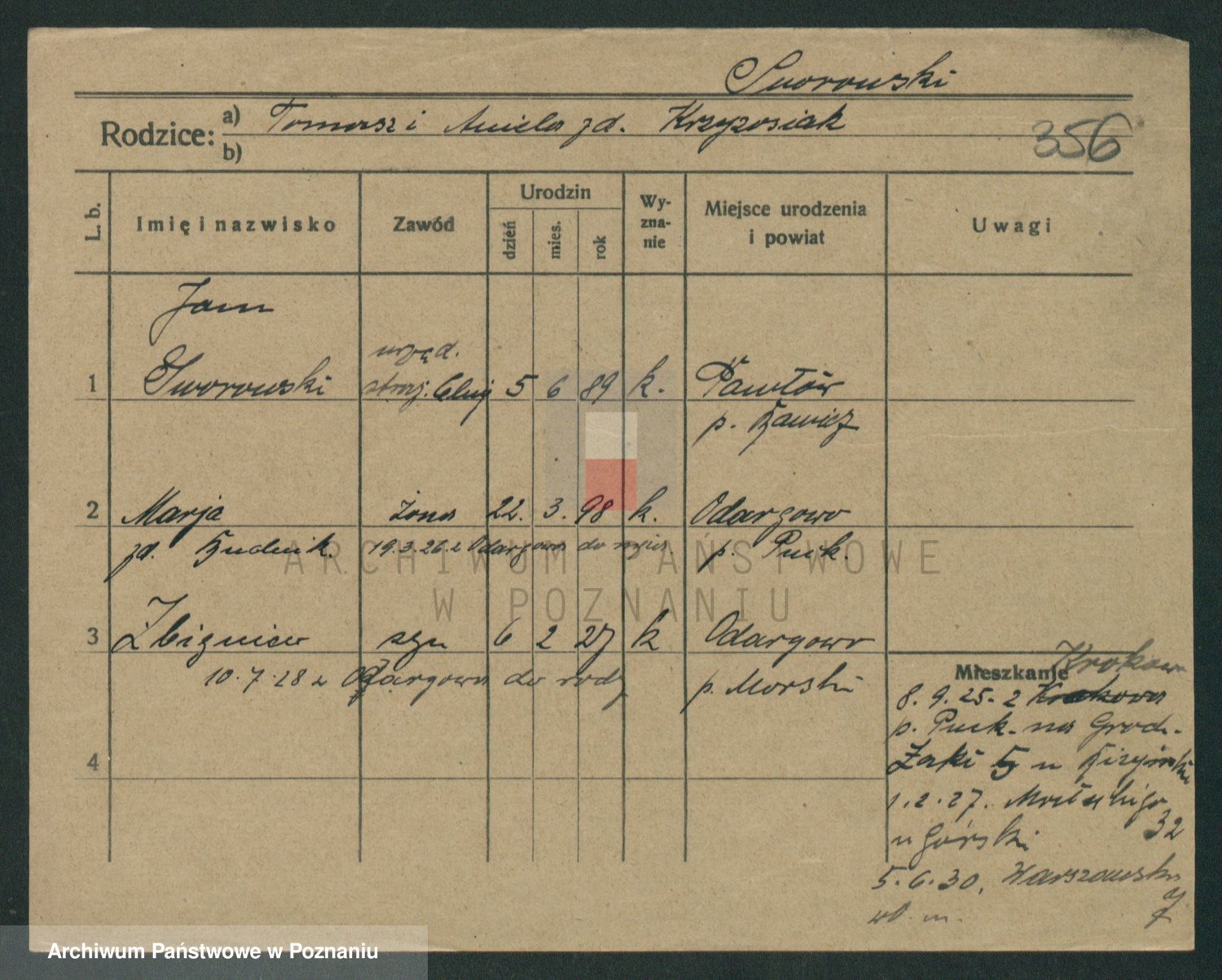 Podgląd karty osobowej dostępny jest po kliknięciu na nazwisko lub ikonkę karty. Można dokonywać powiększenia (ikony na górze) lub przechodzić między kolejnymi skanami (strzałki po bokach).