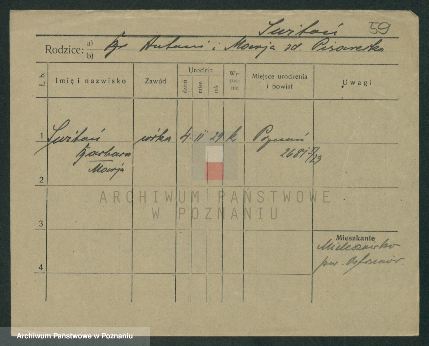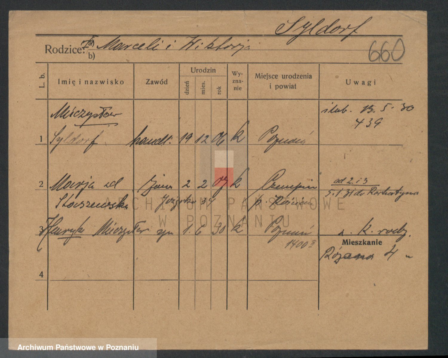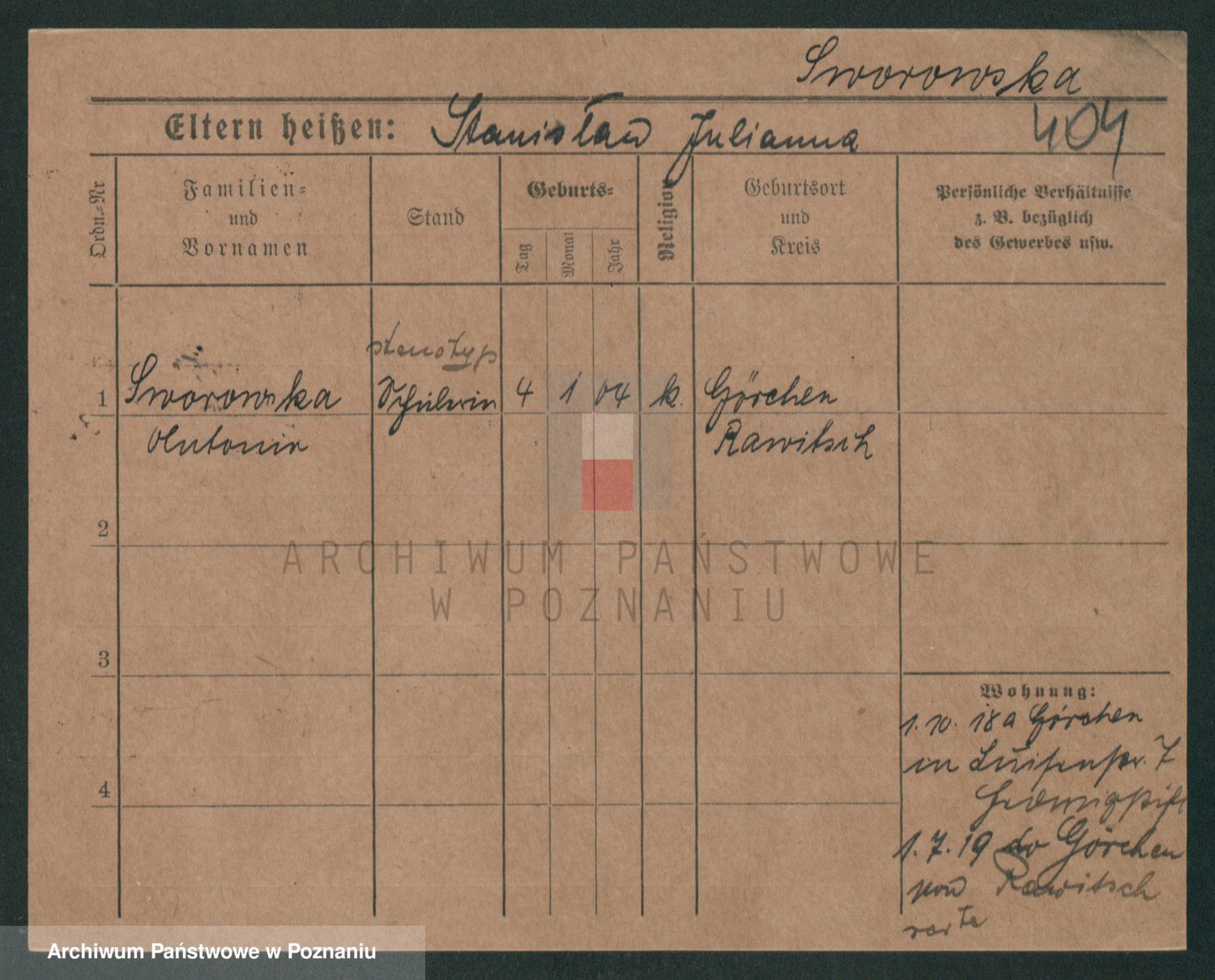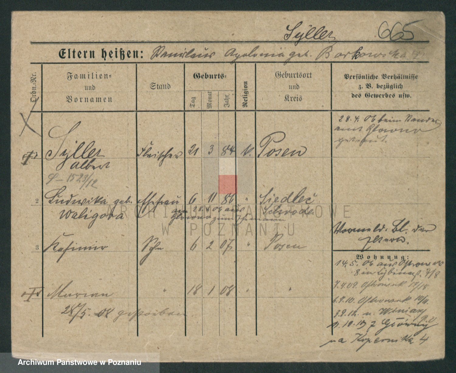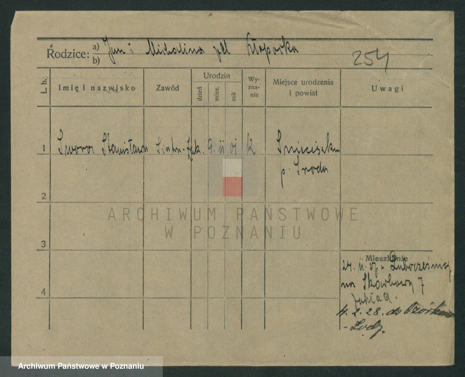 Podgląd karty osobowej dostępny jest po kliknięciu na nazwisko lub ikonkę karty. Można dokonywać powiększenia (ikony na górze) lub przechodzić między kolejnymi skanami (strzałki po bokach).