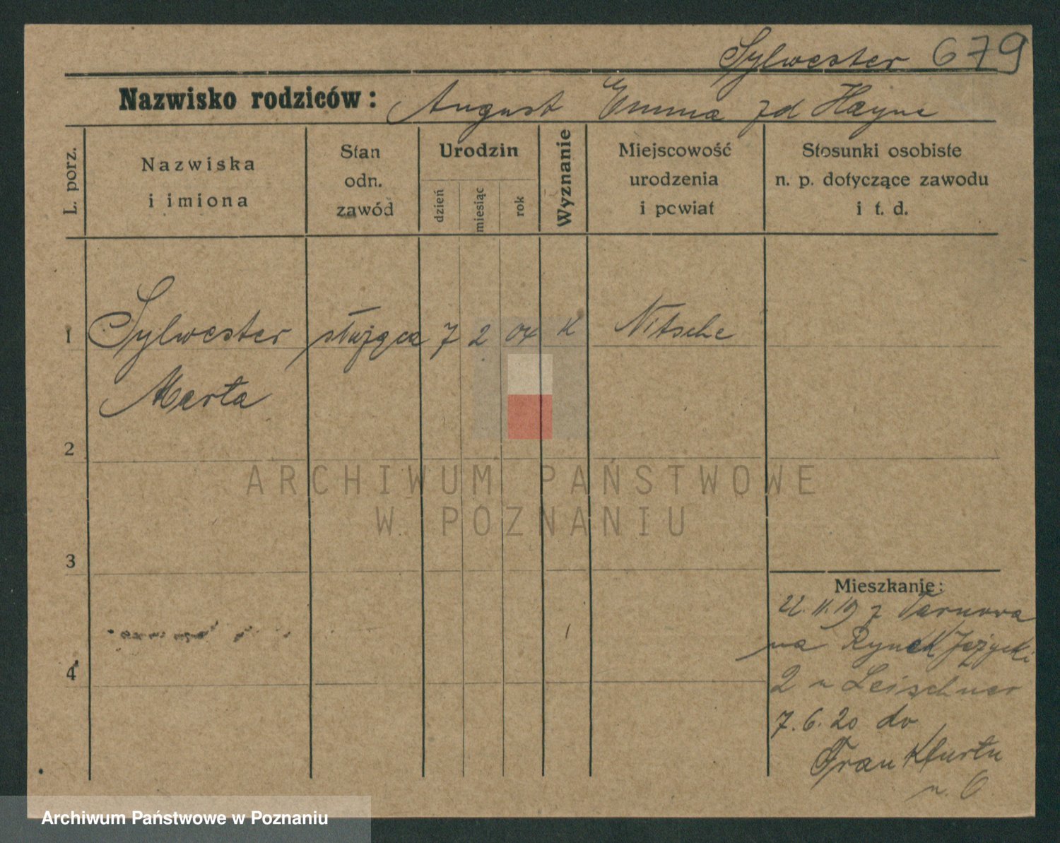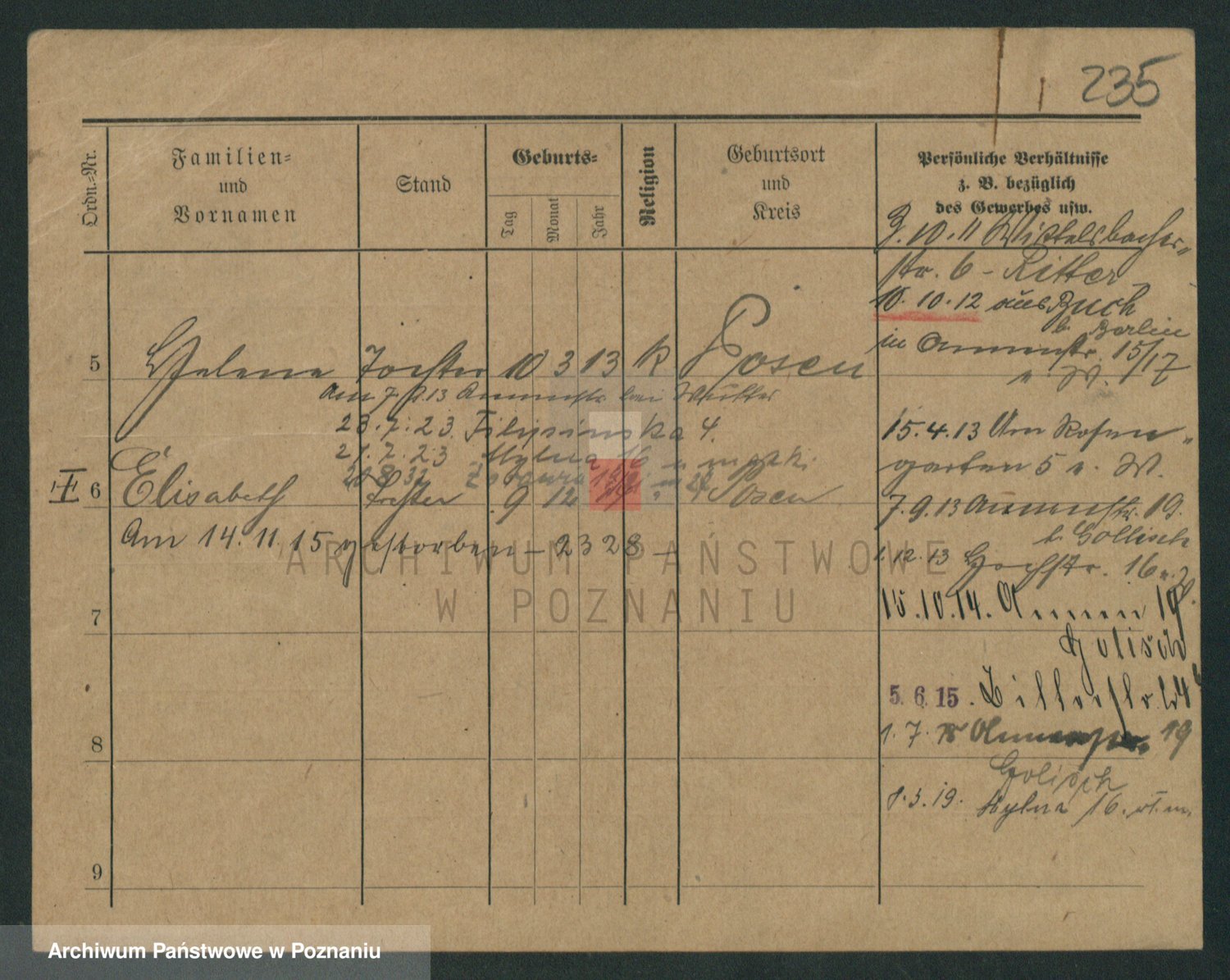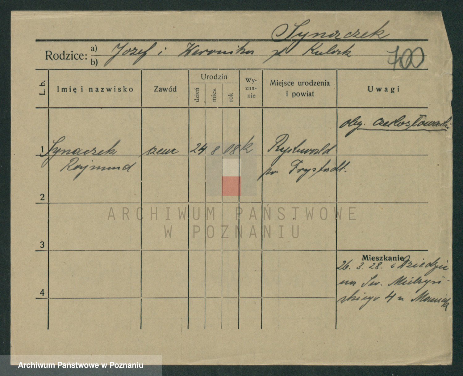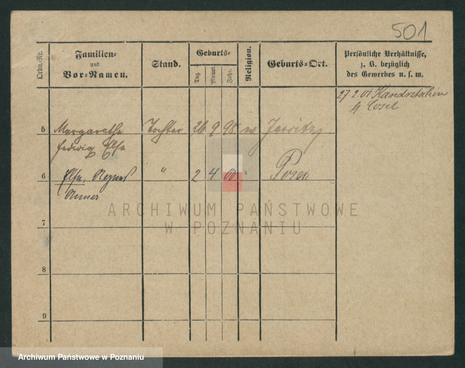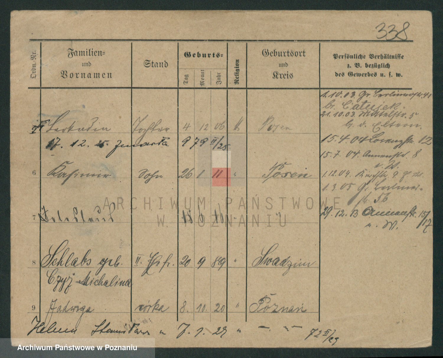 Podgląd karty osobowej dostępny jest po kliknięciu na nazwisko lub ikonkę karty. Można dokonywać powiększenia (ikony na górze) lub przechodzić między kolejnymi skanami (strzałki po bokach).