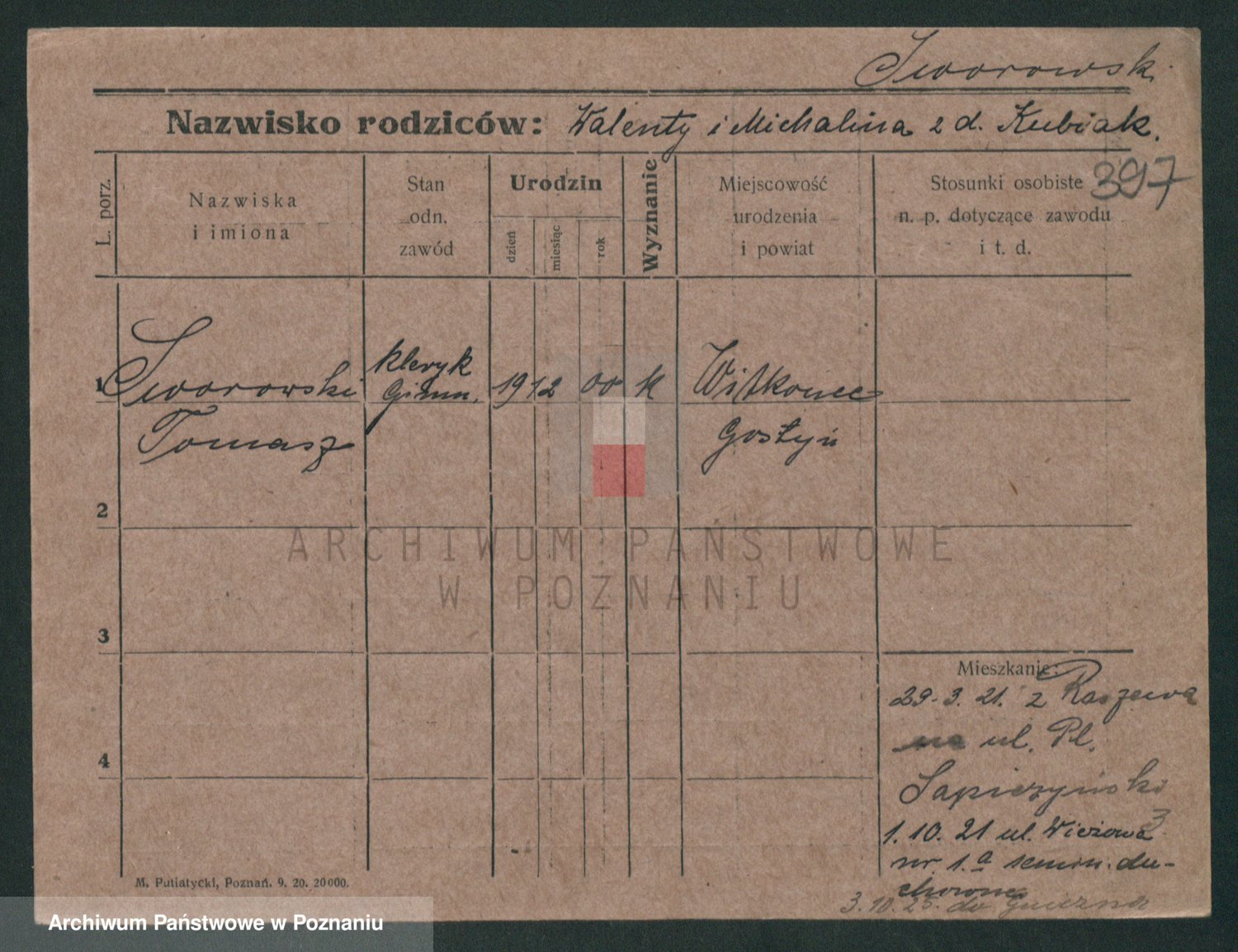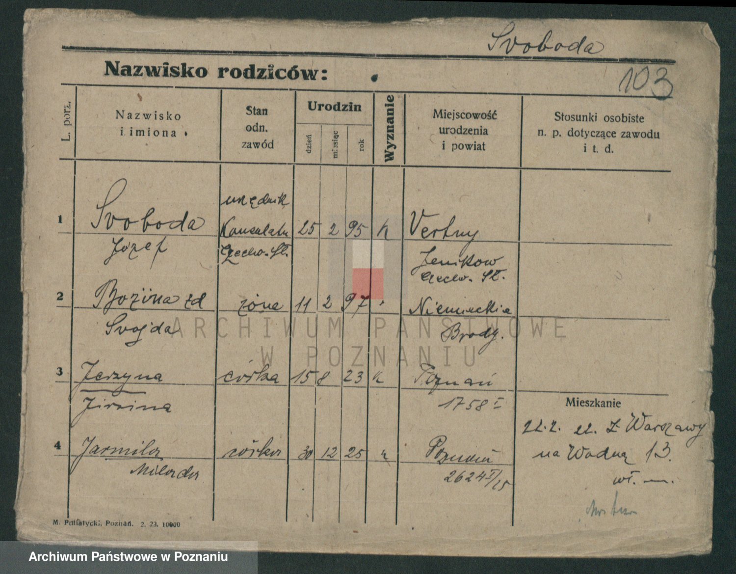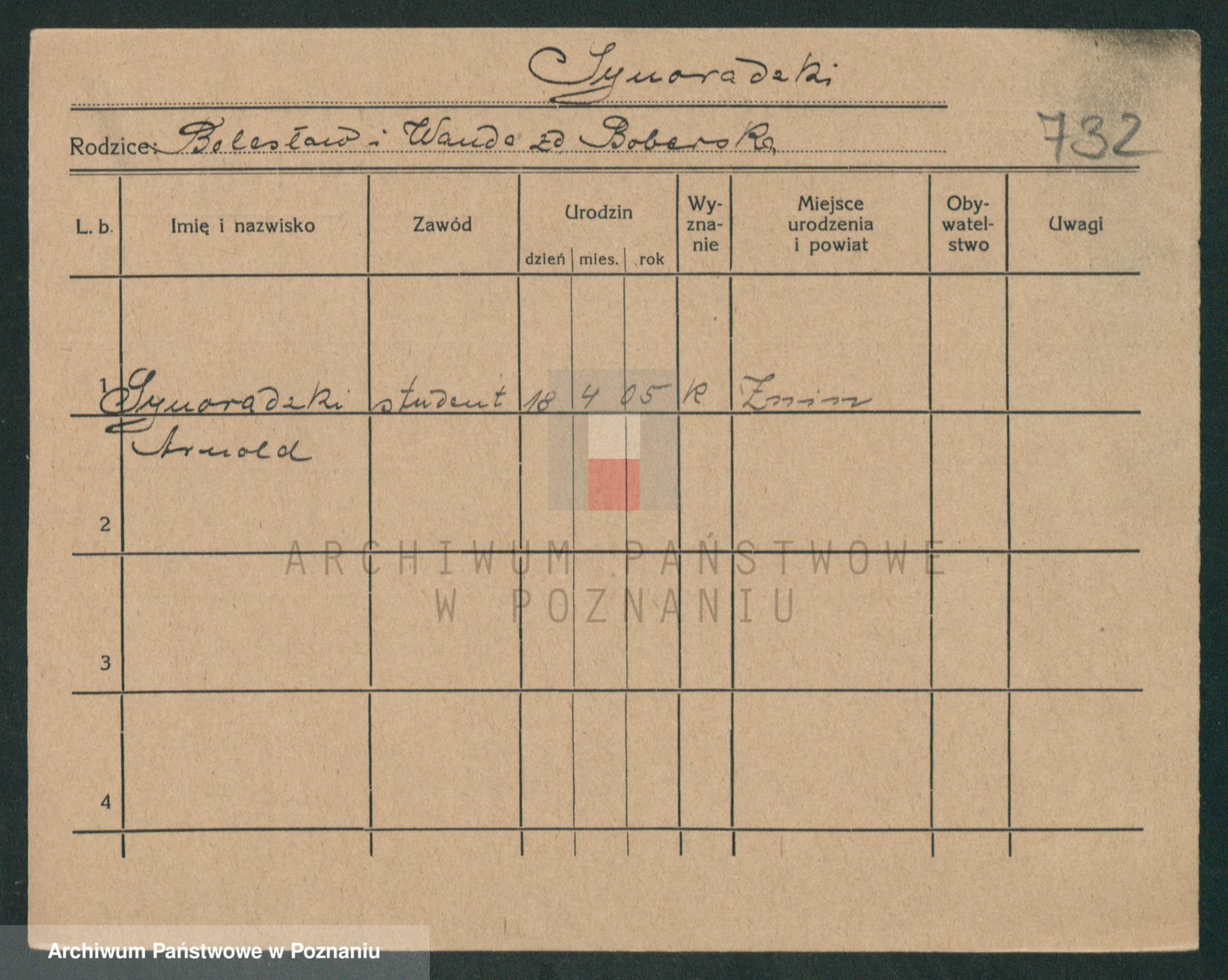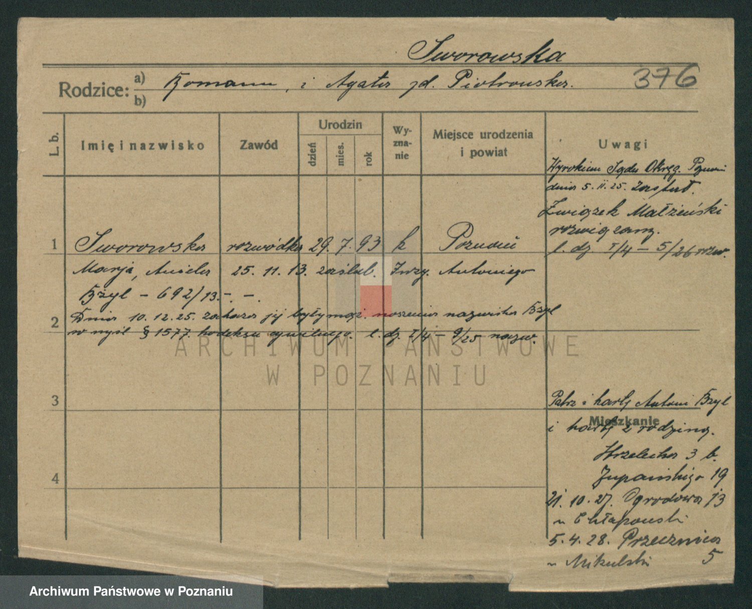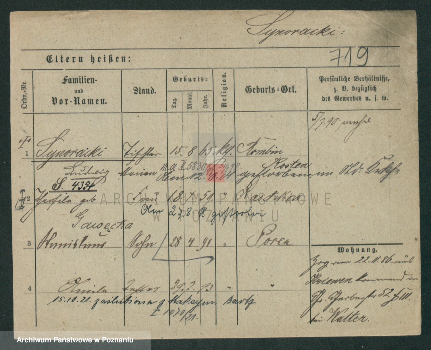 Podgląd karty osobowej dostępny jest po kliknięciu na nazwisko lub ikonkę karty. Można dokonywać powiększenia (ikony na górze) lub przechodzić między kolejnymi skanami (strzałki po bokach).