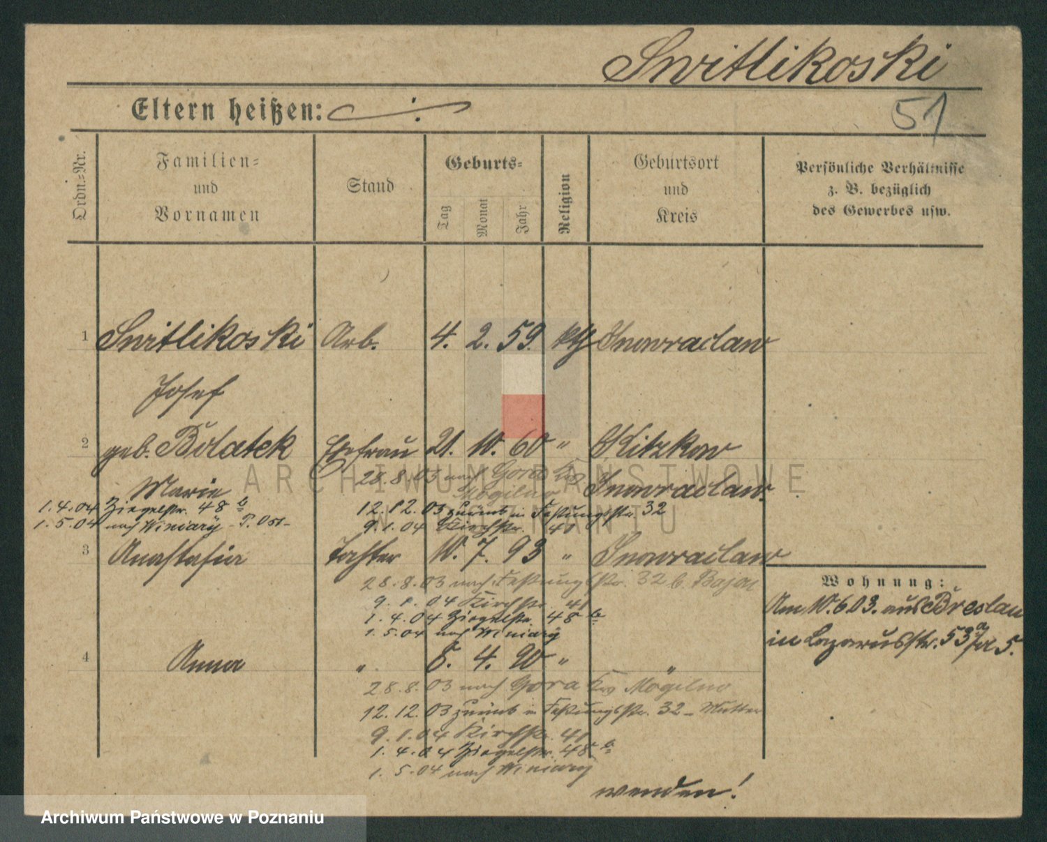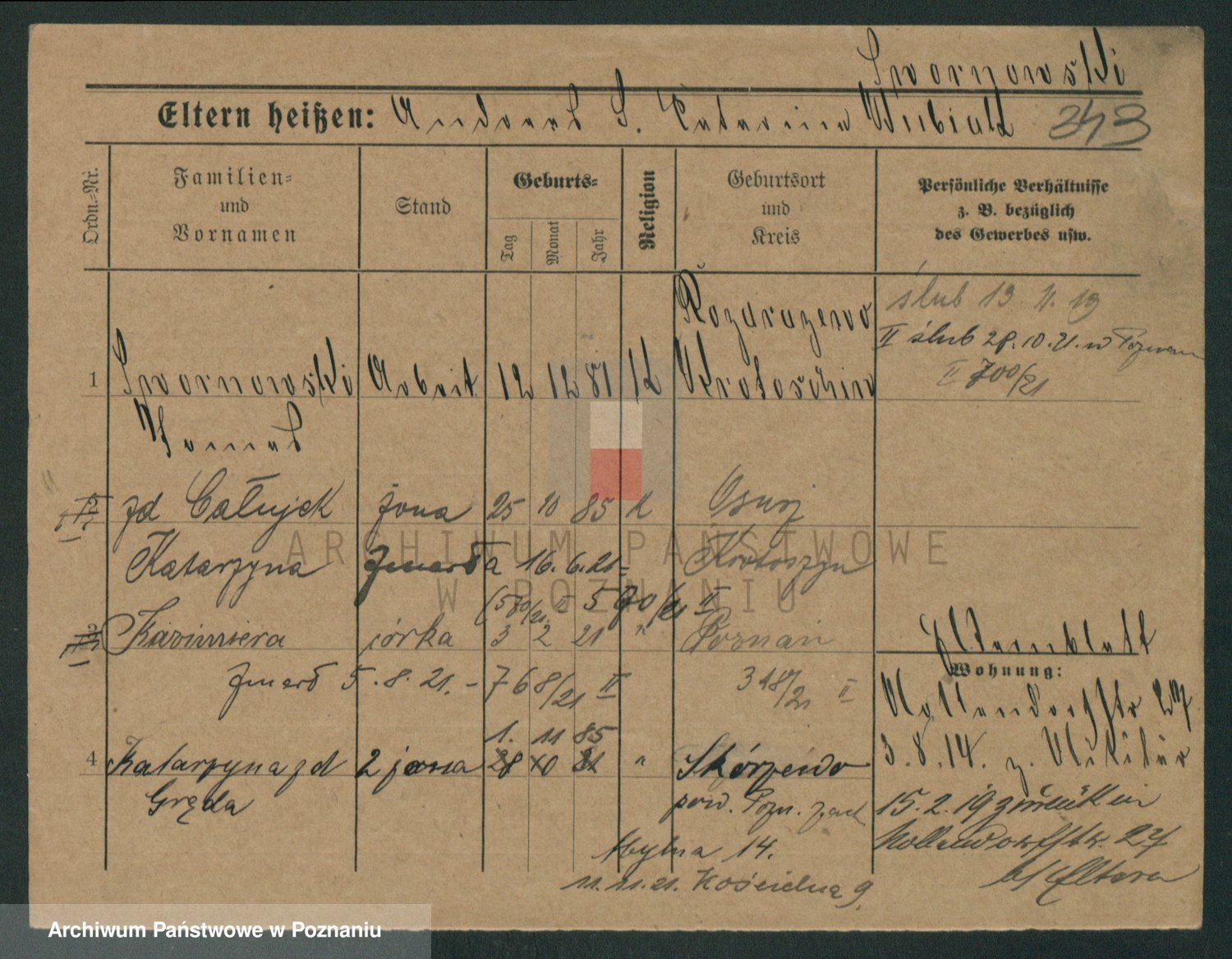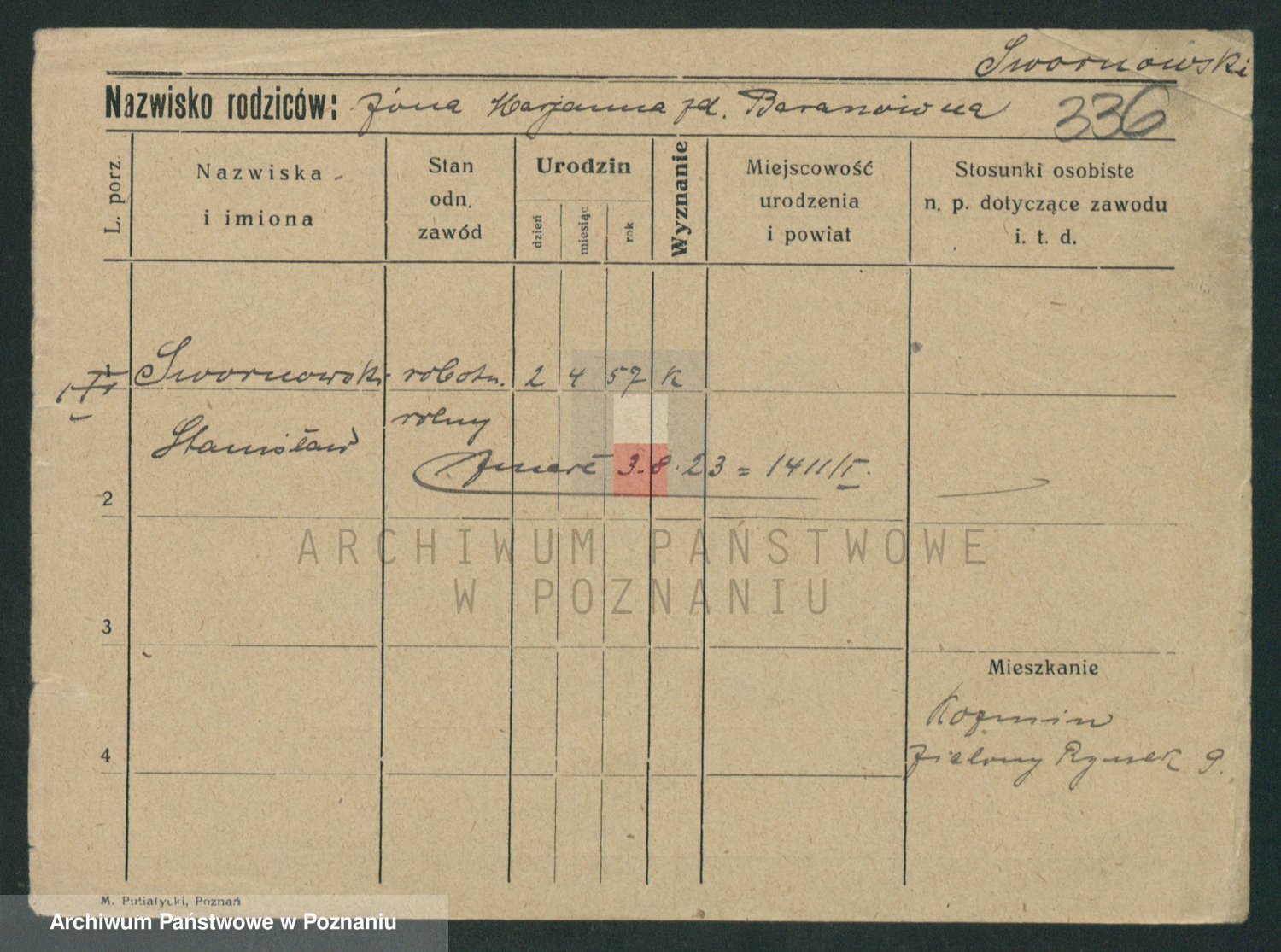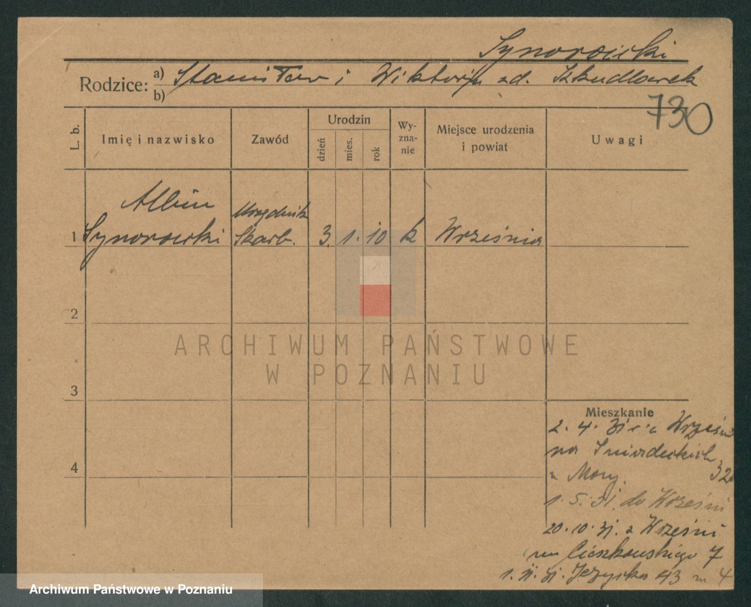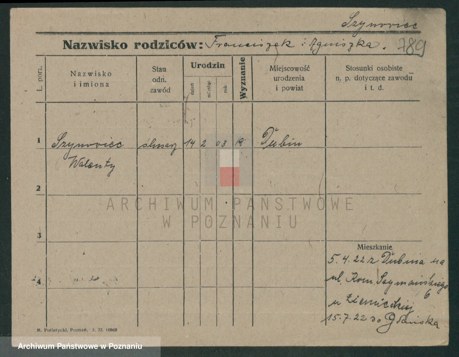 Podgląd karty osobowej dostępny jest po kliknięciu na nazwisko lub ikonkę karty. Można dokonywać powiększenia (ikony na górze) lub przechodzić między kolejnymi skanami (strzałki po bokach).