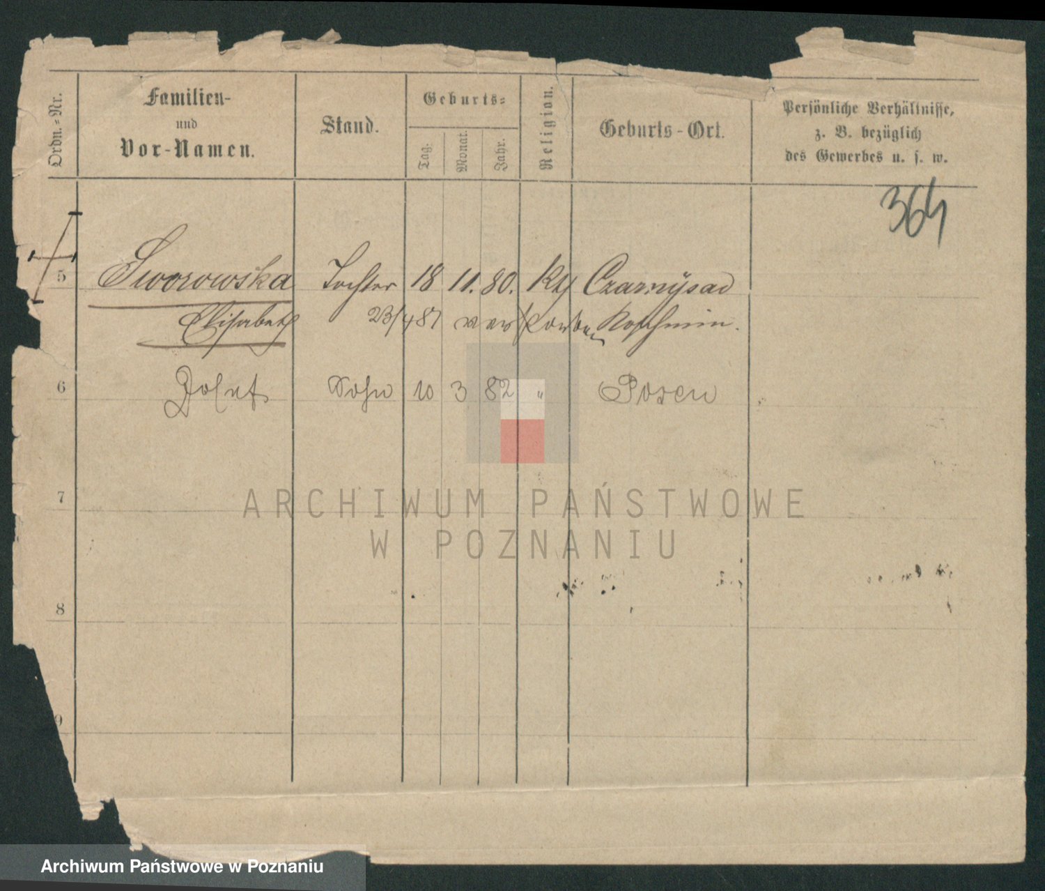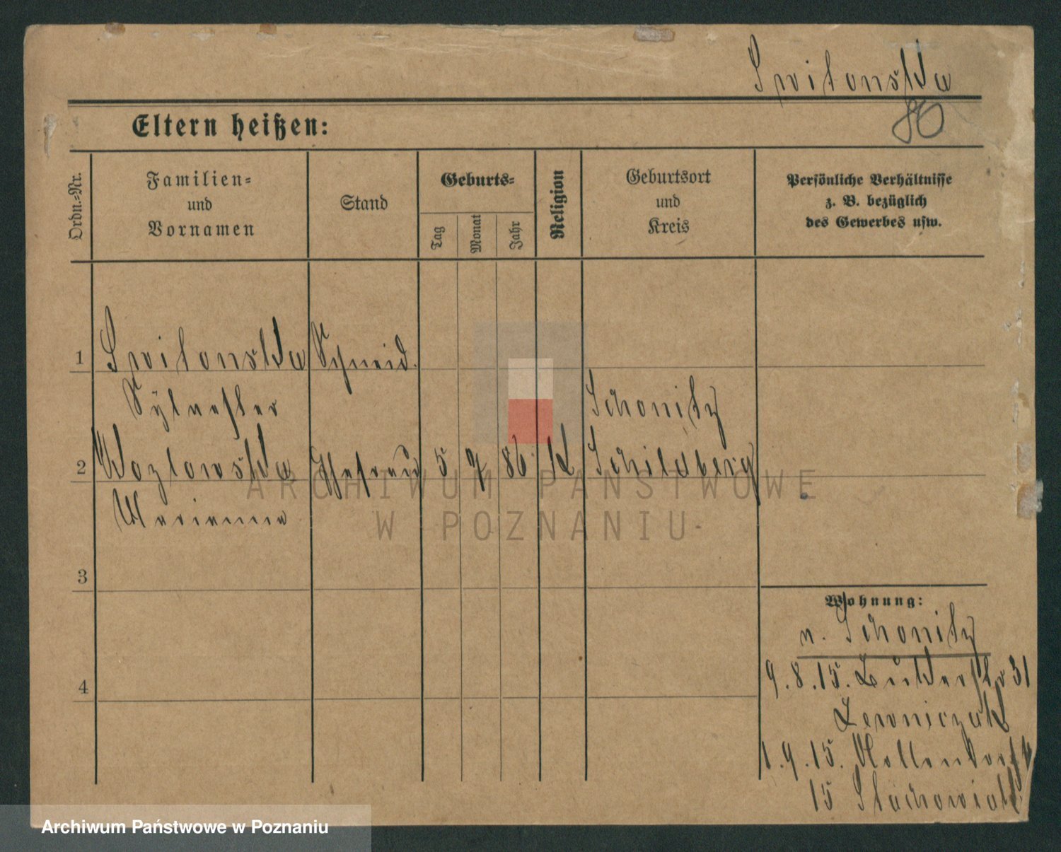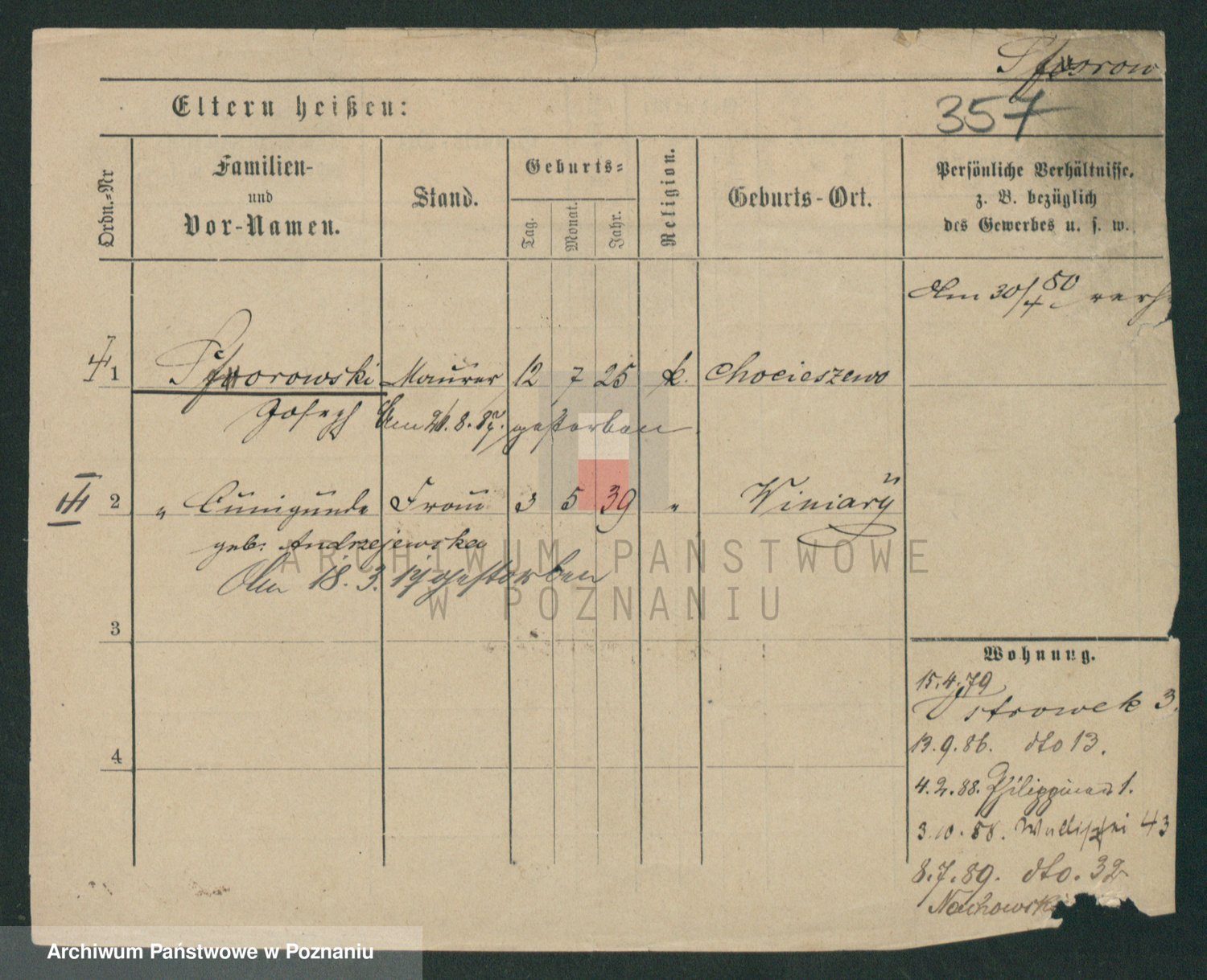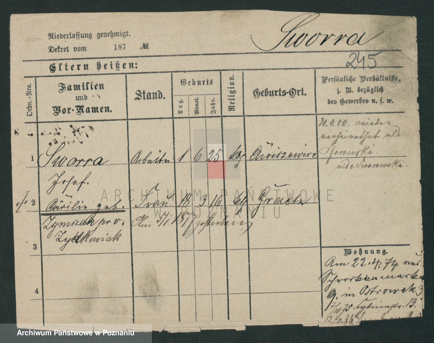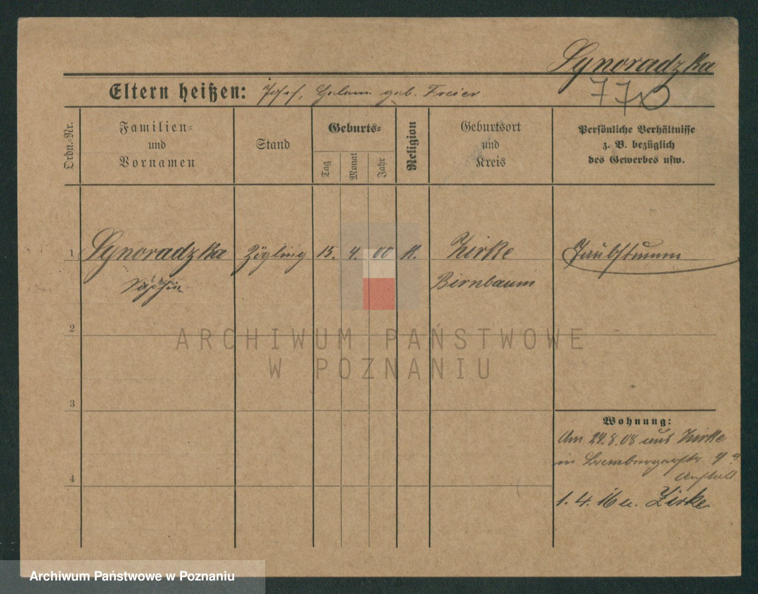 Podgląd karty osobowej dostępny jest po kliknięciu na nazwisko lub ikonkę karty. Można dokonywać powiększenia (ikony na górze) lub przechodzić między kolejnymi skanami (strzałki po bokach).