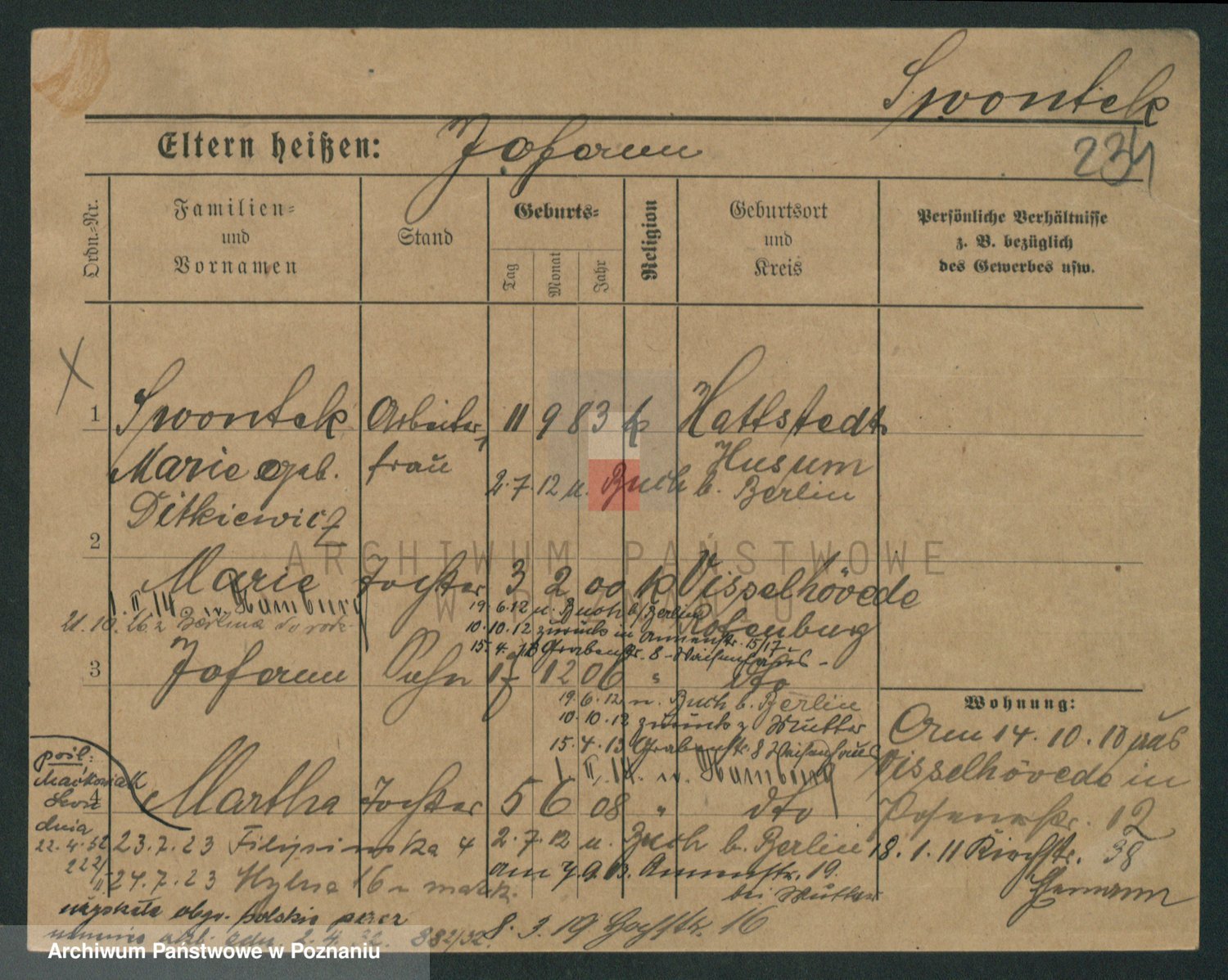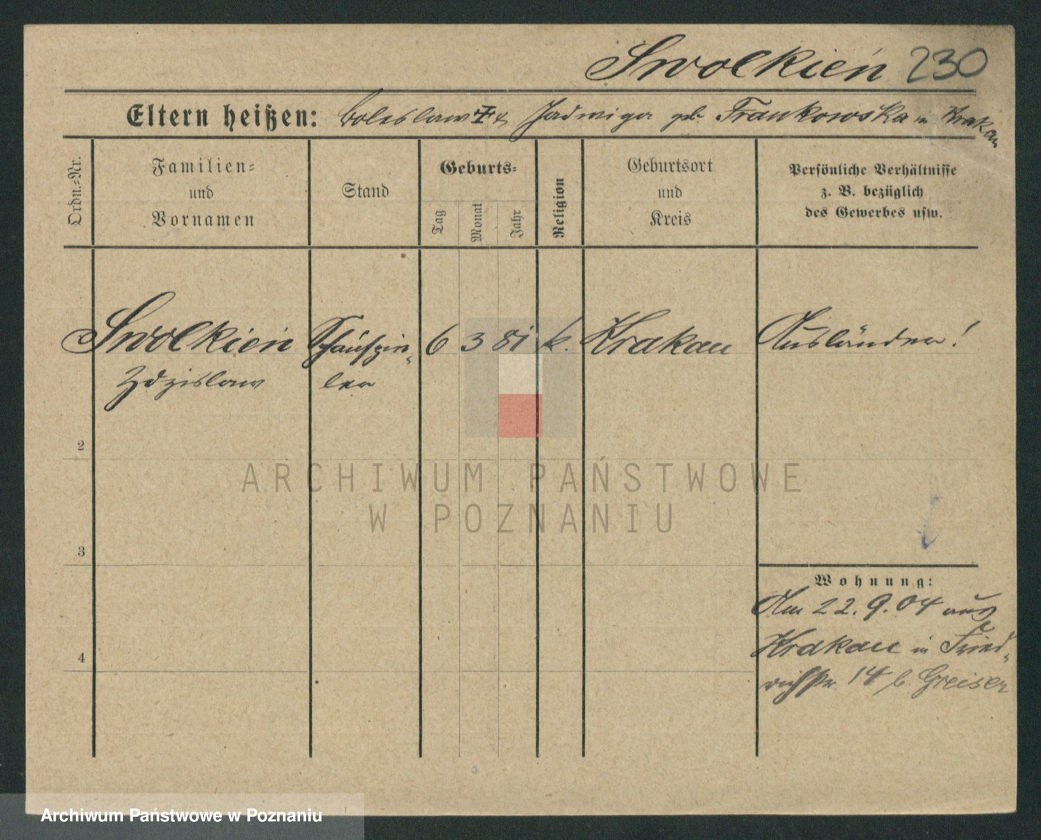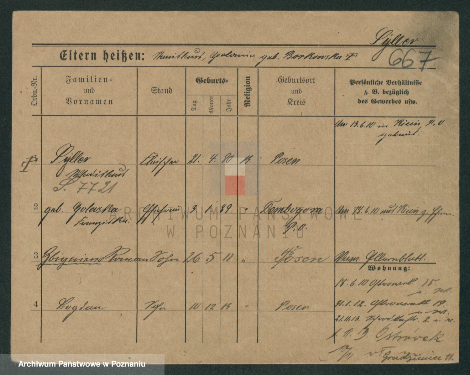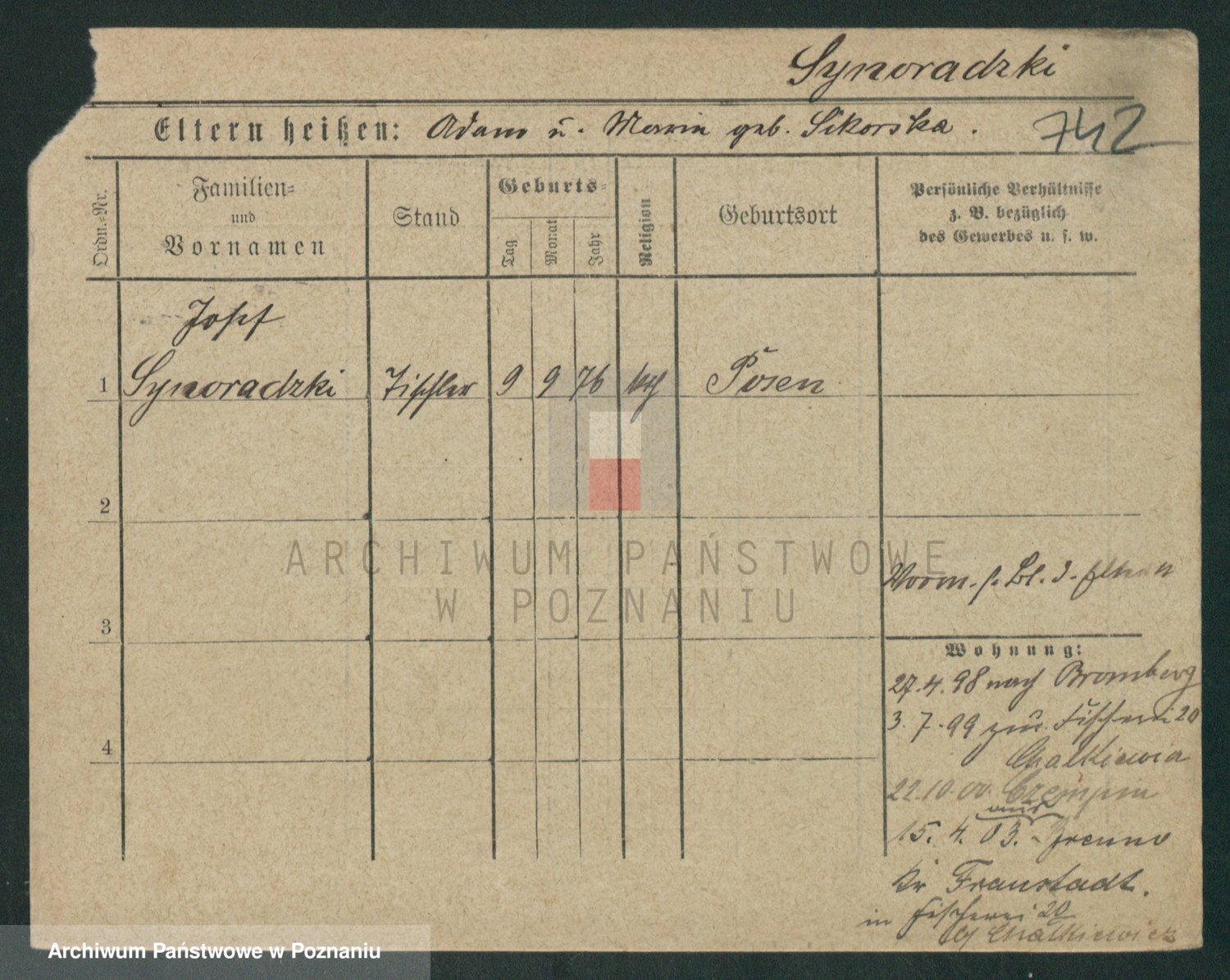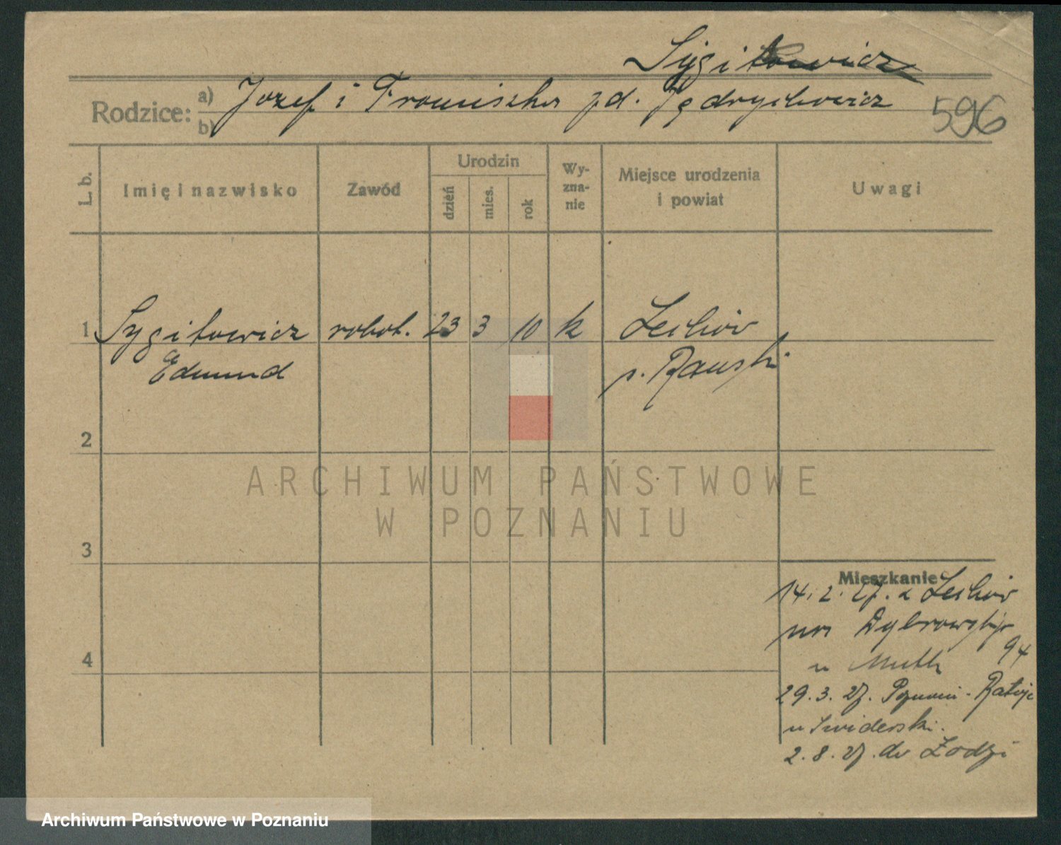 Podgląd karty osobowej dostępny jest po kliknięciu na nazwisko lub ikonkę karty. Można dokonywać powiększenia (ikony na górze) lub przechodzić między kolejnymi skanami (strzałki po bokach).
