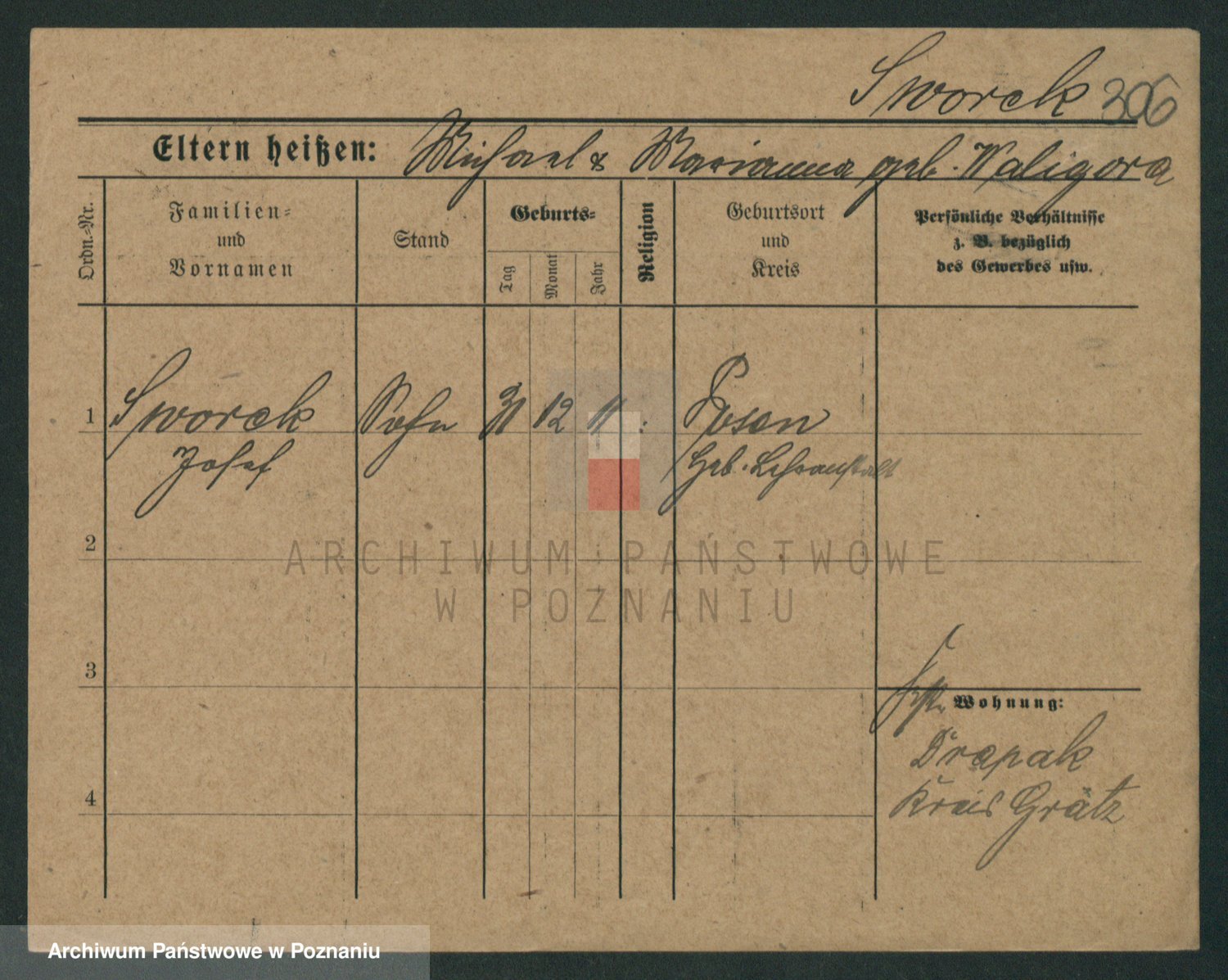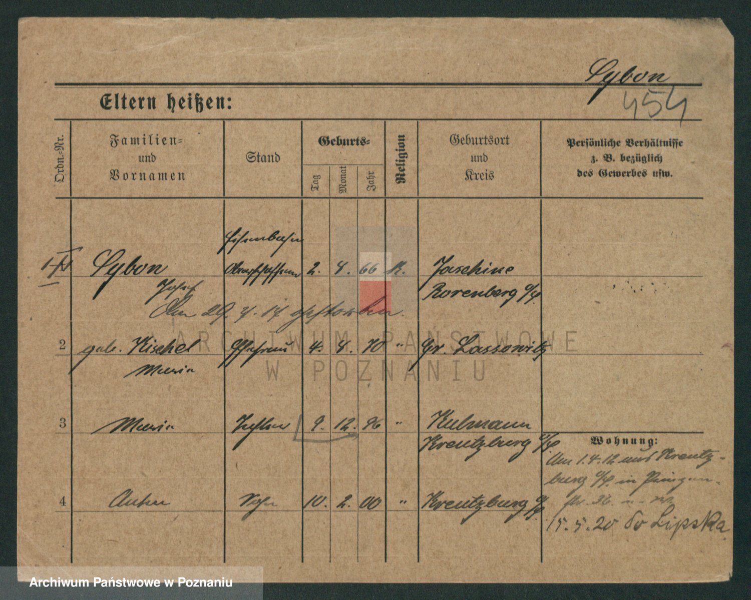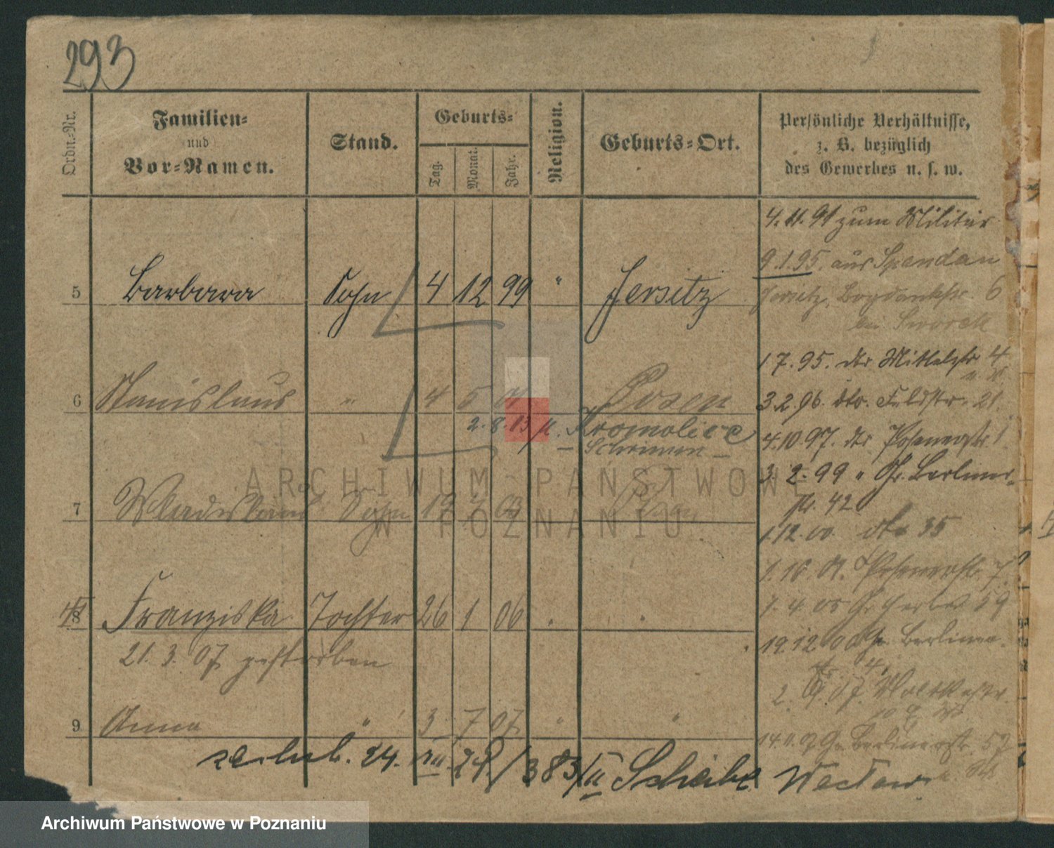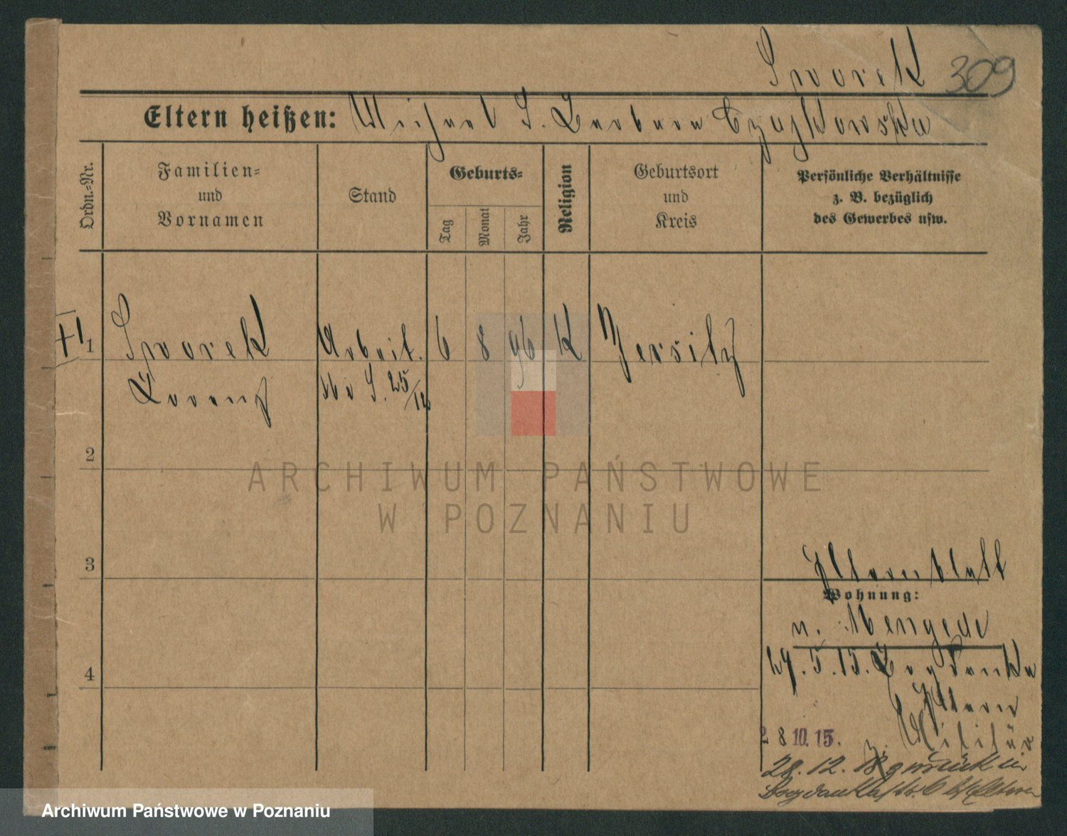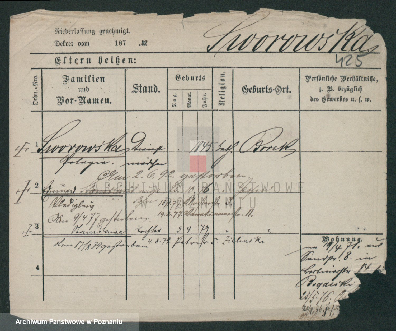 Podgląd karty osobowej dostępny jest po kliknięciu na nazwisko lub ikonkę karty. Można dokonywać powiększenia (ikony na górze) lub przechodzić między kolejnymi skanami (strzałki po bokach).