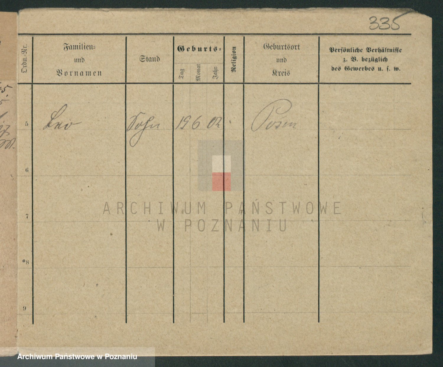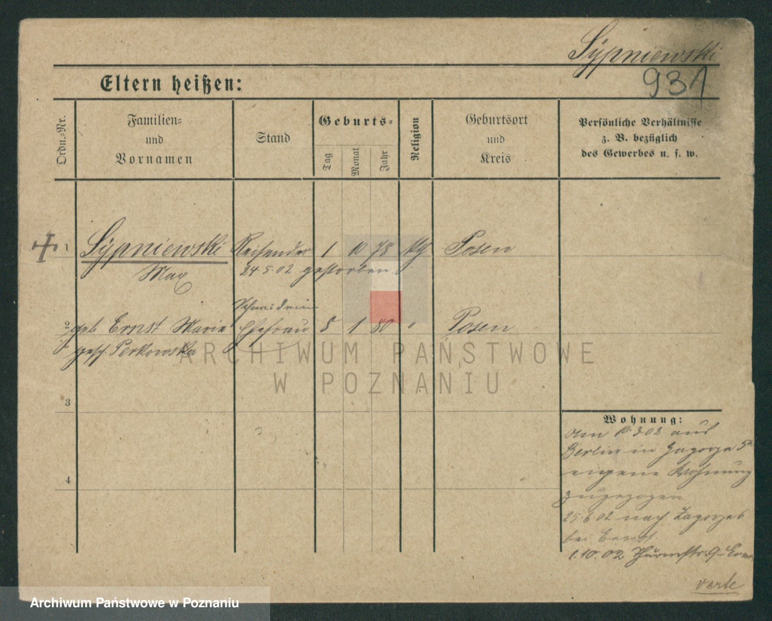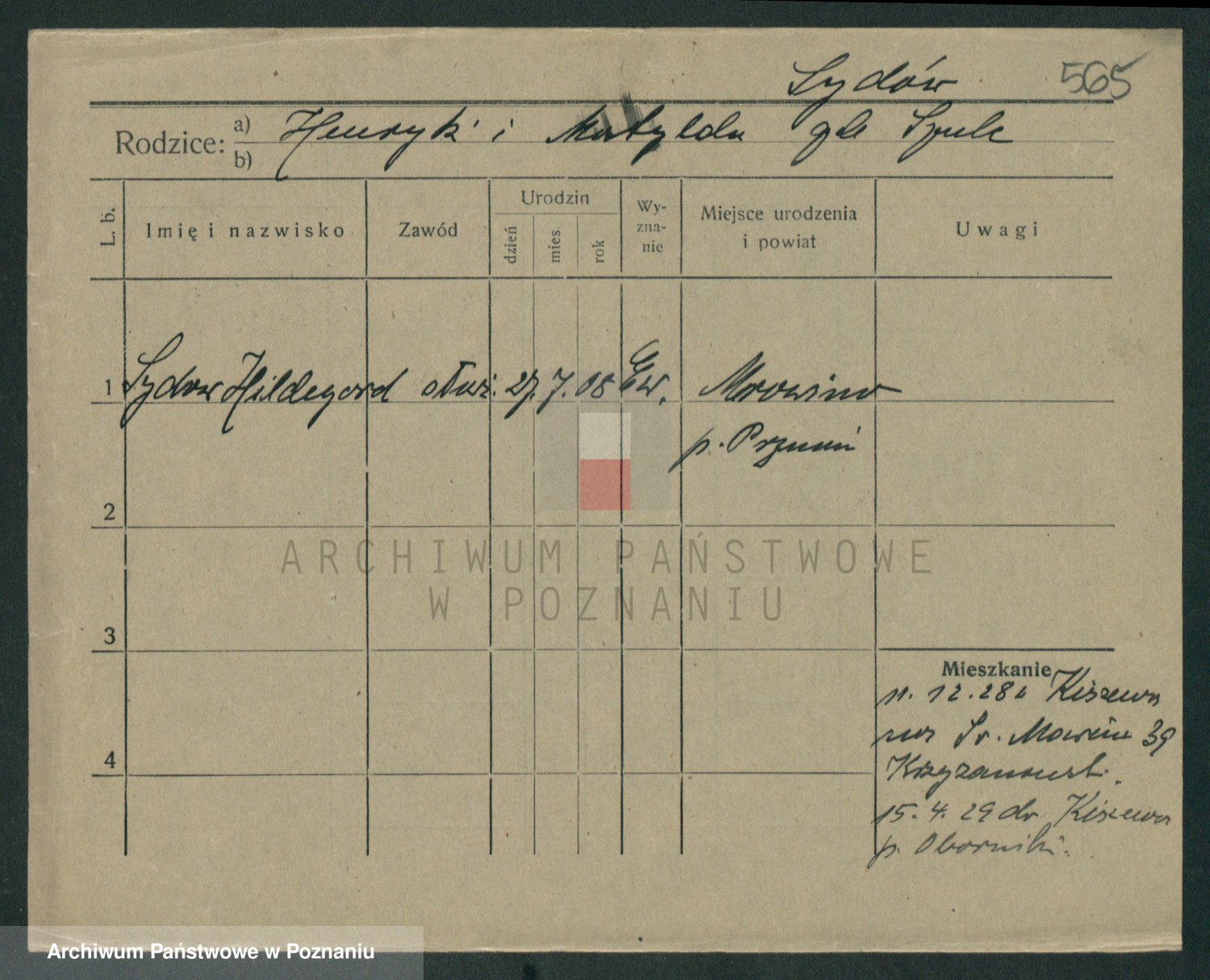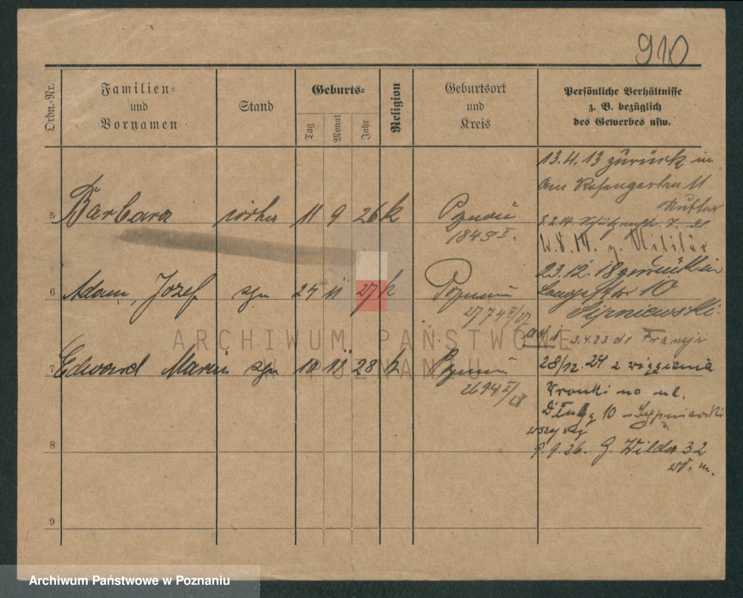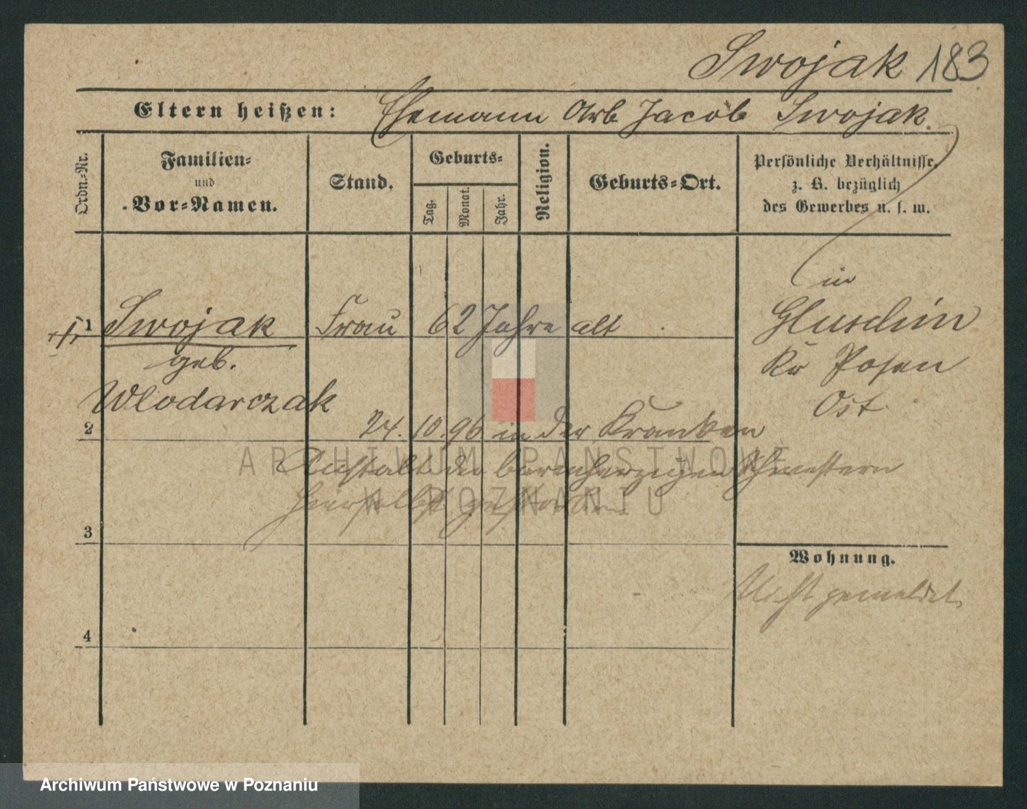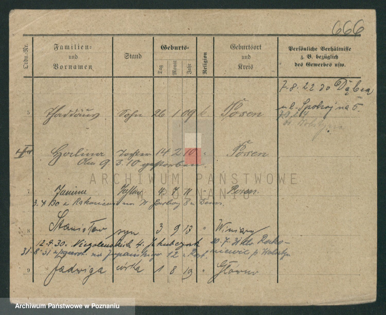 Podgląd karty osobowej dostępny jest po kliknięciu na nazwisko lub ikonkę karty. Można dokonywać powiększenia (ikony na górze) lub przechodzić między kolejnymi skanami (strzałki po bokach).