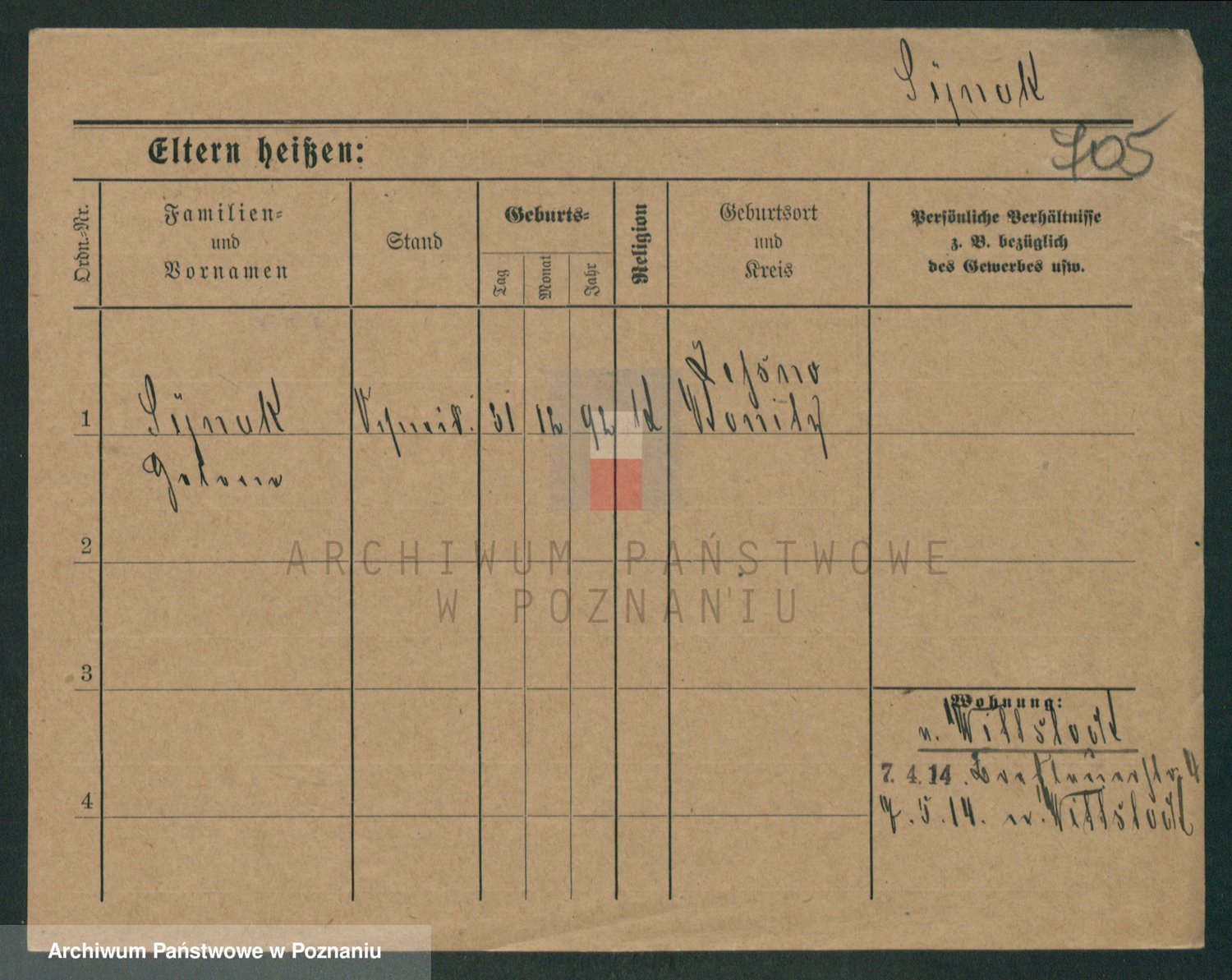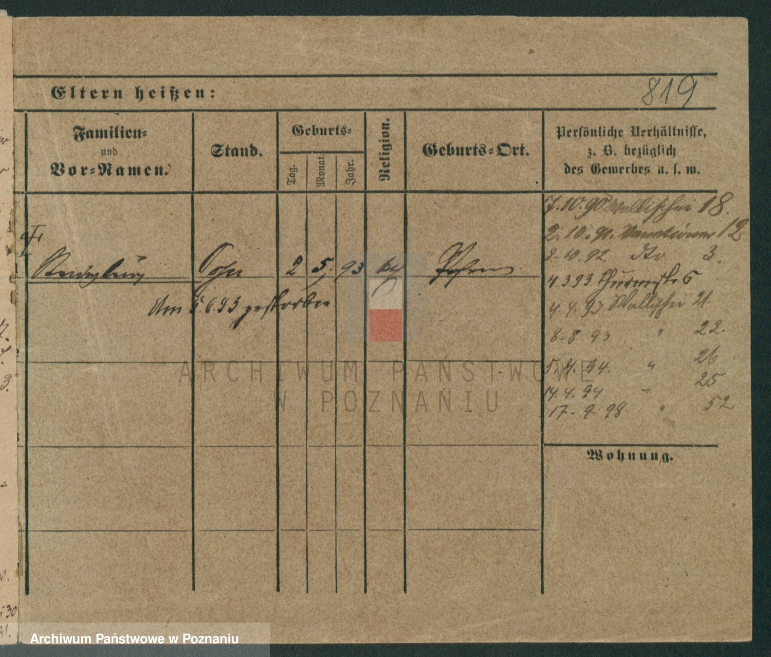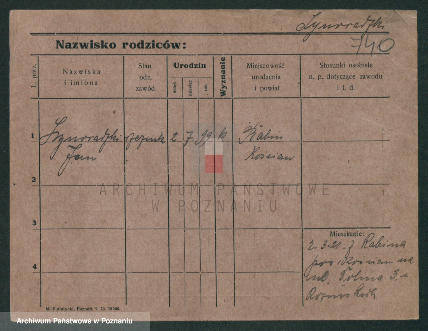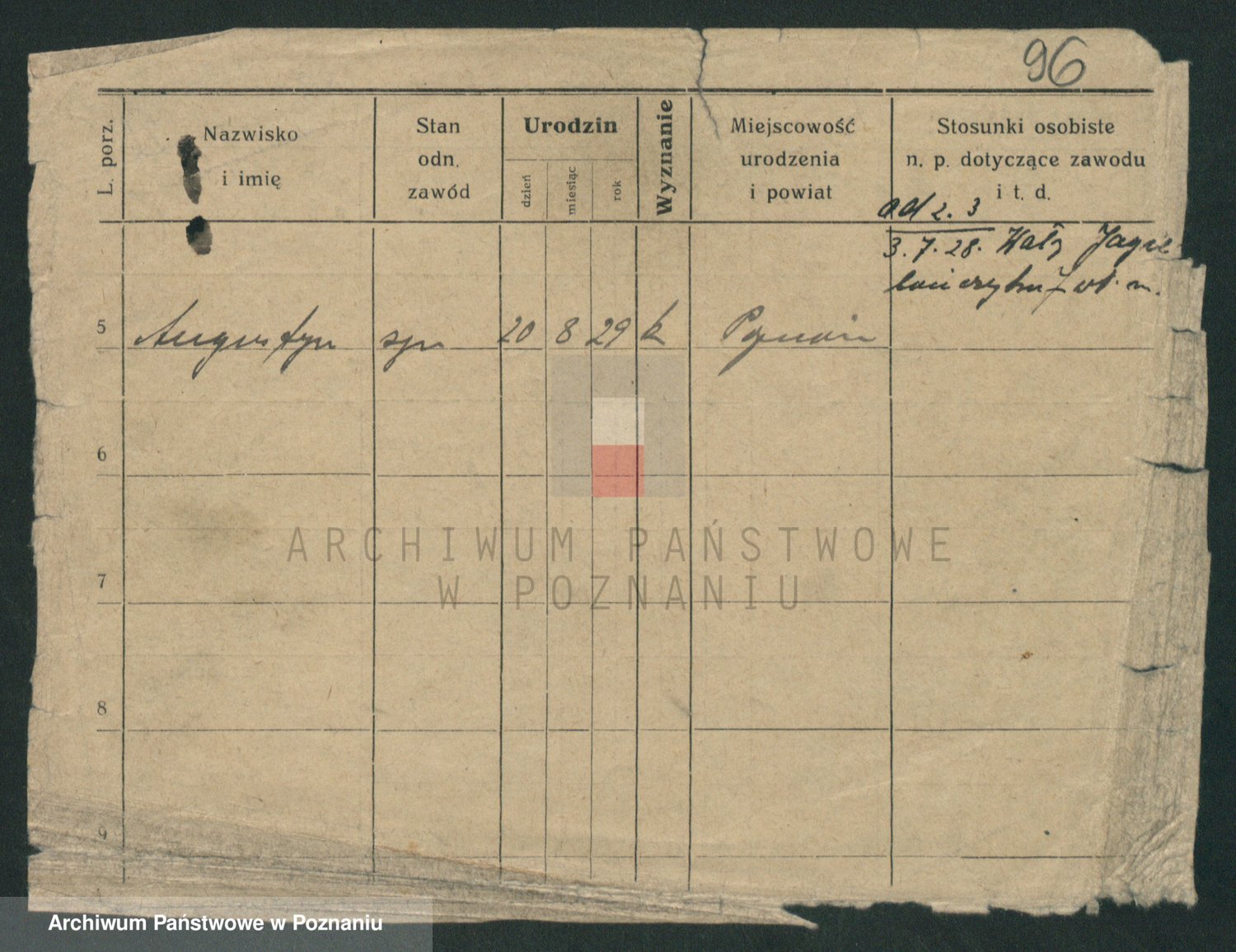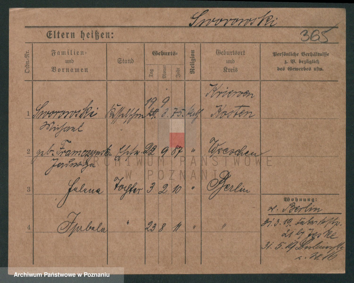 Podgląd karty osobowej dostępny jest po kliknięciu na nazwisko lub ikonkę karty. Można dokonywać powiększenia (ikony na górze) lub przechodzić między kolejnymi skanami (strzałki po bokach).
