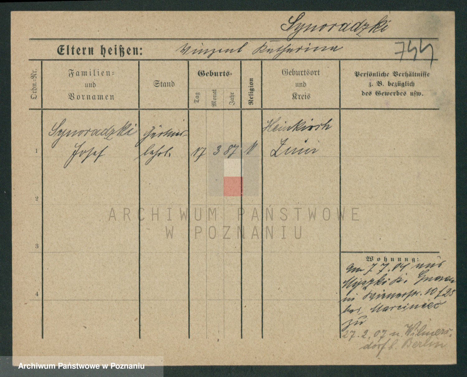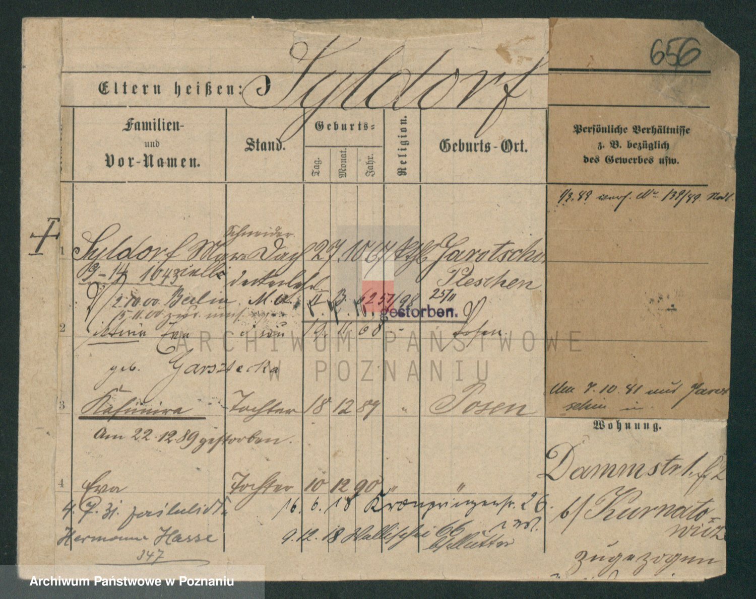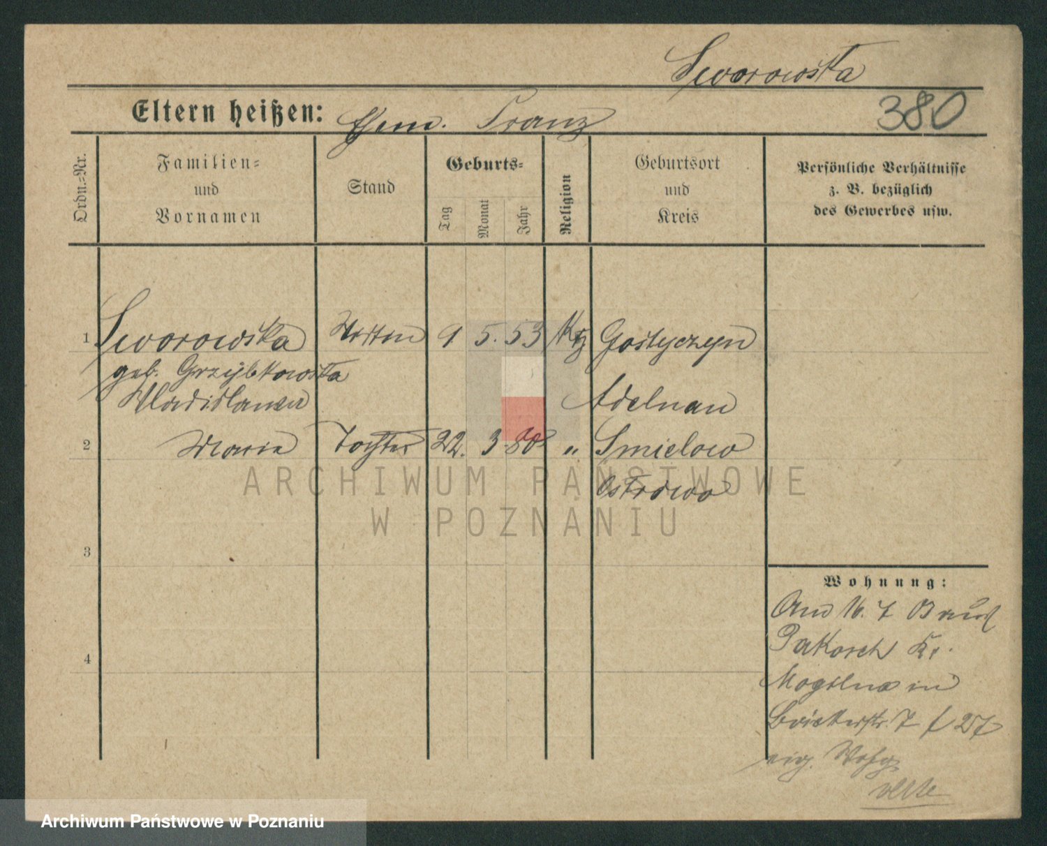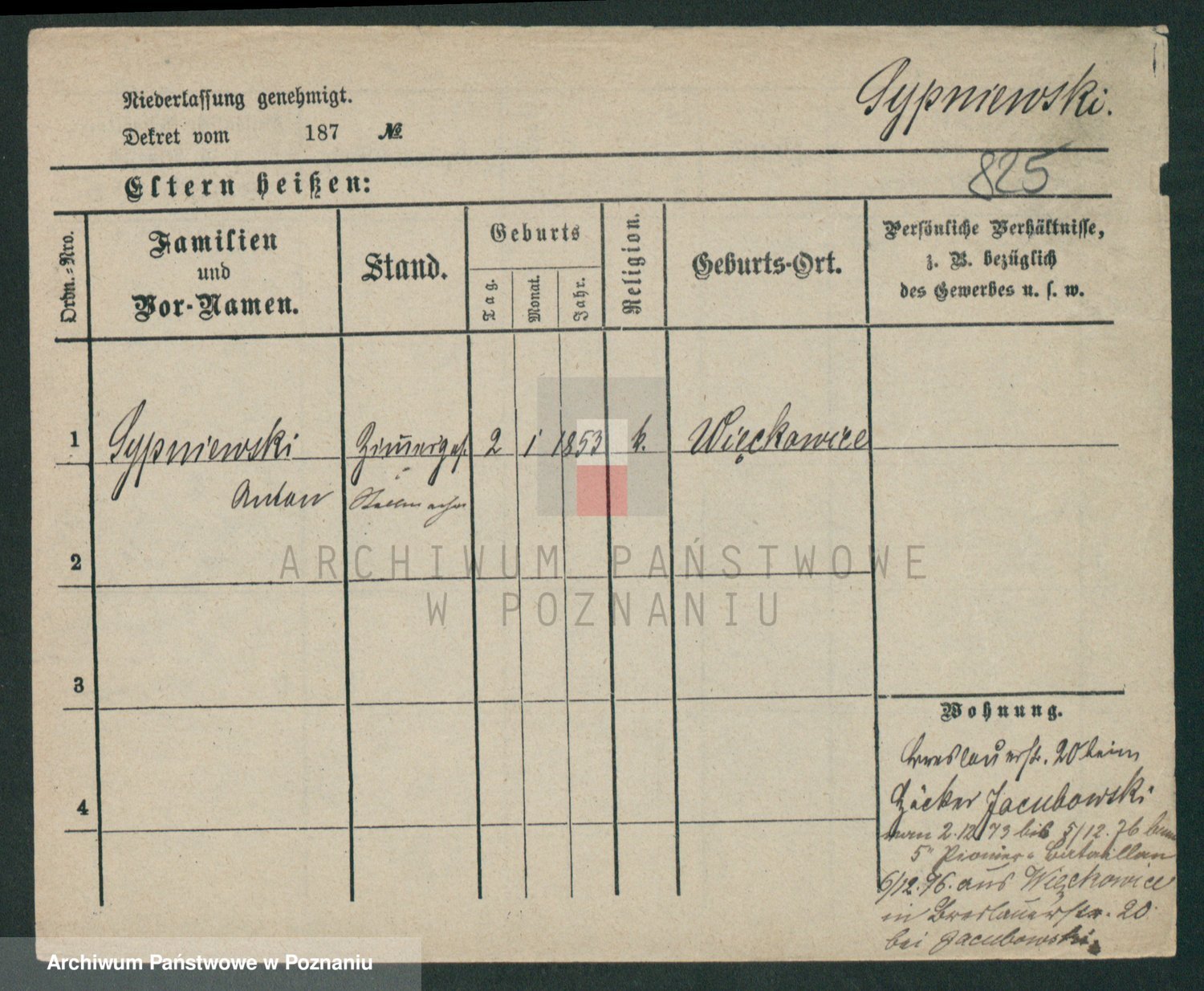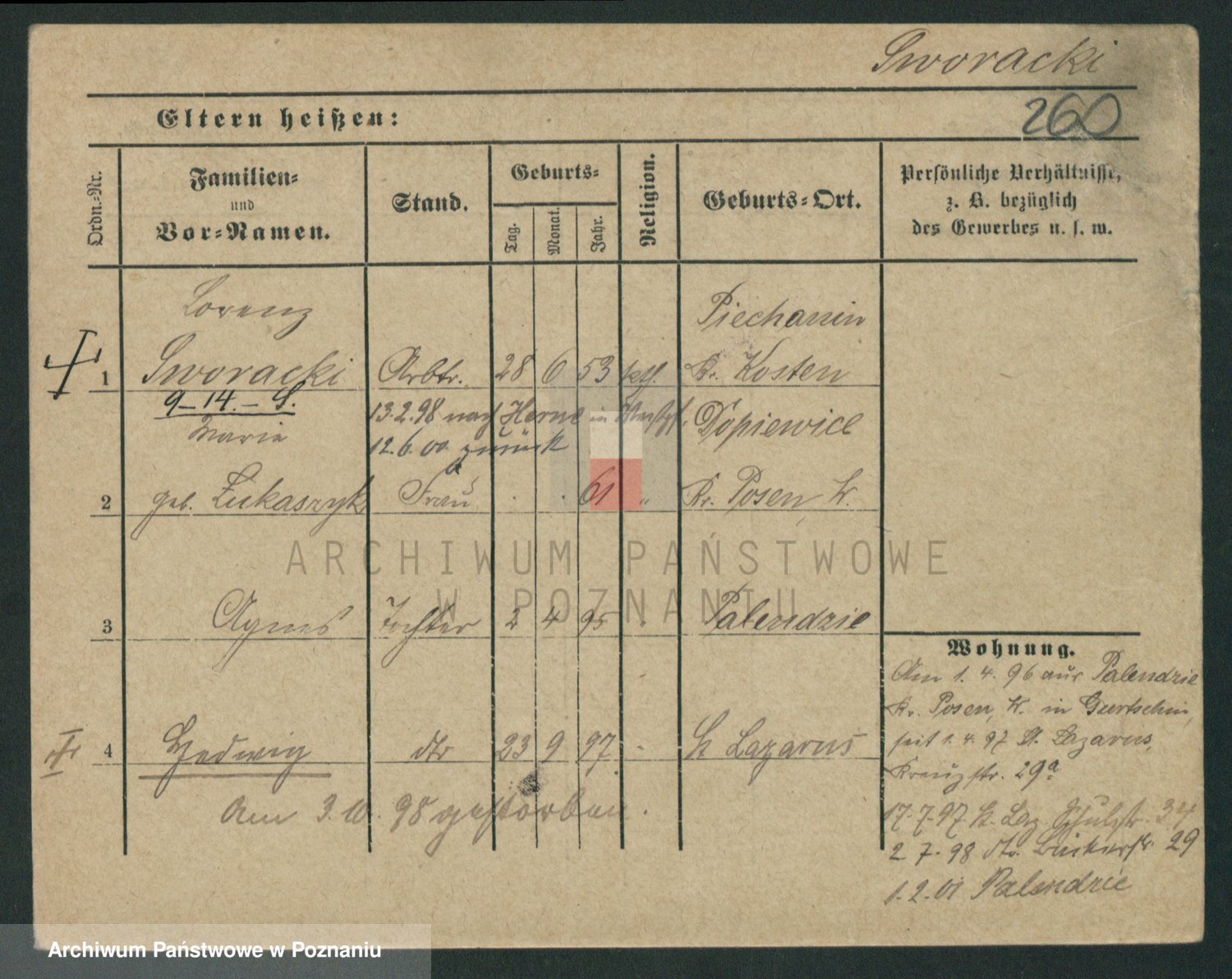 Podgląd karty osobowej dostępny jest po kliknięciu na nazwisko lub ikonkę karty. Można dokonywać powiększenia (ikony na górze) lub przechodzić między kolejnymi skanami (strzałki po bokach).
