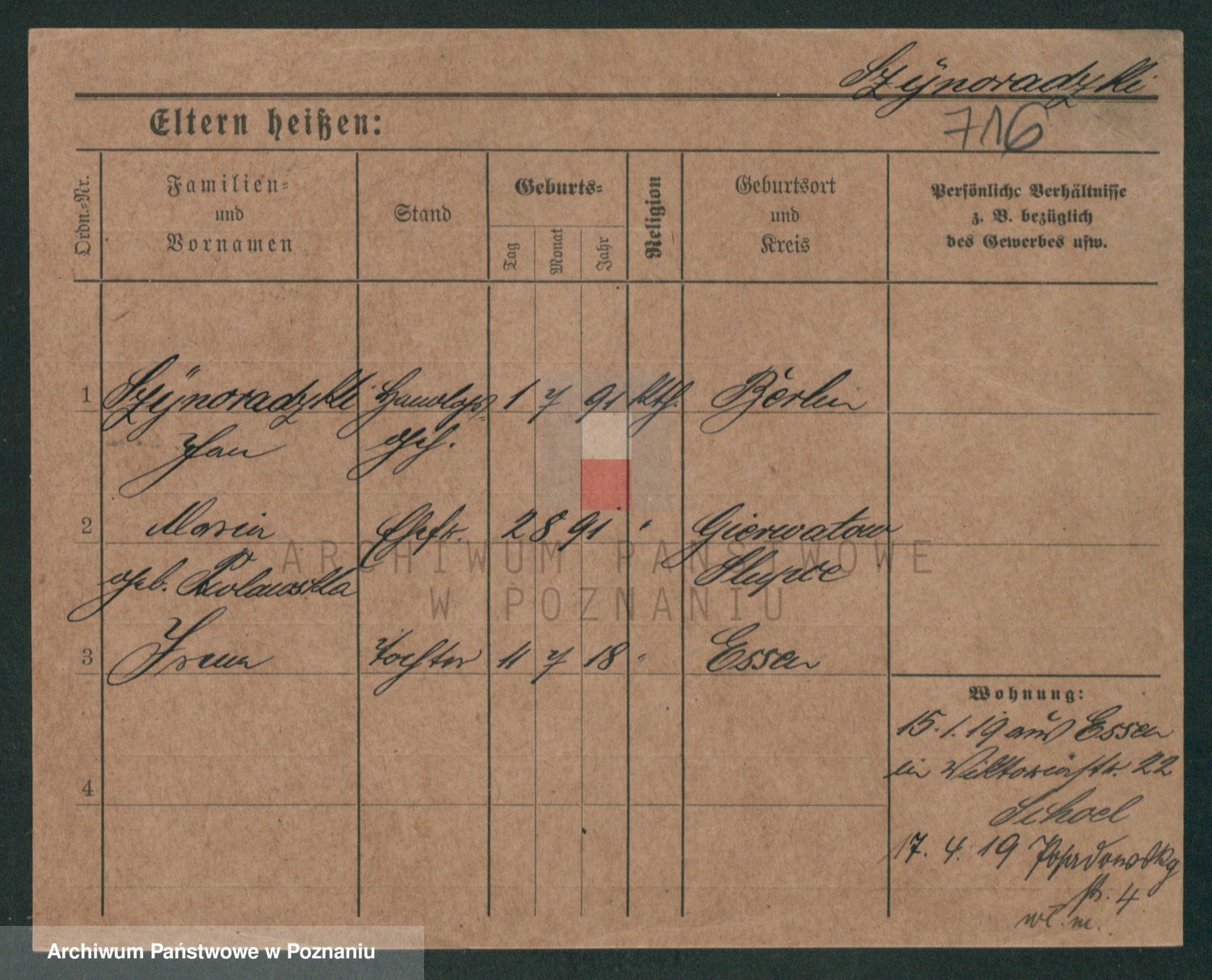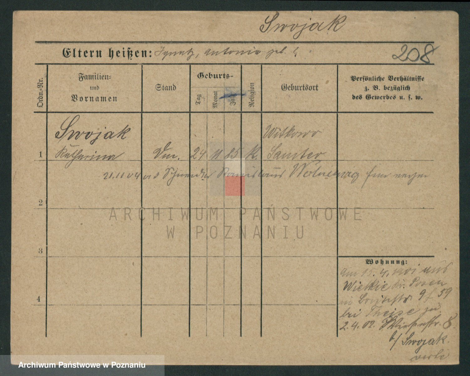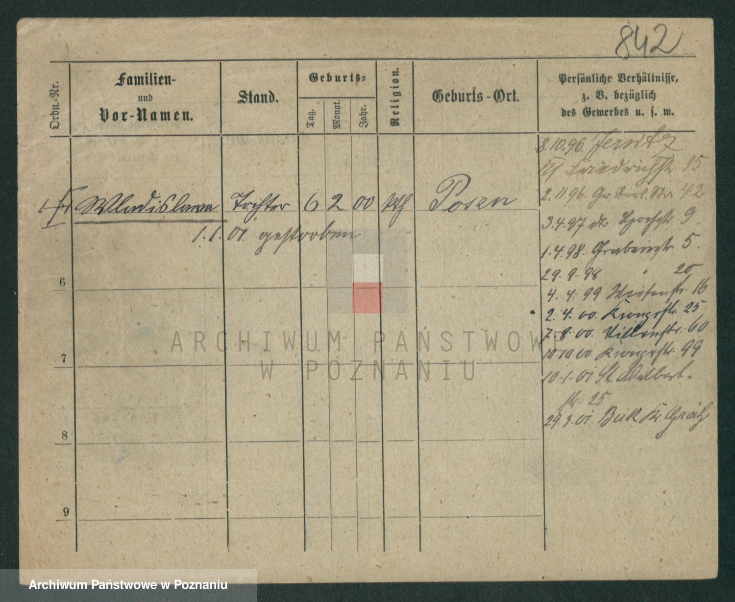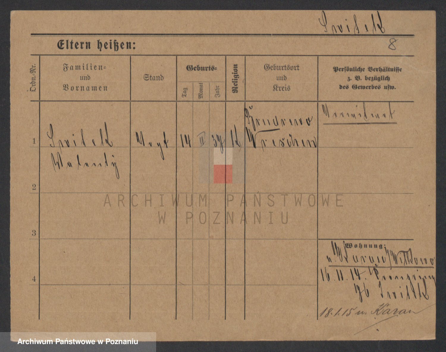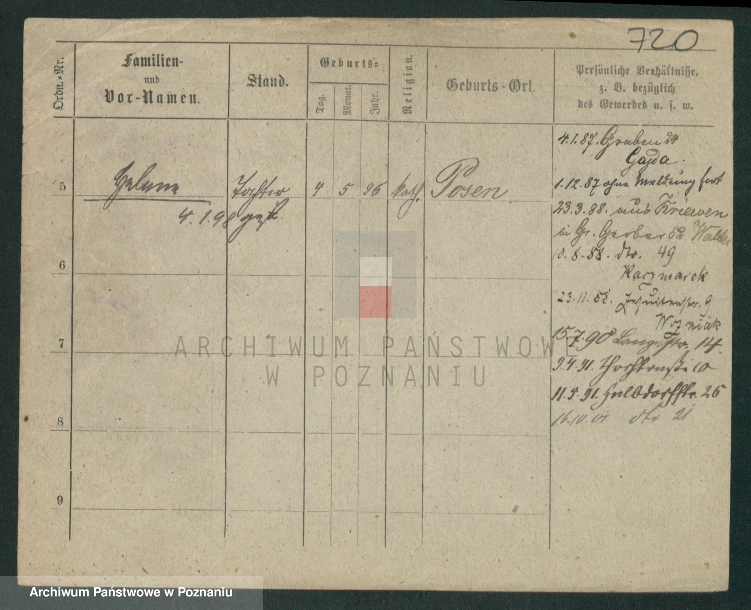 Podgląd karty osobowej dostępny jest po kliknięciu na nazwisko lub ikonkę karty. Można dokonywać powiększenia (ikony na górze) lub przechodzić między kolejnymi skanami (strzałki po bokach).