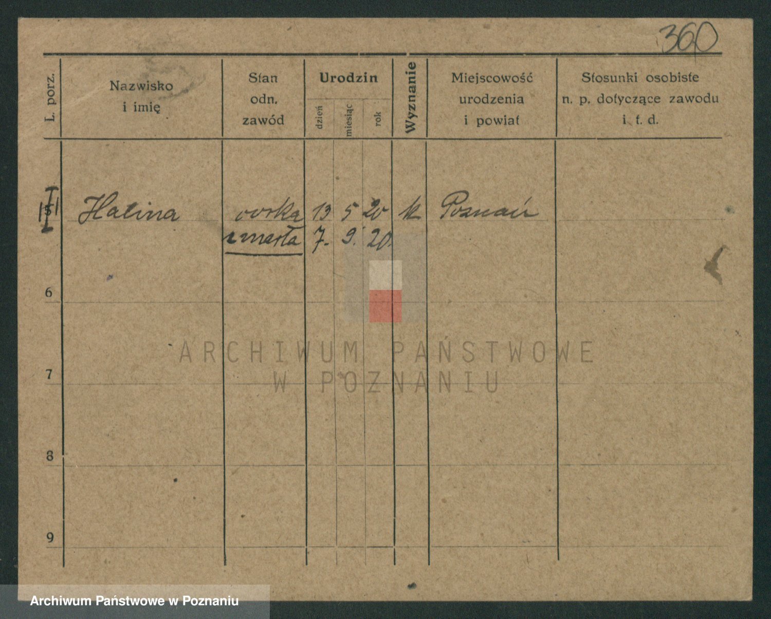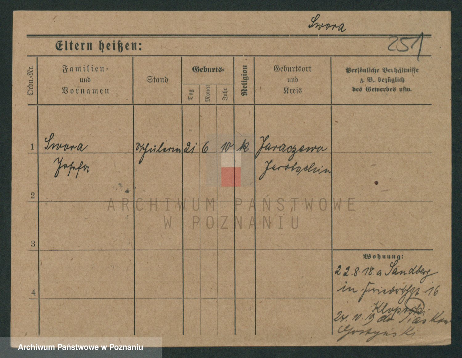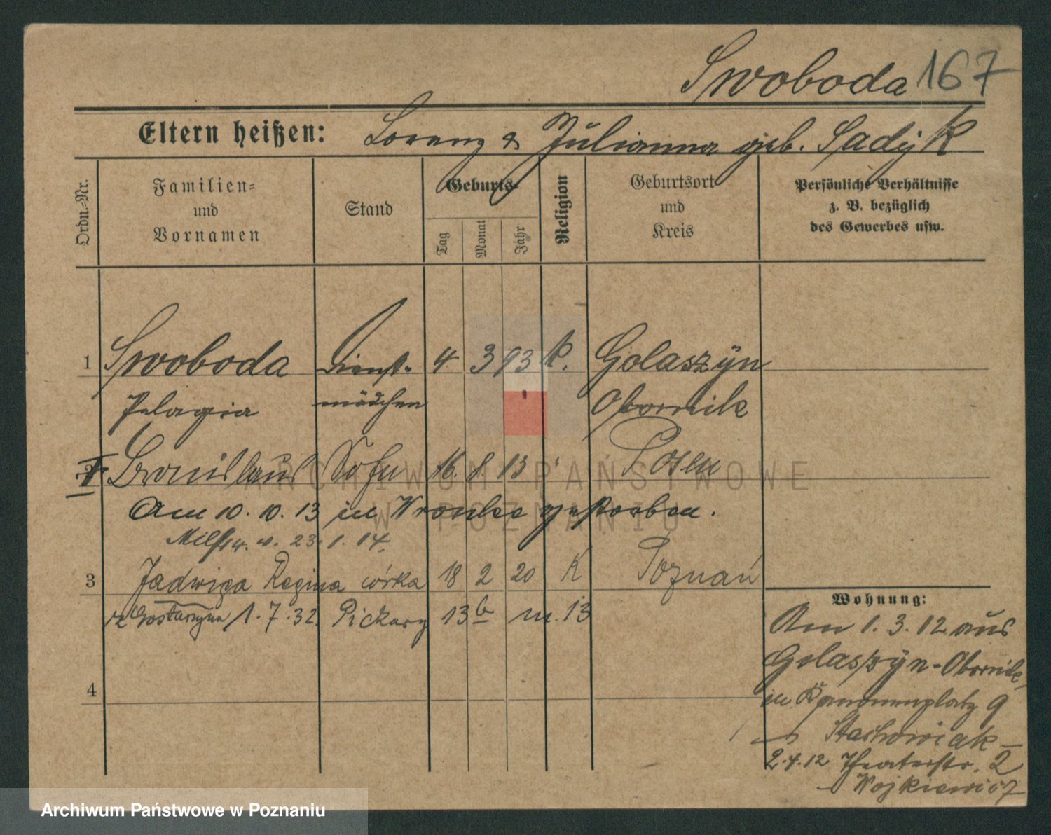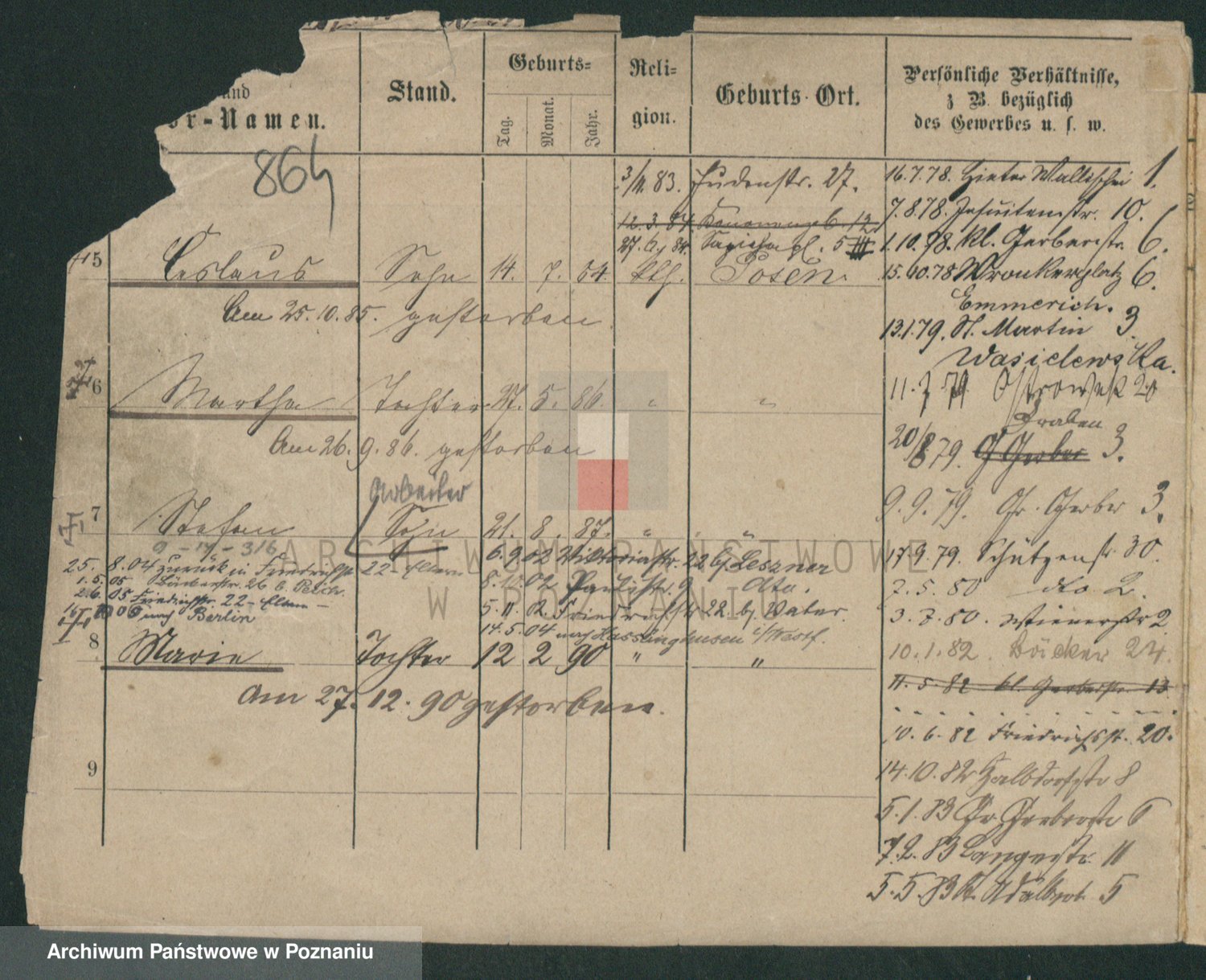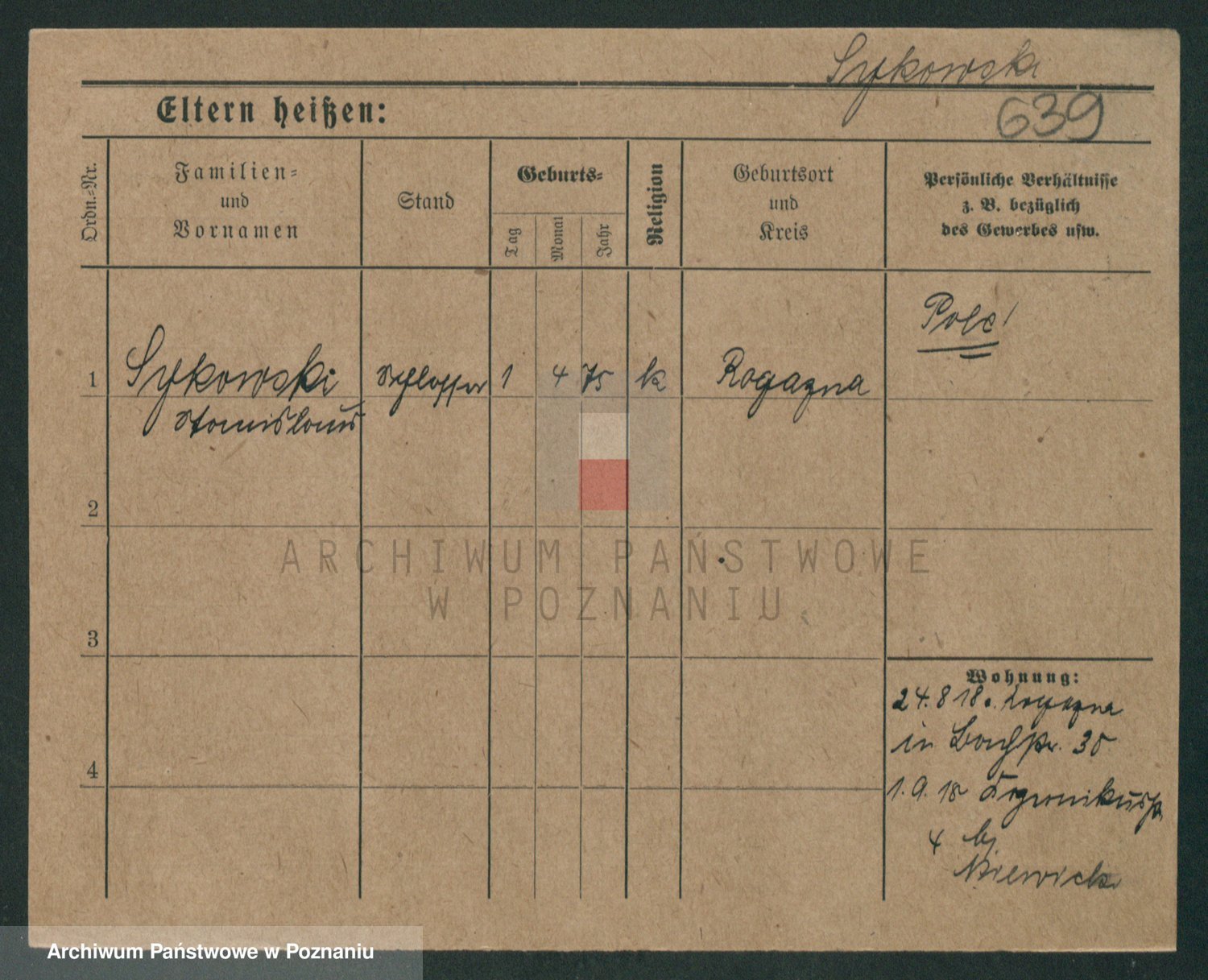 Podgląd karty osobowej dostępny jest po kliknięciu na nazwisko lub ikonkę karty. Można dokonywać powiększenia (ikony na górze) lub przechodzić między kolejnymi skanami (strzałki po bokach).