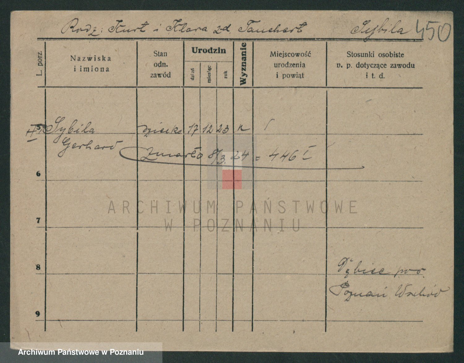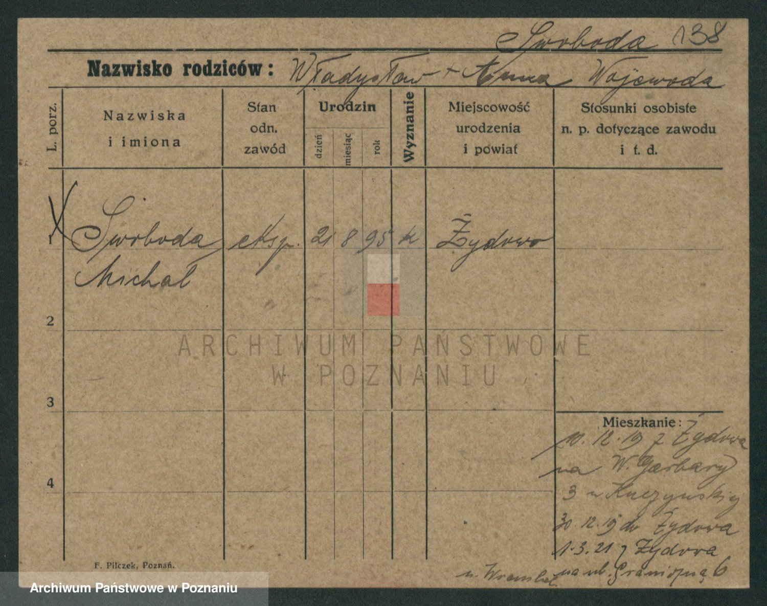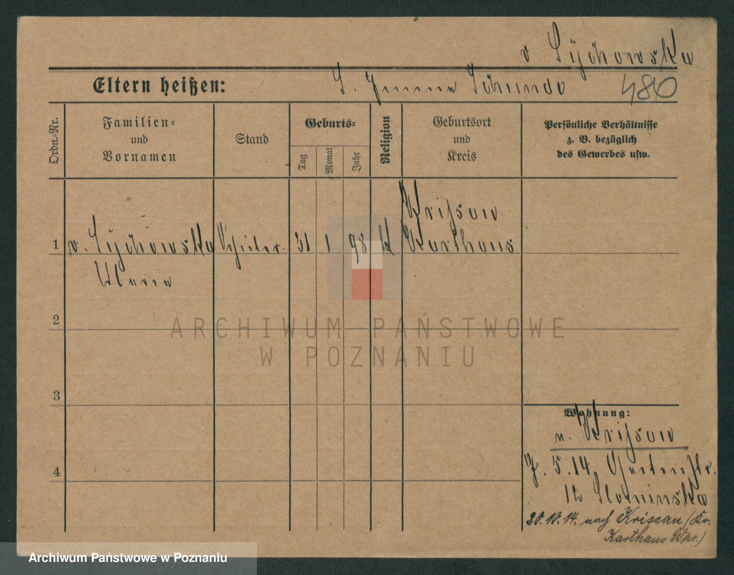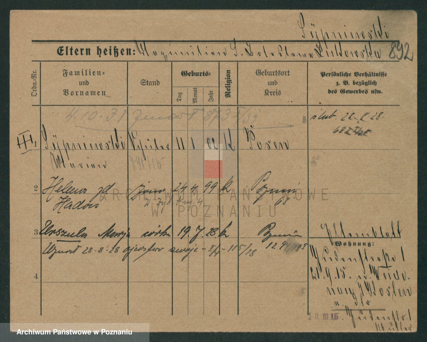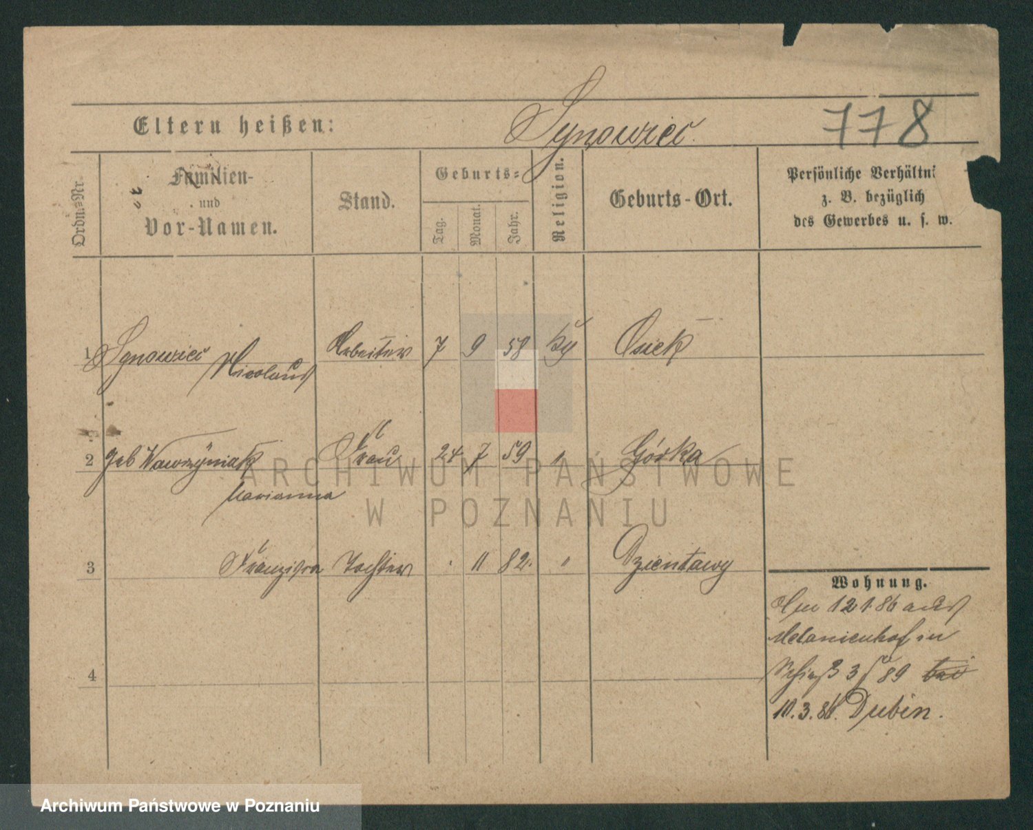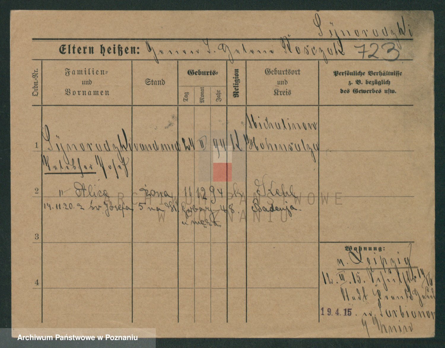 Podgląd karty osobowej dostępny jest po kliknięciu na nazwisko lub ikonkę karty. Można dokonywać powiększenia (ikony na górze) lub przechodzić między kolejnymi skanami (strzałki po bokach).
