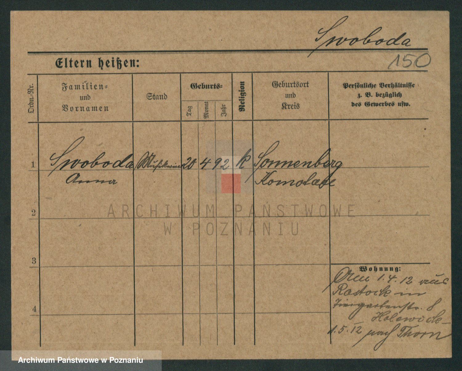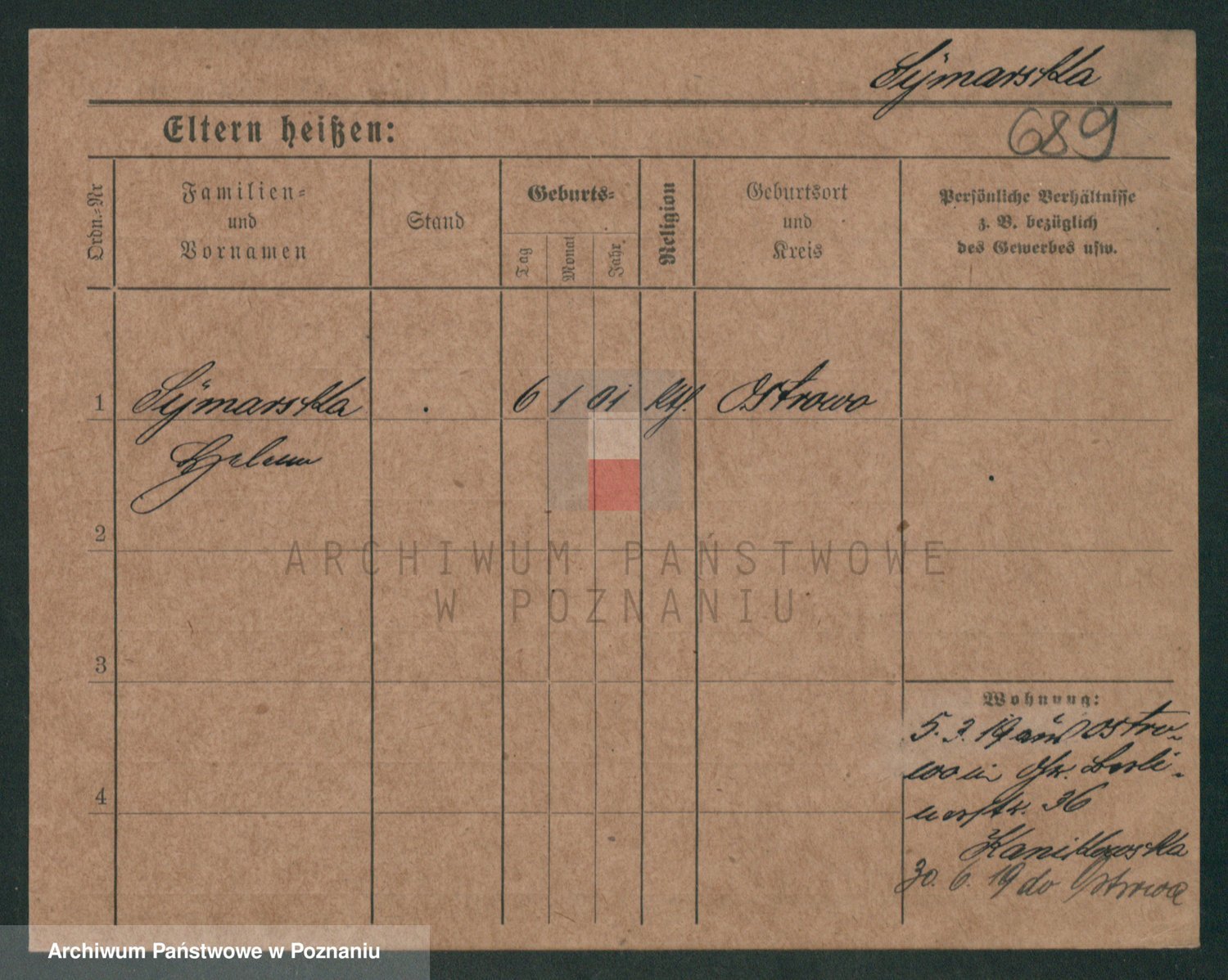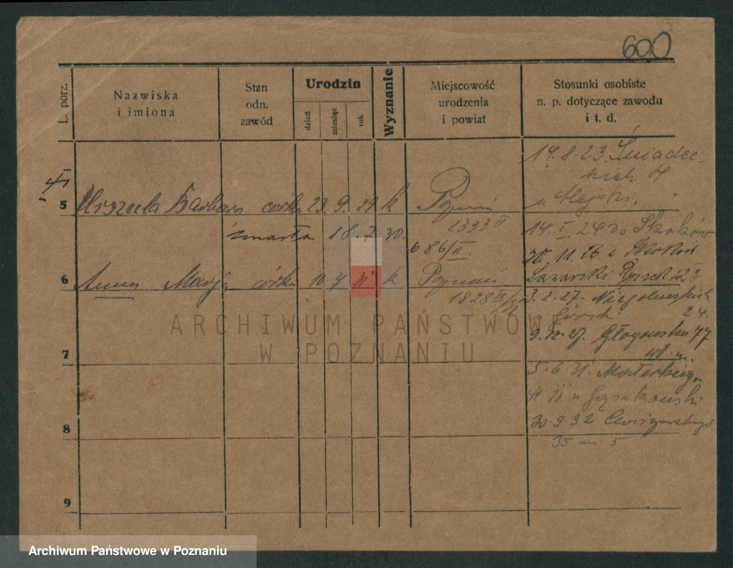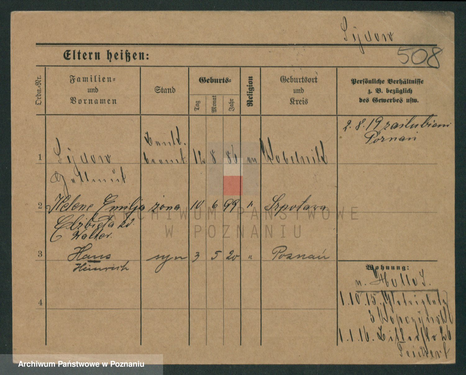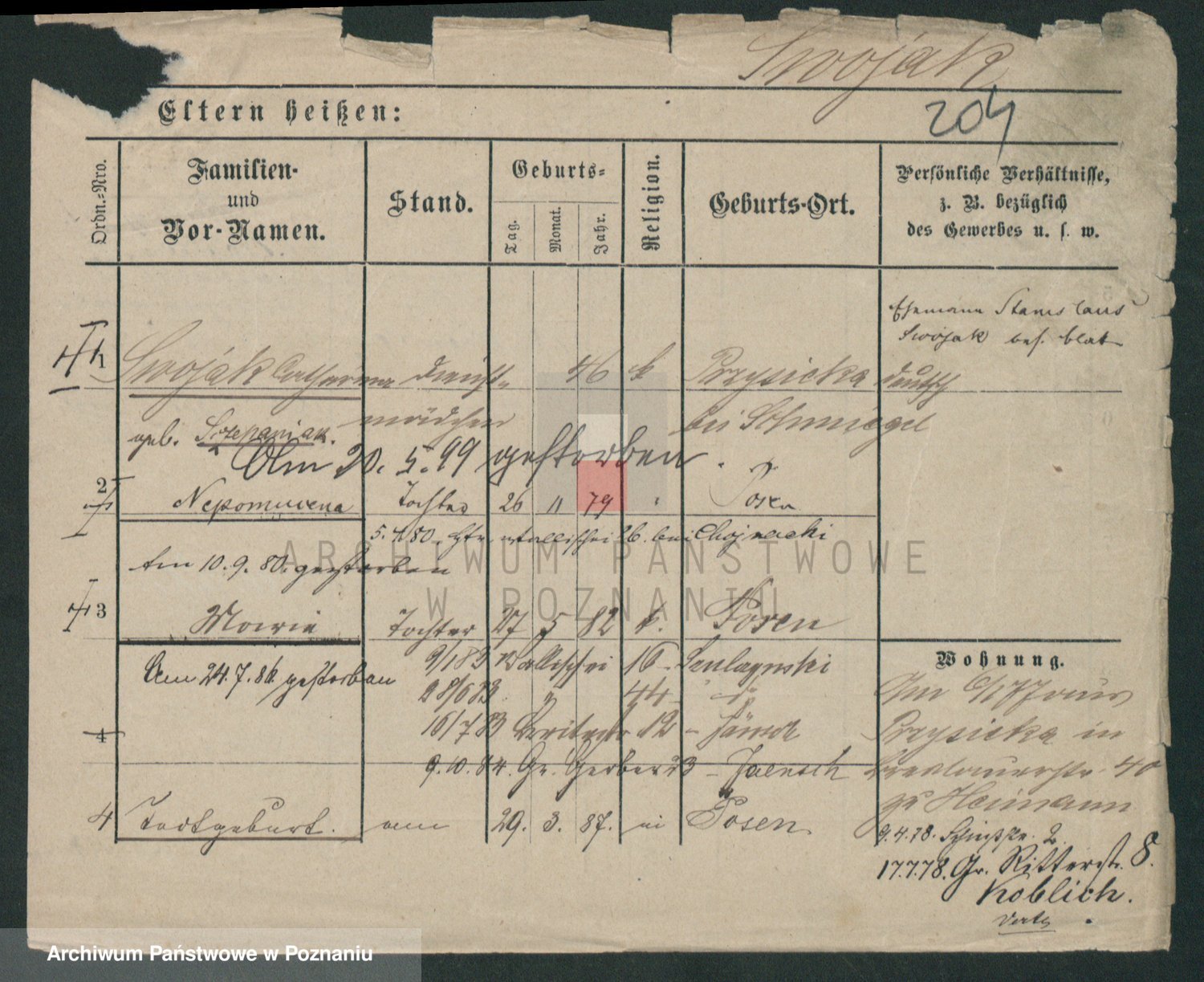 Podgląd karty osobowej dostępny jest po kliknięciu na nazwisko lub ikonkę karty. Można dokonywać powiększenia (ikony na górze) lub przechodzić między kolejnymi skanami (strzałki po bokach).