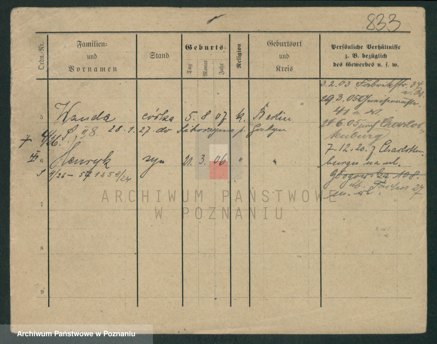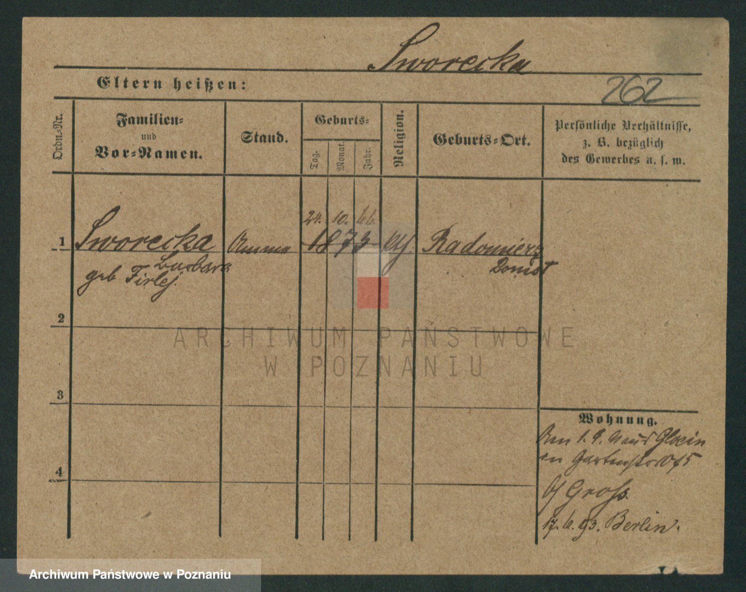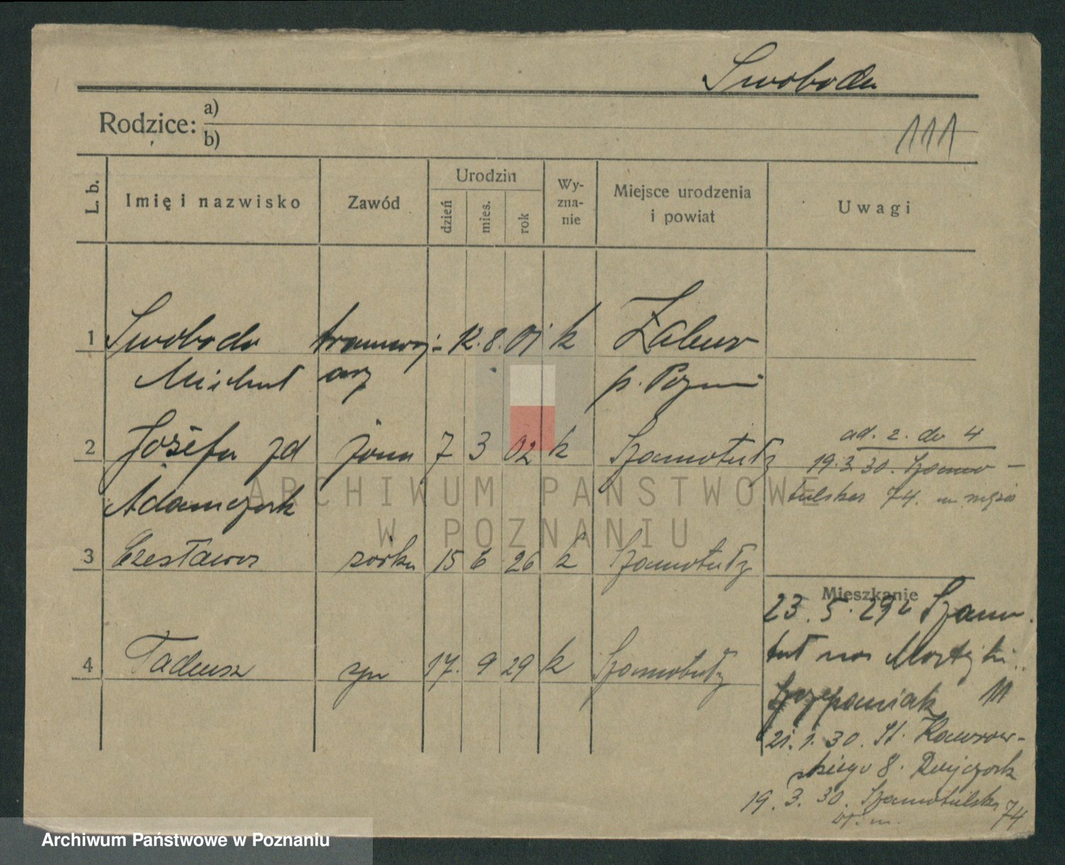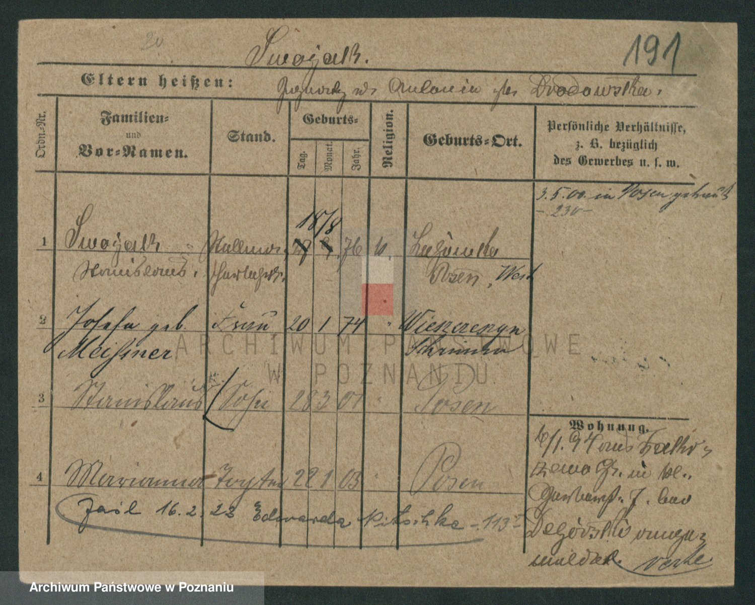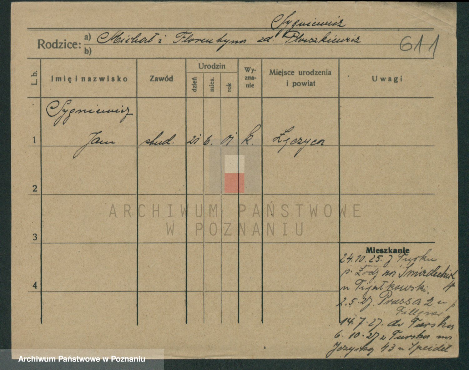 Podgląd karty osobowej dostępny jest po kliknięciu na nazwisko lub ikonkę karty. Można dokonywać powiększenia (ikony na górze) lub przechodzić między kolejnymi skanami (strzałki po bokach).