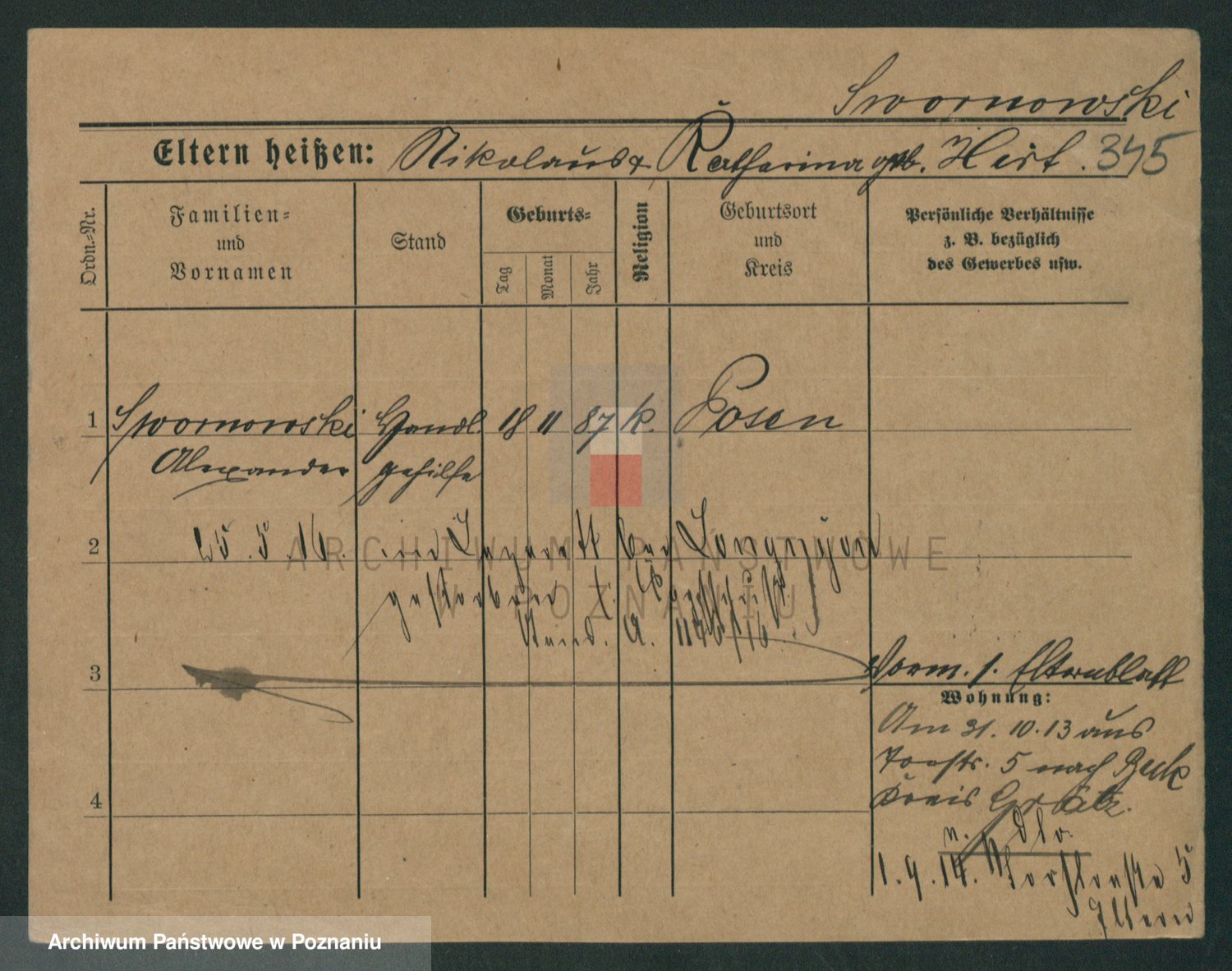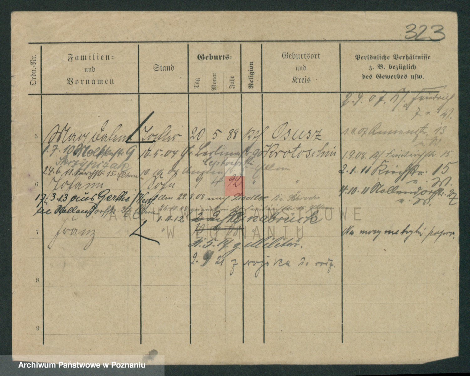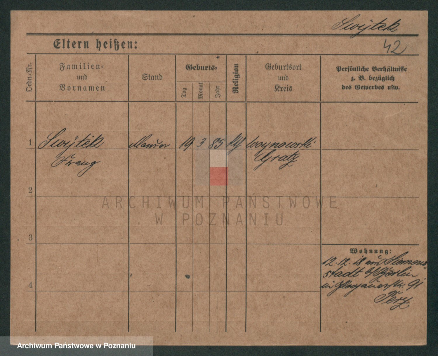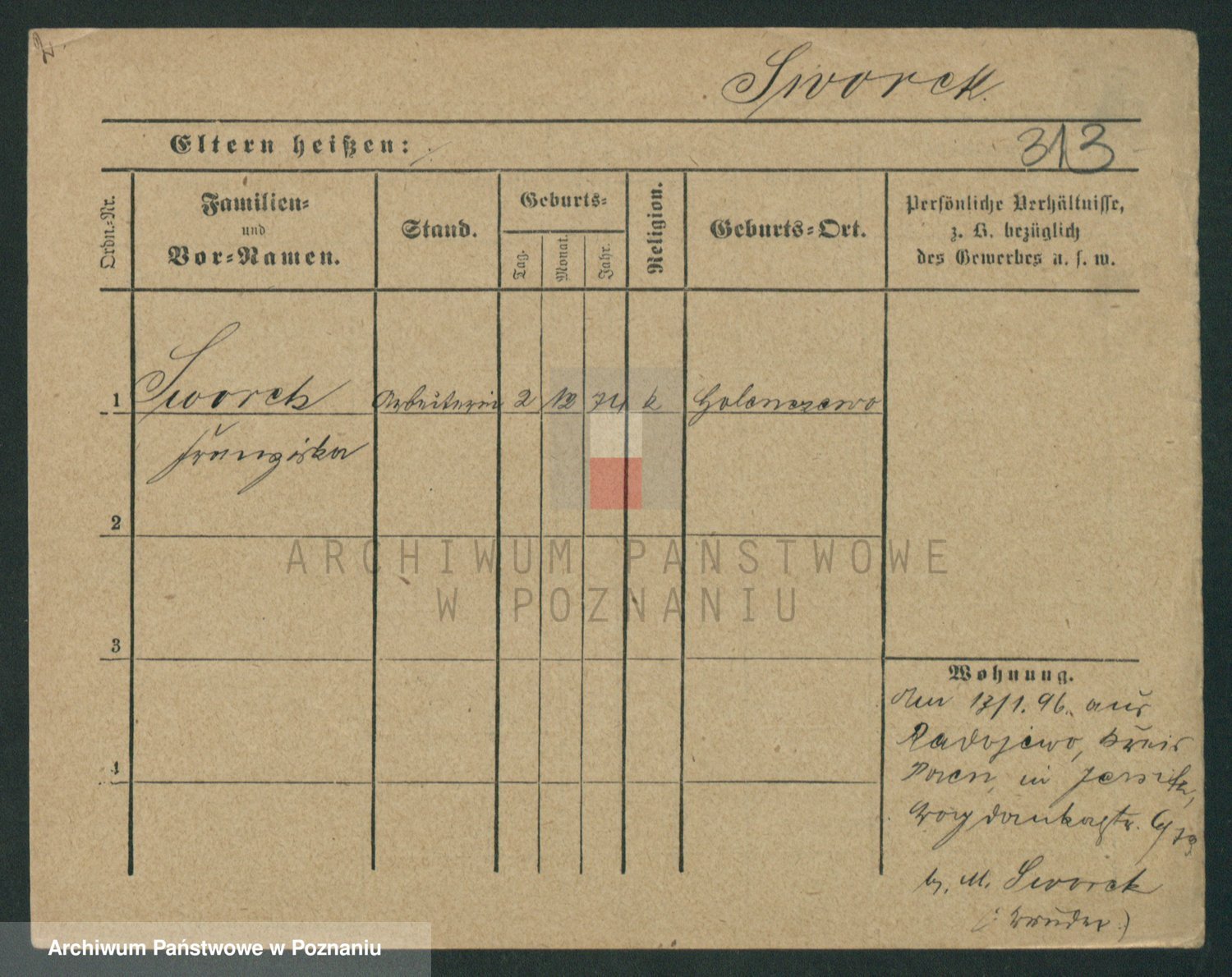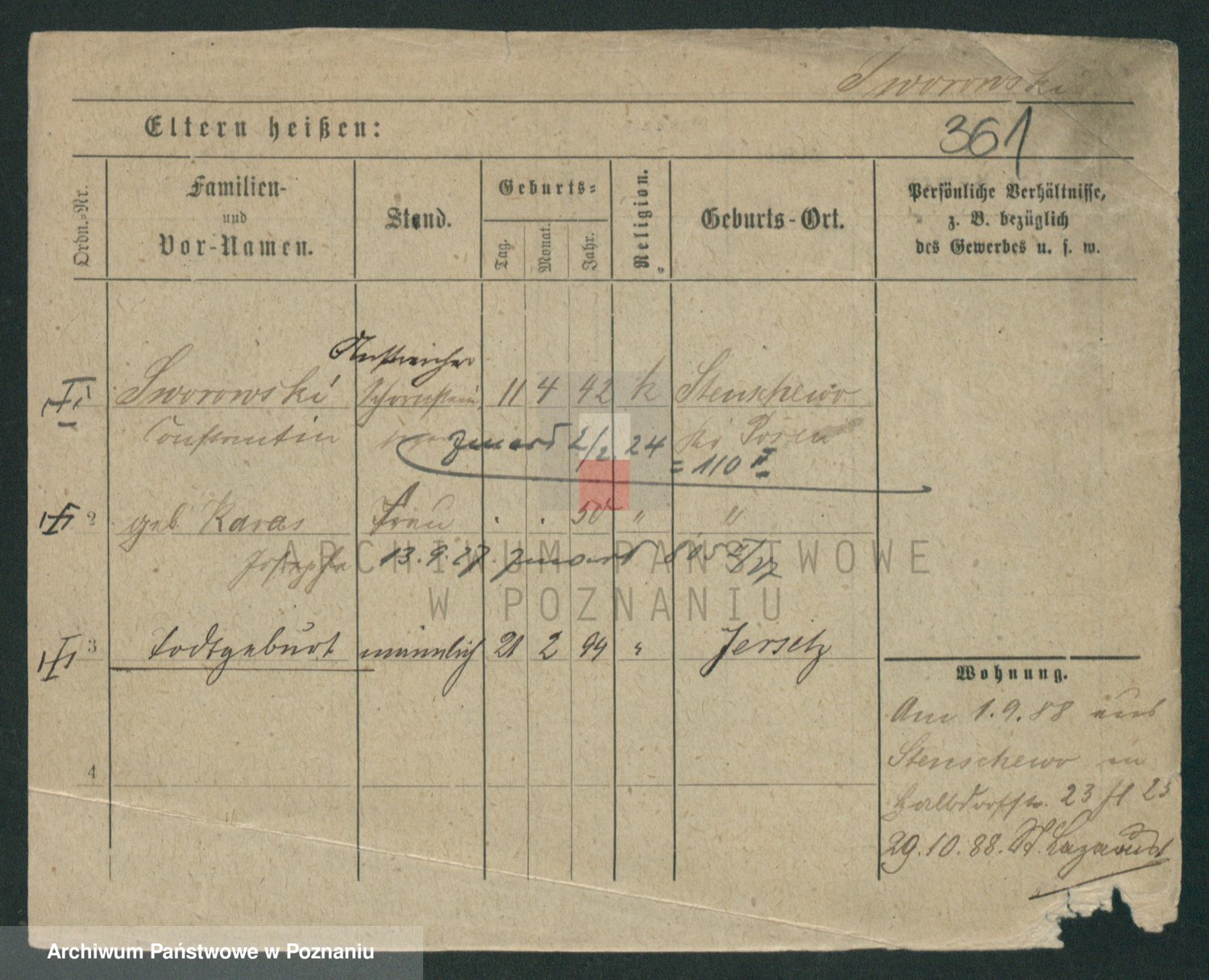 Podgląd karty osobowej dostępny jest po kliknięciu na nazwisko lub ikonkę karty. Można dokonywać powiększenia (ikony na górze) lub przechodzić między kolejnymi skanami (strzałki po bokach).