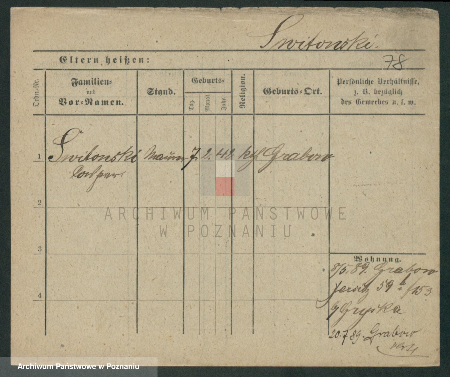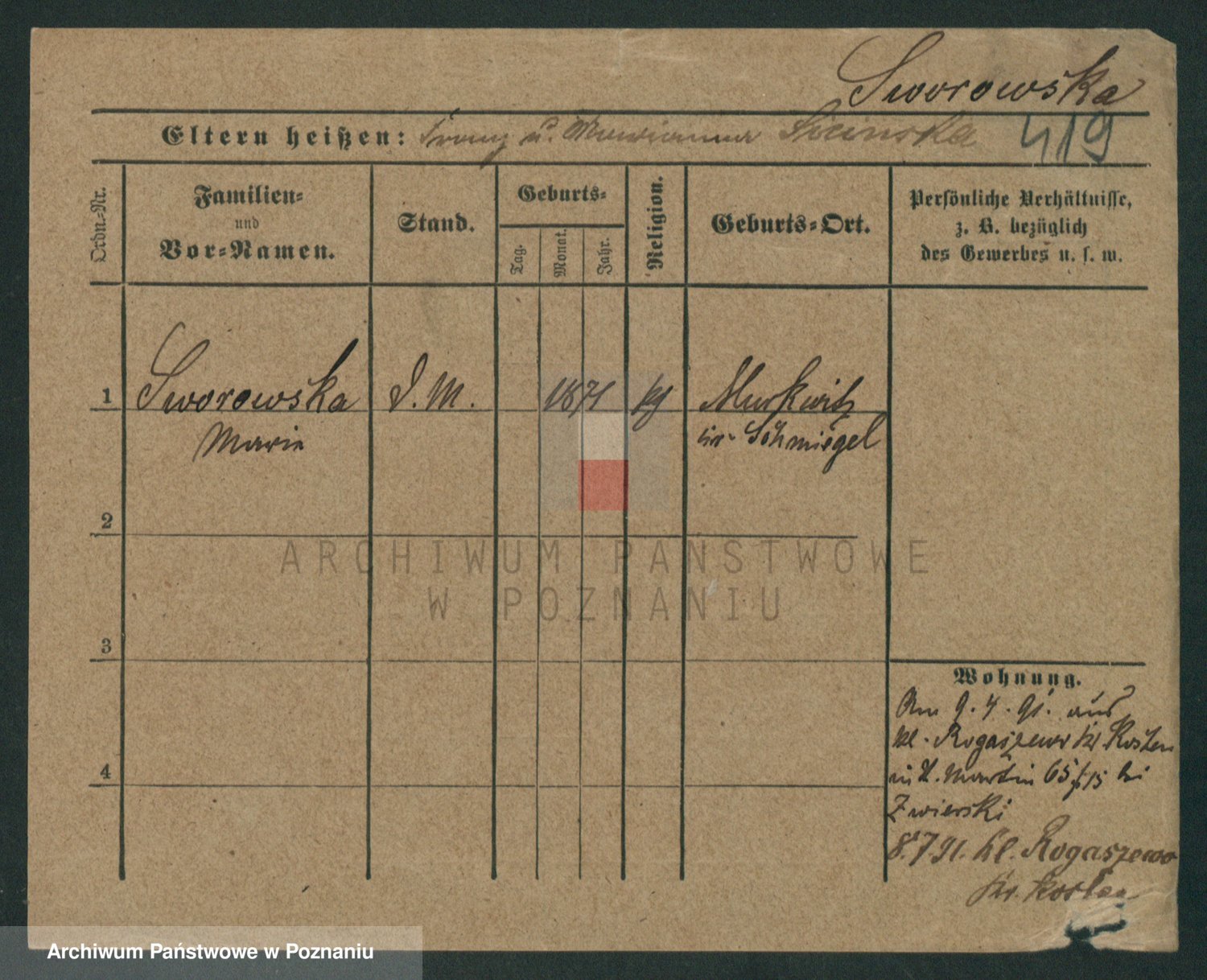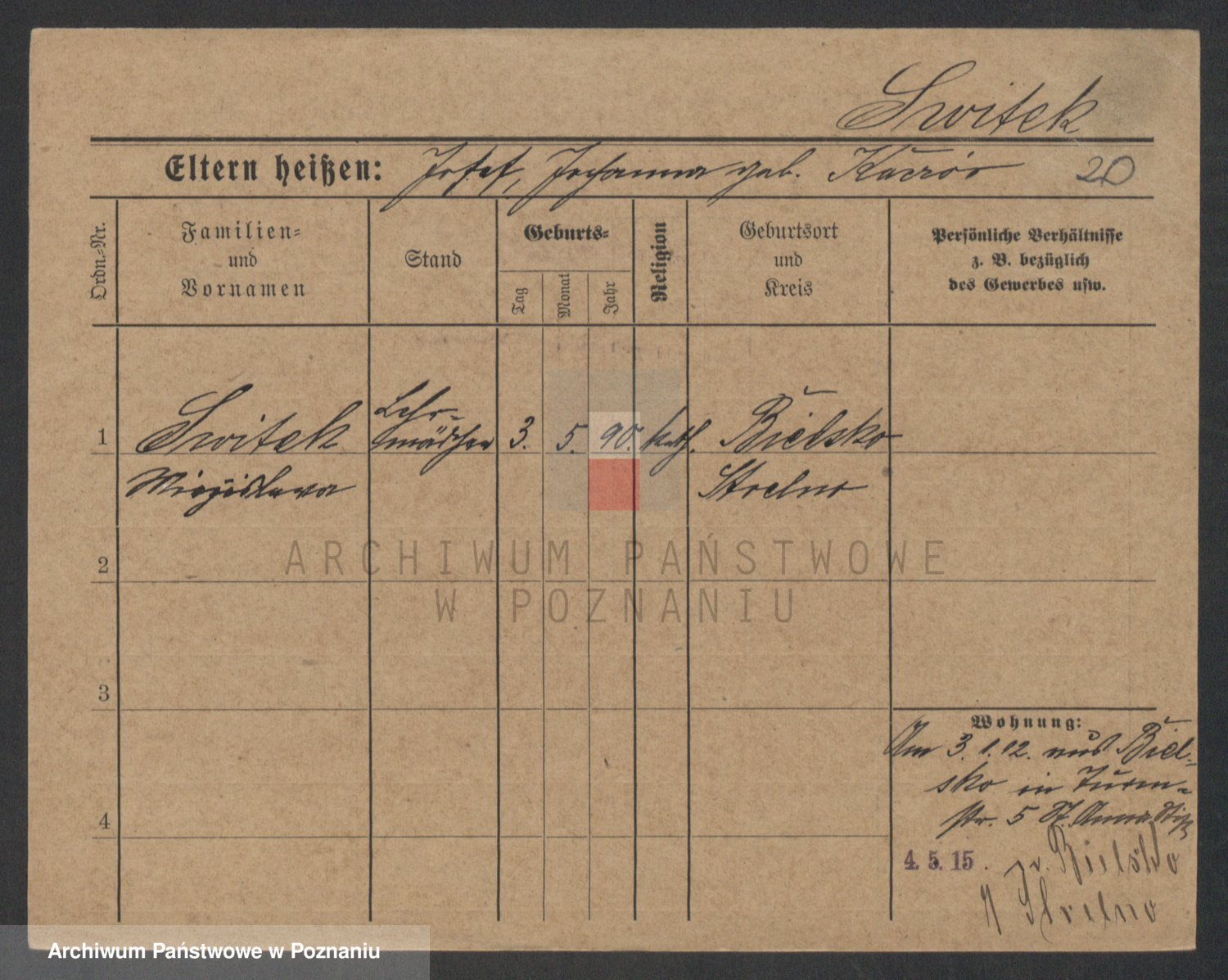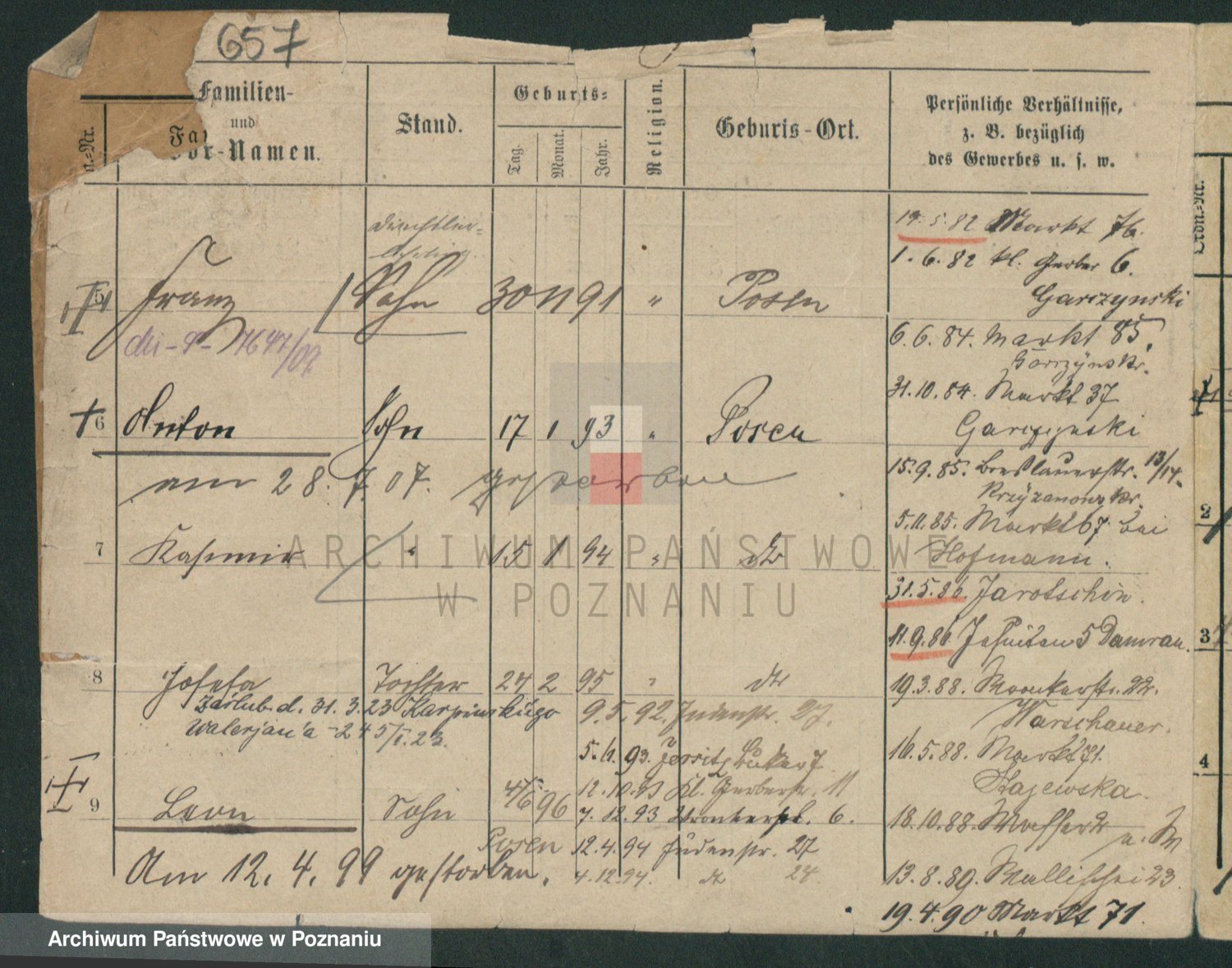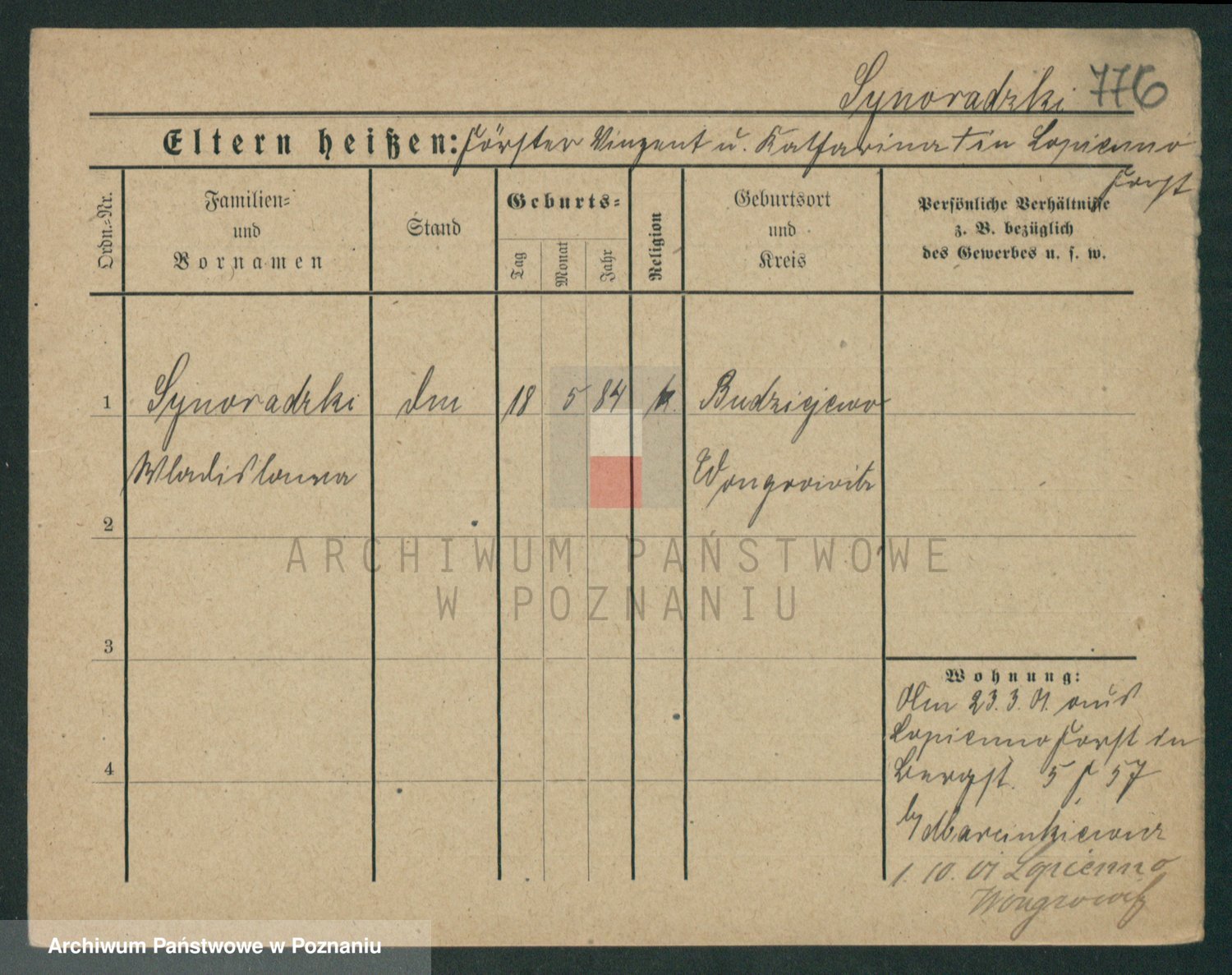 Podgląd karty osobowej dostępny jest po kliknięciu na nazwisko lub ikonkę karty. Można dokonywać powiększenia (ikony na górze) lub przechodzić między kolejnymi skanami (strzałki po bokach).
