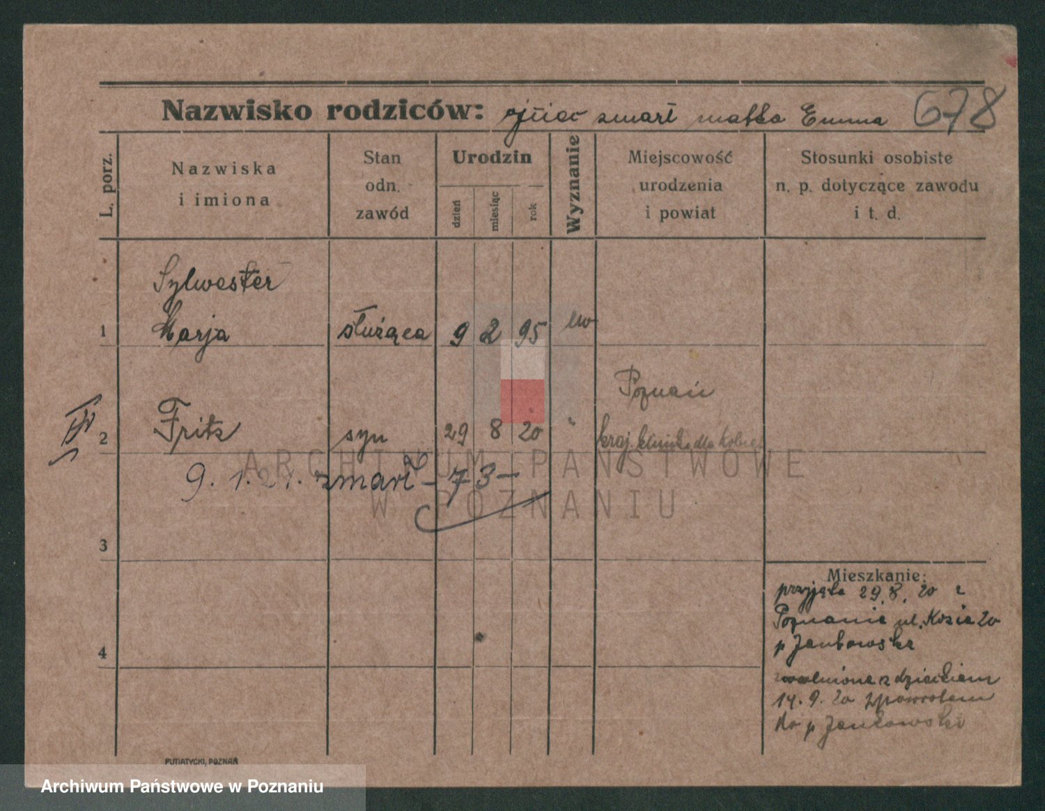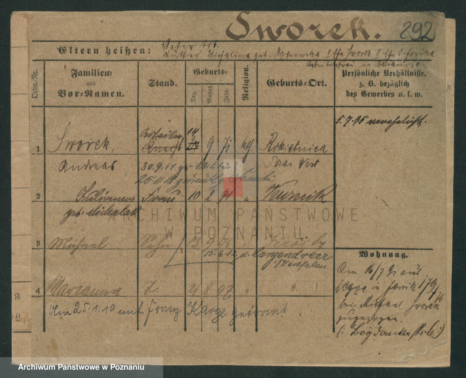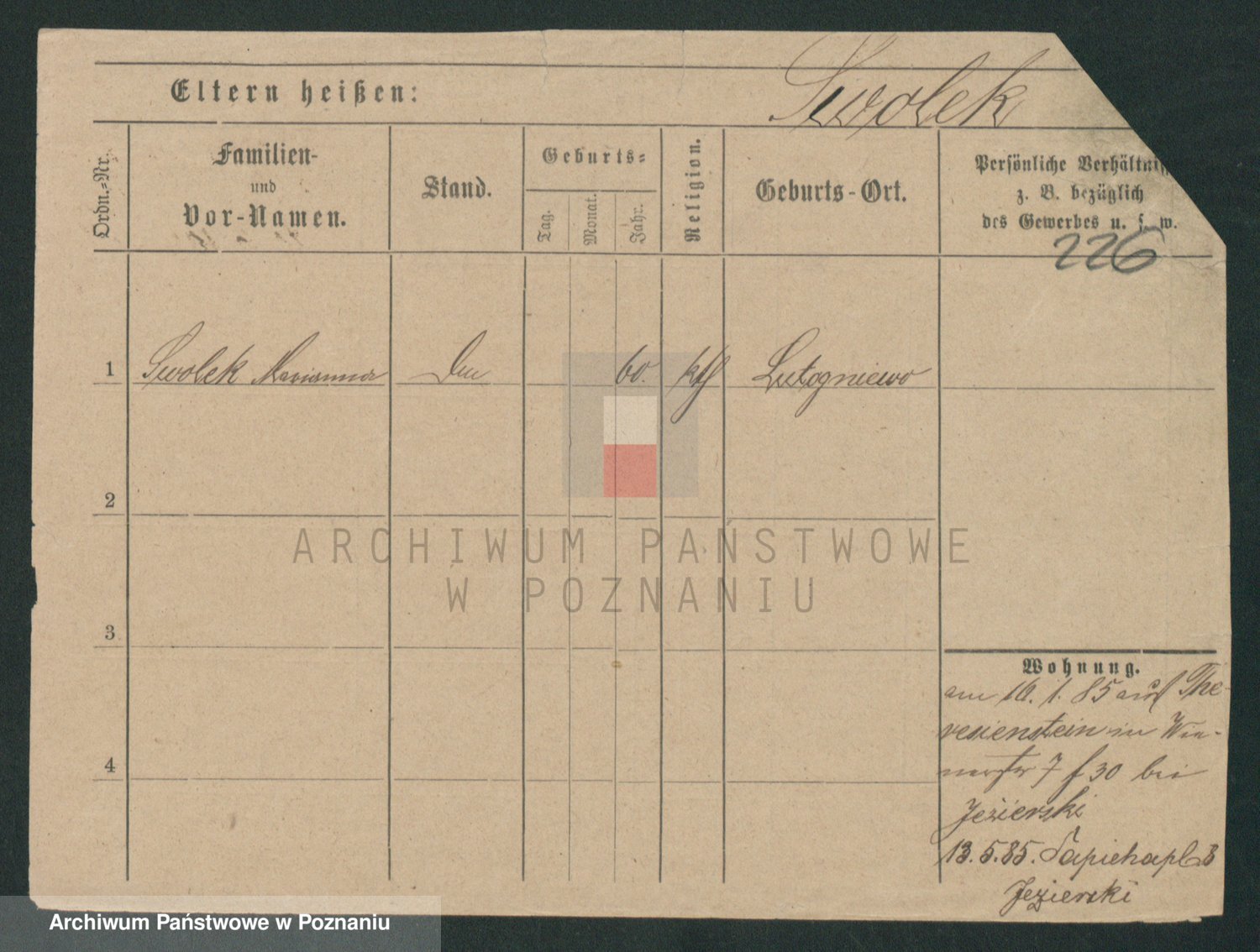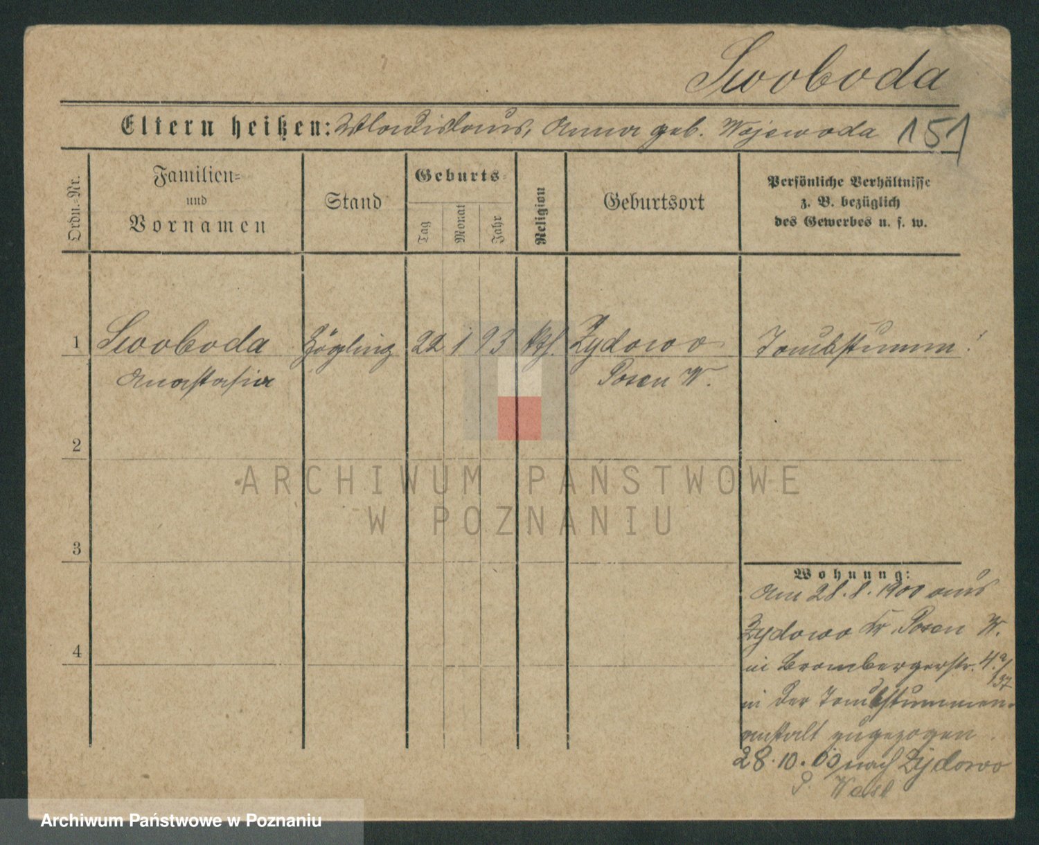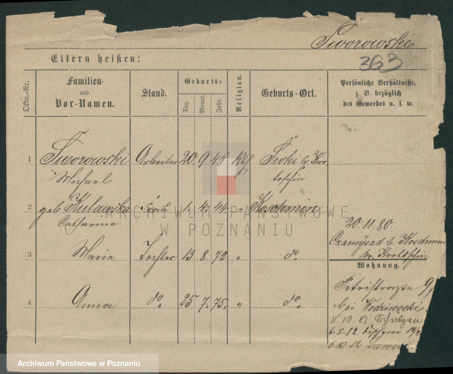 Podgląd karty osobowej dostępny jest po kliknięciu na nazwisko lub ikonkę karty. Można dokonywać powiększenia (ikony na górze) lub przechodzić między kolejnymi skanami (strzałki po bokach).