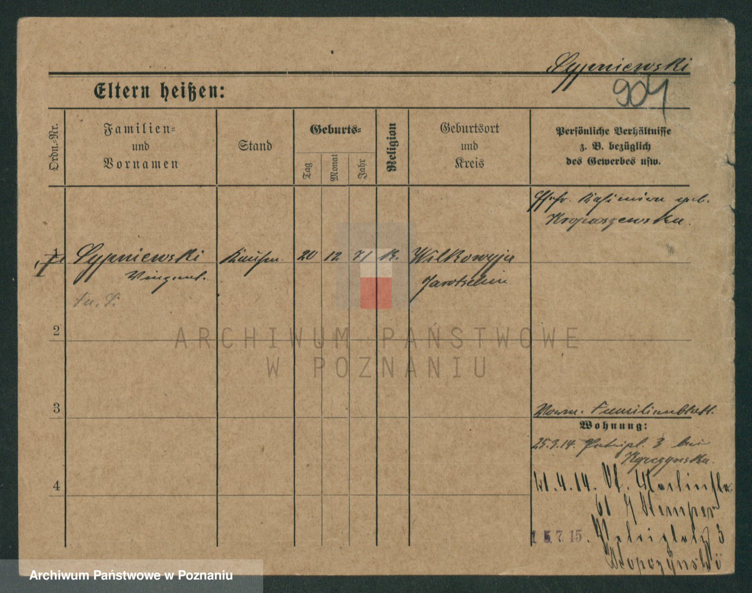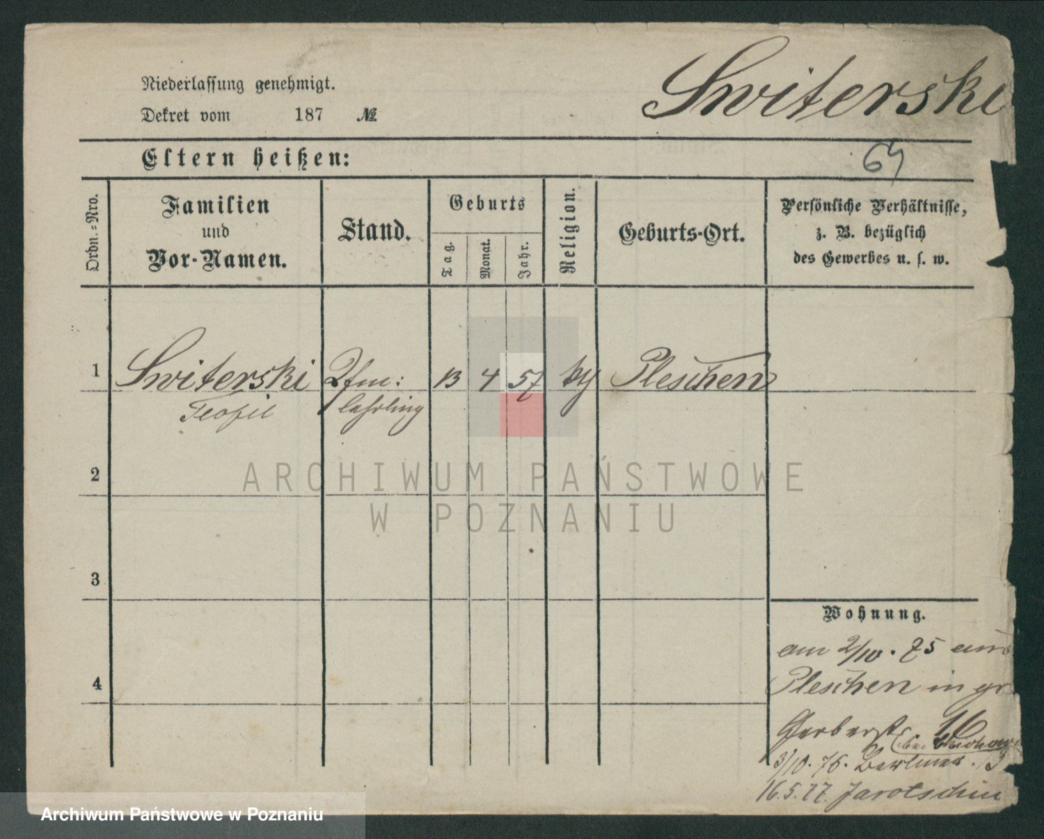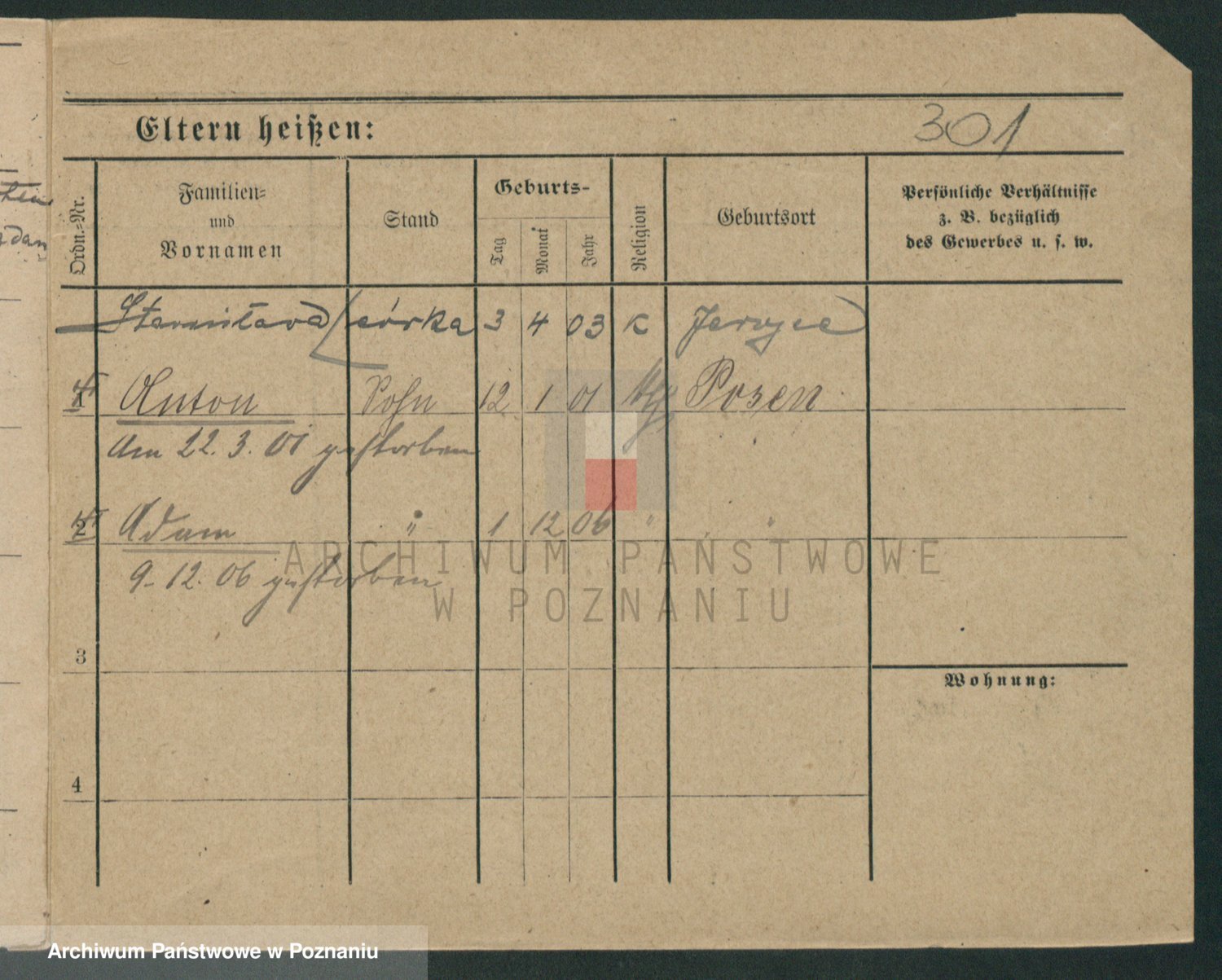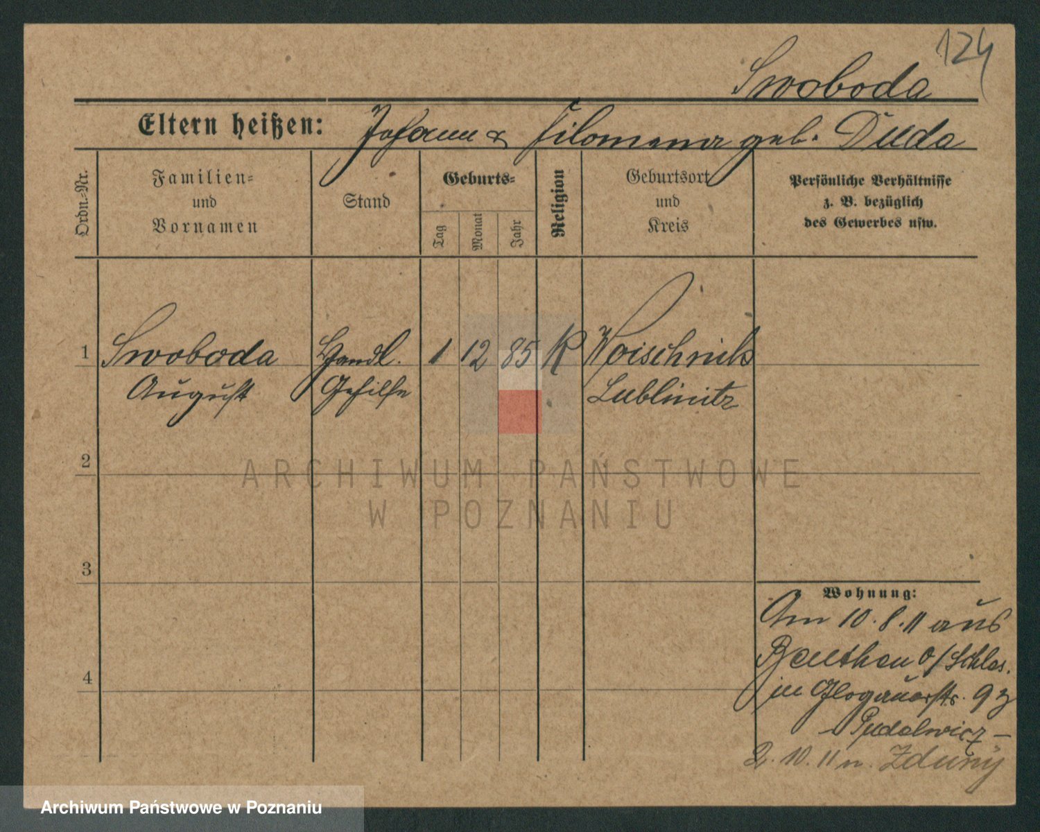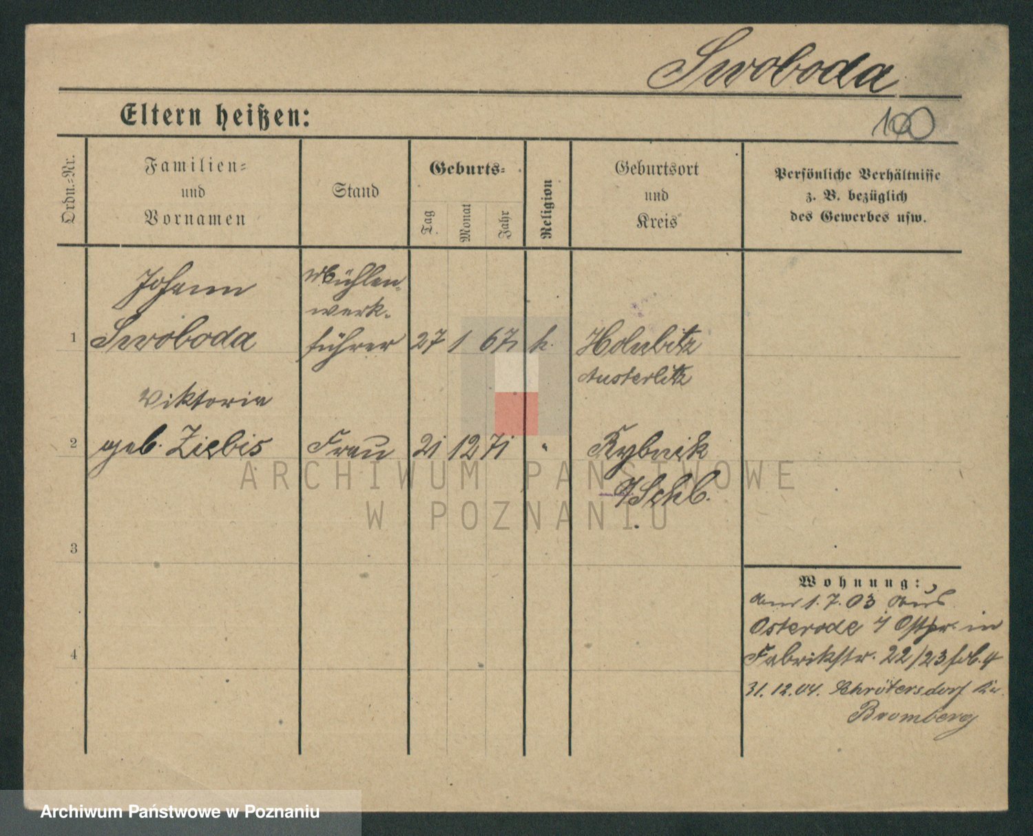 Podgląd karty osobowej dostępny jest po kliknięciu na nazwisko lub ikonkę karty. Można dokonywać powiększenia (ikony na górze) lub przechodzić między kolejnymi skanami (strzałki po bokach).
