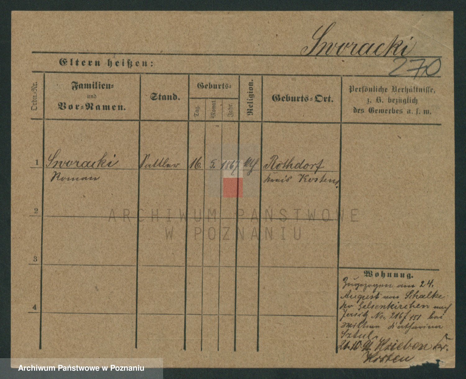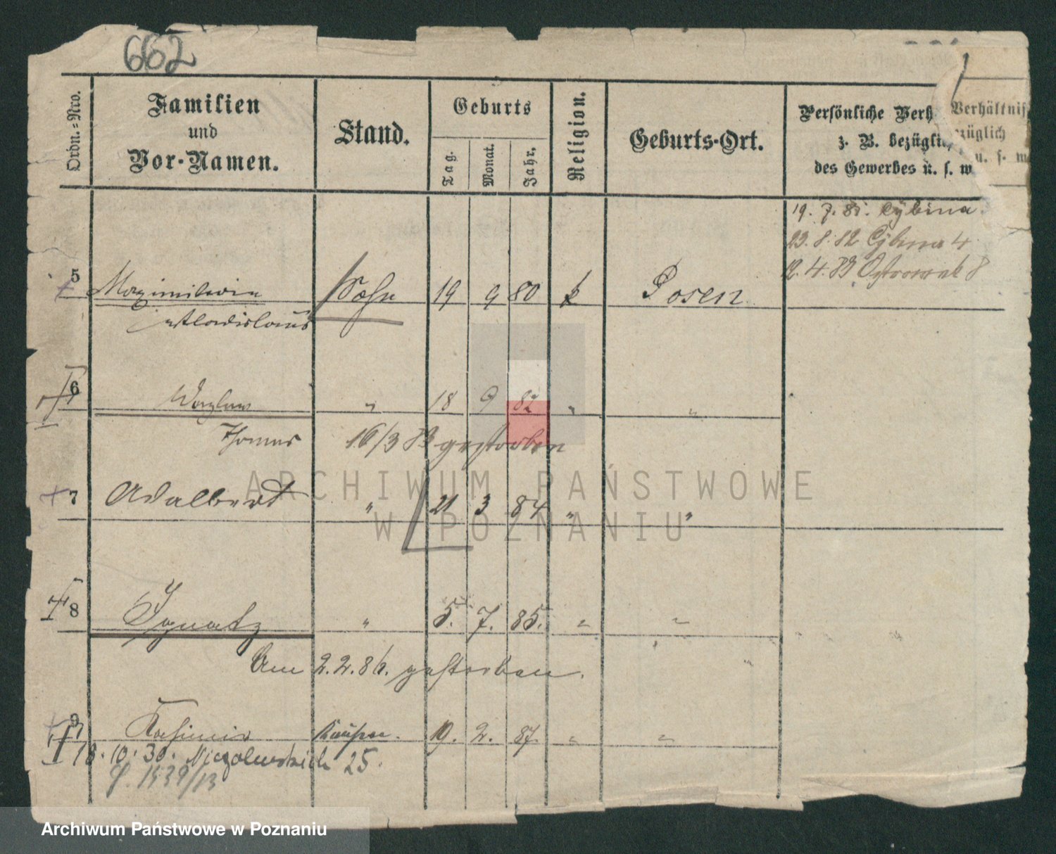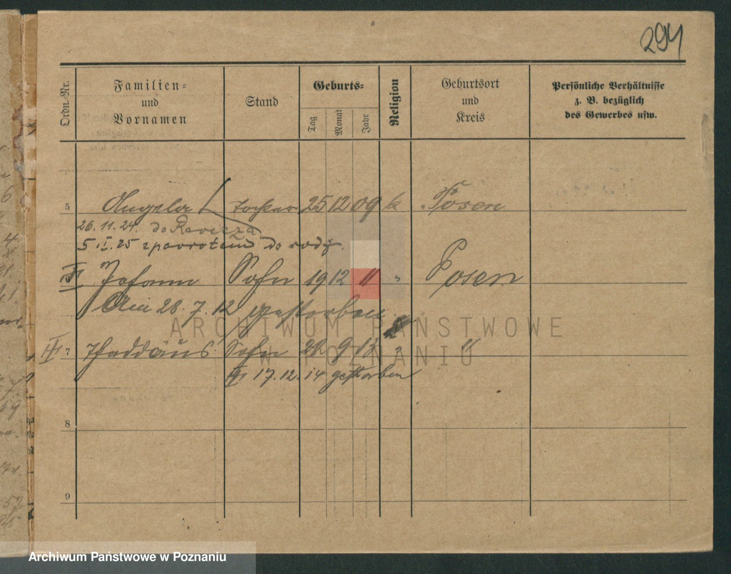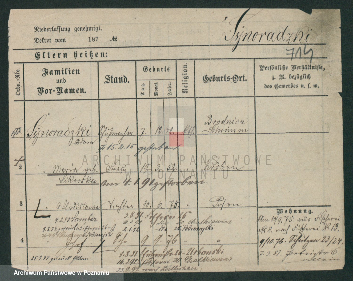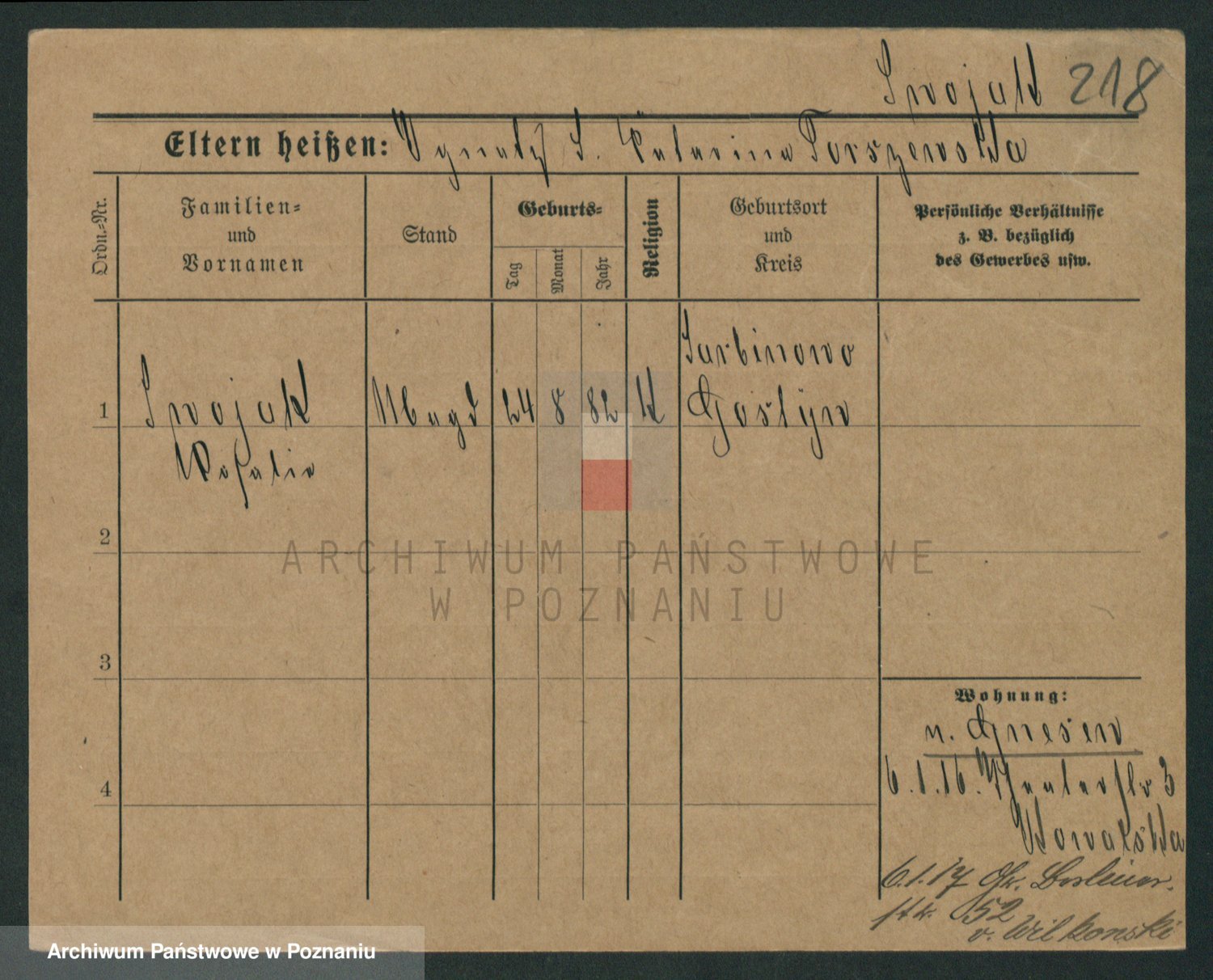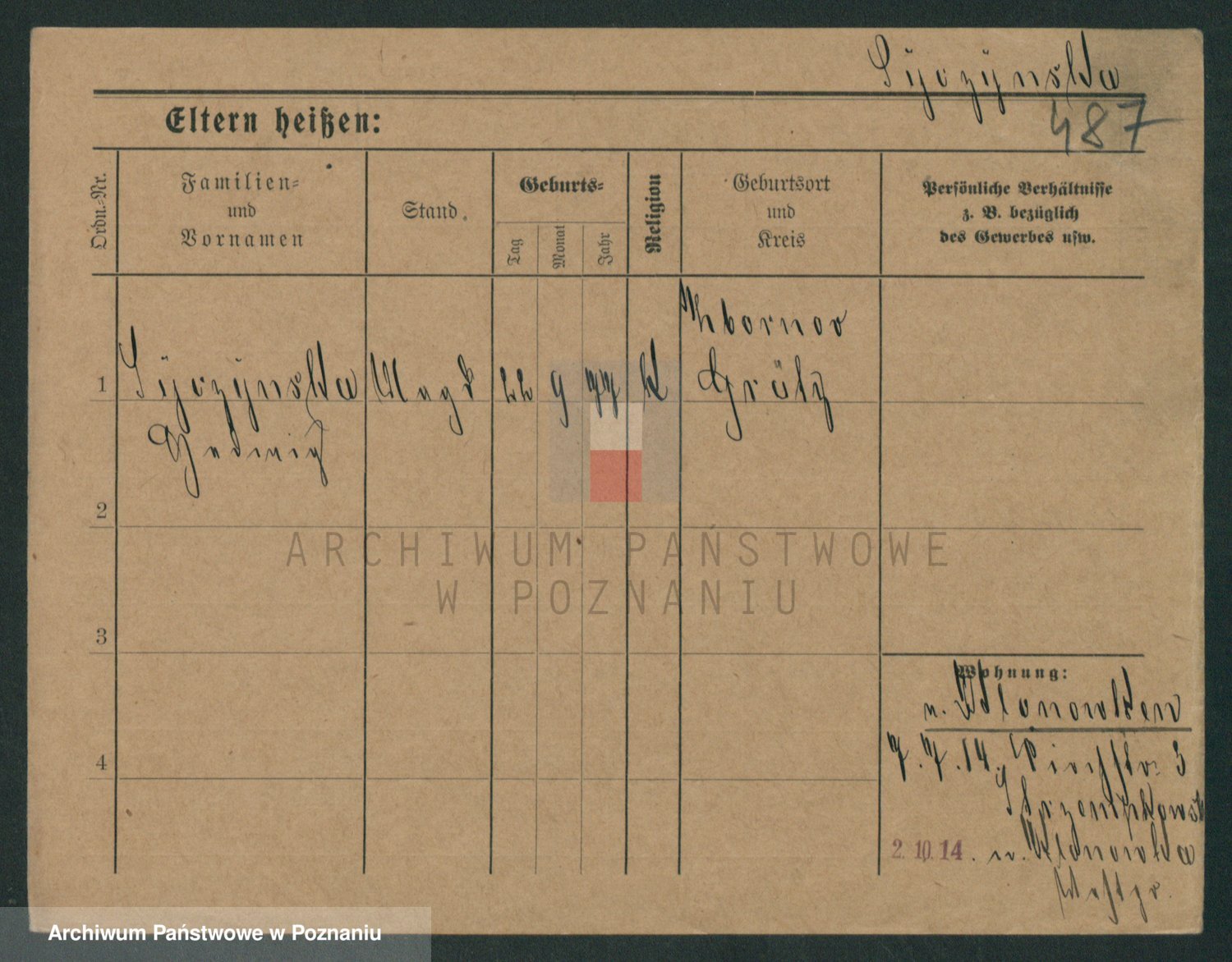 Podgląd karty osobowej dostępny jest po kliknięciu na nazwisko lub ikonkę karty. Można dokonywać powiększenia (ikony na górze) lub przechodzić między kolejnymi skanami (strzałki po bokach).