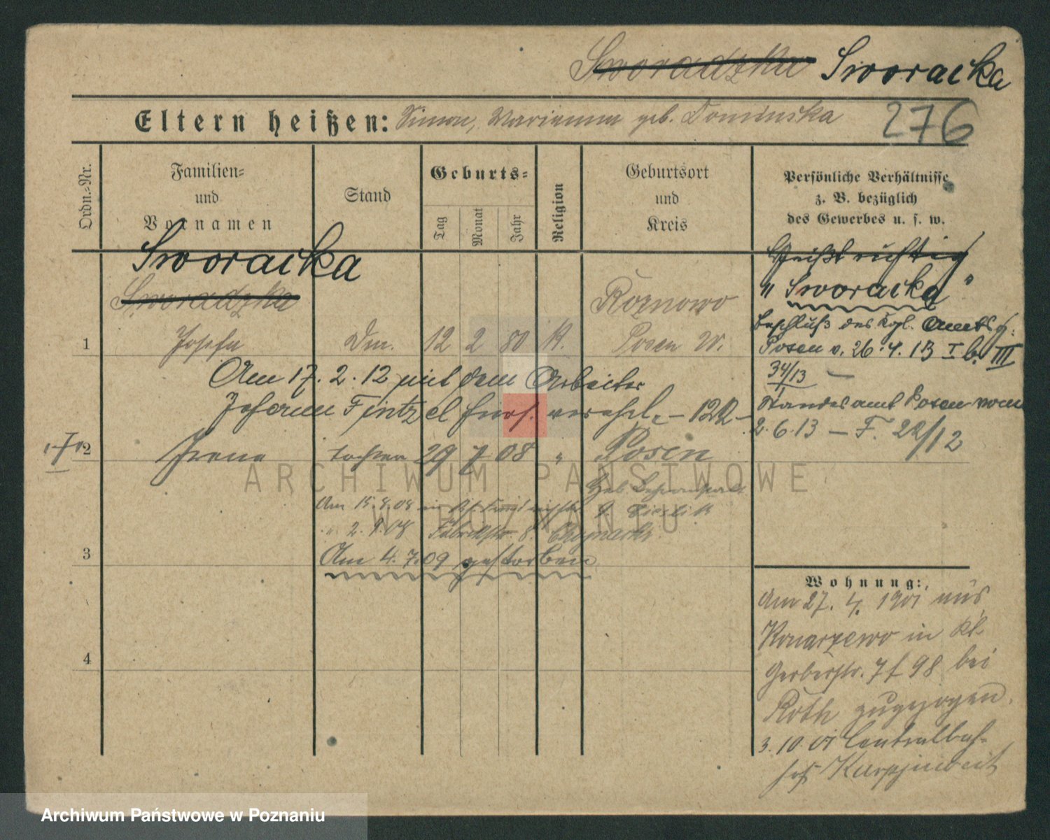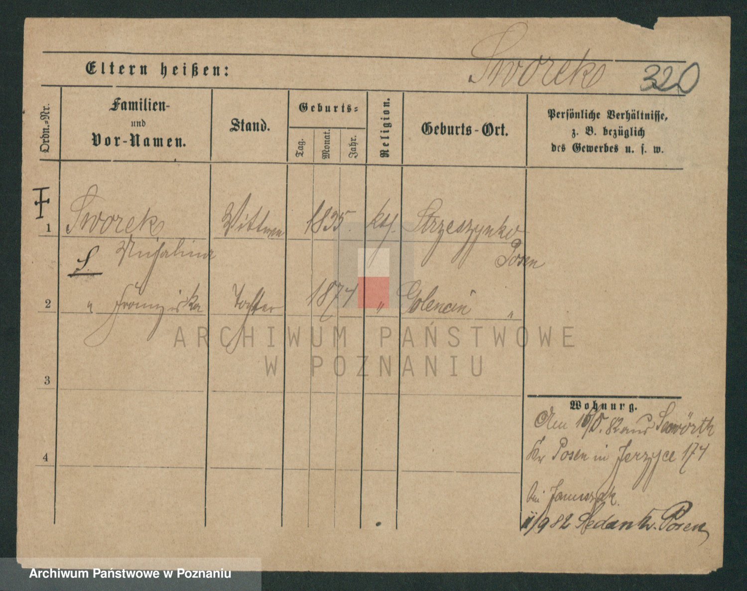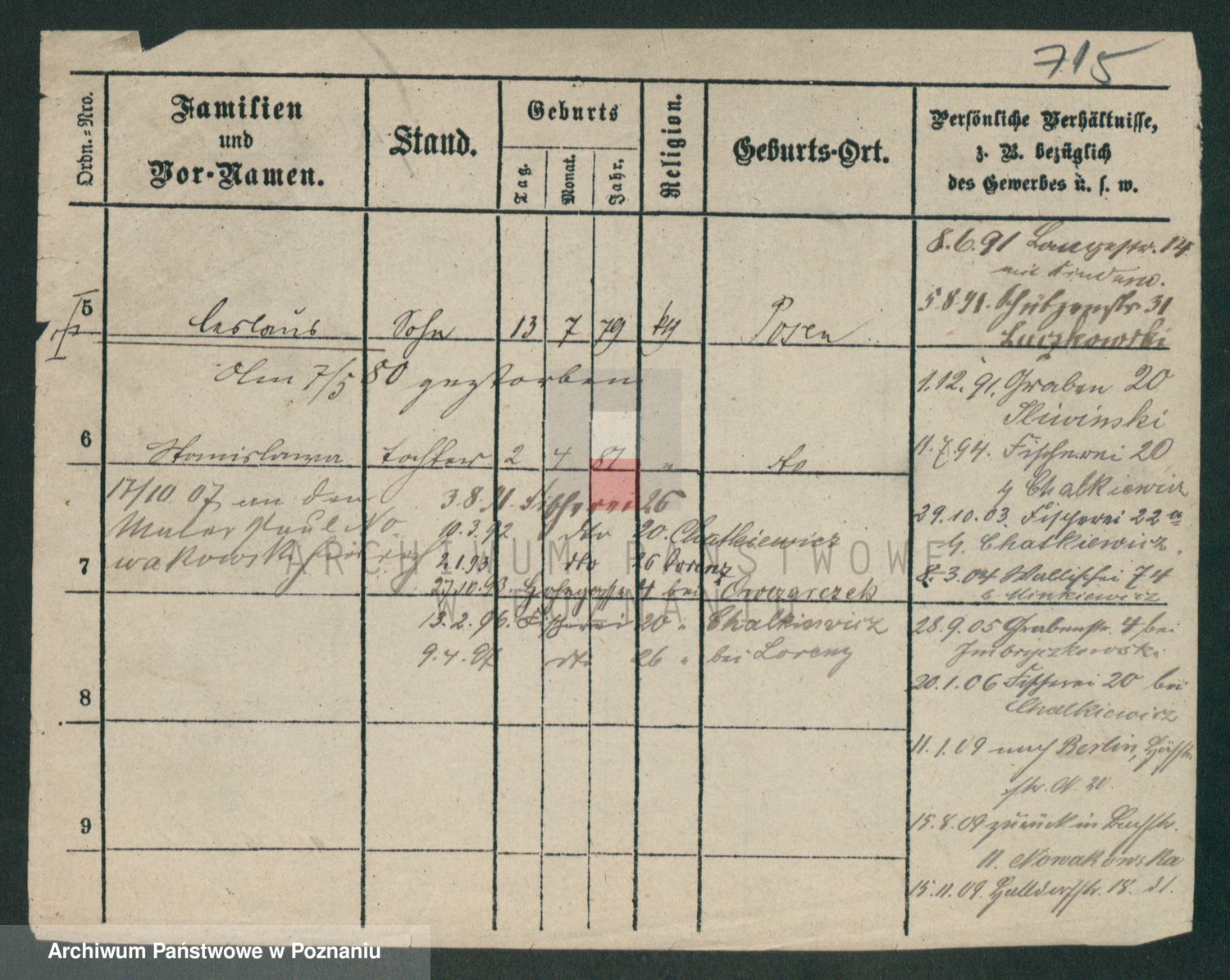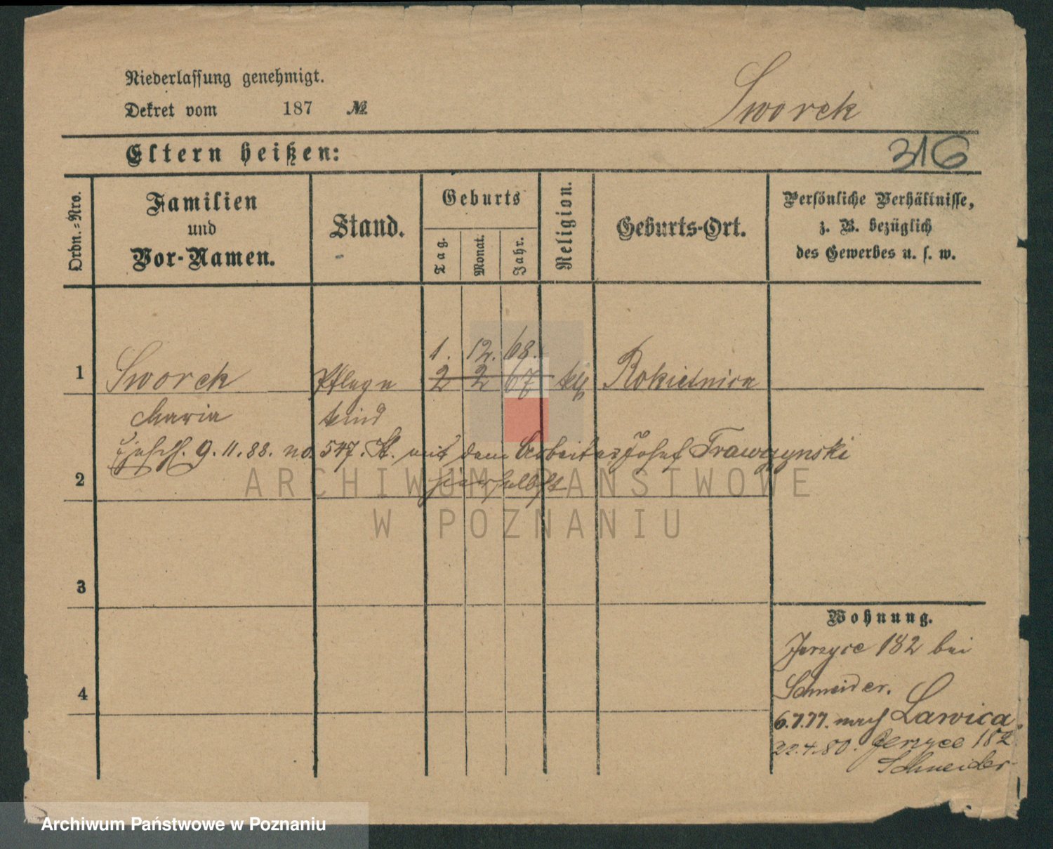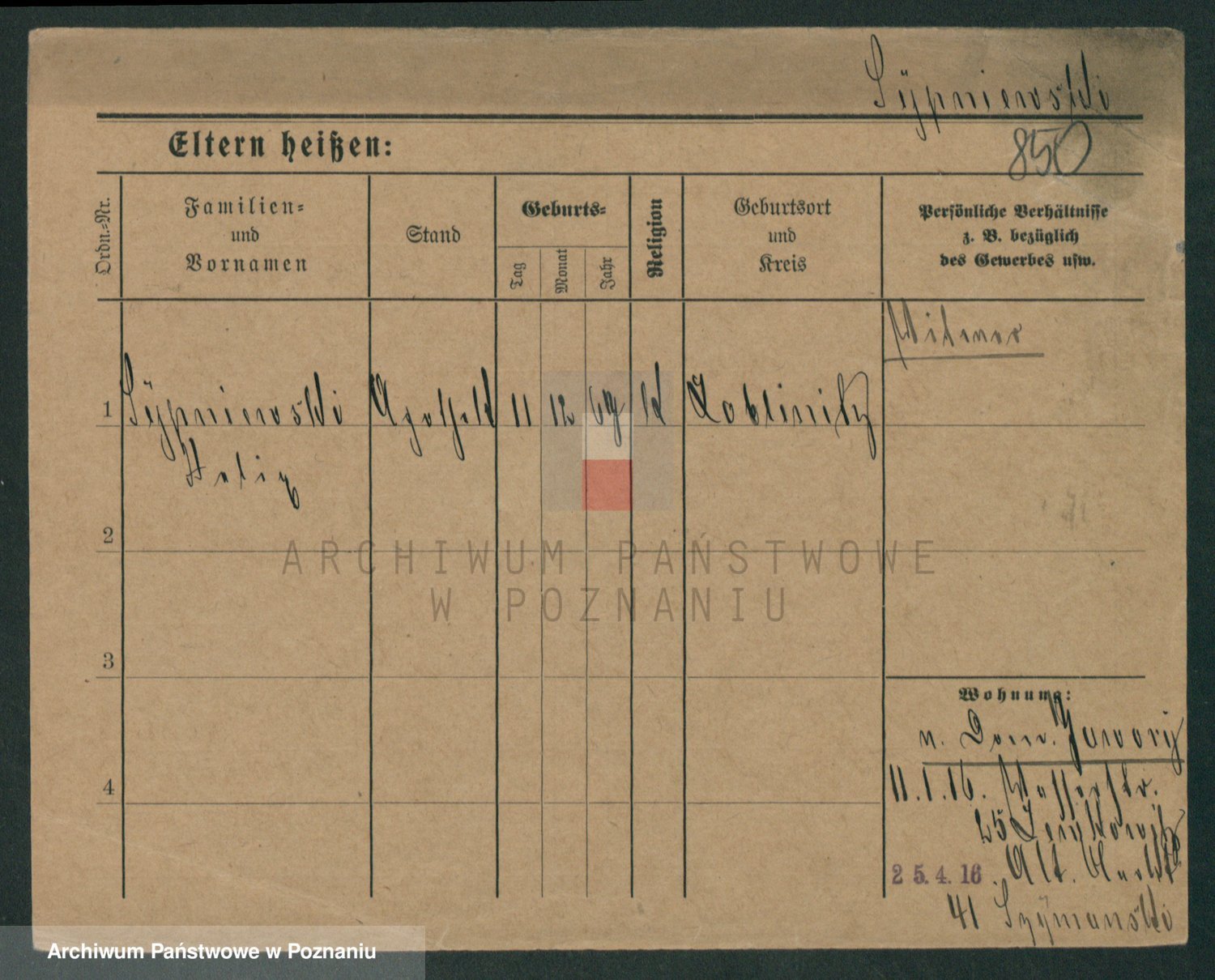 Podgląd karty osobowej dostępny jest po kliknięciu na nazwisko lub ikonkę karty. Można dokonywać powiększenia (ikony na górze) lub przechodzić między kolejnymi skanami (strzałki po bokach).
