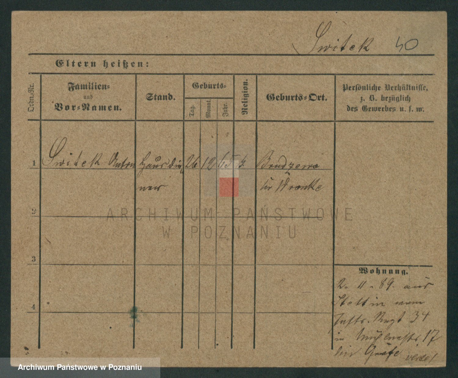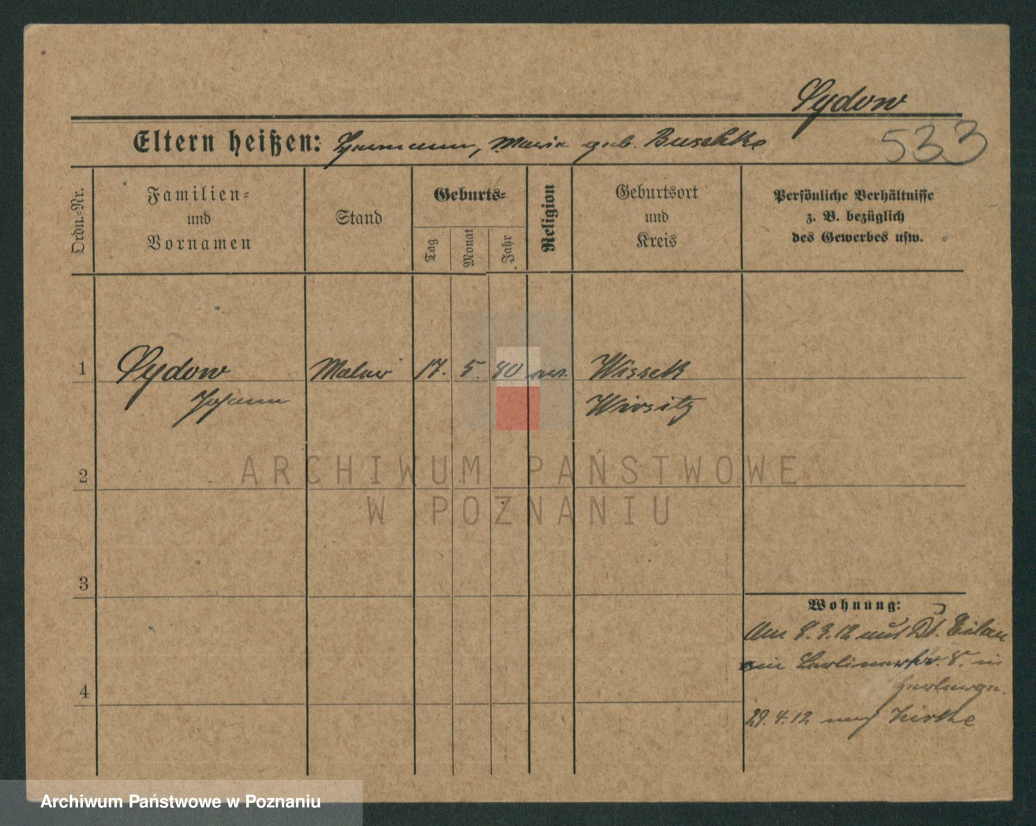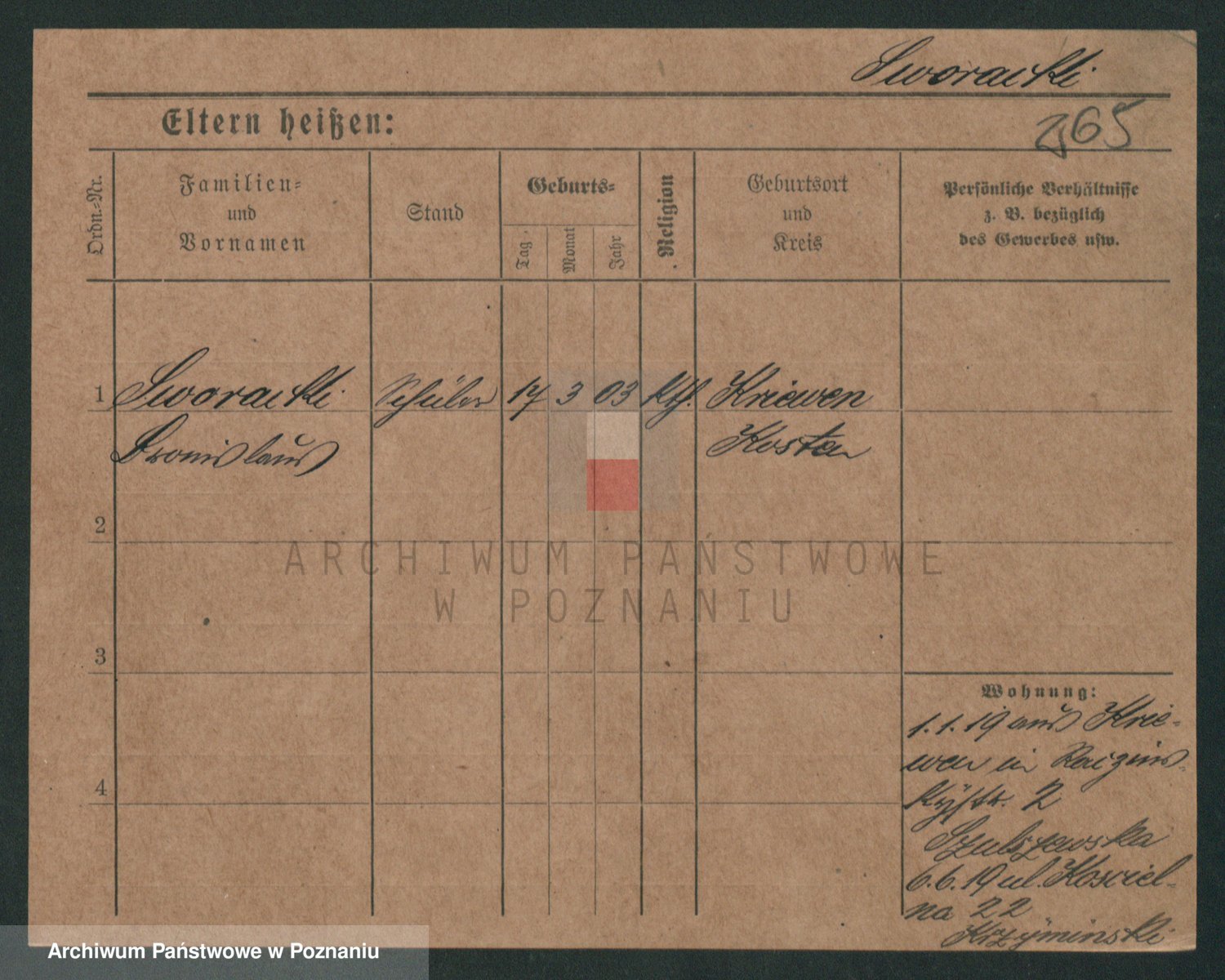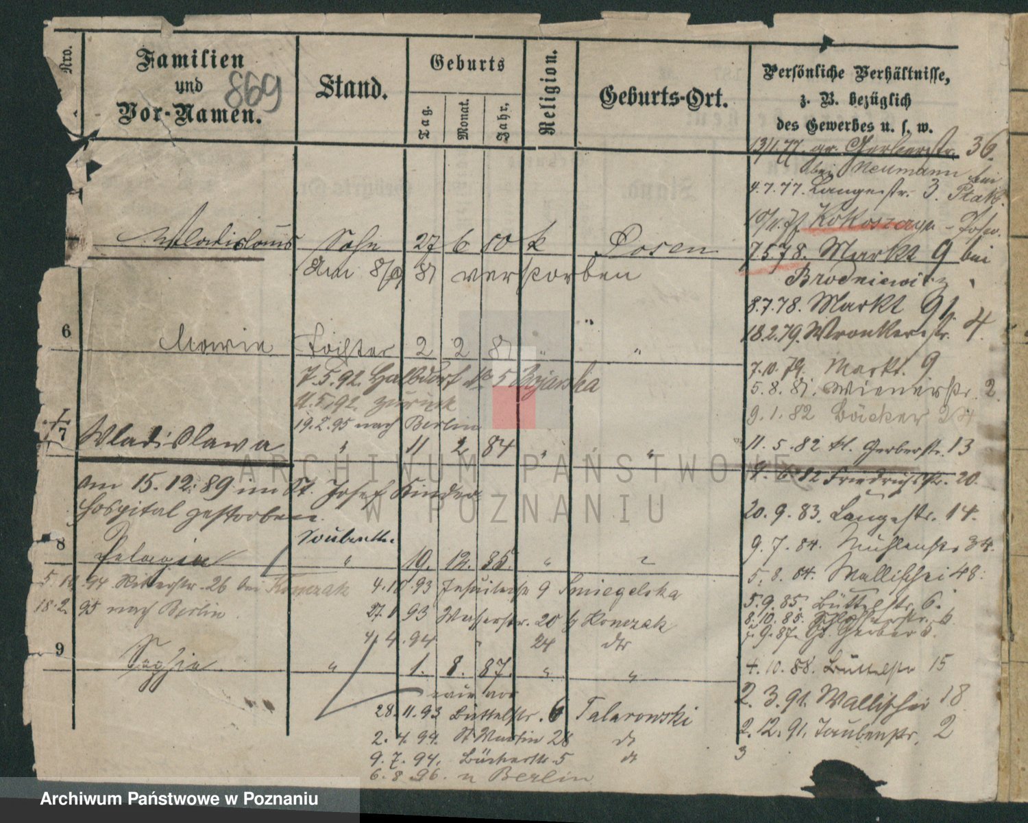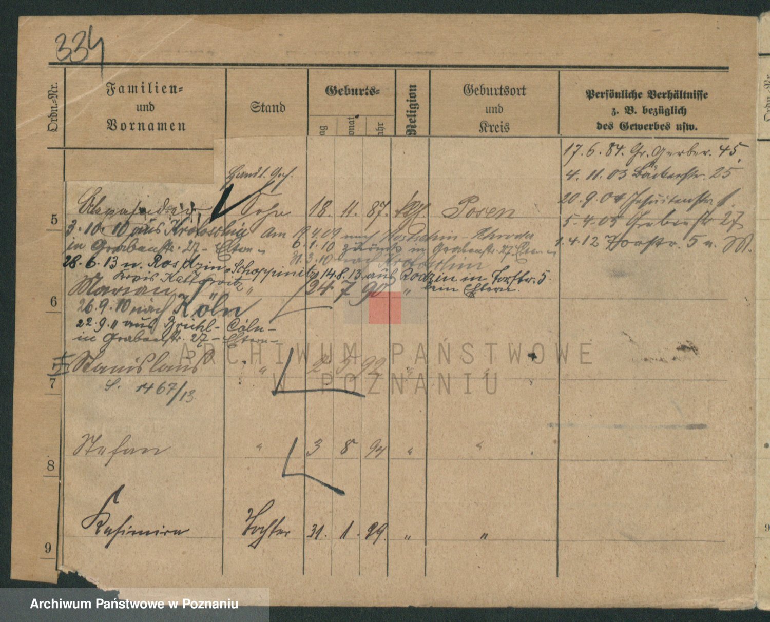 Podgląd karty osobowej dostępny jest po kliknięciu na nazwisko lub ikonkę karty. Można dokonywać powiększenia (ikony na górze) lub przechodzić między kolejnymi skanami (strzałki po bokach).