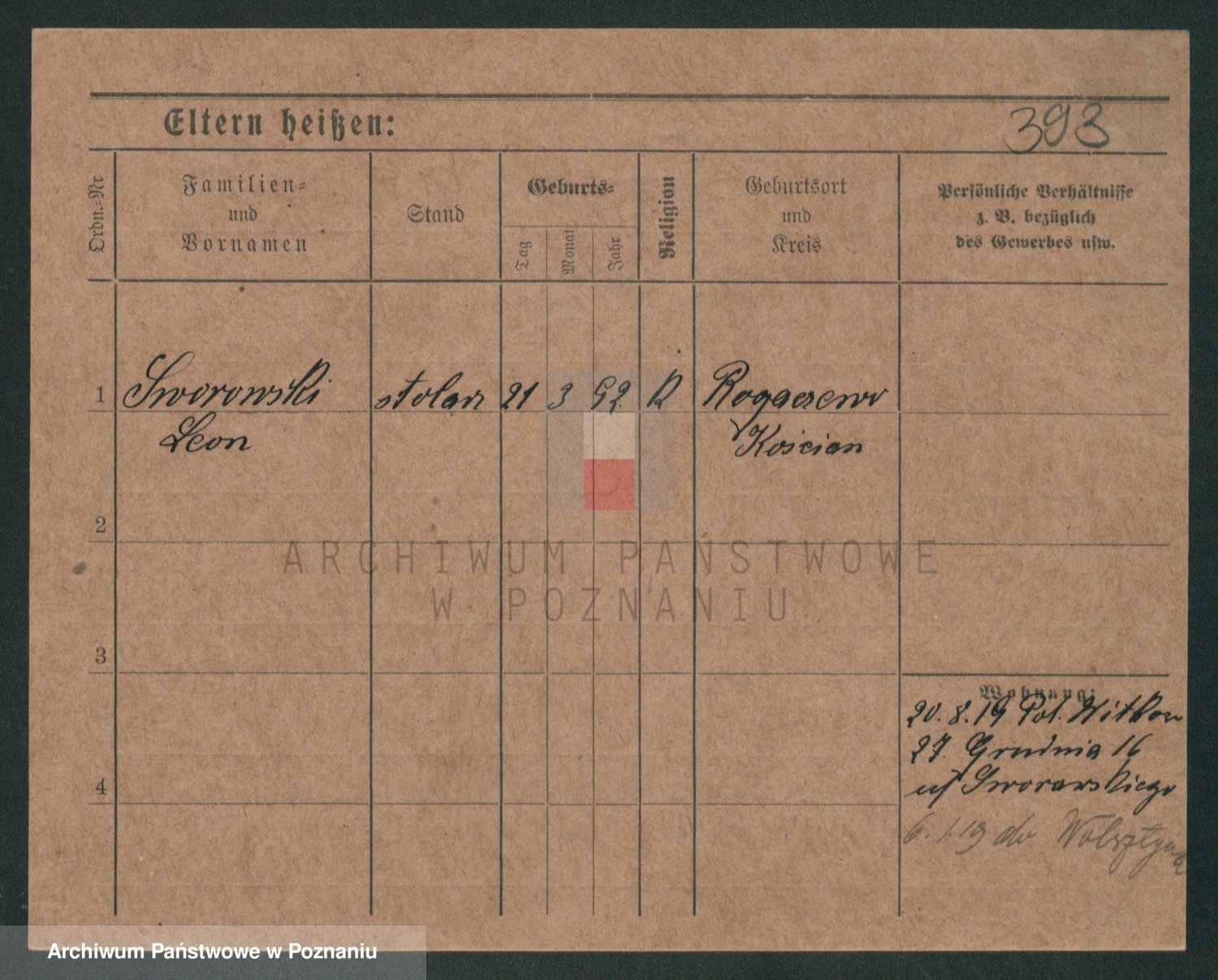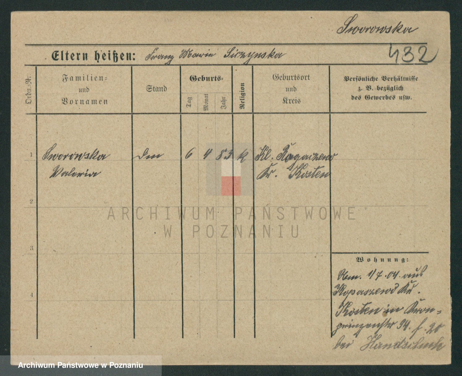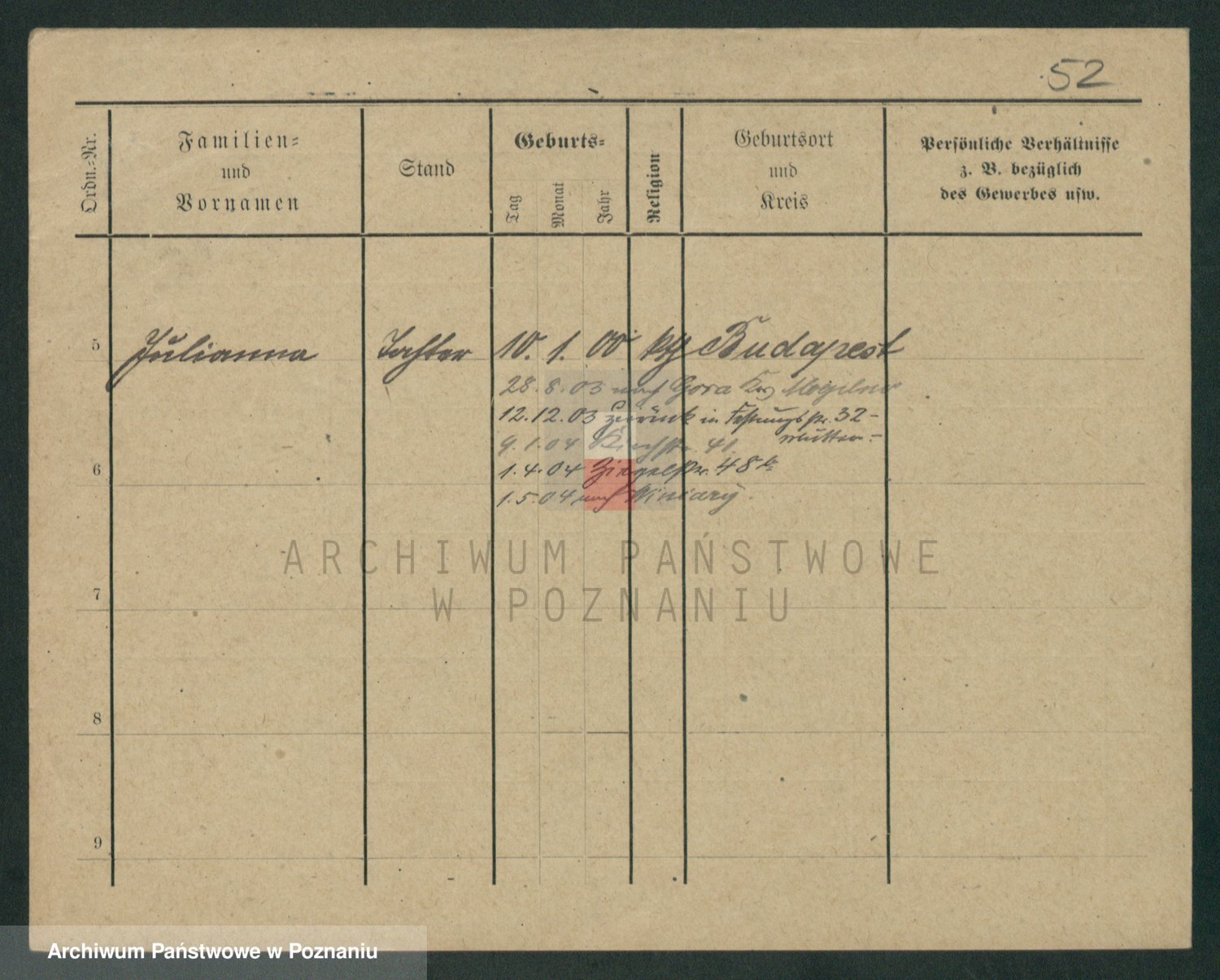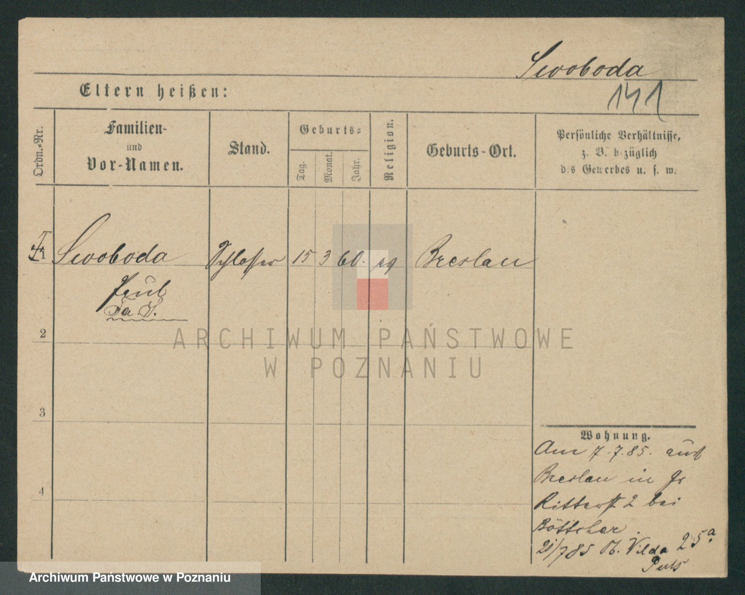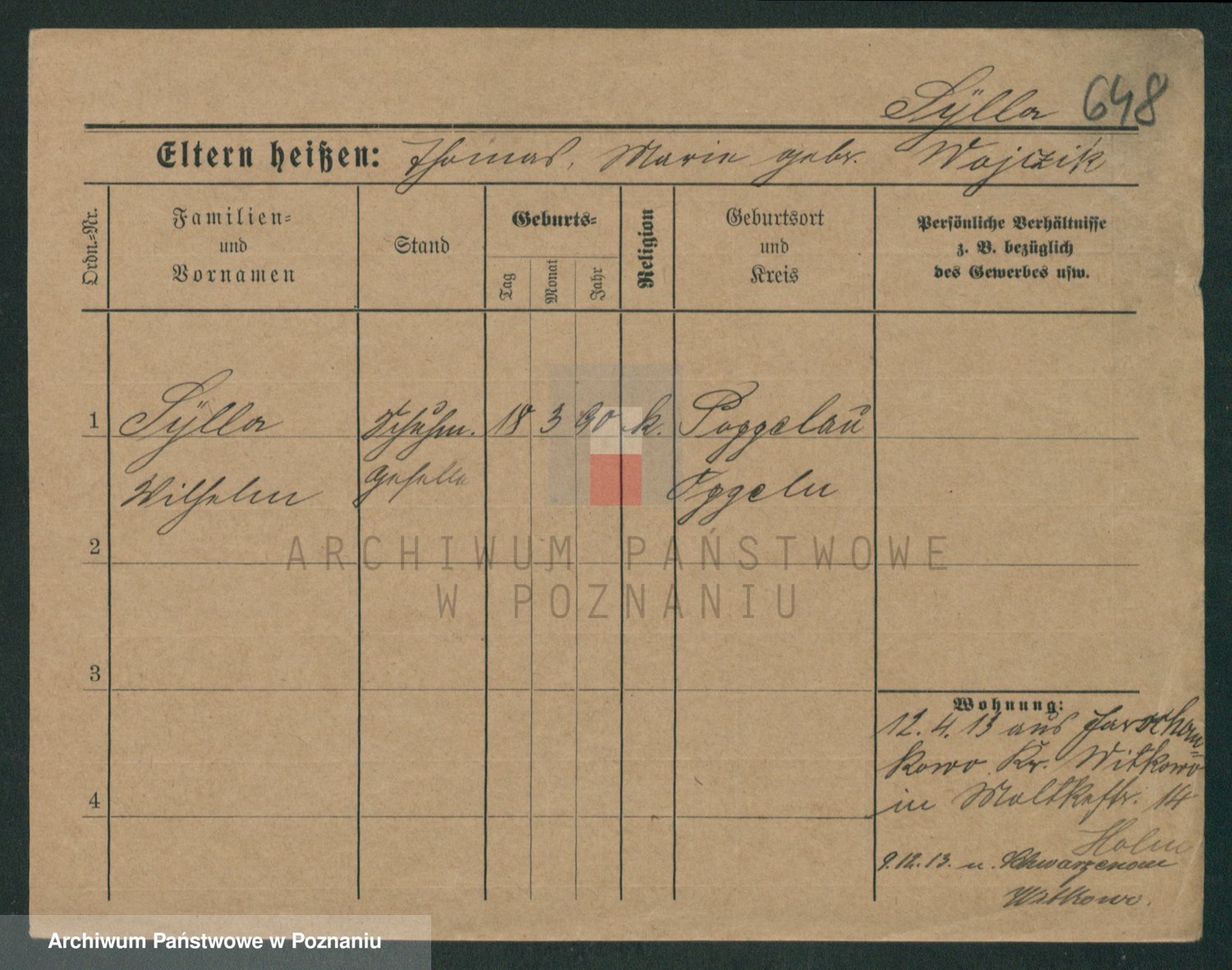 Podgląd karty osobowej dostępny jest po kliknięciu na nazwisko lub ikonkę karty. Można dokonywać powiększenia (ikony na górze) lub przechodzić między kolejnymi skanami (strzałki po bokach).