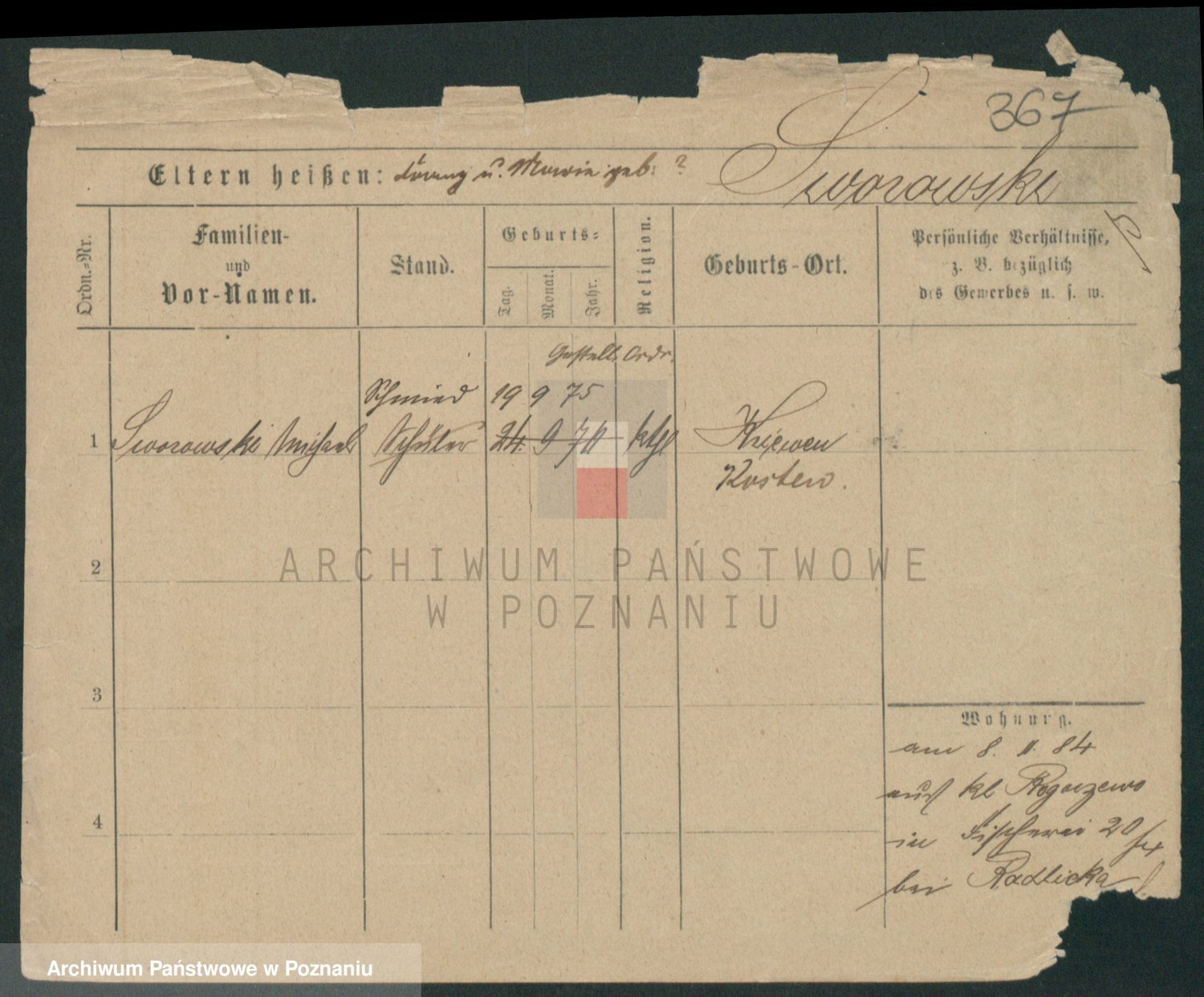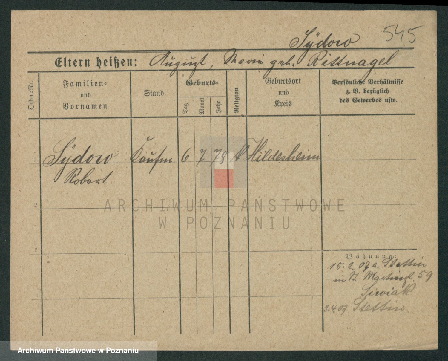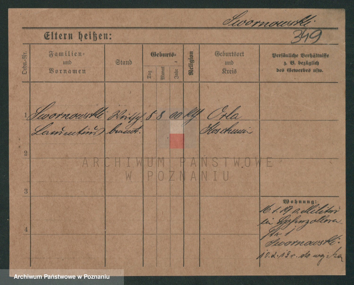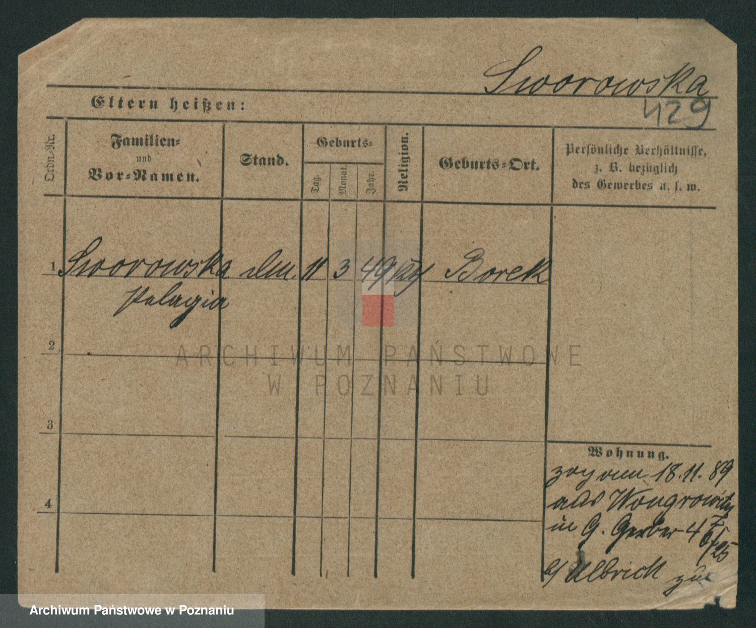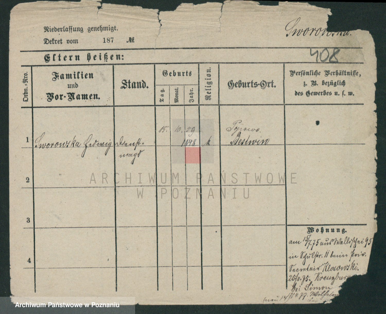 Podgląd karty osobowej dostępny jest po kliknięciu na nazwisko lub ikonkę karty. Można dokonywać powiększenia (ikony na górze) lub przechodzić między kolejnymi skanami (strzałki po bokach).