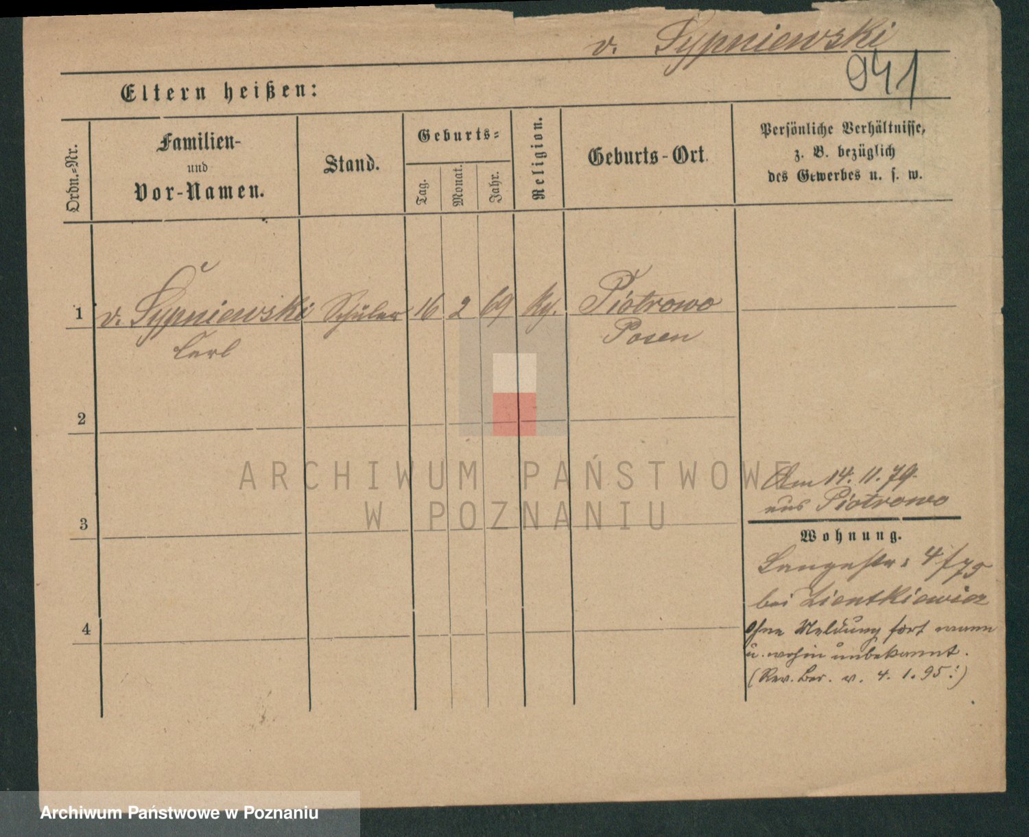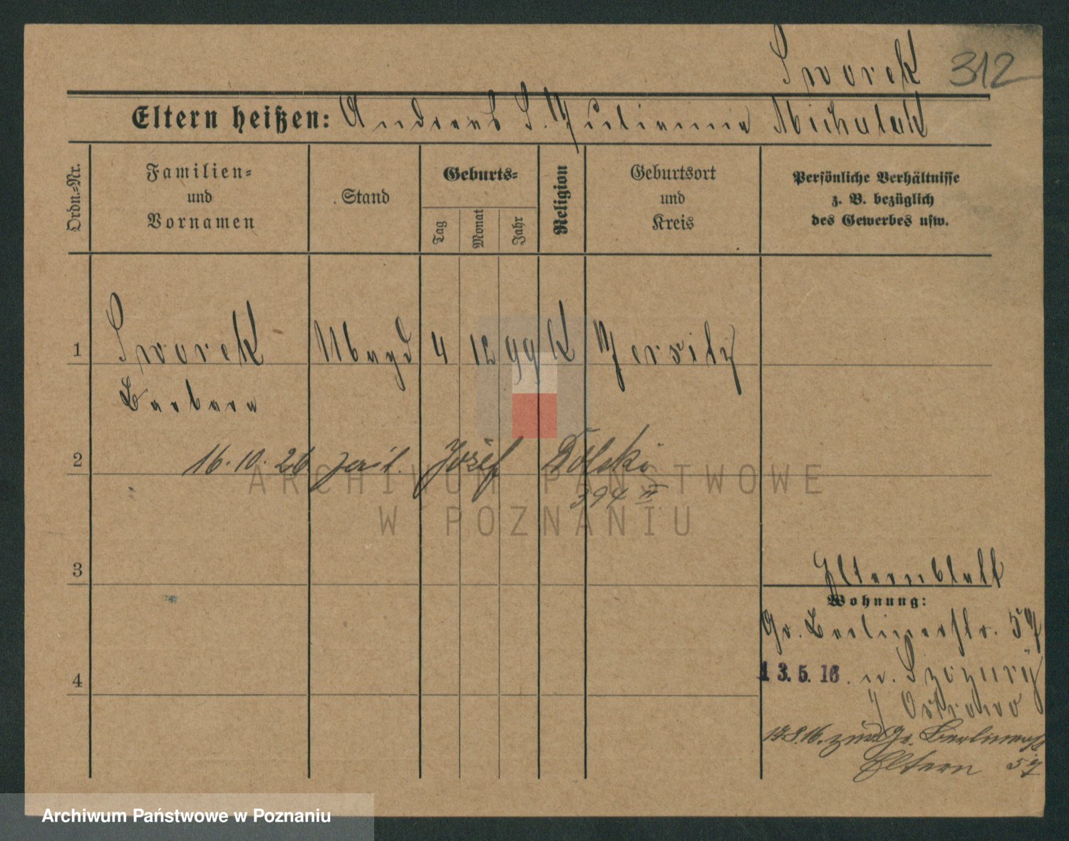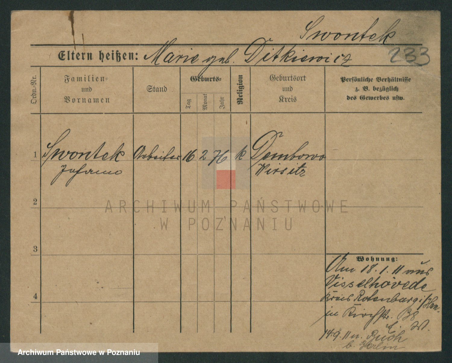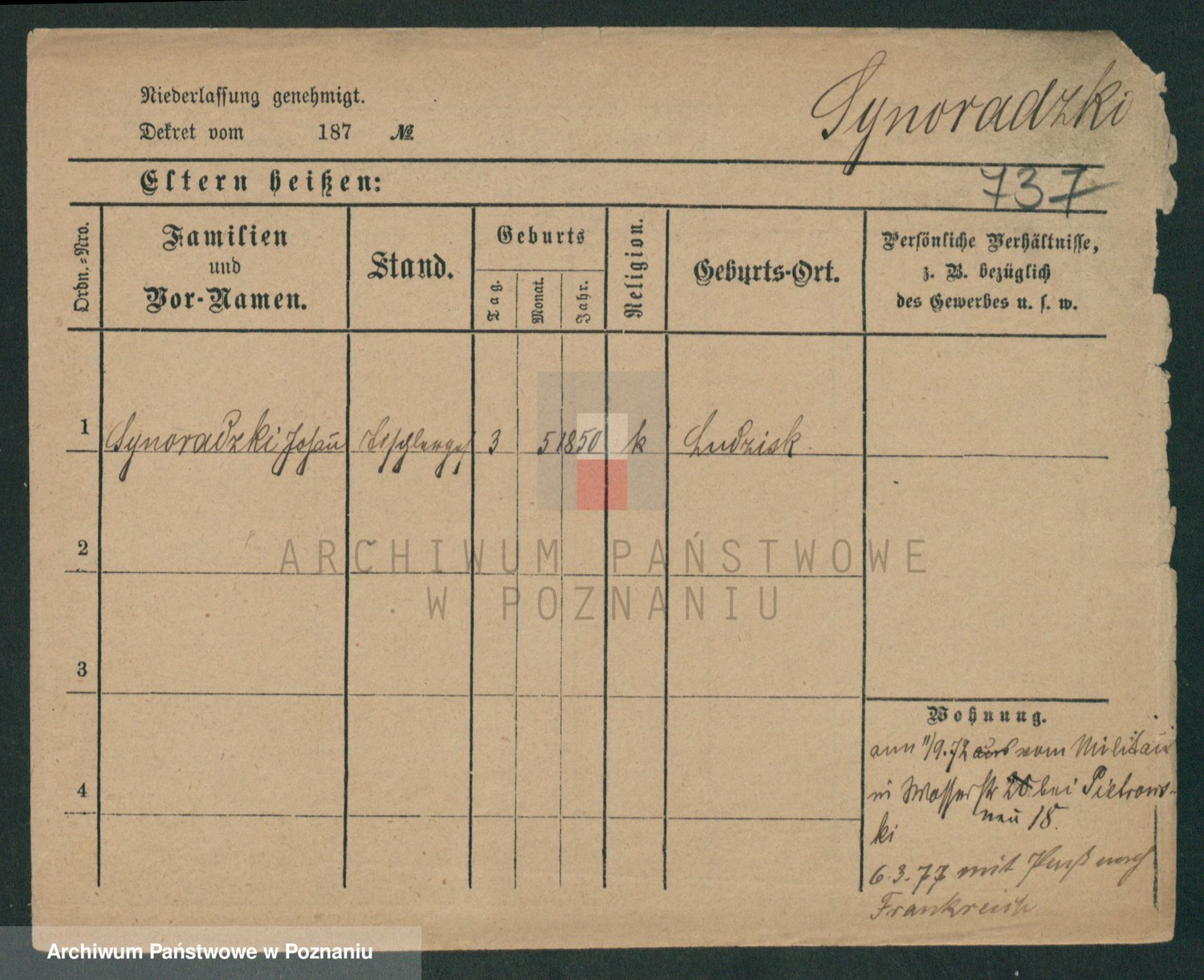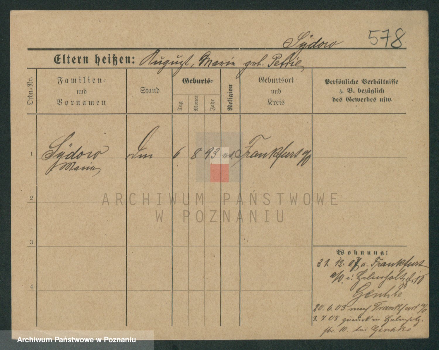 Podgląd karty osobowej dostępny jest po kliknięciu na nazwisko lub ikonkę karty. Można dokonywać powiększenia (ikony na górze) lub przechodzić między kolejnymi skanami (strzałki po bokach).