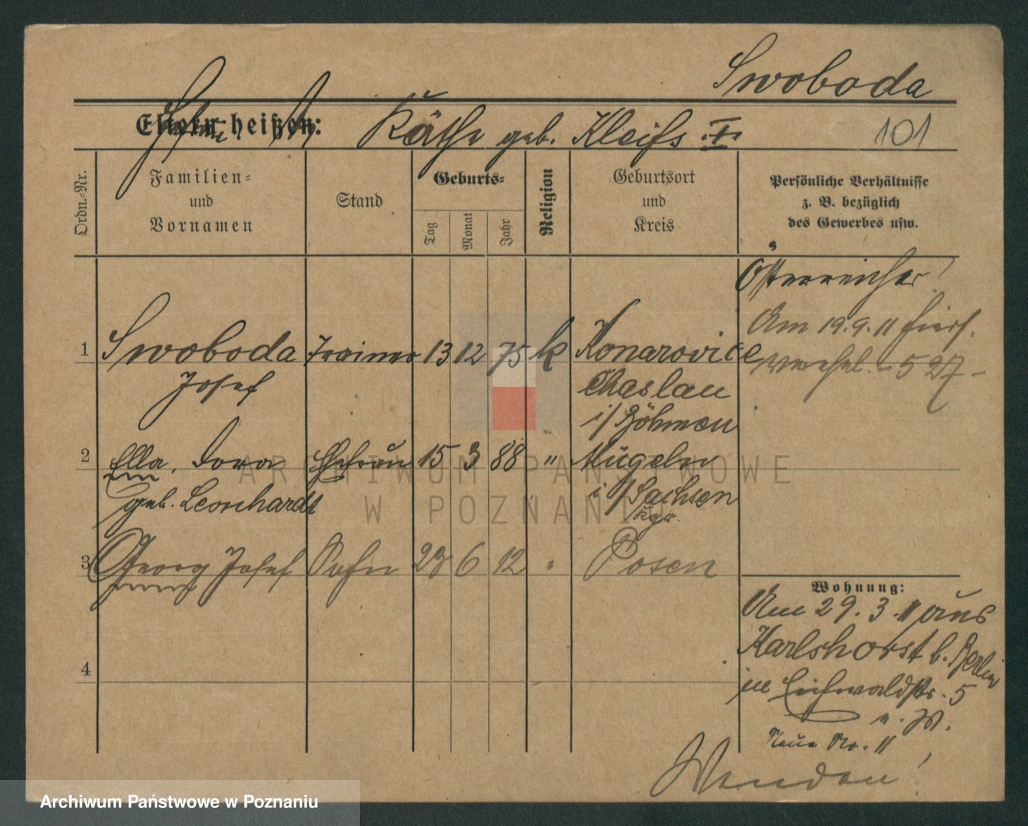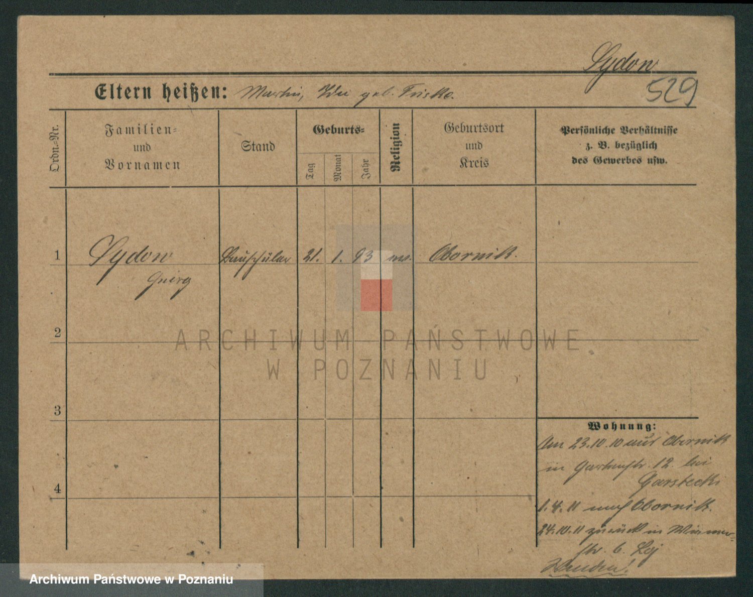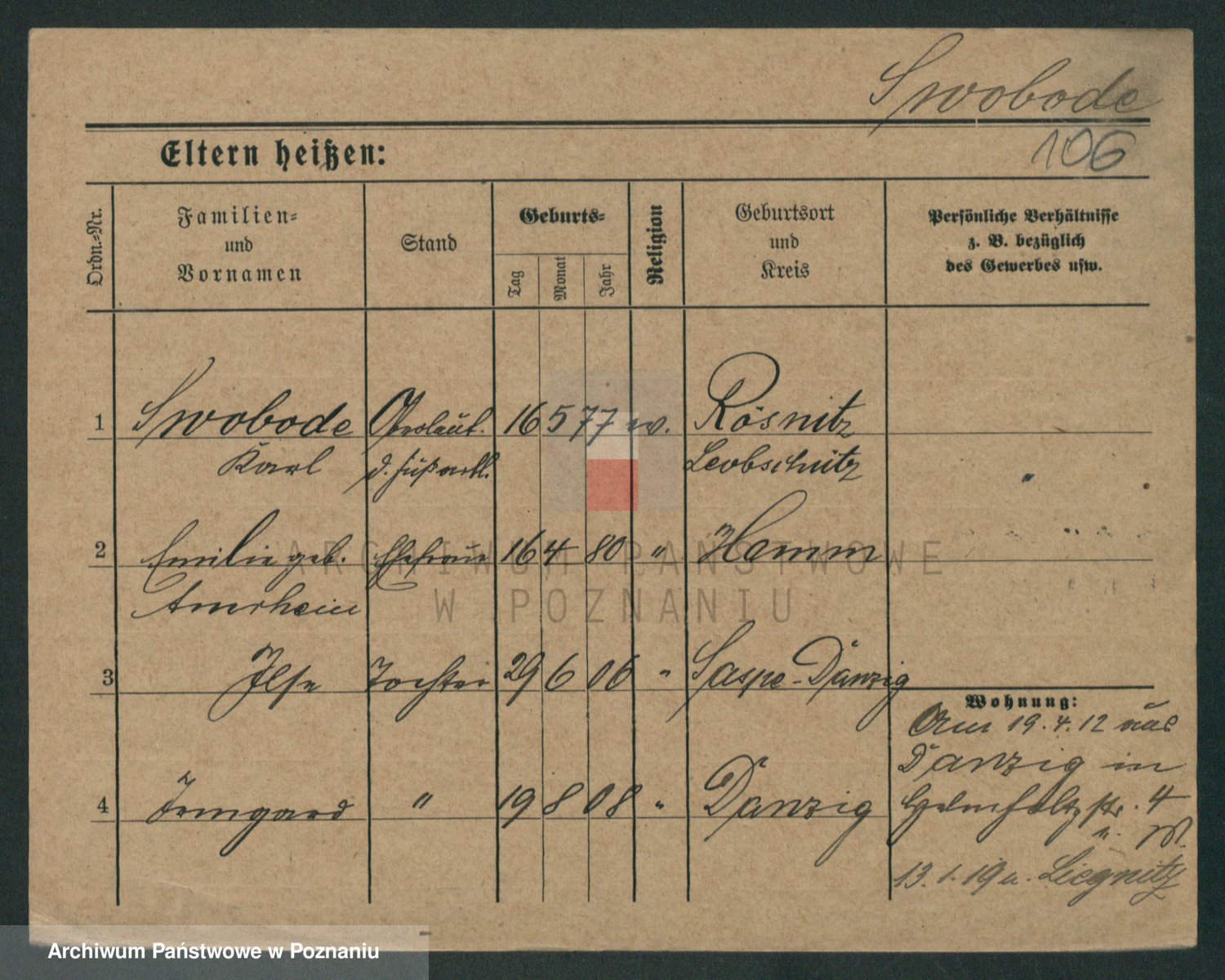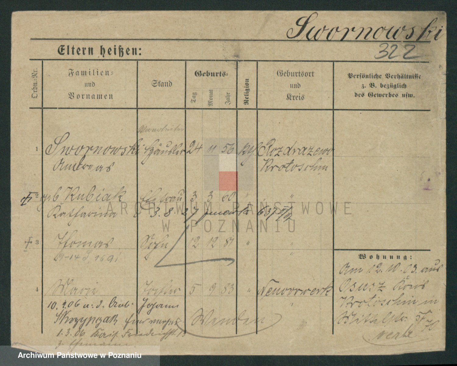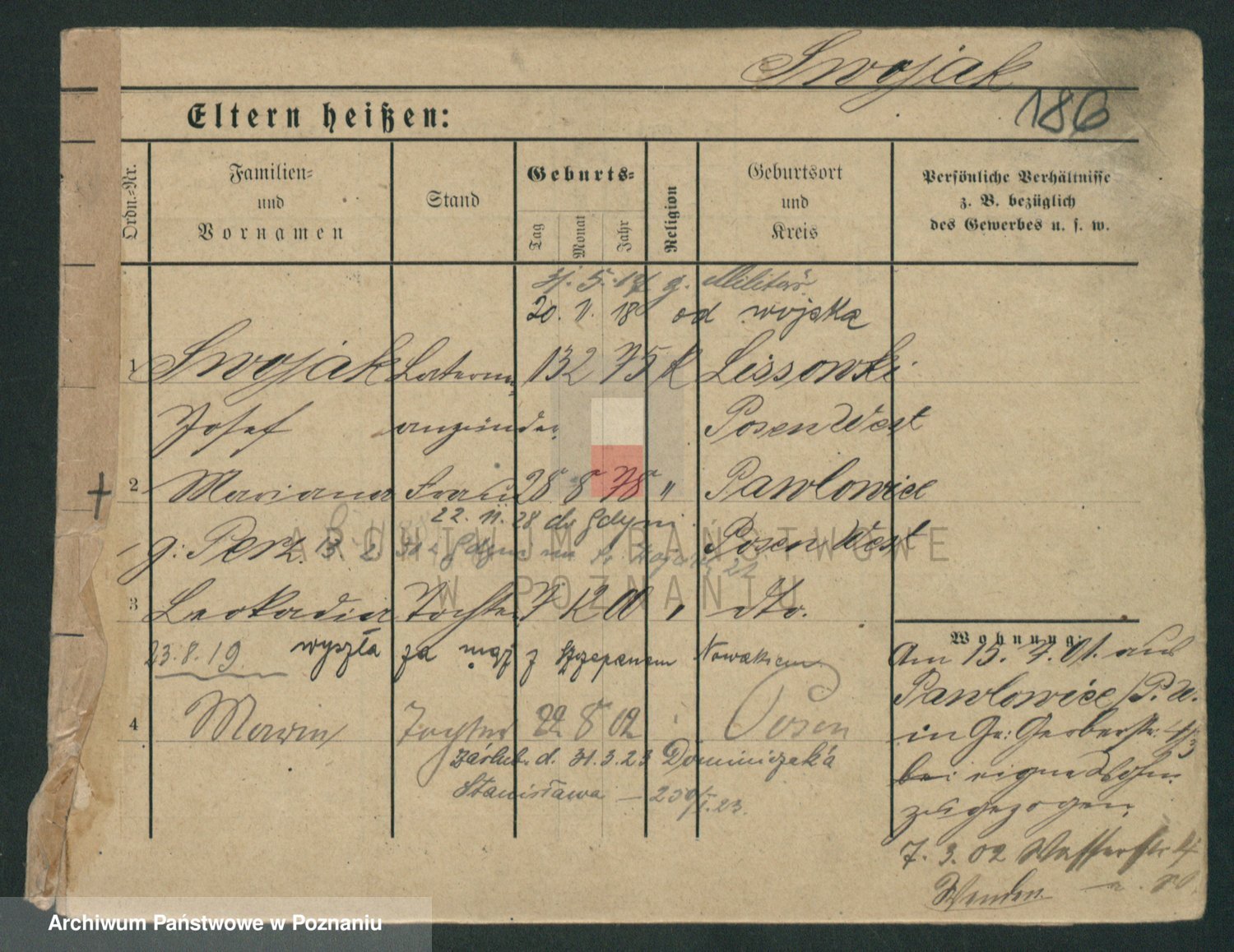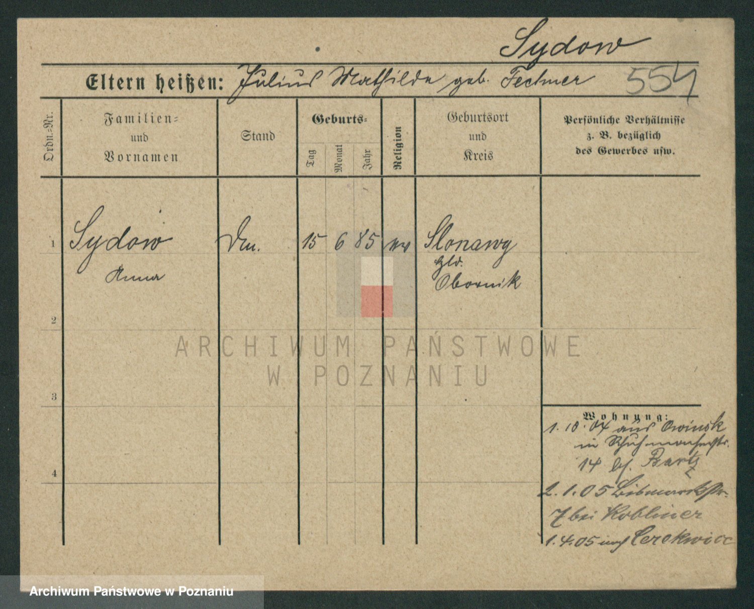 Podgląd karty osobowej dostępny jest po kliknięciu na nazwisko lub ikonkę karty. Można dokonywać powiększenia (ikony na górze) lub przechodzić między kolejnymi skanami (strzałki po bokach).