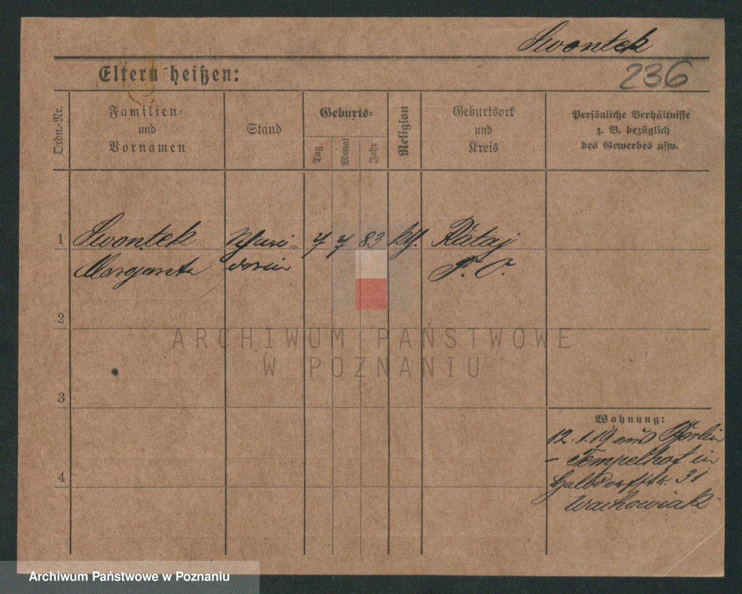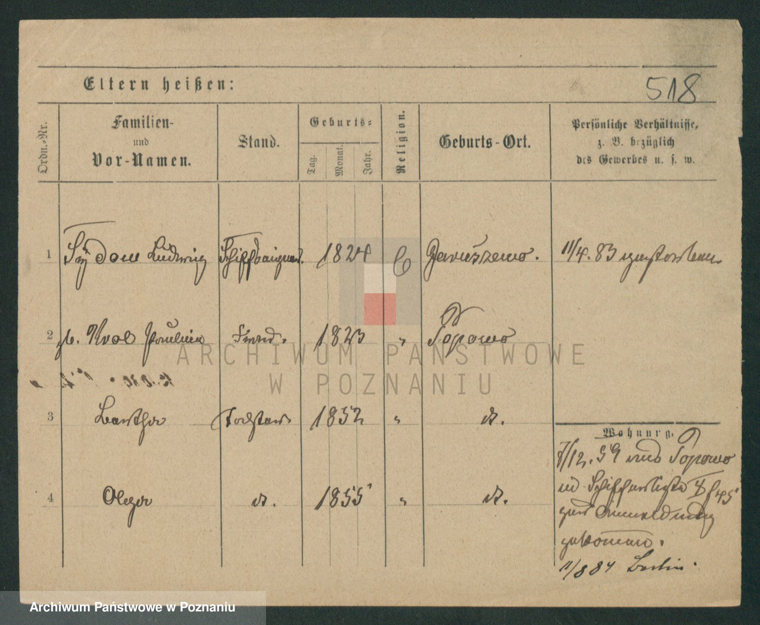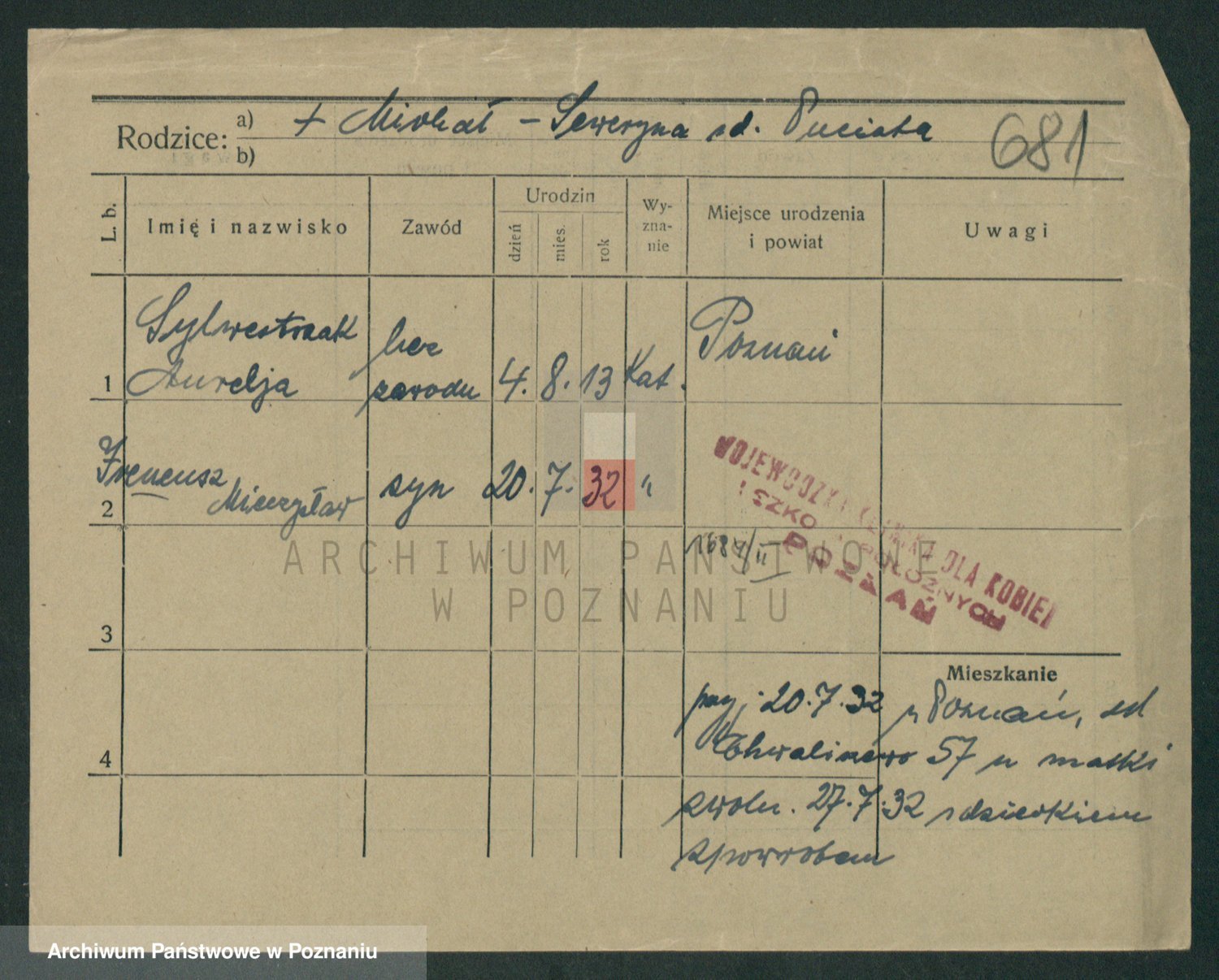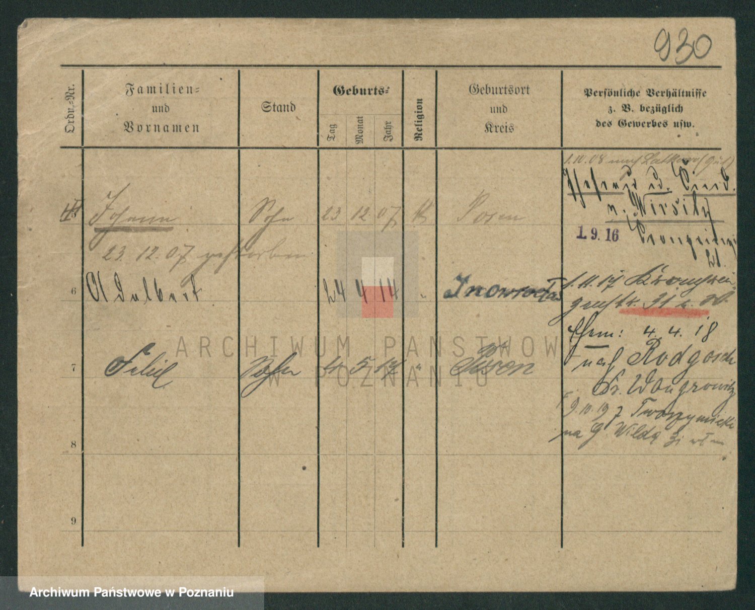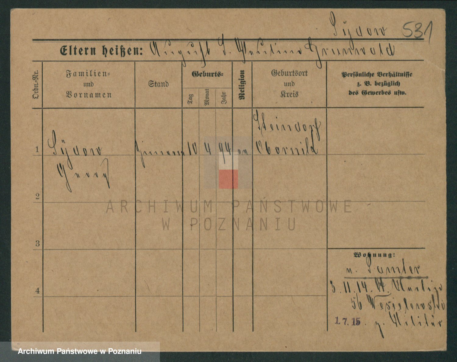 Podgląd karty osobowej dostępny jest po kliknięciu na nazwisko lub ikonkę karty. Można dokonywać powiększenia (ikony na górze) lub przechodzić między kolejnymi skanami (strzałki po bokach).