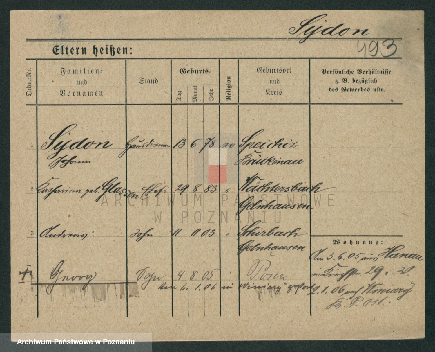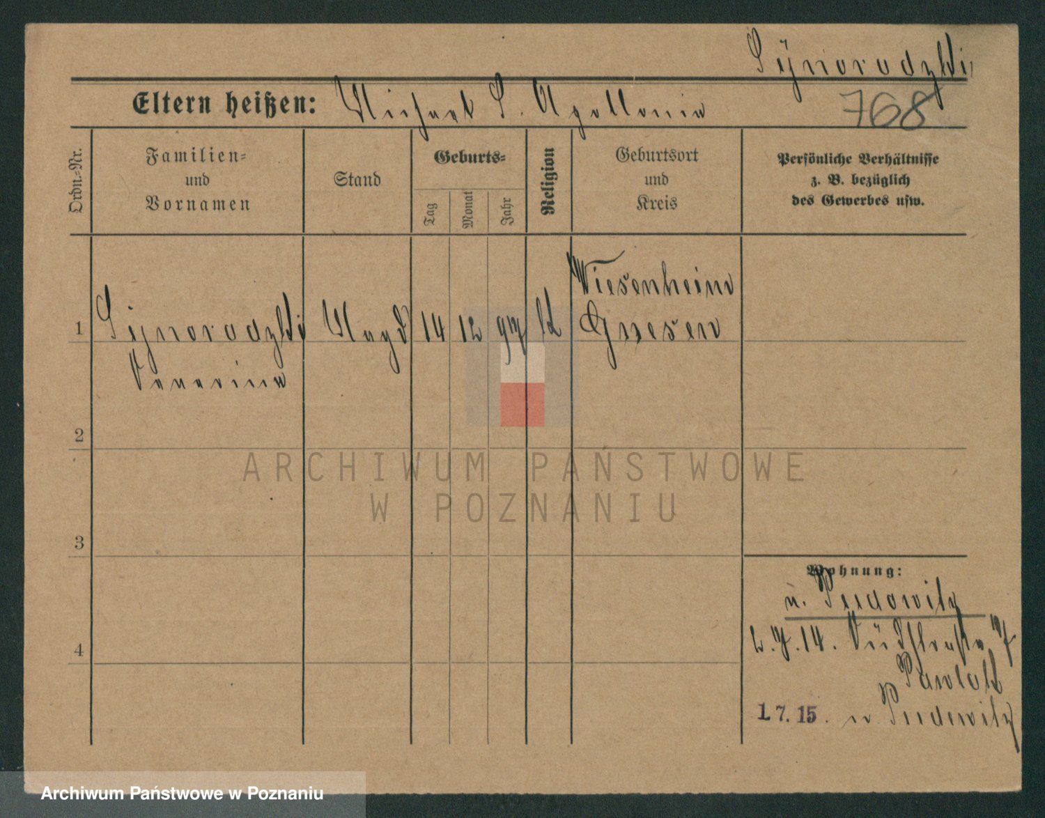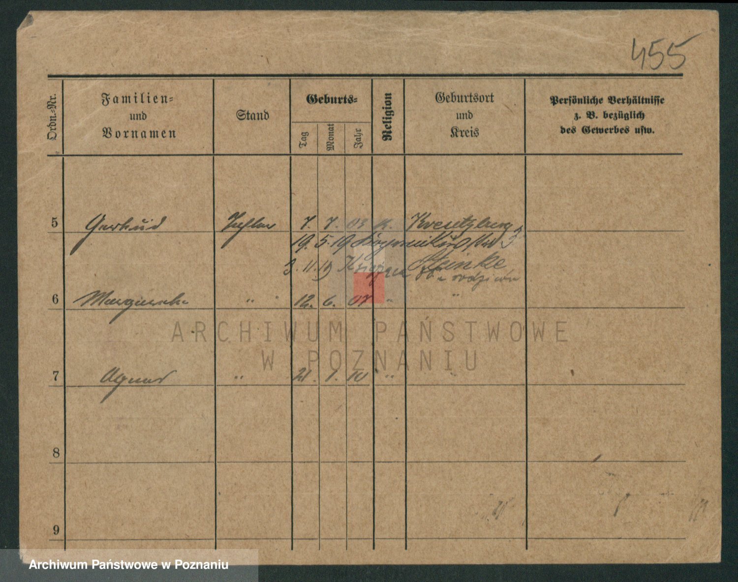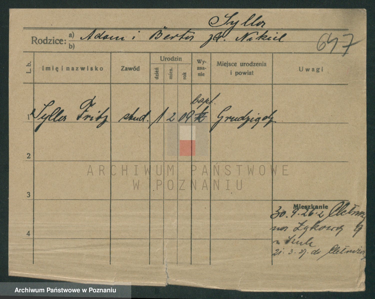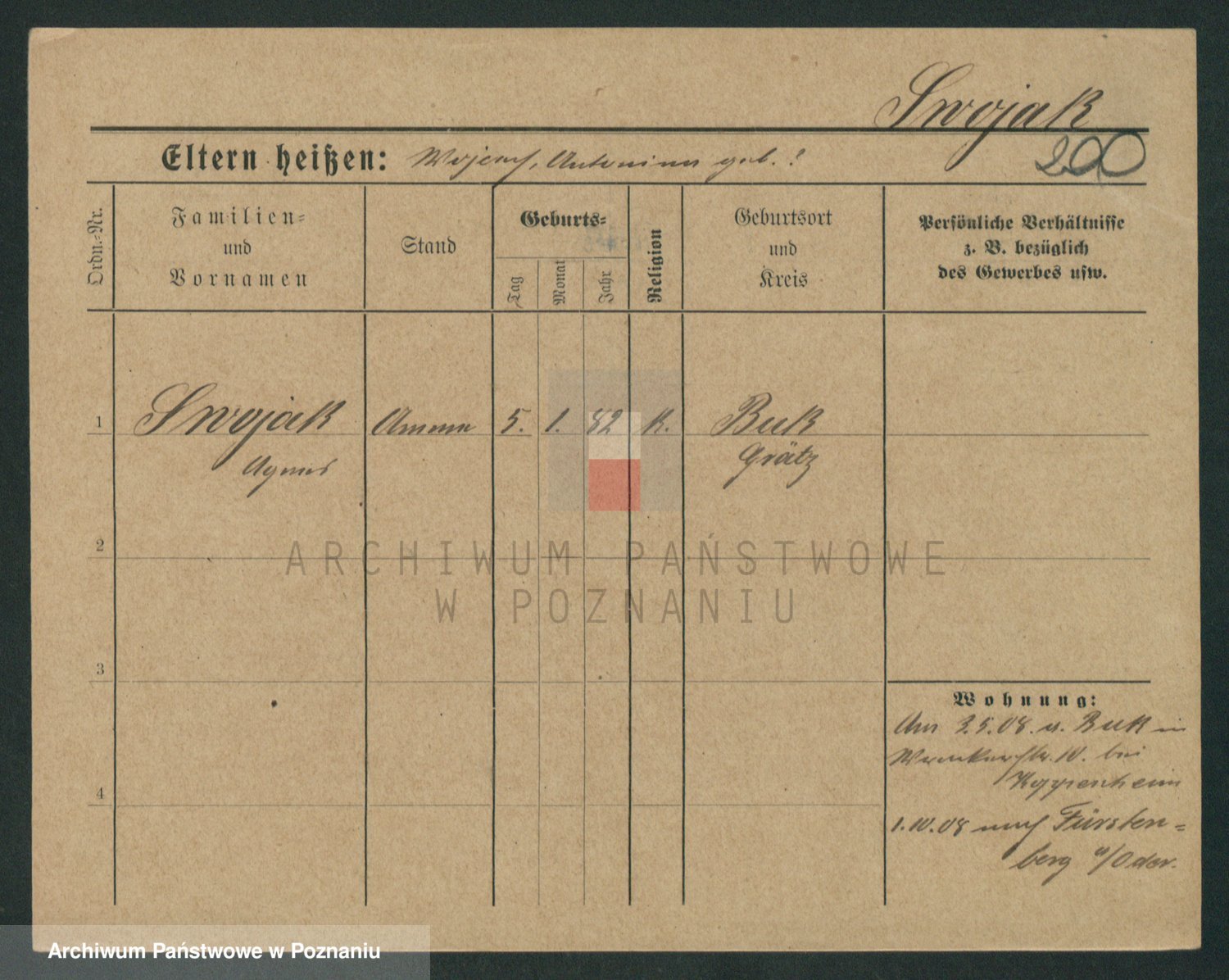 Podgląd karty osobowej dostępny jest po kliknięciu na nazwisko lub ikonkę karty. Można dokonywać powiększenia (ikony na górze) lub przechodzić między kolejnymi skanami (strzałki po bokach).