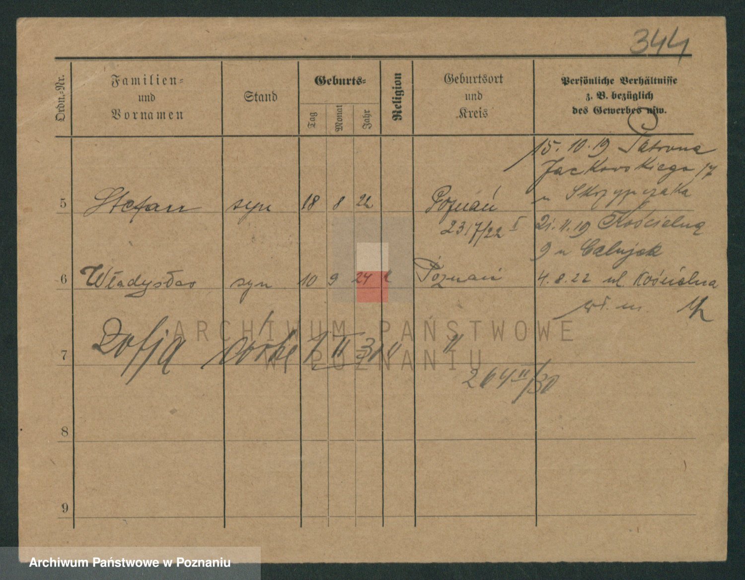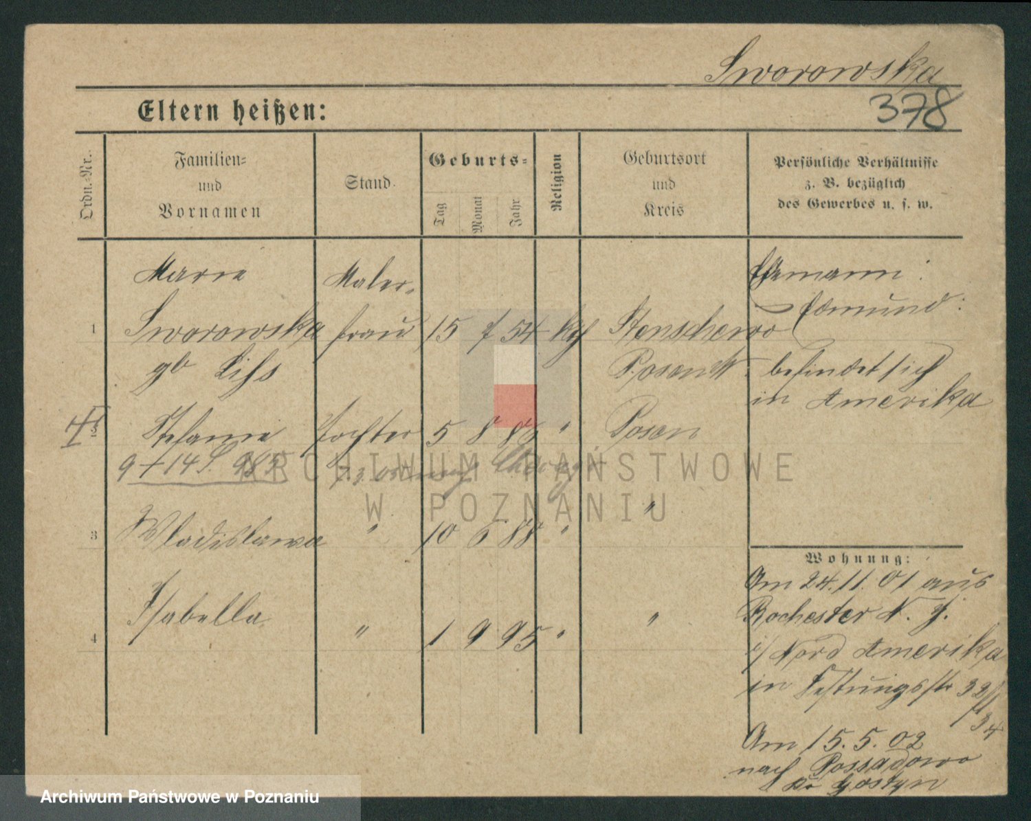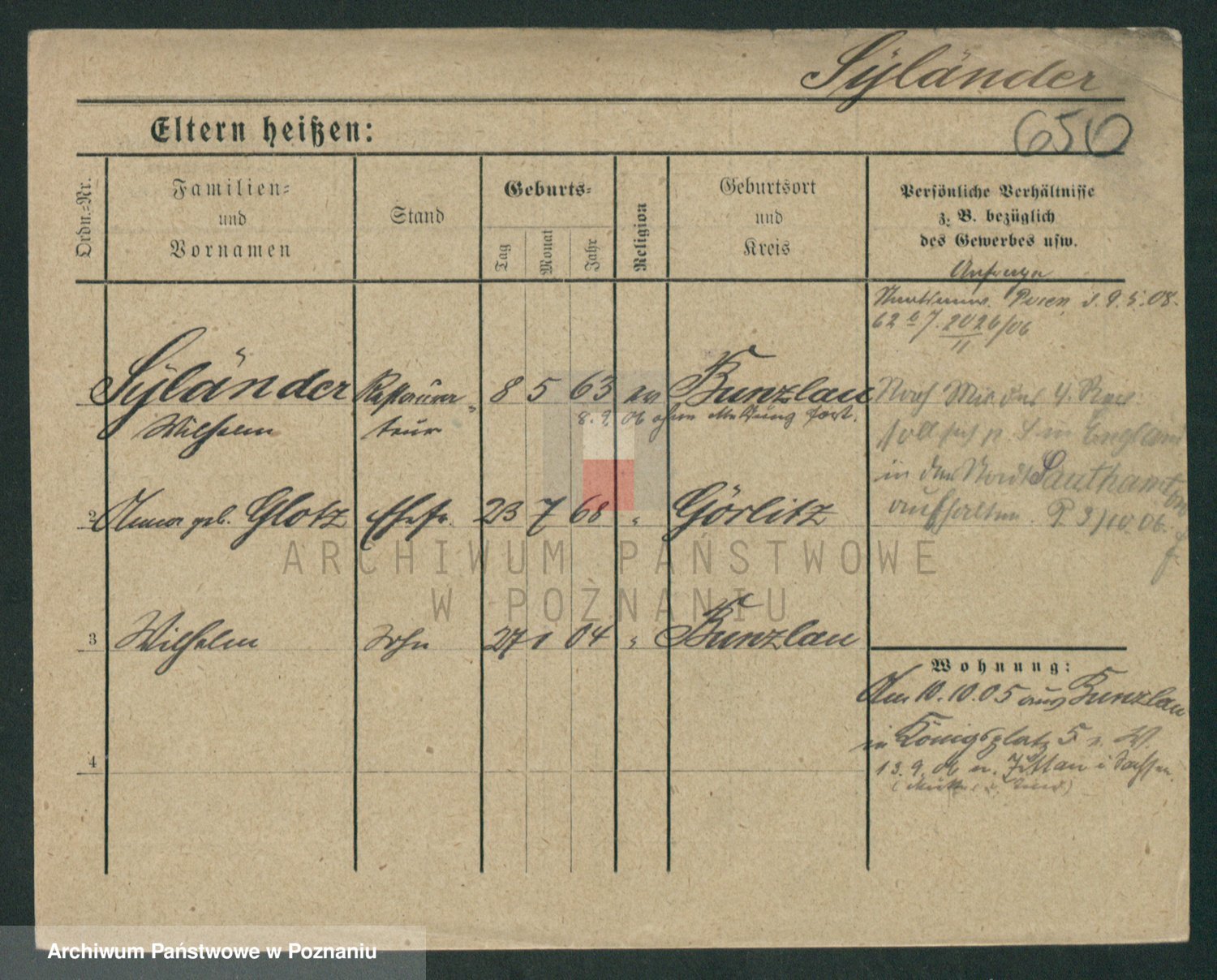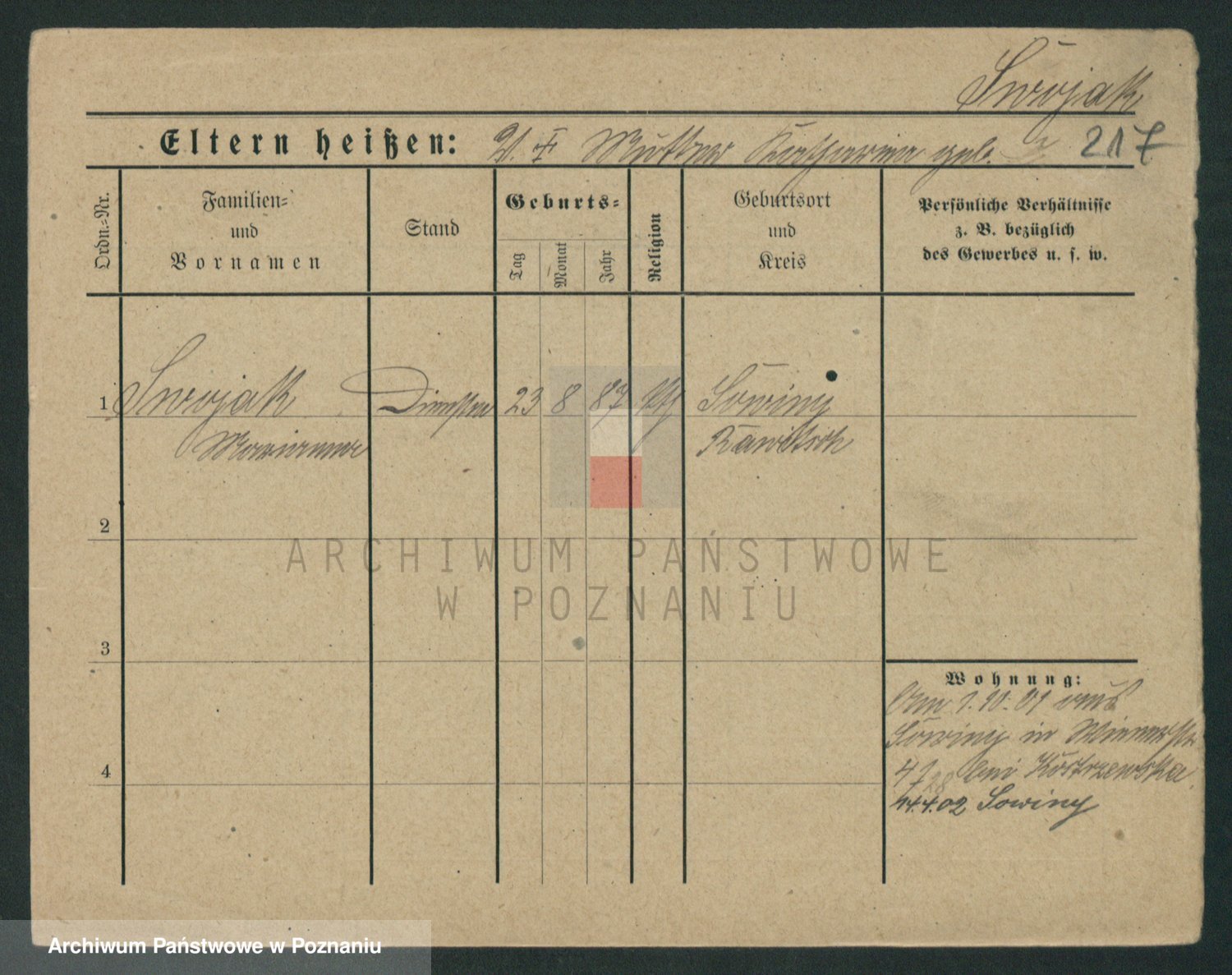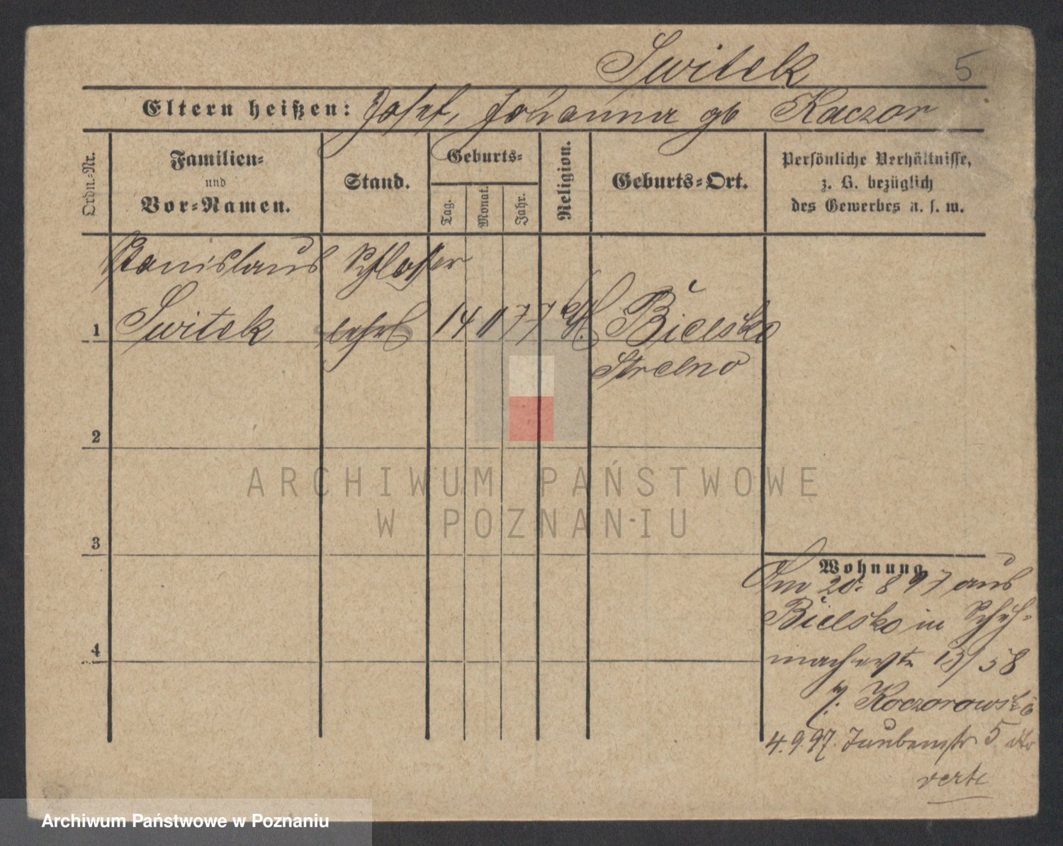 Podgląd karty osobowej dostępny jest po kliknięciu na nazwisko lub ikonkę karty. Można dokonywać powiększenia (ikony na górze) lub przechodzić między kolejnymi skanami (strzałki po bokach).