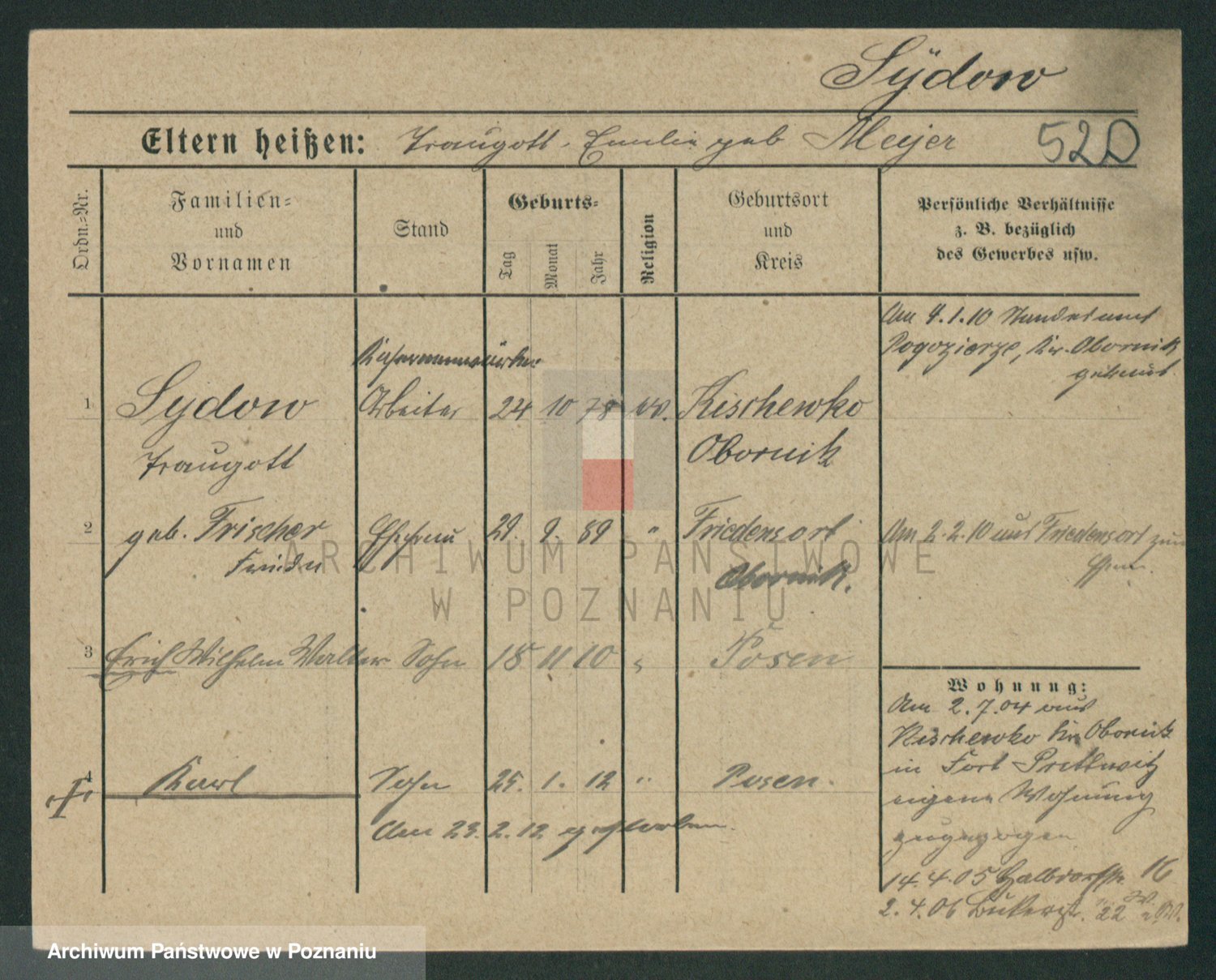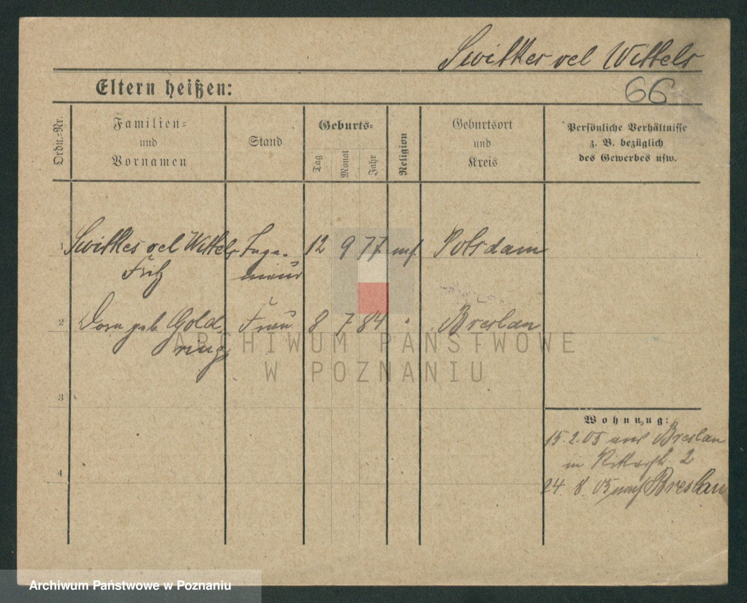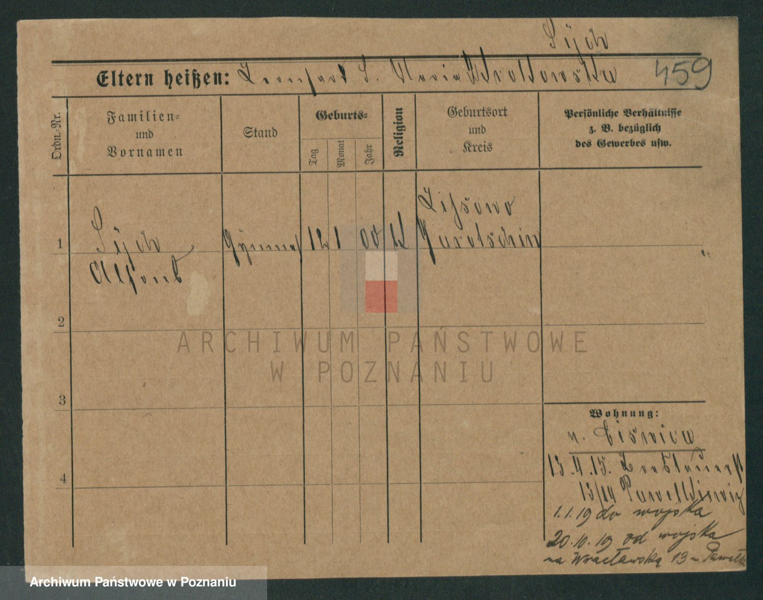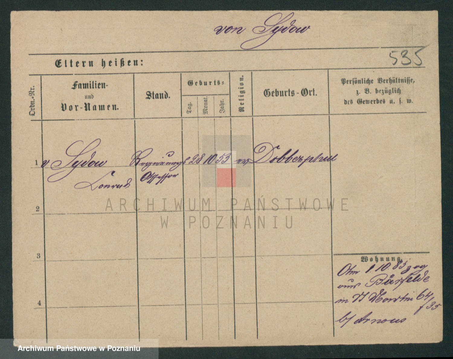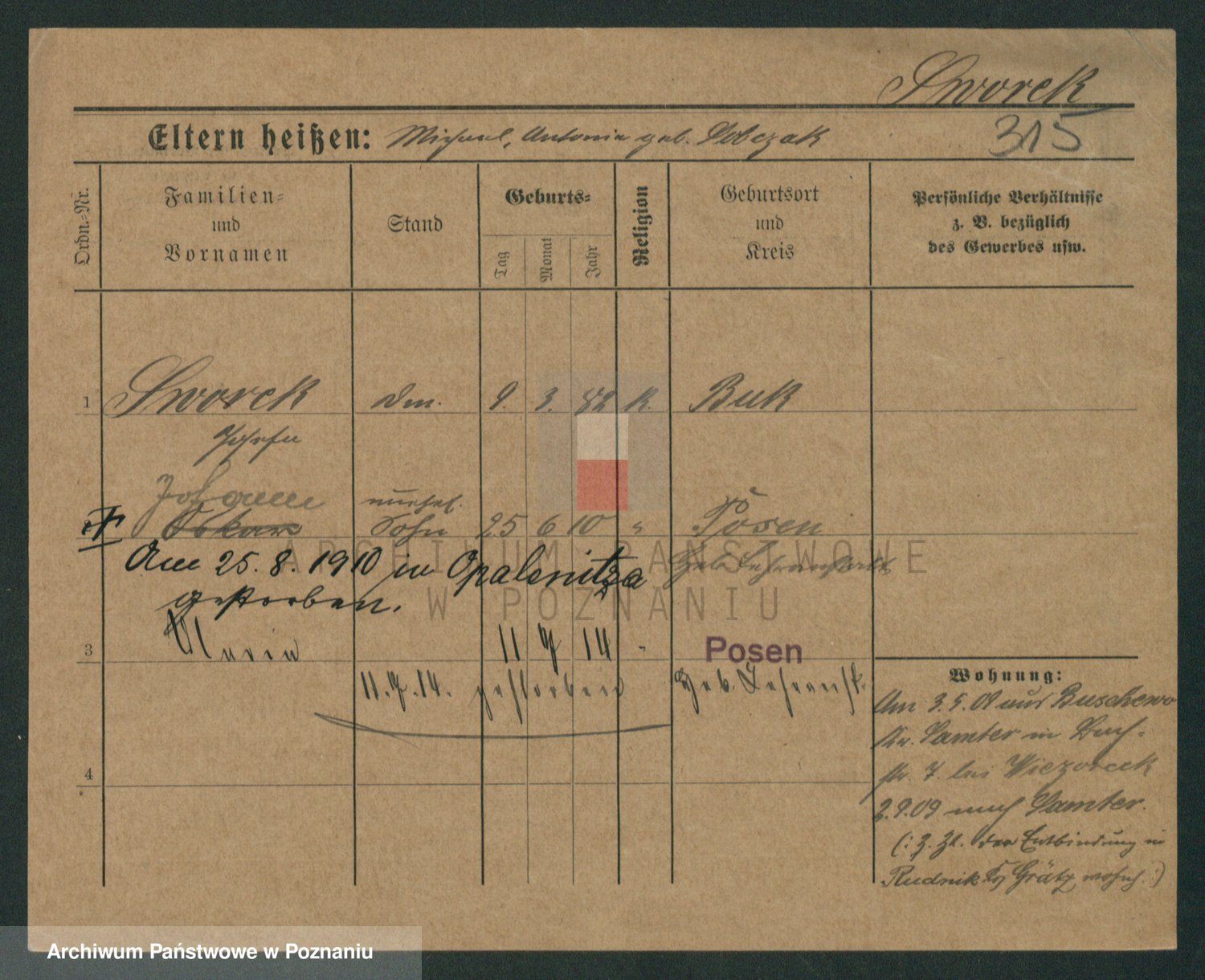 Podgląd karty osobowej dostępny jest po kliknięciu na nazwisko lub ikonkę karty. Można dokonywać powiększenia (ikony na górze) lub przechodzić między kolejnymi skanami (strzałki po bokach).
