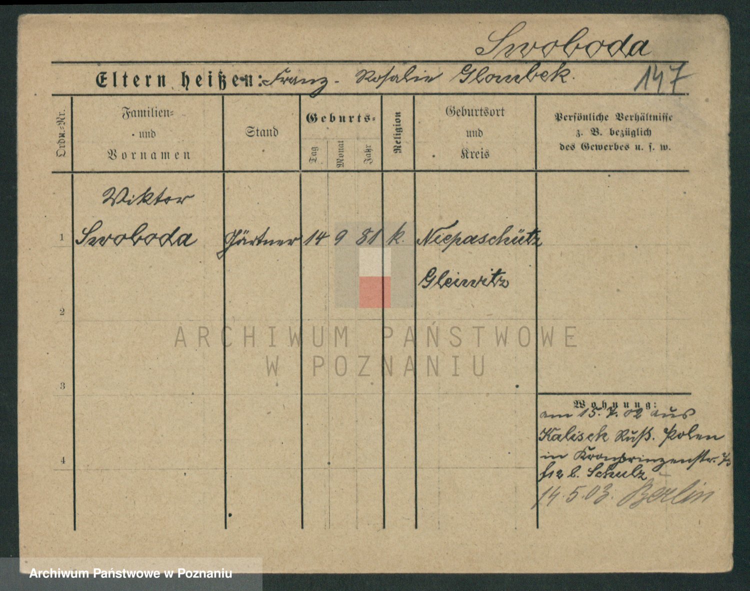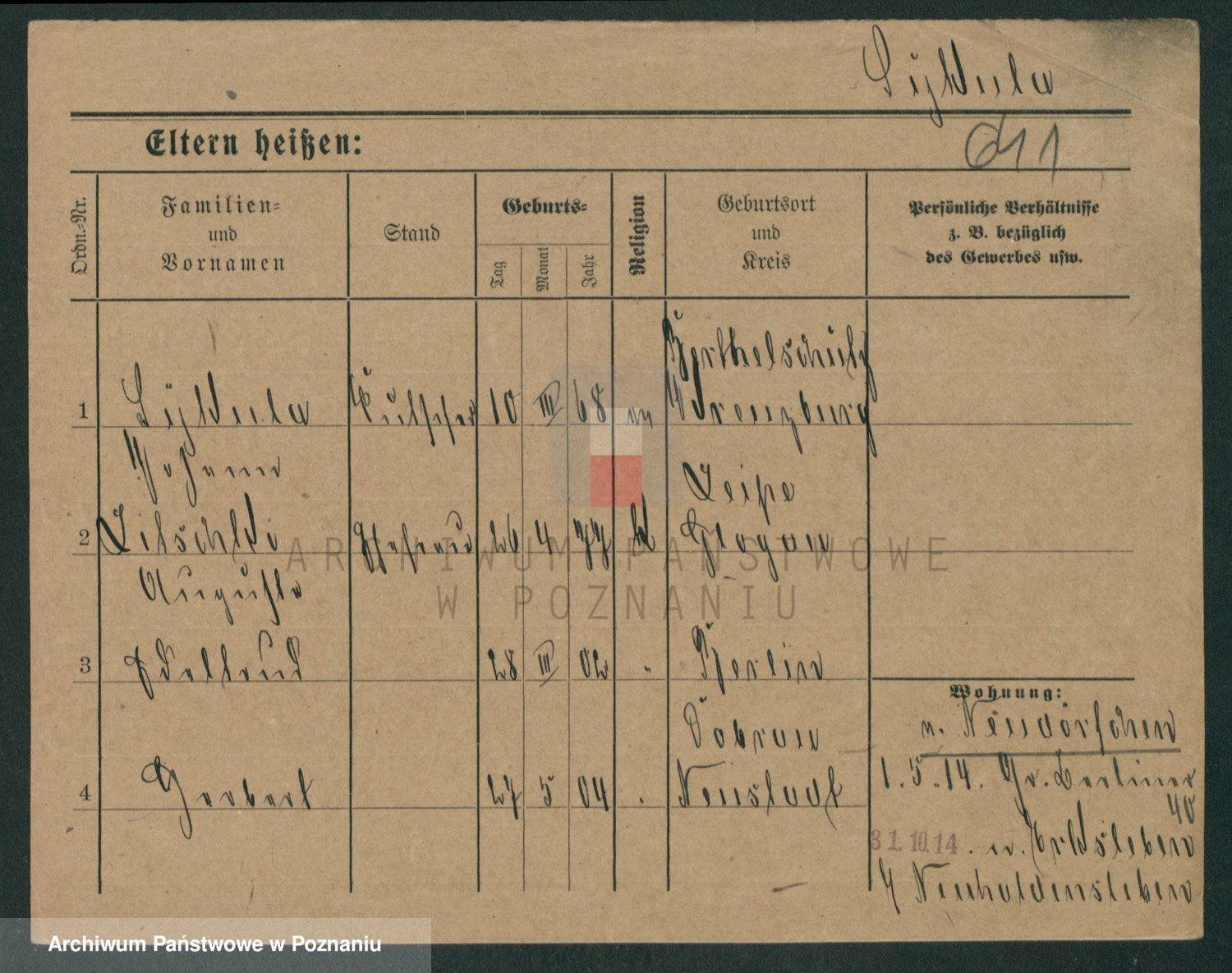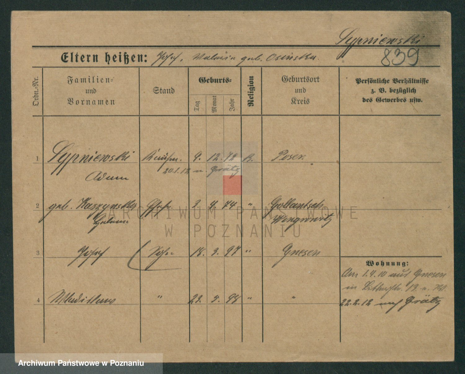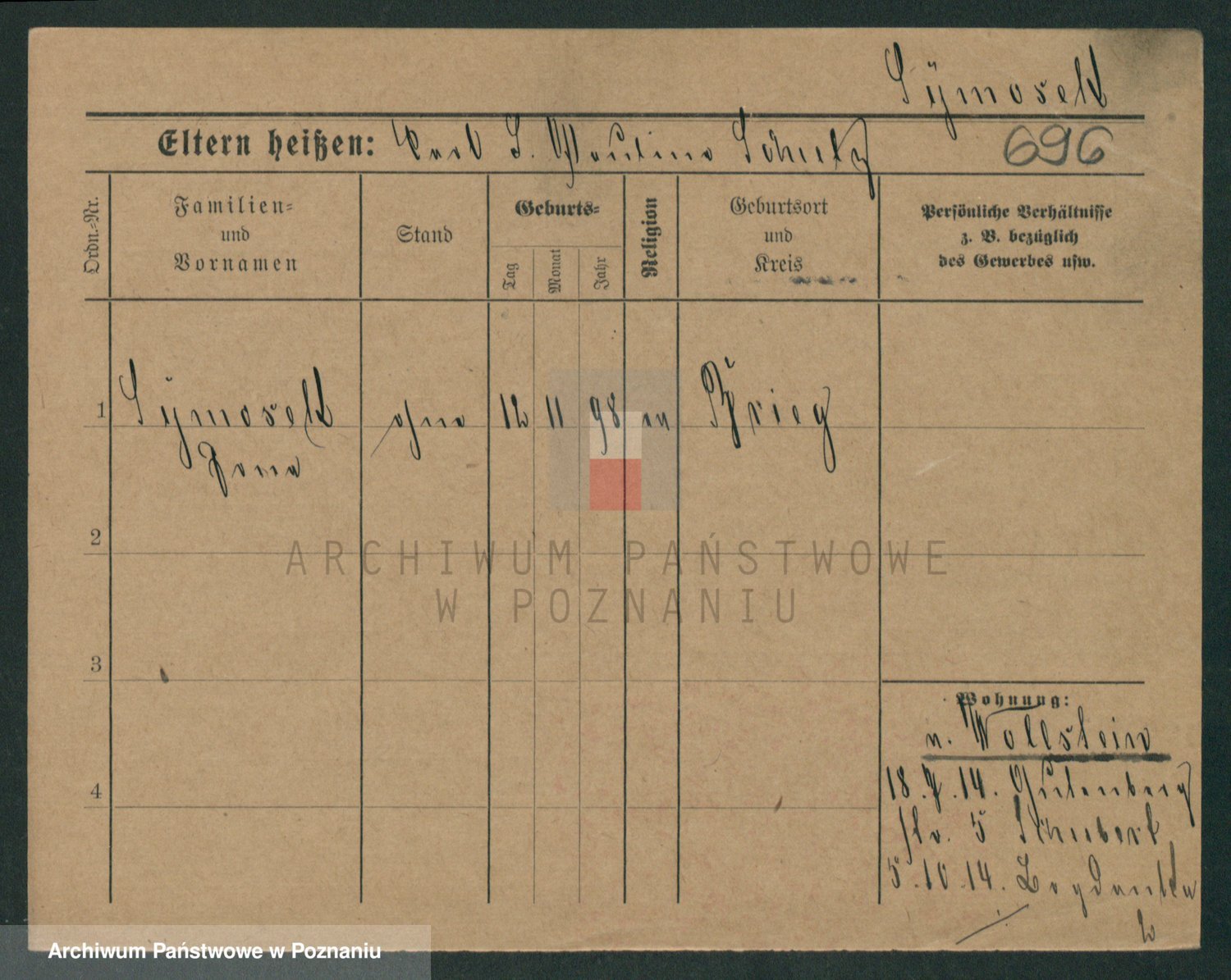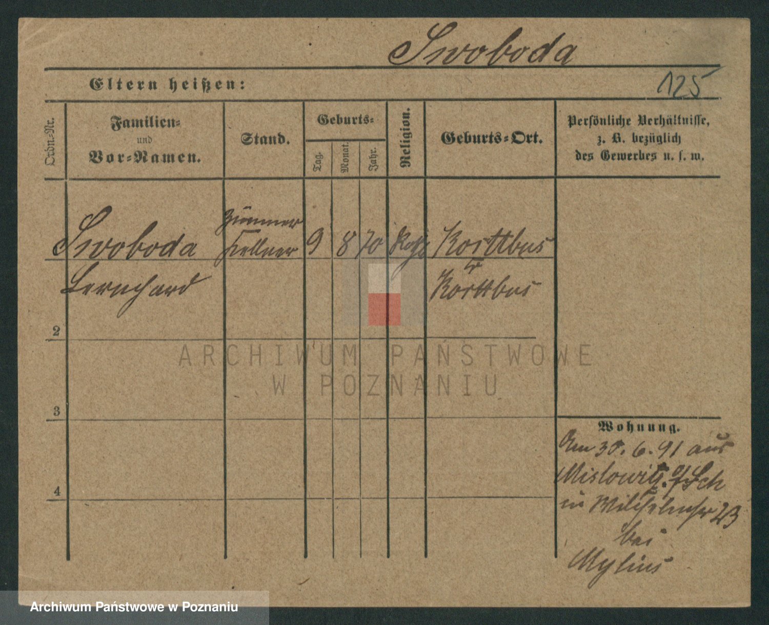 Podgląd karty osobowej dostępny jest po kliknięciu na nazwisko lub ikonkę karty. Można dokonywać powiększenia (ikony na górze) lub przechodzić między kolejnymi skanami (strzałki po bokach).