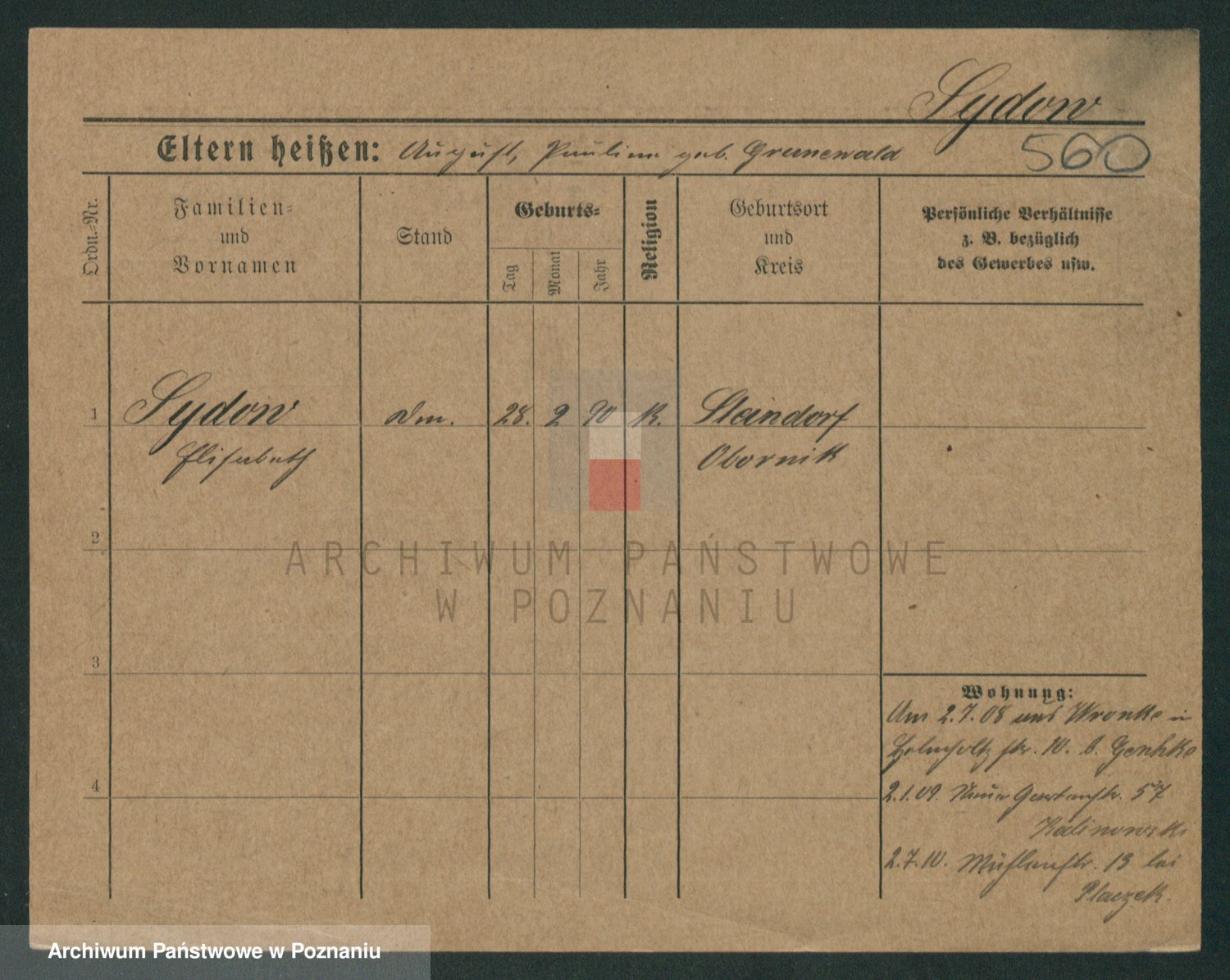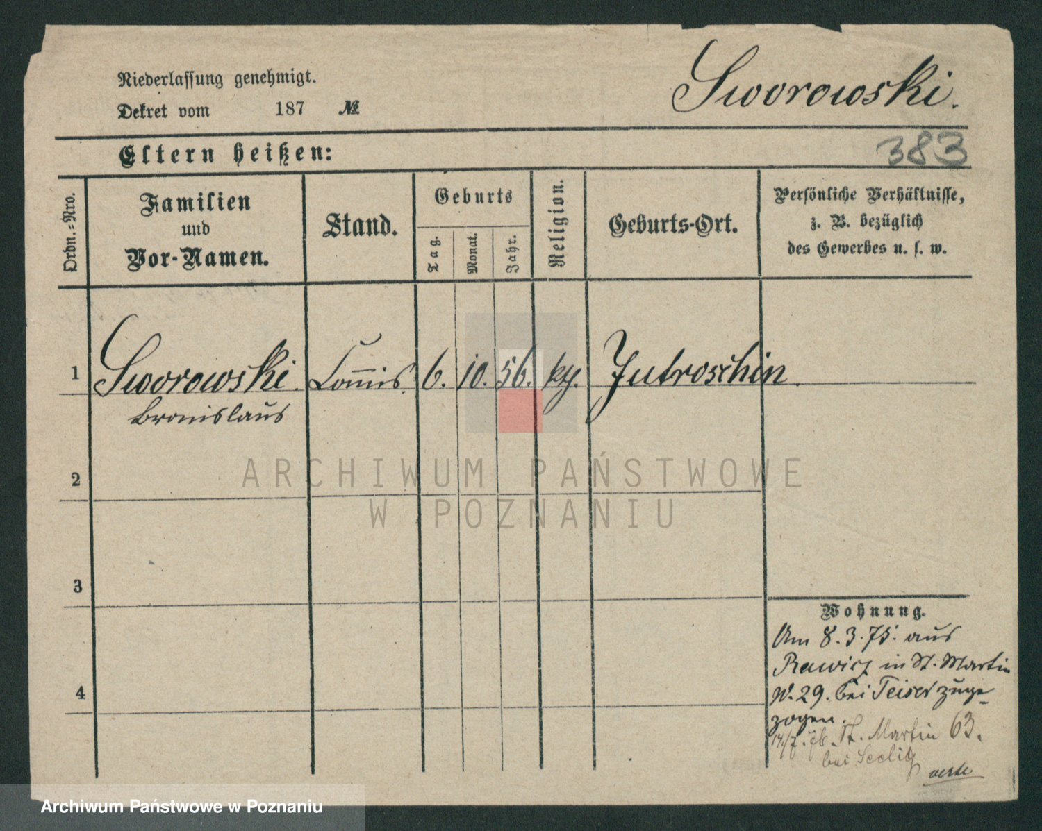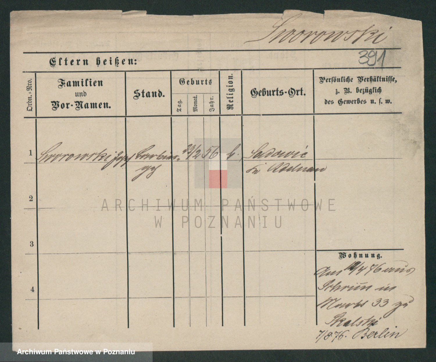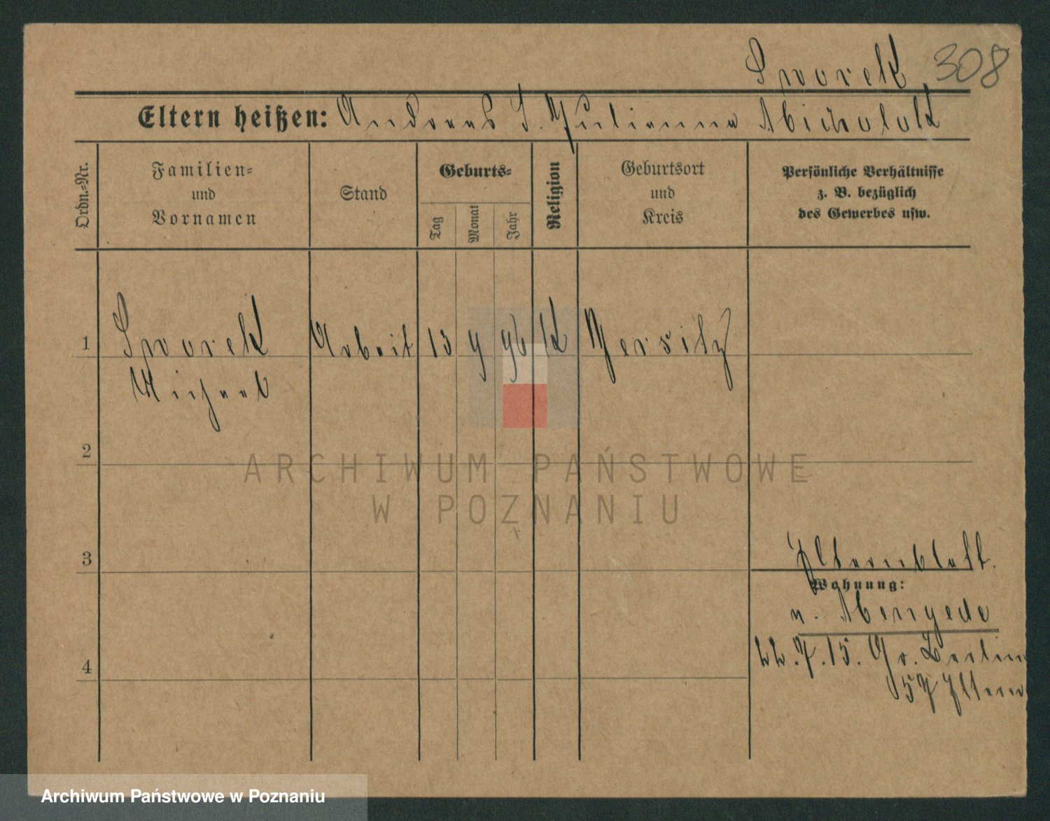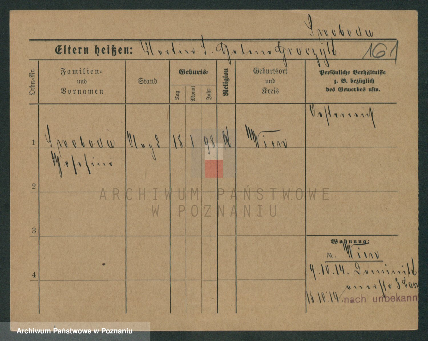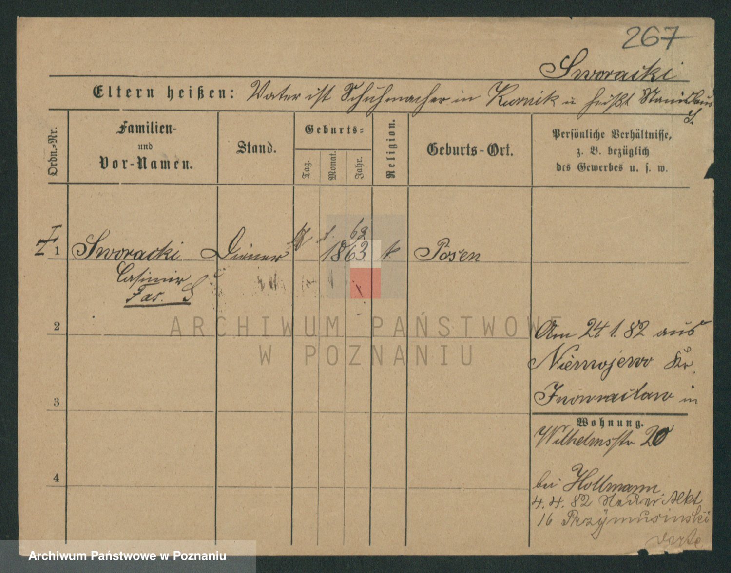 Podgląd karty osobowej dostępny jest po kliknięciu na nazwisko lub ikonkę karty. Można dokonywać powiększenia (ikony na górze) lub przechodzić między kolejnymi skanami (strzałki po bokach).