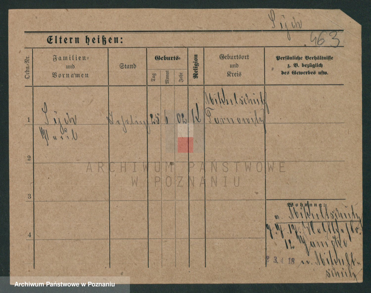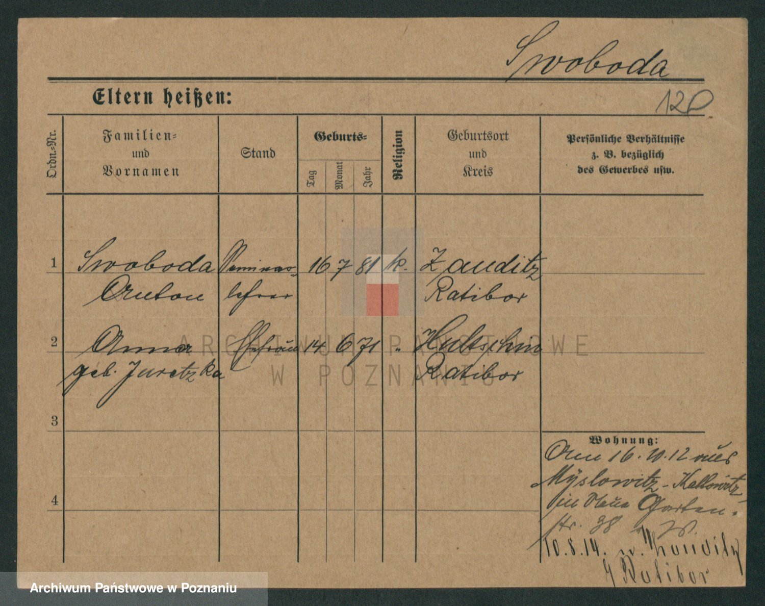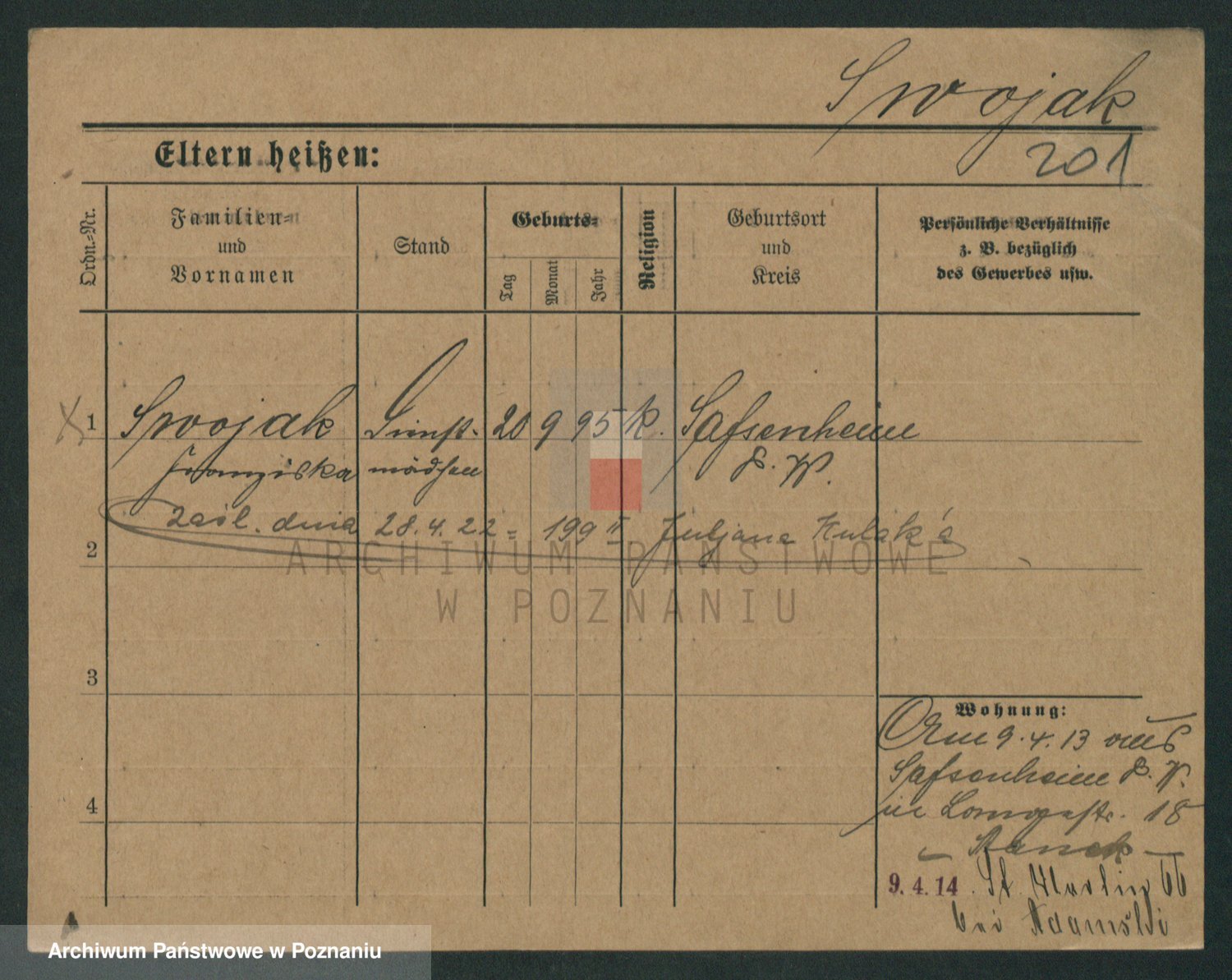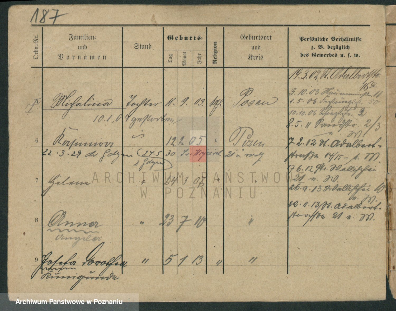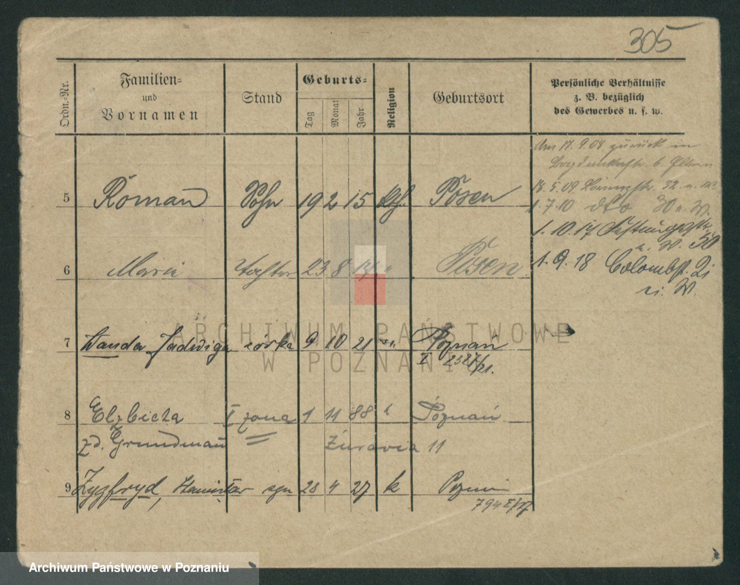 Podgląd karty osobowej dostępny jest po kliknięciu na nazwisko lub ikonkę karty. Można dokonywać powiększenia (ikony na górze) lub przechodzić między kolejnymi skanami (strzałki po bokach).