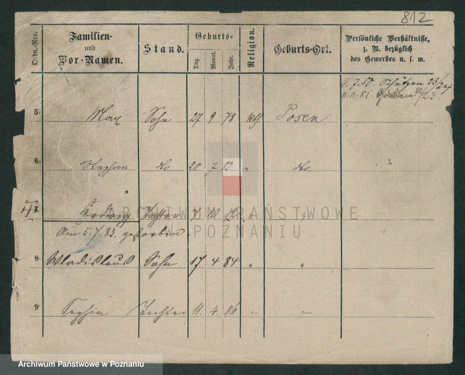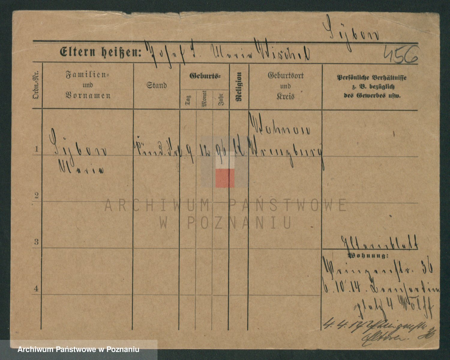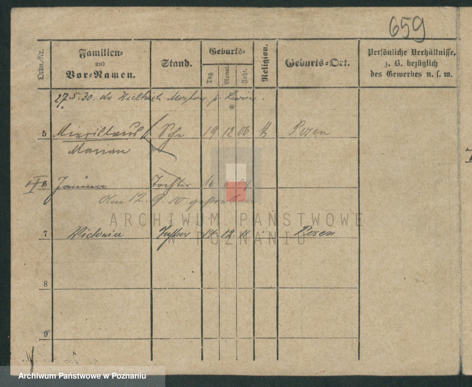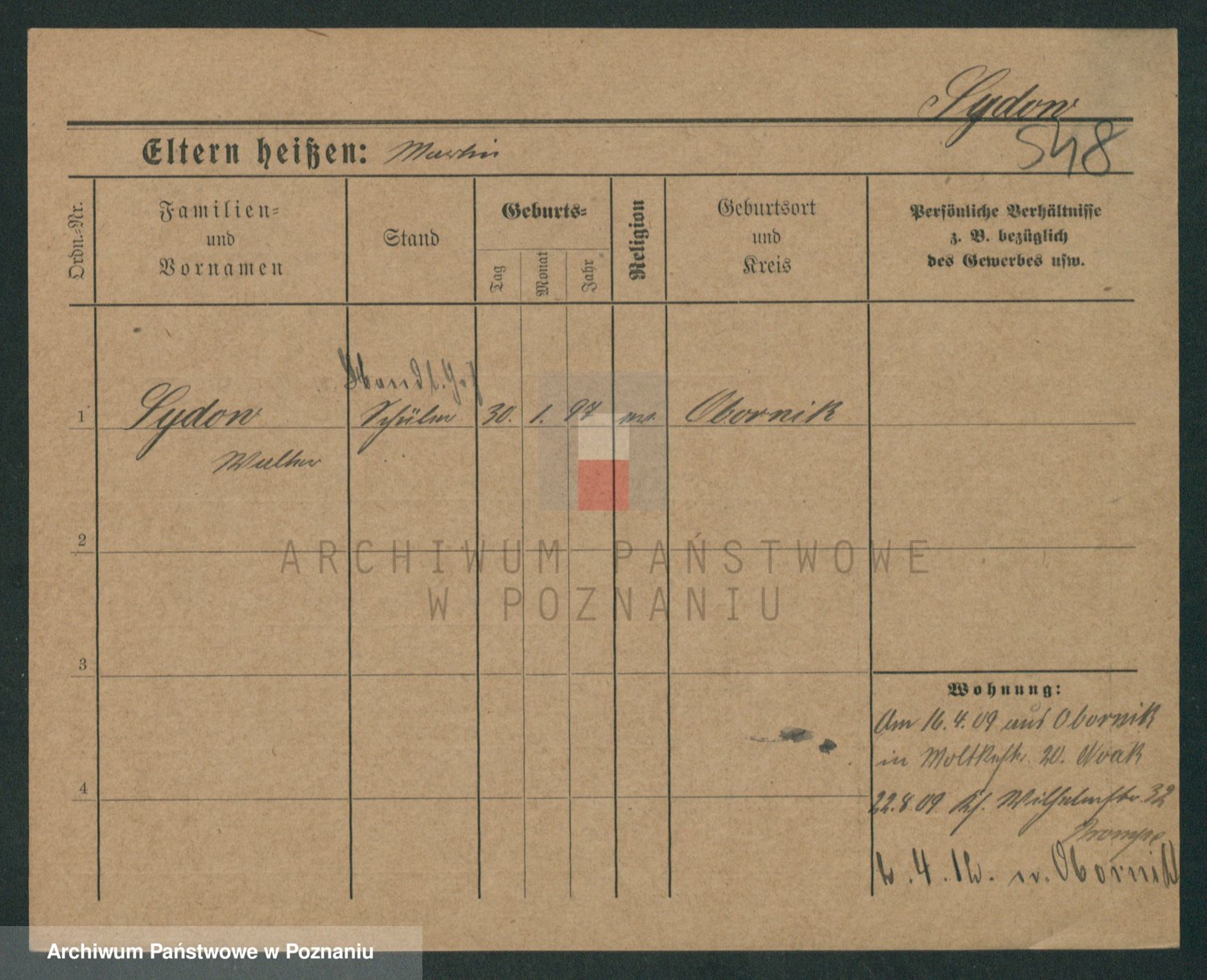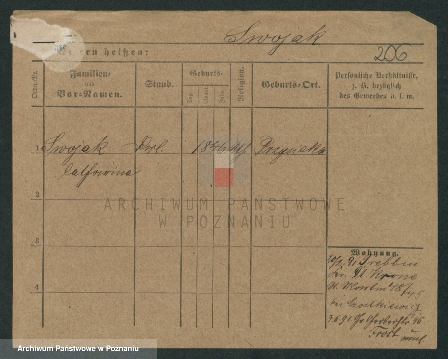 Podgląd karty osobowej dostępny jest po kliknięciu na nazwisko lub ikonkę karty. Można dokonywać powiększenia (ikony na górze) lub przechodzić między kolejnymi skanami (strzałki po bokach).